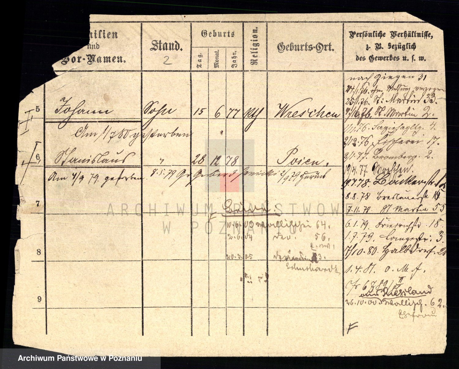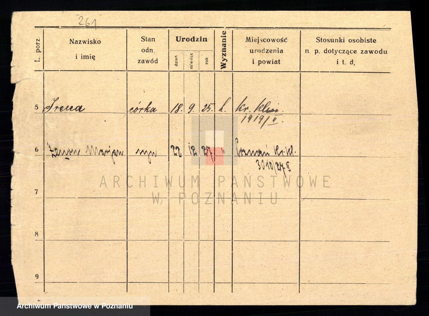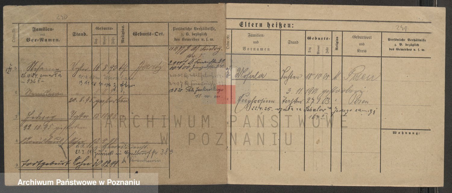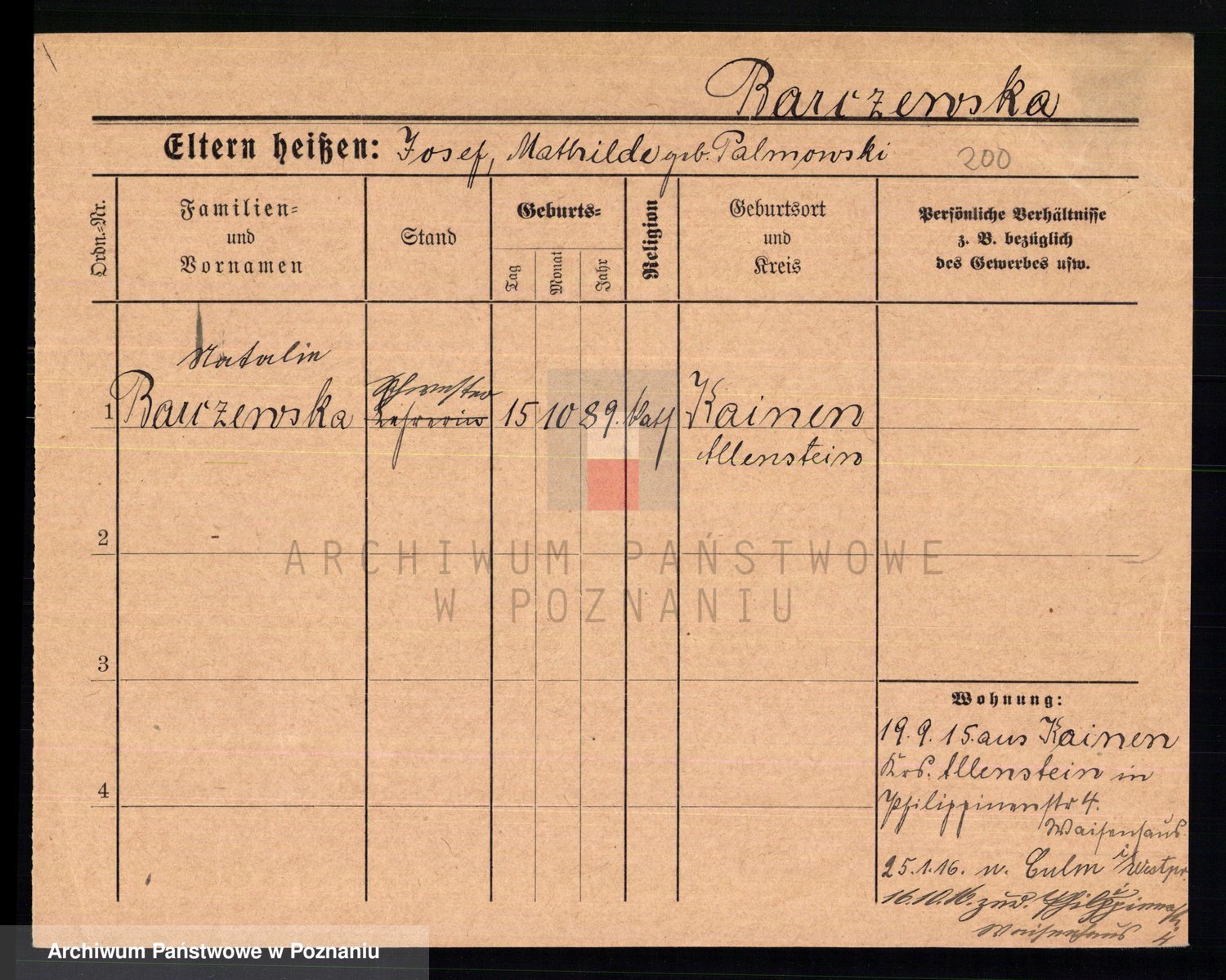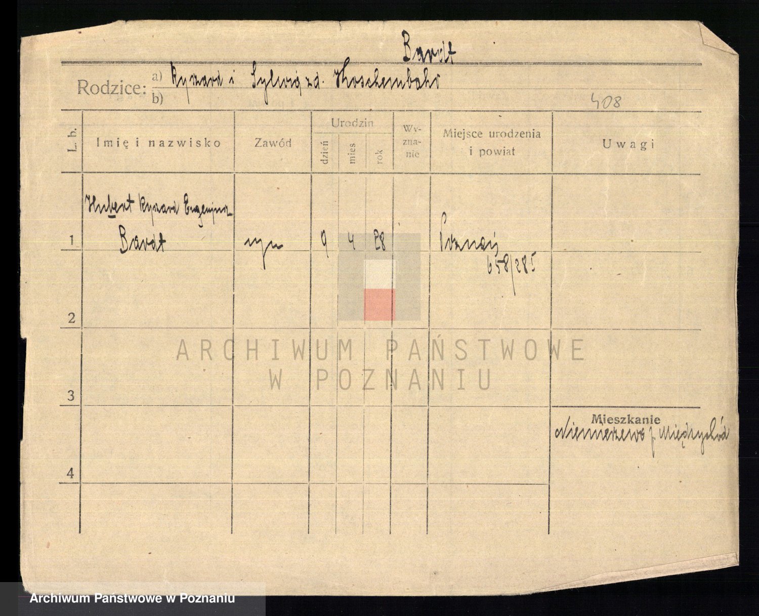 Podgląd karty osobowej dostępny jest po kliknięciu na nazwisko lub ikonkę karty. Można dokonywać powiększenia (ikony na górze) lub przechodzić między kolejnymi skanami (strzałki po bokach).