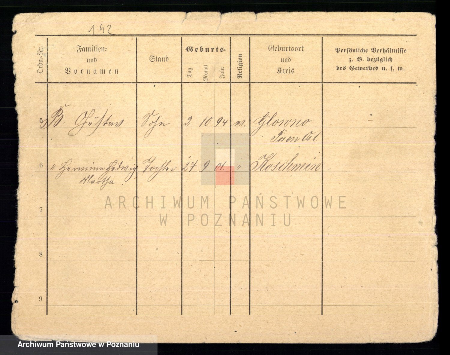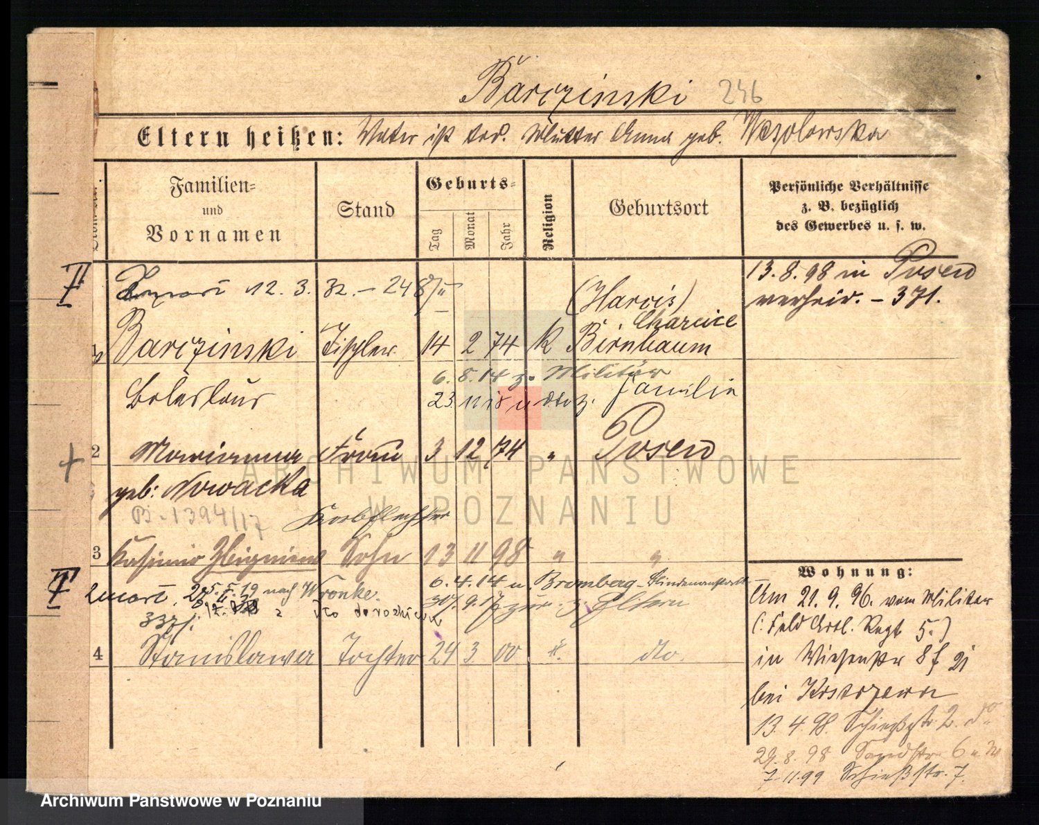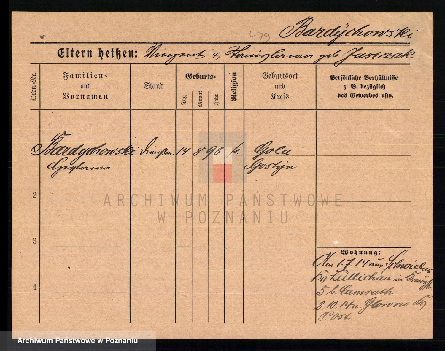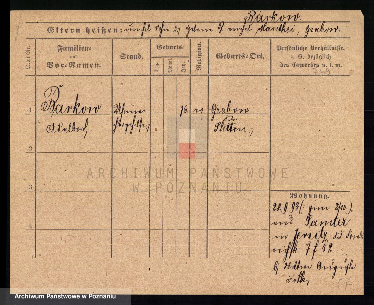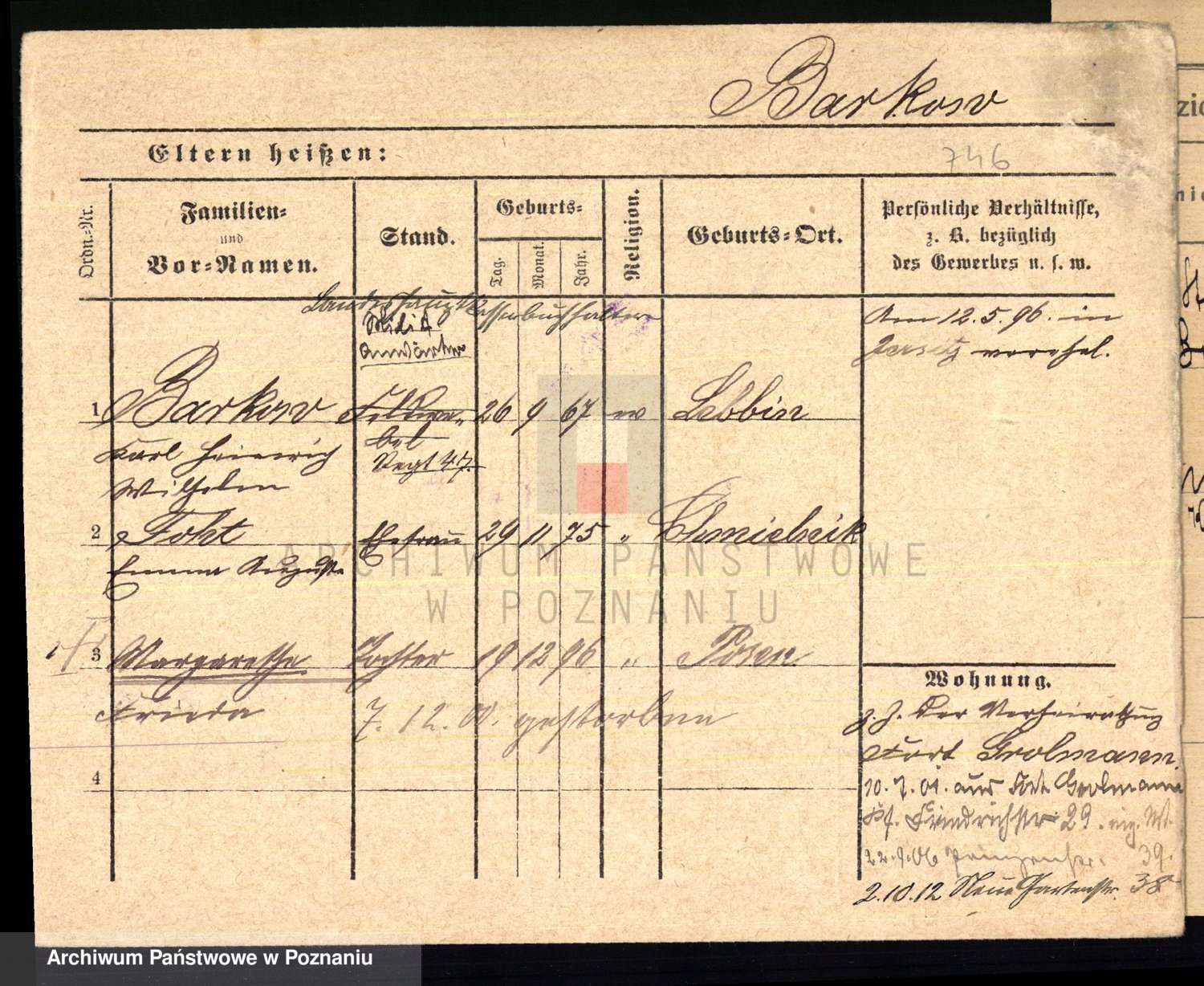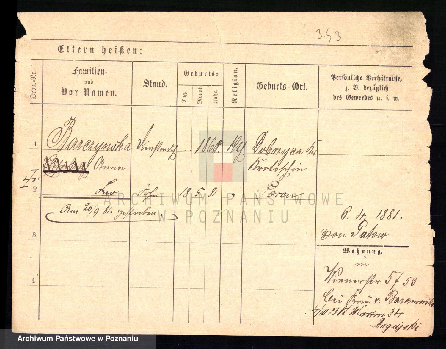 Podgląd karty osobowej dostępny jest po kliknięciu na nazwisko lub ikonkę karty. Można dokonywać powiększenia (ikony na górze) lub przechodzić między kolejnymi skanami (strzałki po bokach).