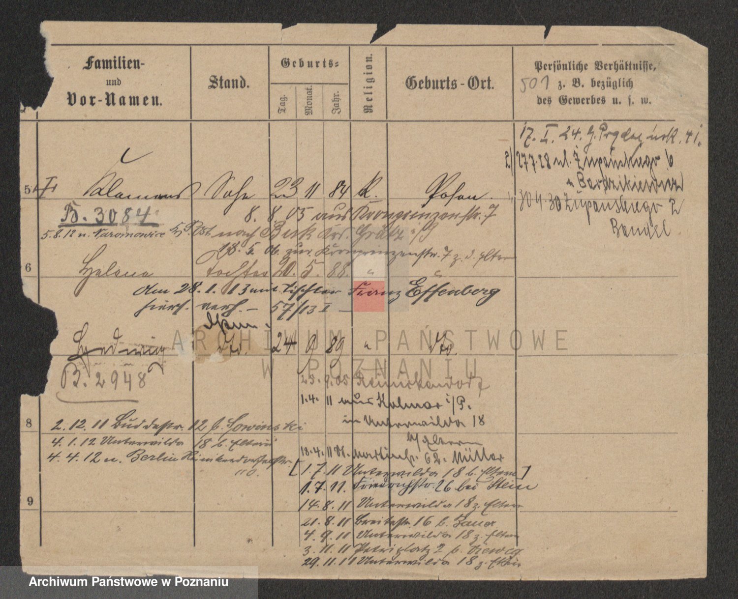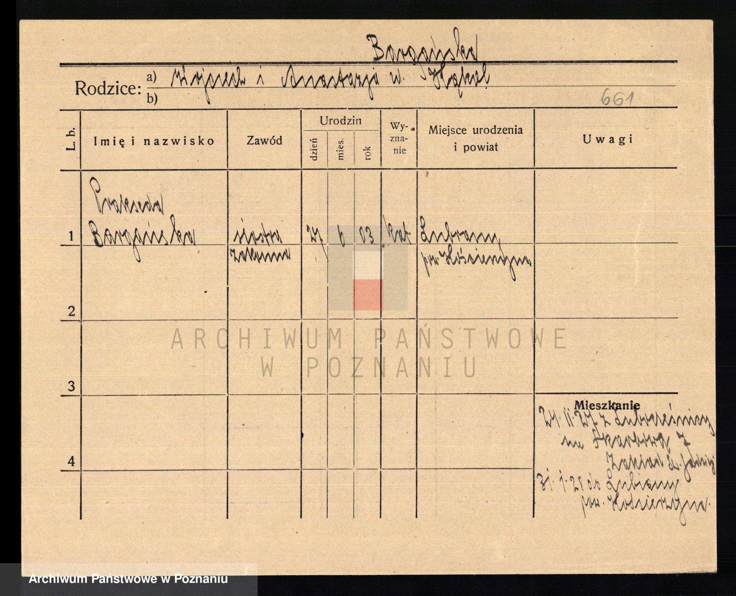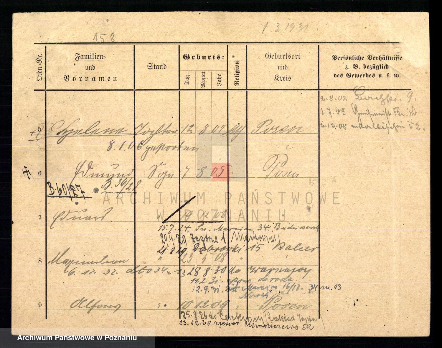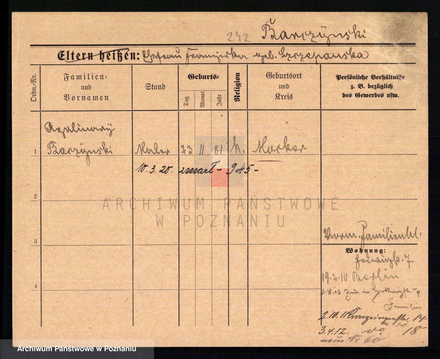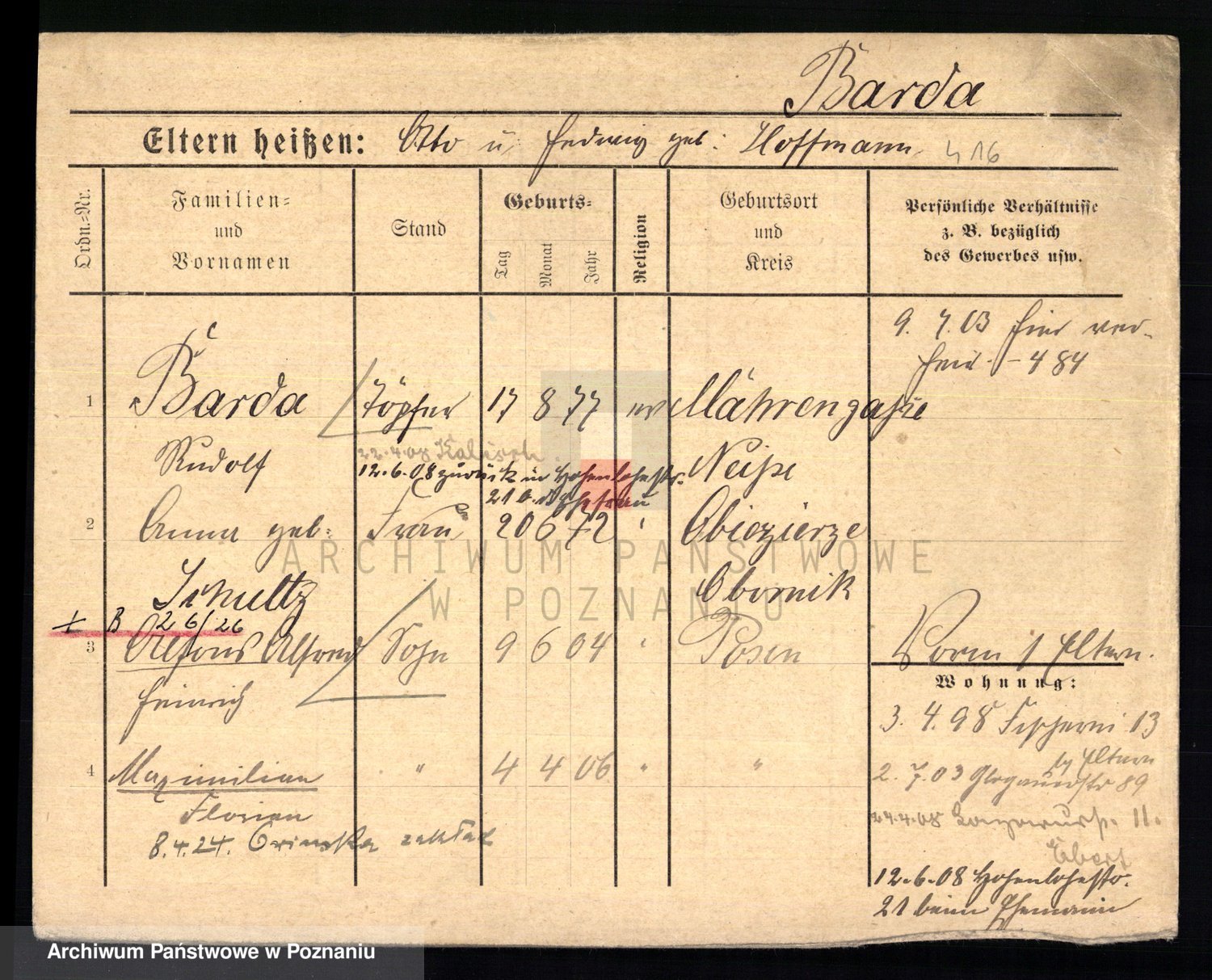 Podgląd karty osobowej dostępny jest po kliknięciu na nazwisko lub ikonkę karty. Można dokonywać powiększenia (ikony na górze) lub przechodzić między kolejnymi skanami (strzałki po bokach).