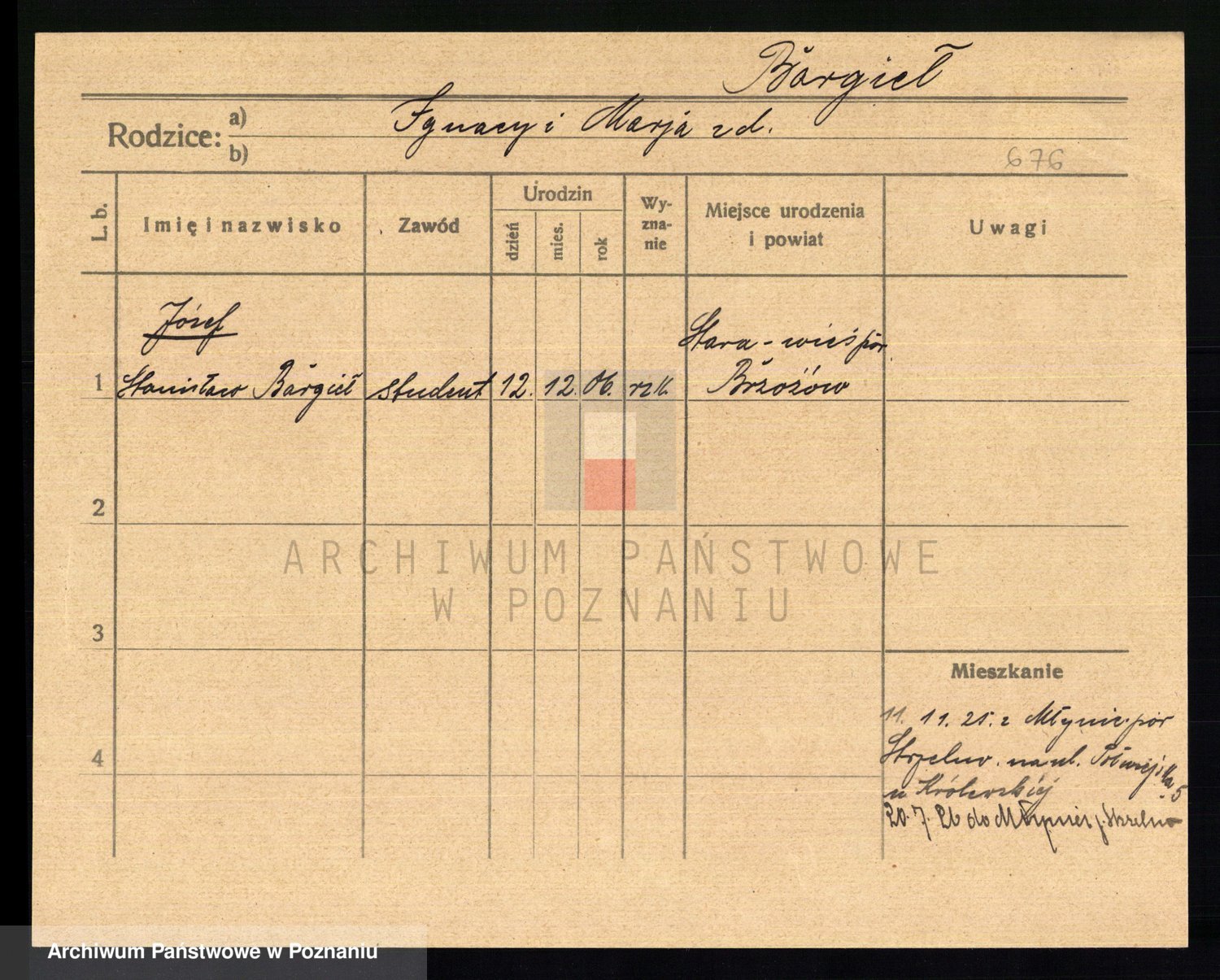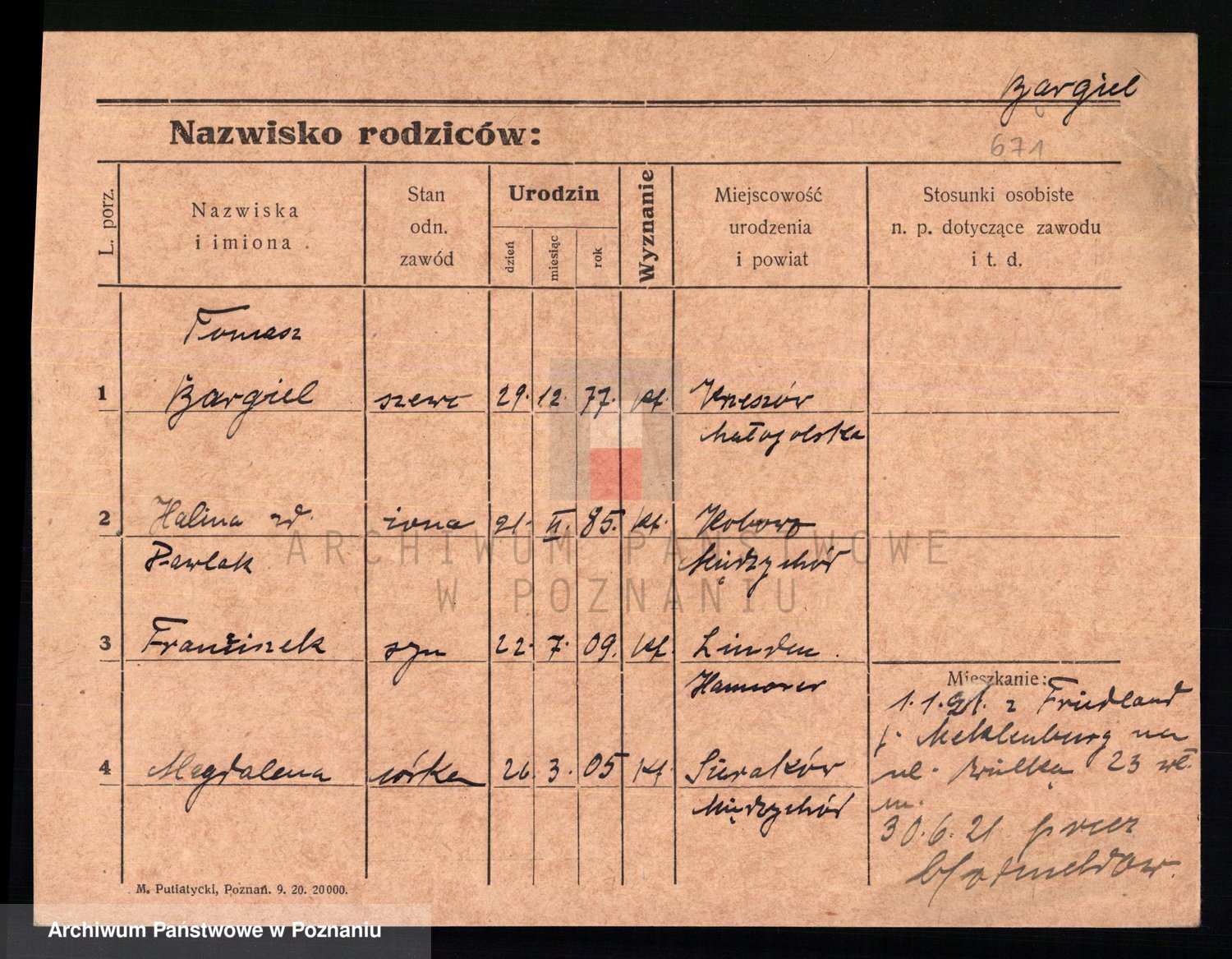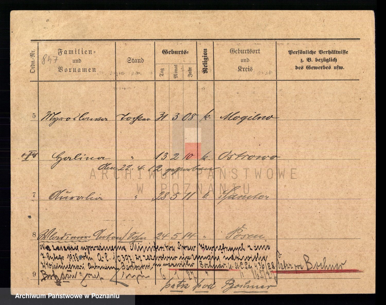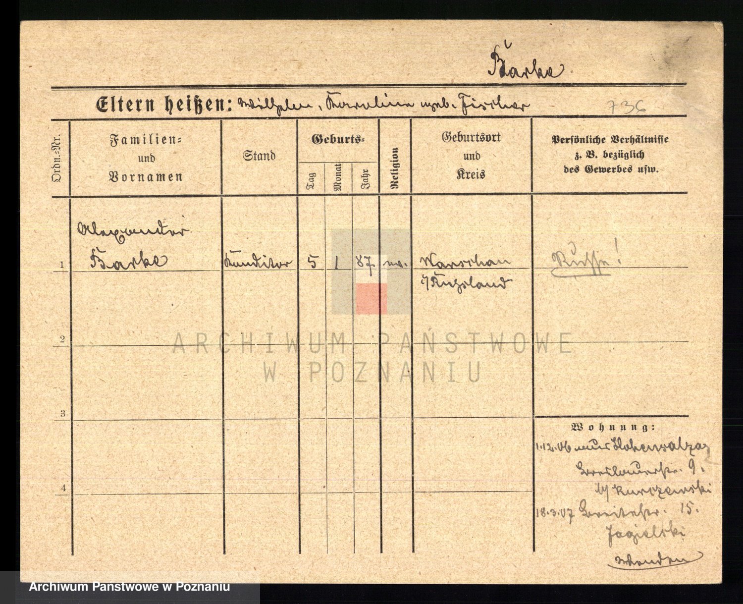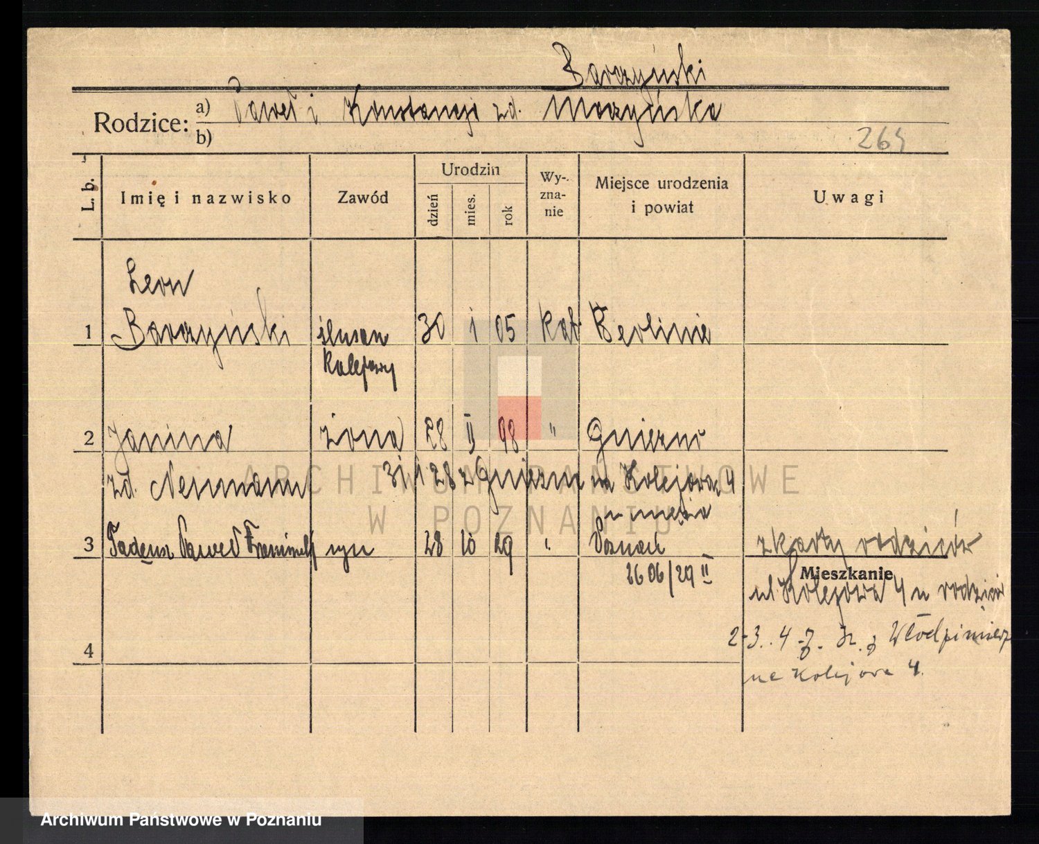 Podgląd karty osobowej dostępny jest po kliknięciu na nazwisko lub ikonkę karty. Można dokonywać powiększenia (ikony na górze) lub przechodzić między kolejnymi skanami (strzałki po bokach).