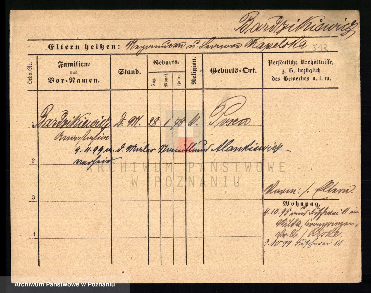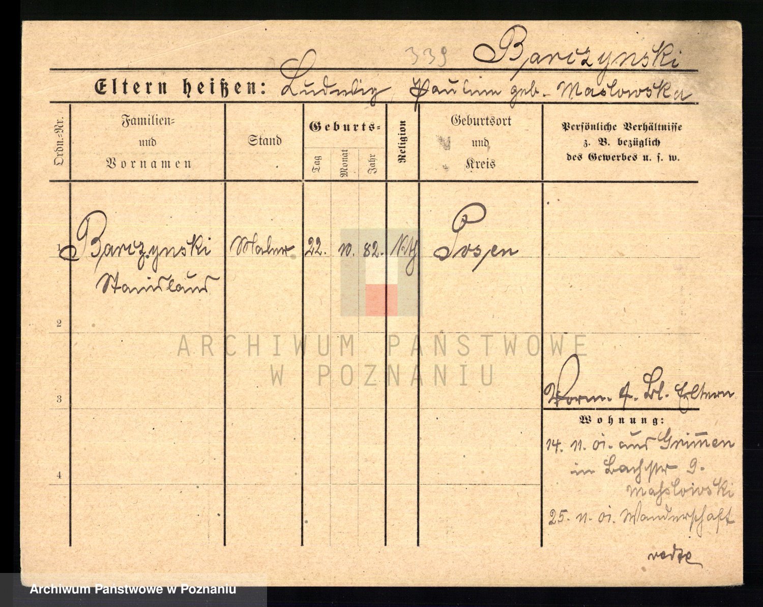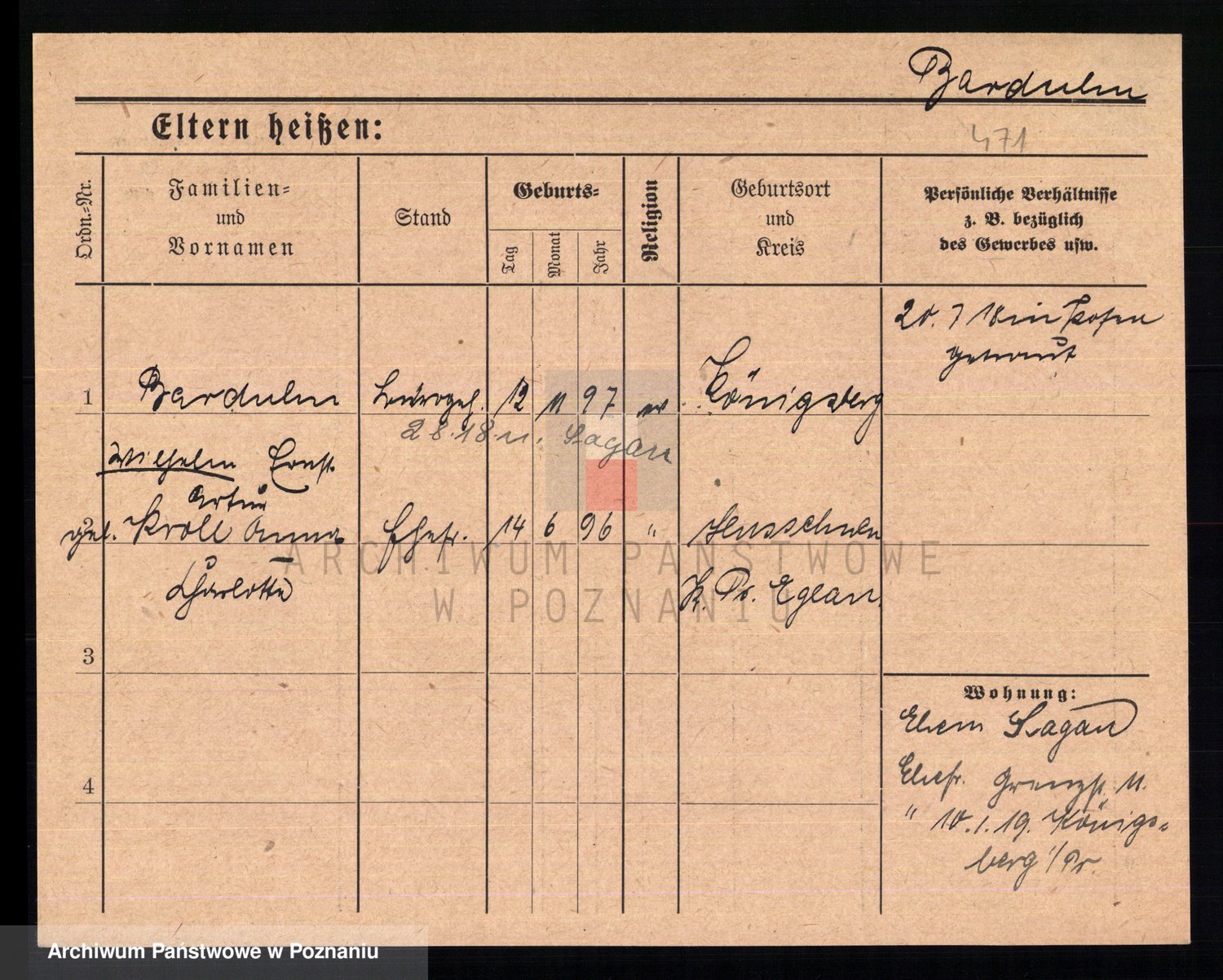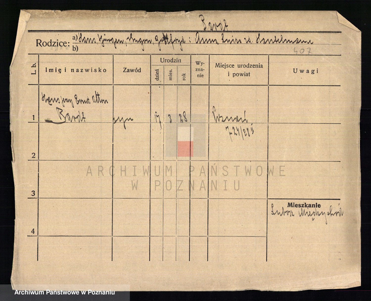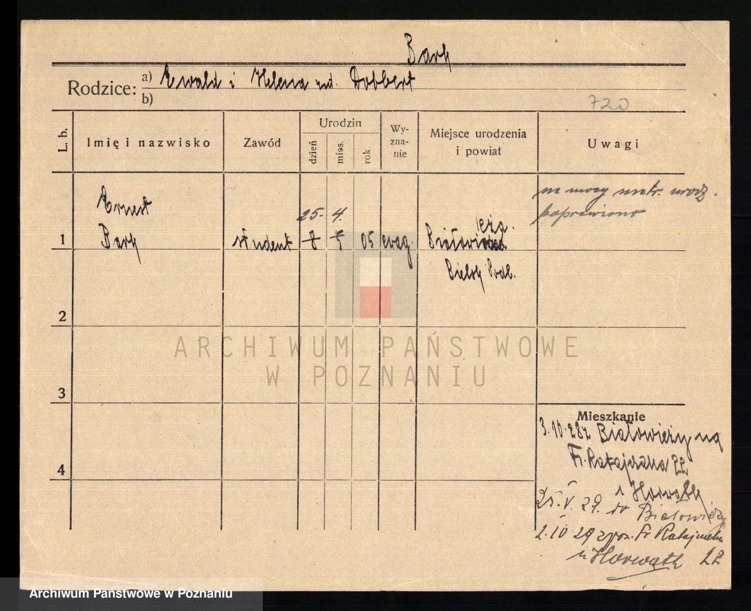 Podgląd karty osobowej dostępny jest po kliknięciu na nazwisko lub ikonkę karty. Można dokonywać powiększenia (ikony na górze) lub przechodzić między kolejnymi skanami (strzałki po bokach).