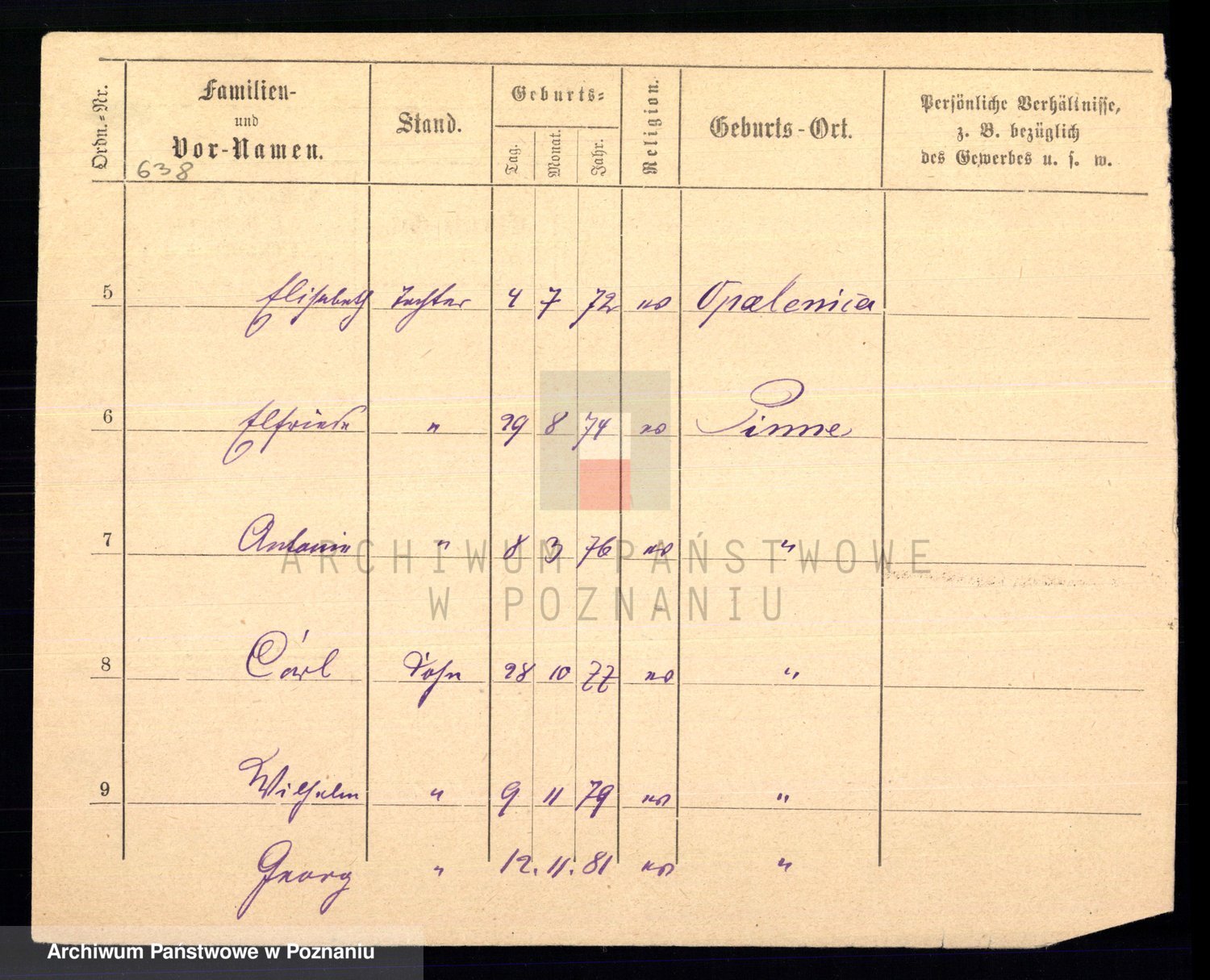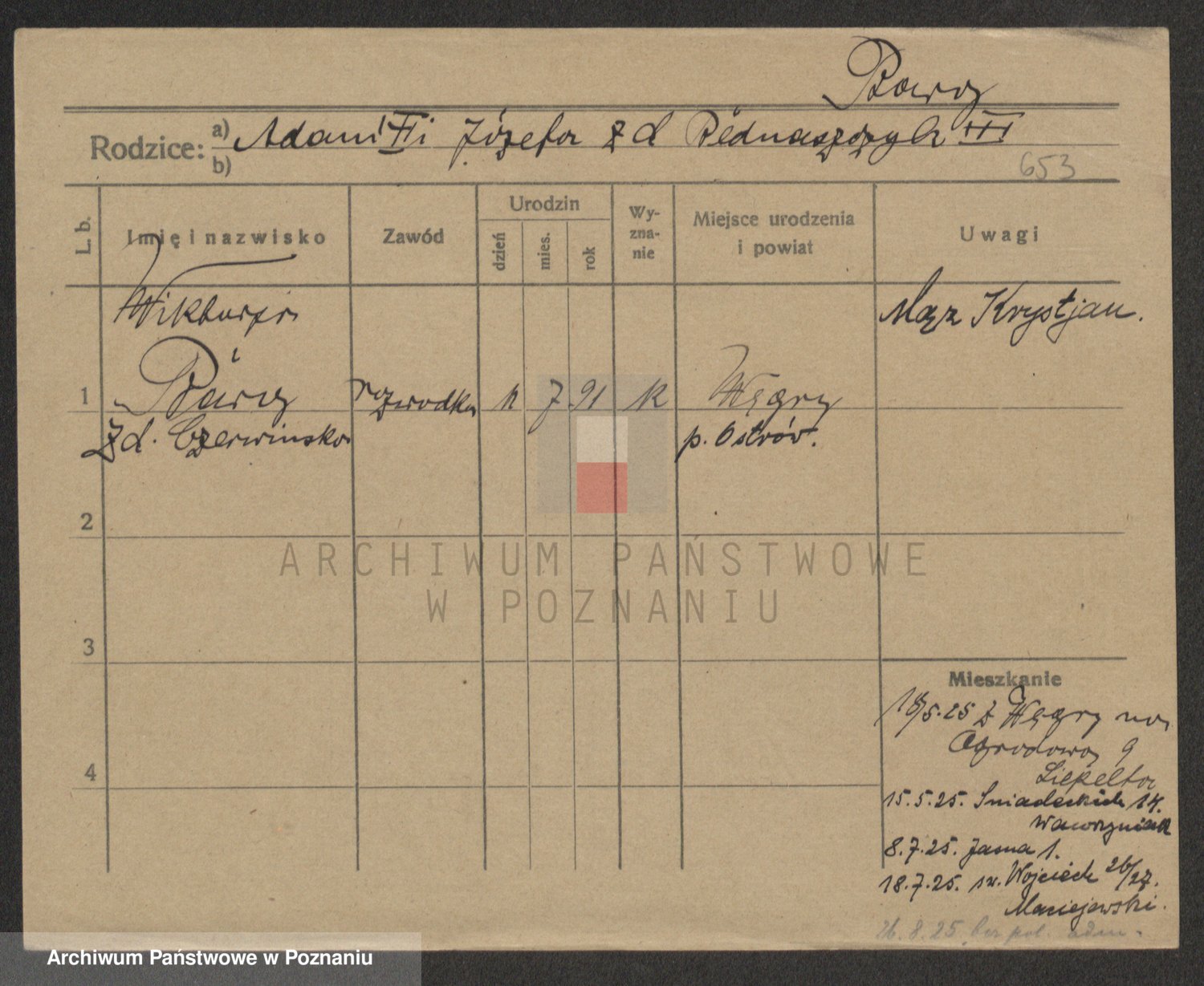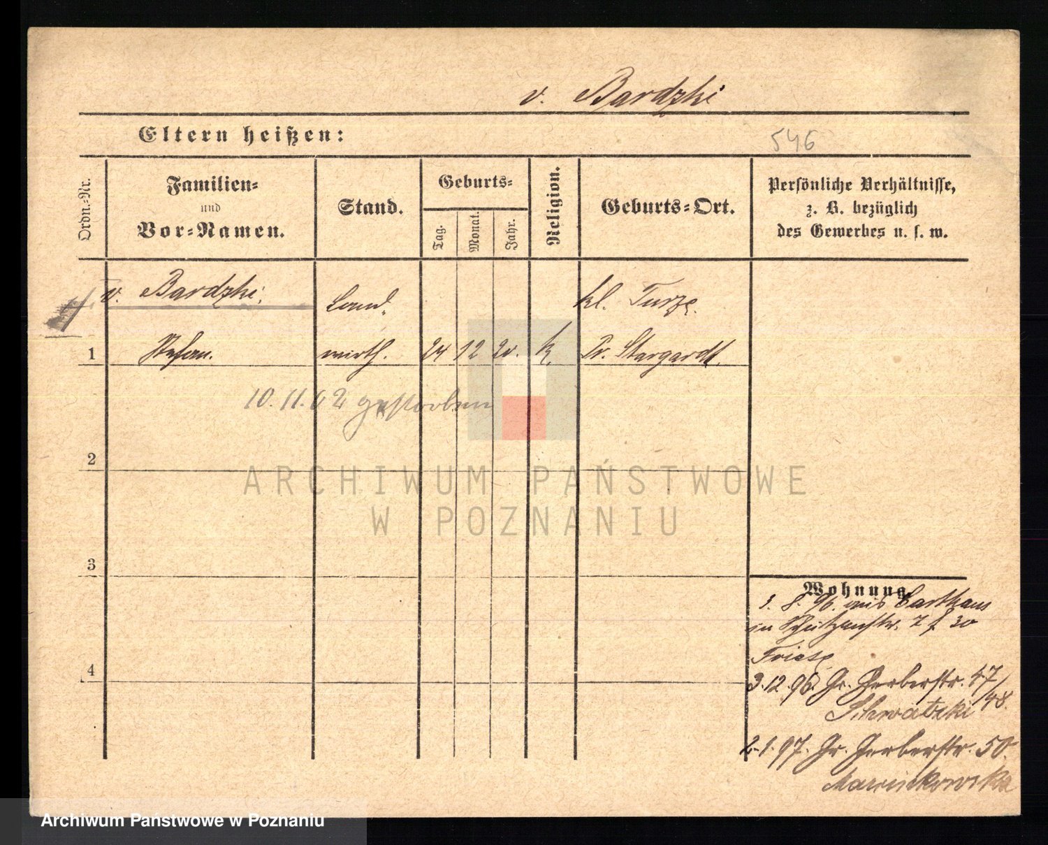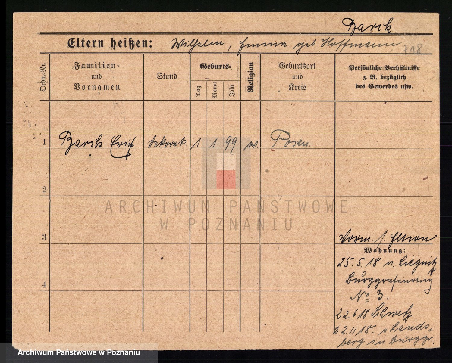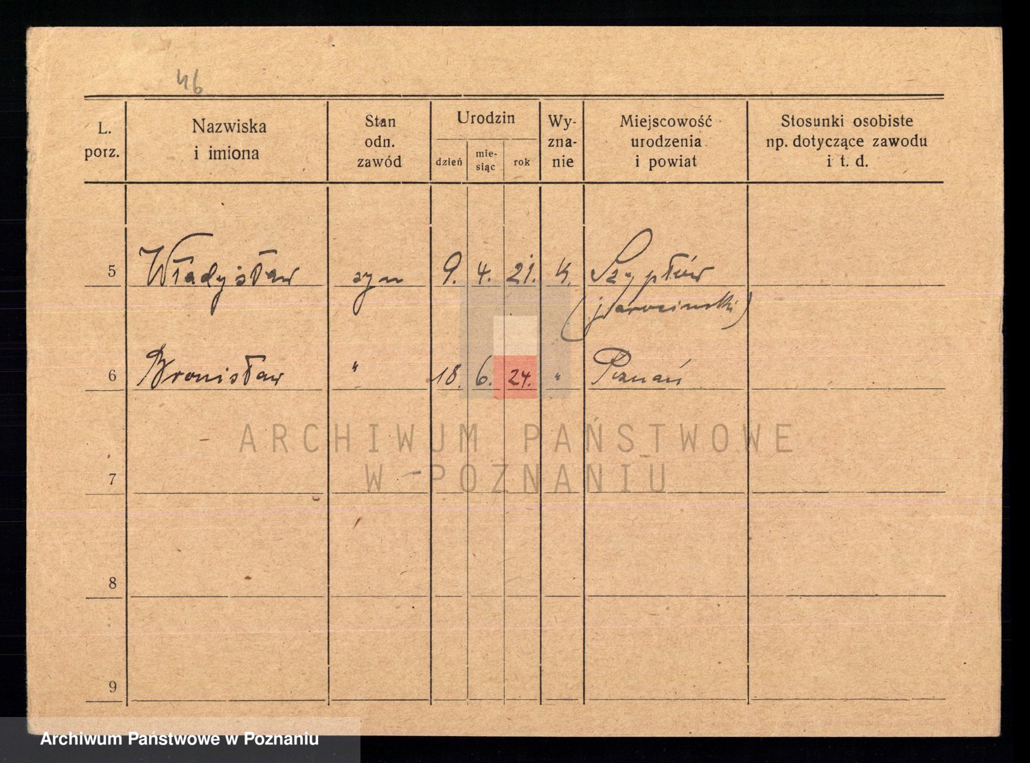 Podgląd karty osobowej dostępny jest po kliknięciu na nazwisko lub ikonkę karty. Można dokonywać powiększenia (ikony na górze) lub przechodzić między kolejnymi skanami (strzałki po bokach).