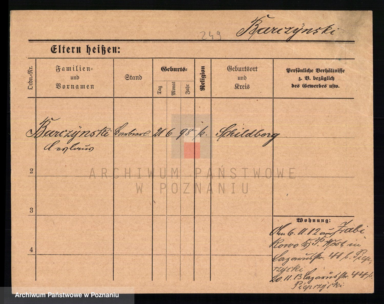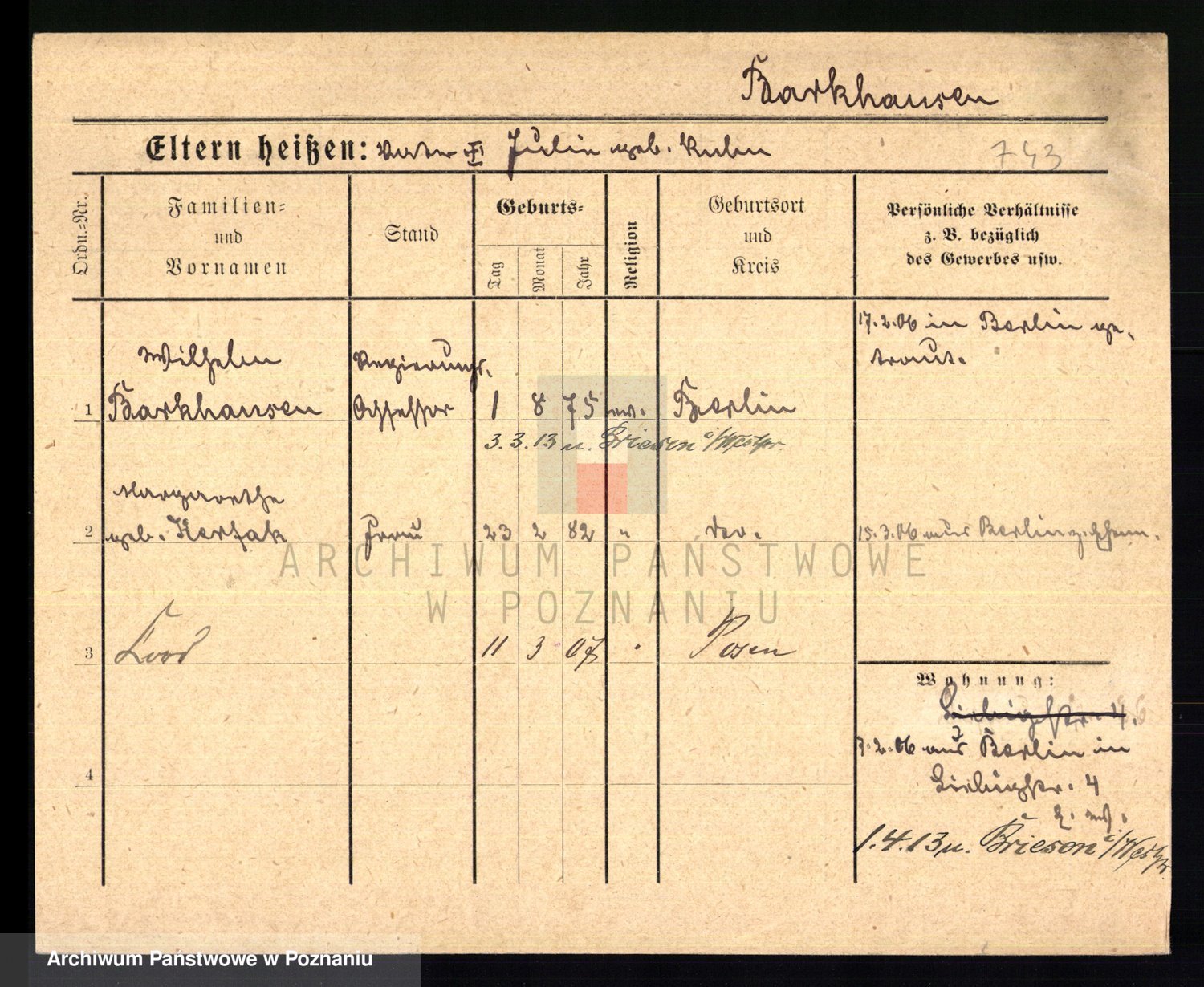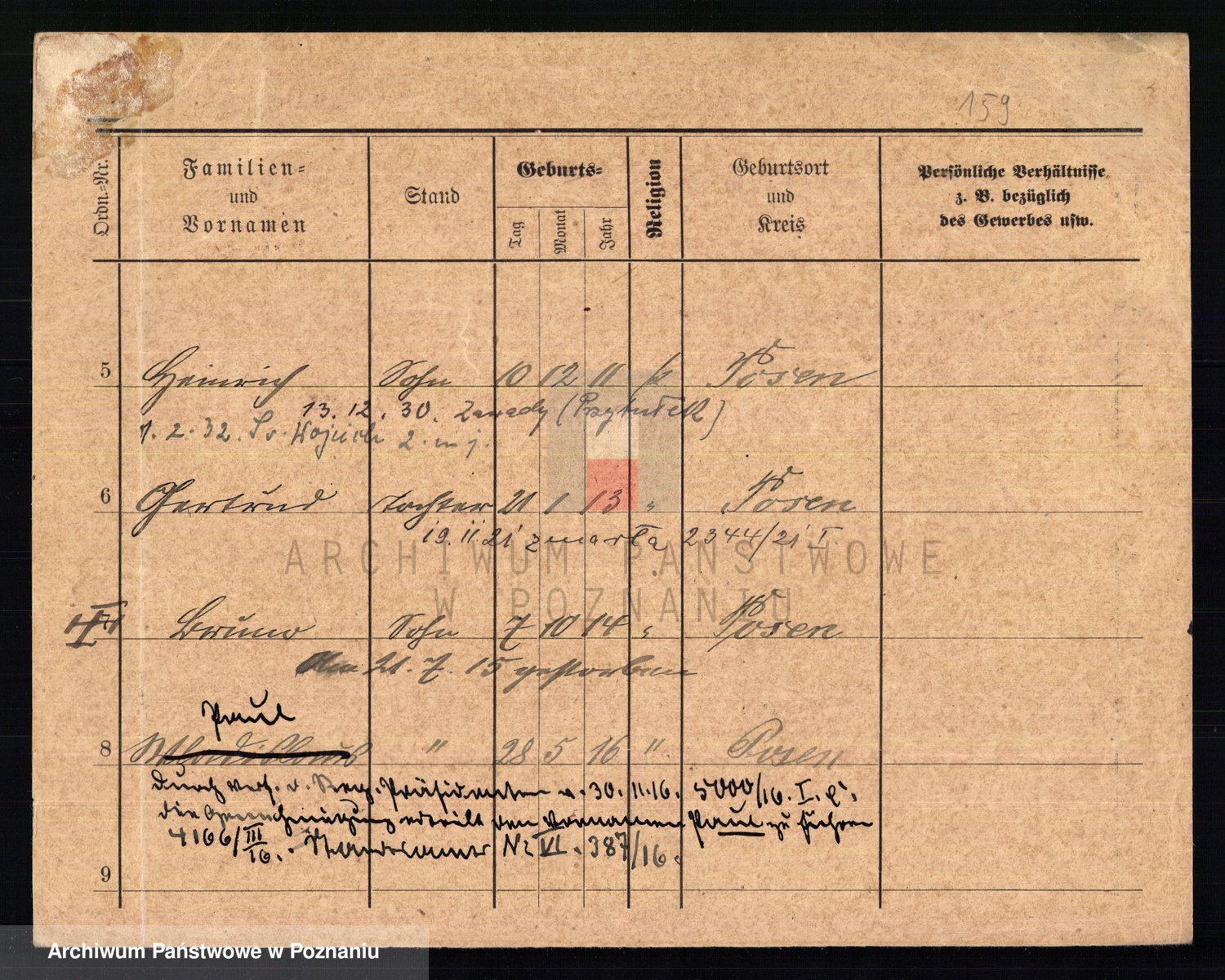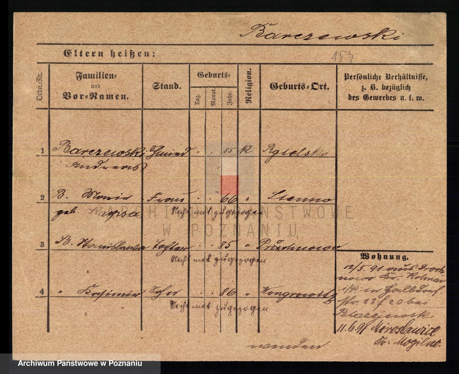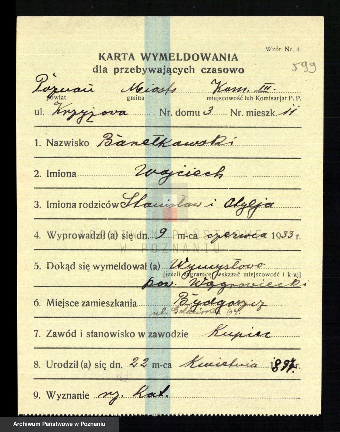 Podgląd karty osobowej dostępny jest po kliknięciu na nazwisko lub ikonkę karty. Można dokonywać powiększenia (ikony na górze) lub przechodzić między kolejnymi skanami (strzałki po bokach).
