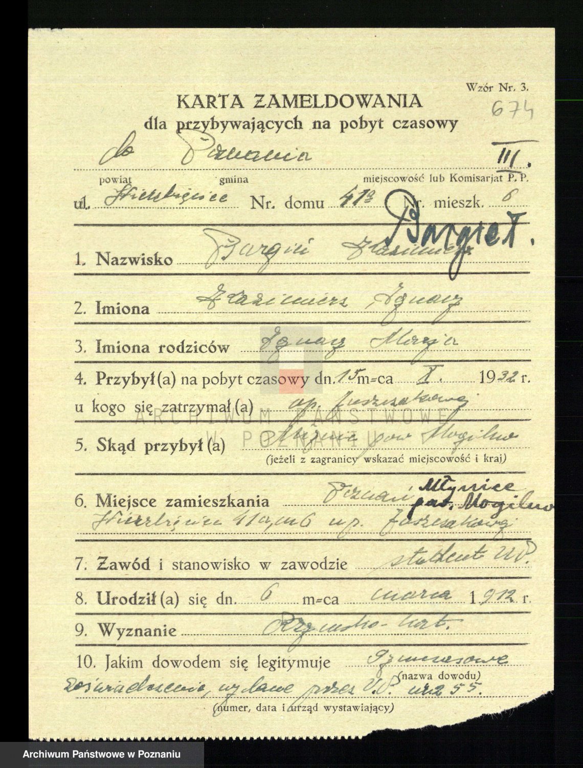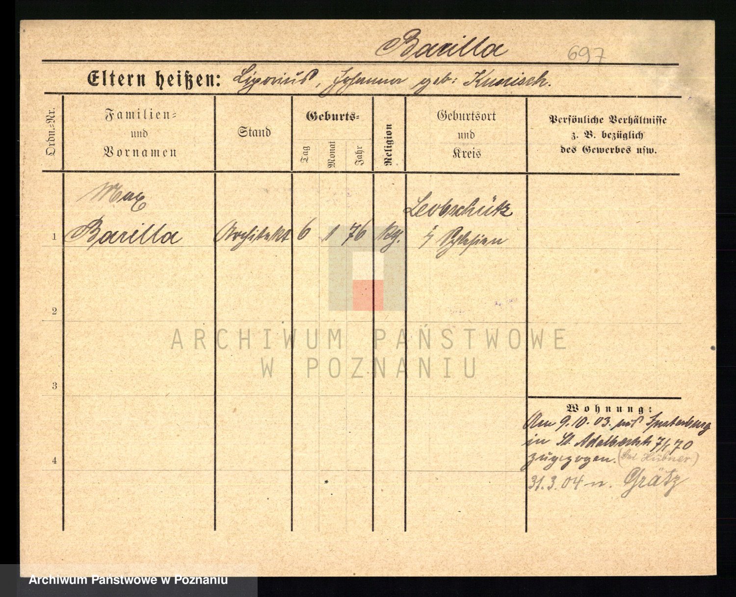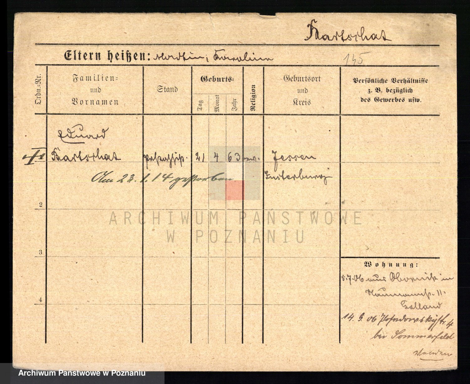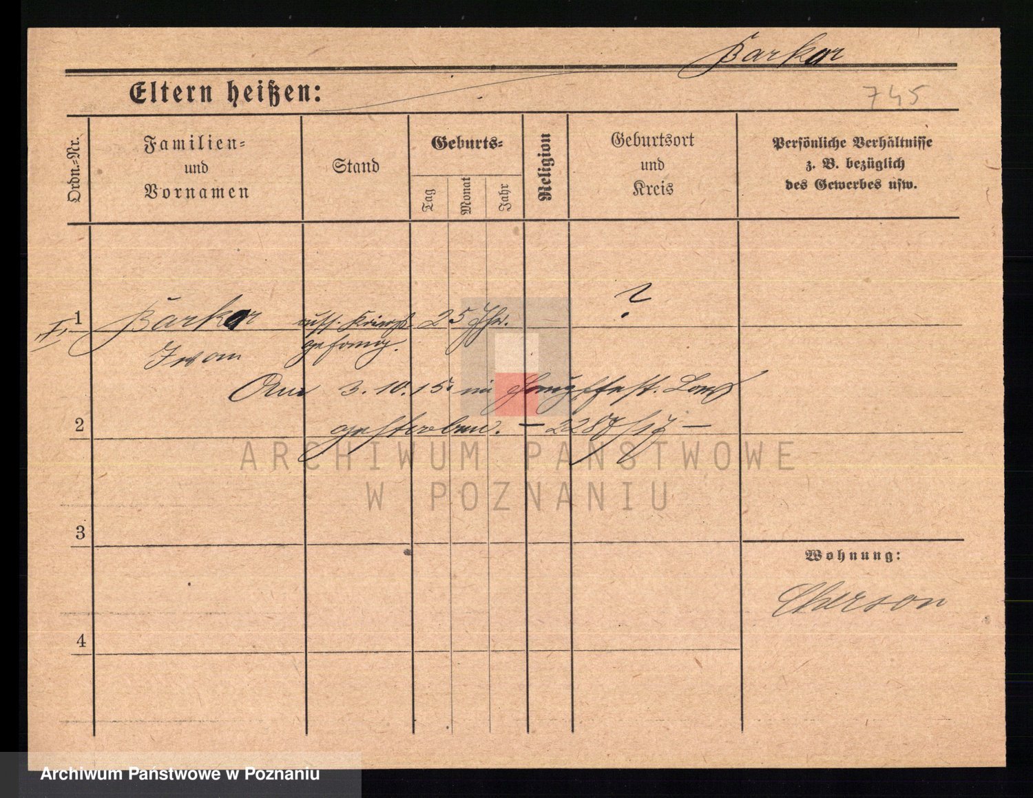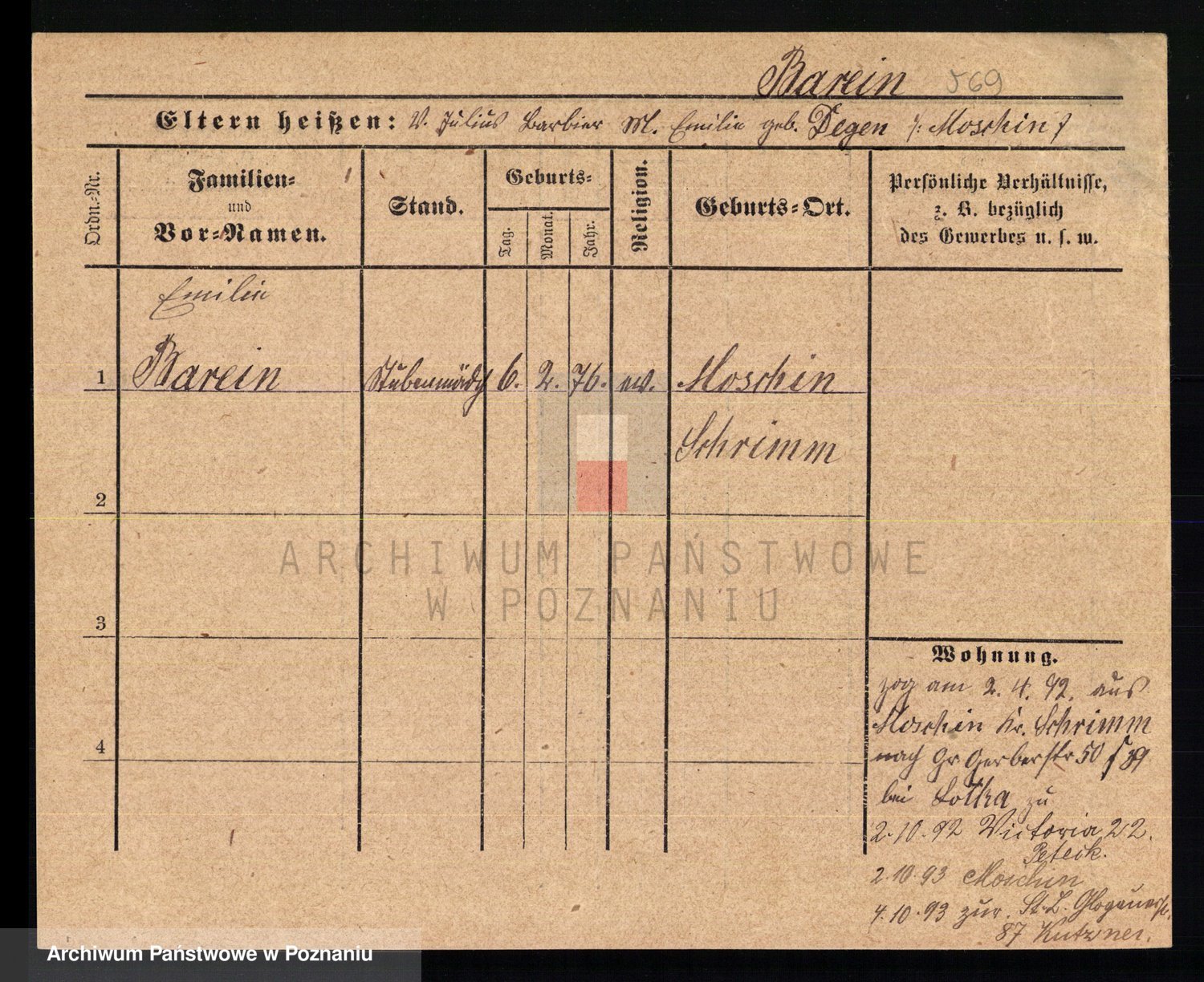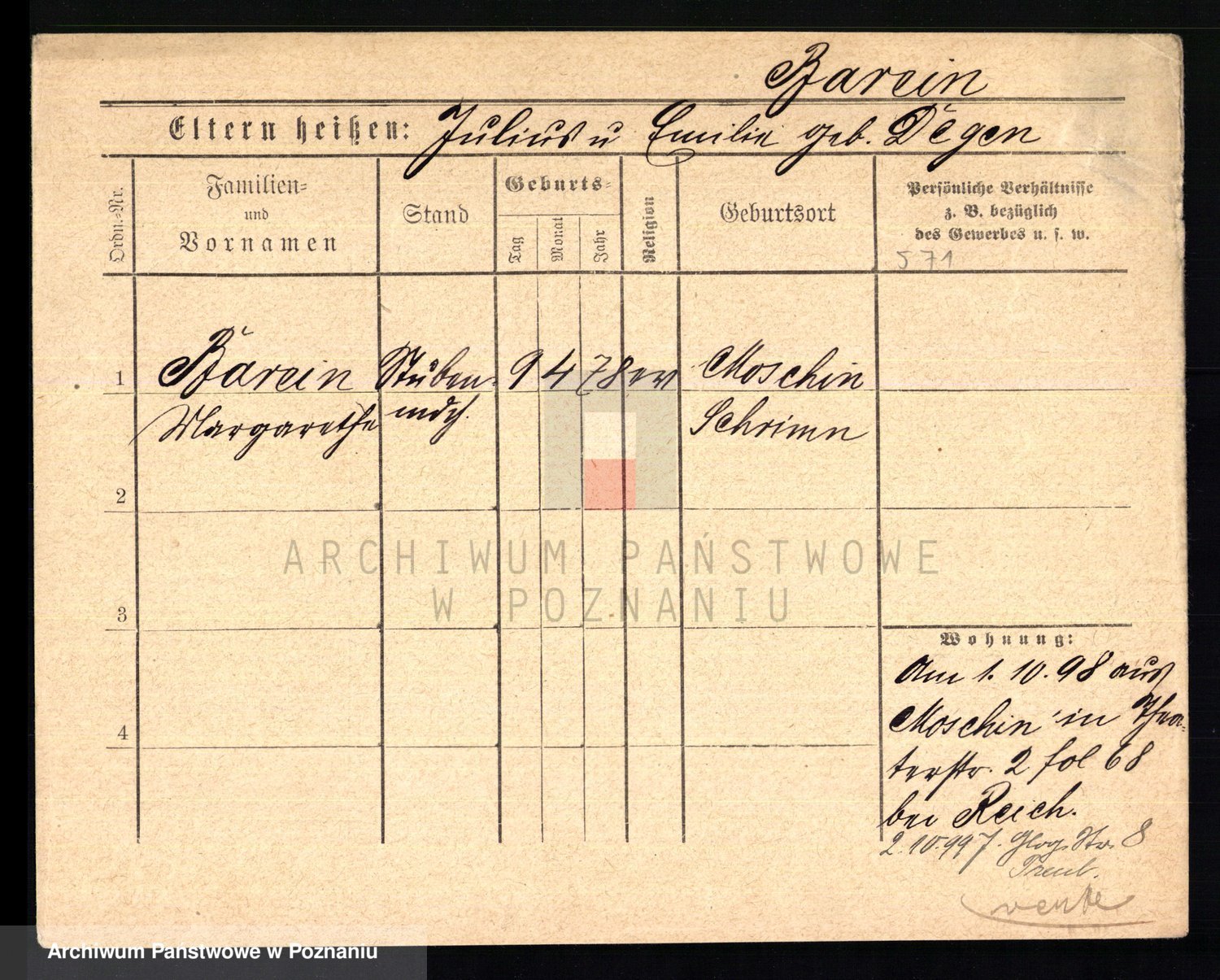 Podgląd karty osobowej dostępny jest po kliknięciu na nazwisko lub ikonkę karty. Można dokonywać powiększenia (ikony na górze) lub przechodzić między kolejnymi skanami (strzałki po bokach).
