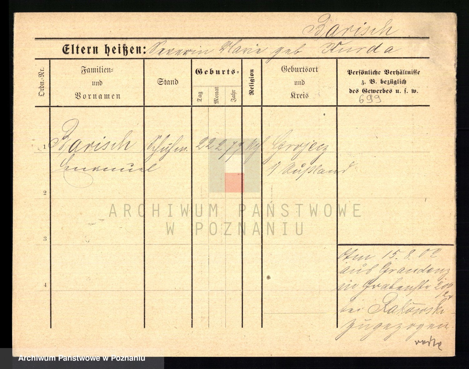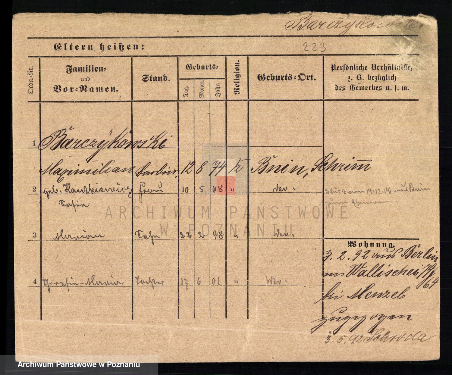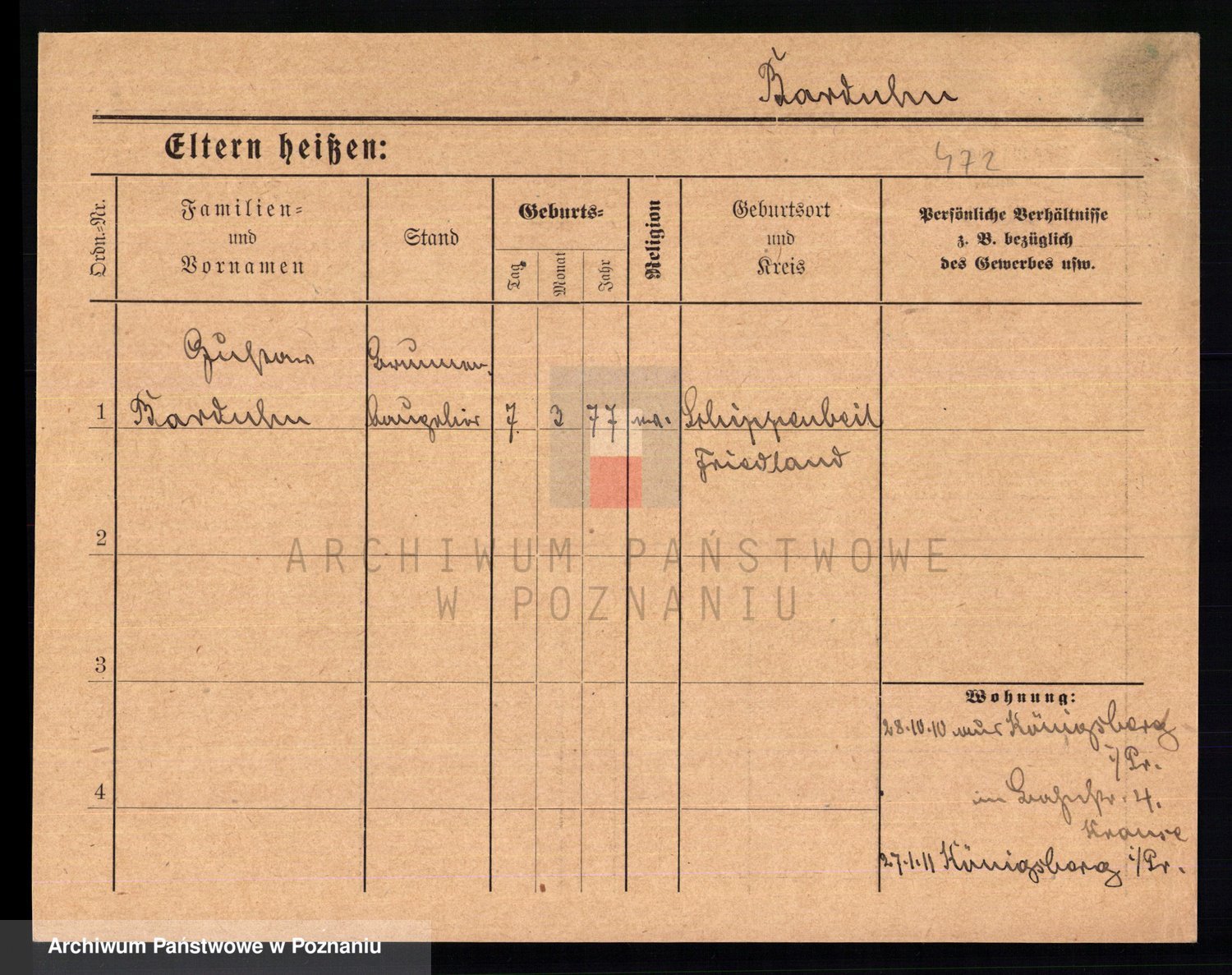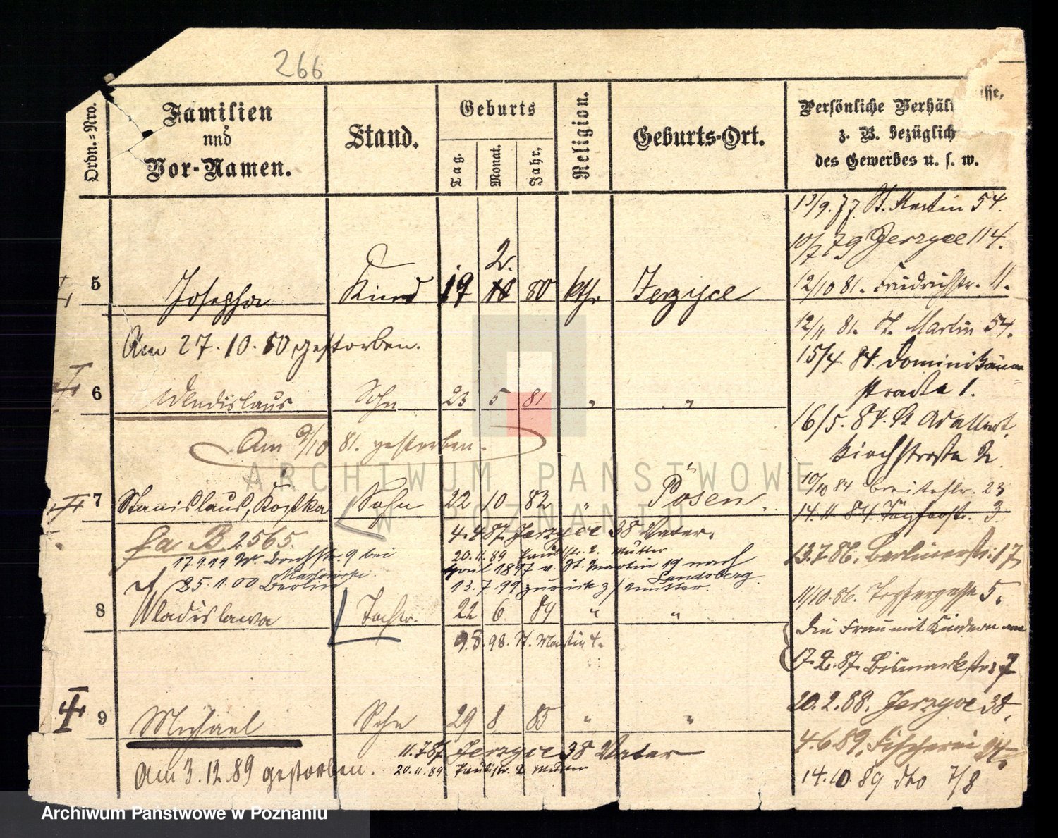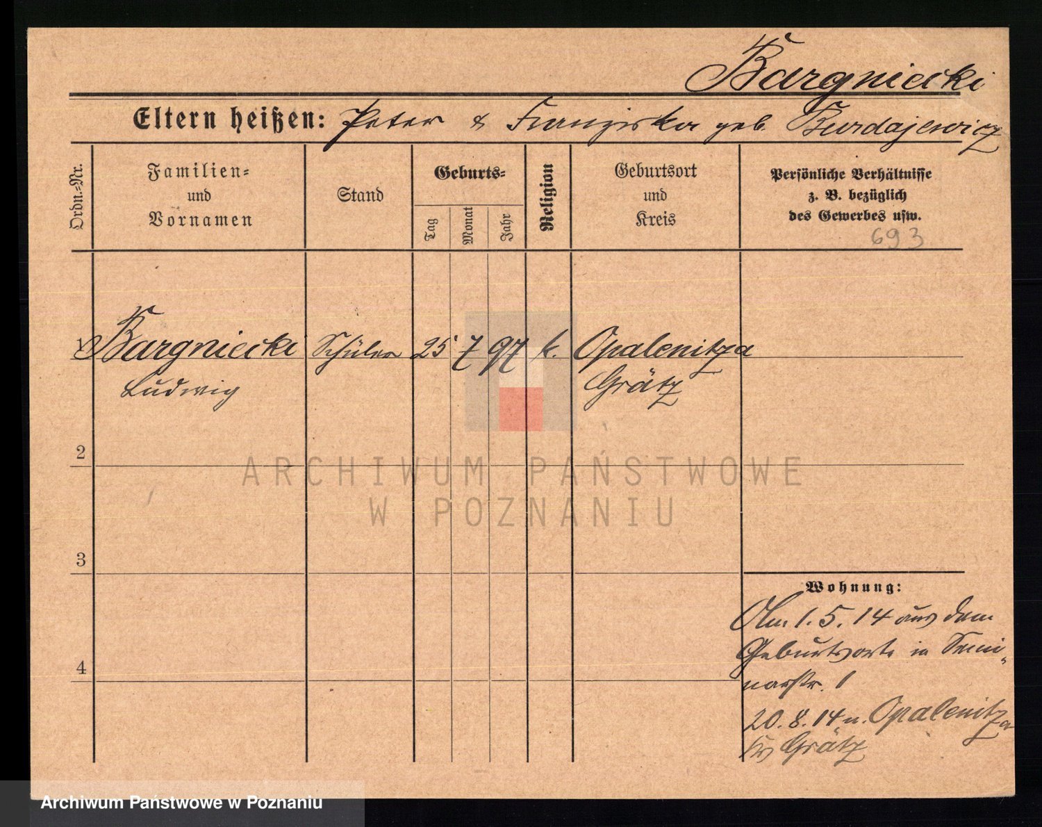 Podgląd karty osobowej dostępny jest po kliknięciu na nazwisko lub ikonkę karty. Można dokonywać powiększenia (ikony na górze) lub przechodzić między kolejnymi skanami (strzałki po bokach).