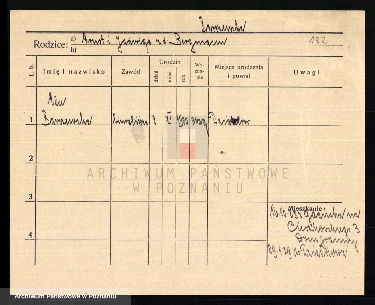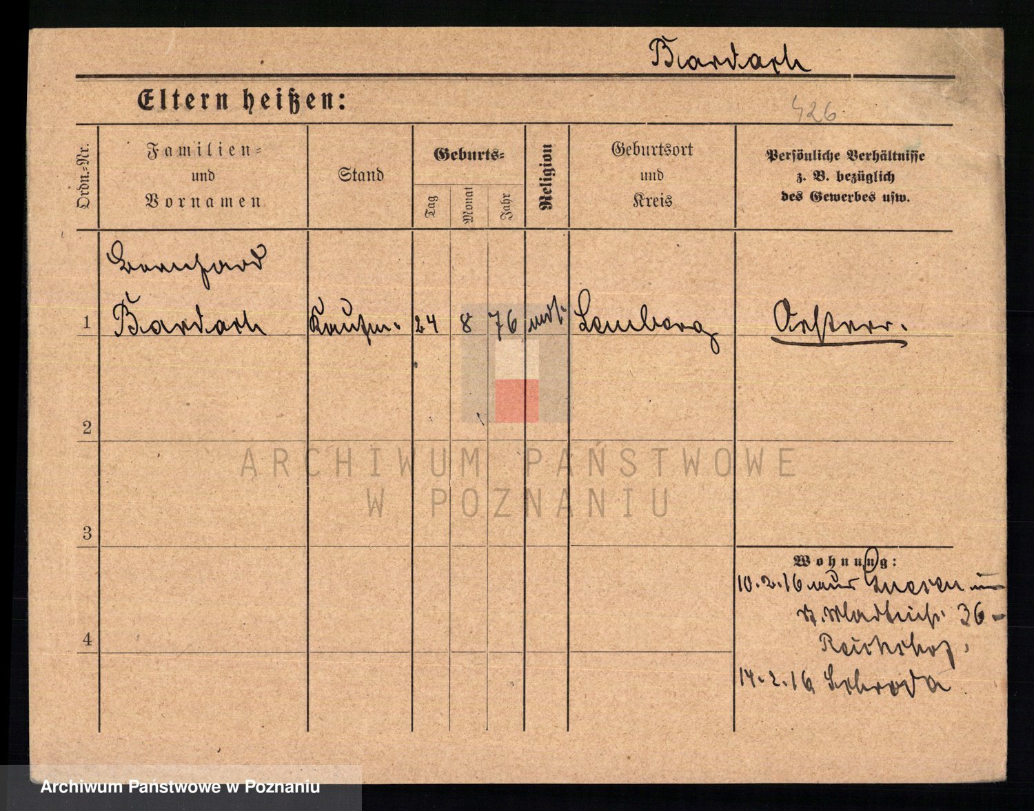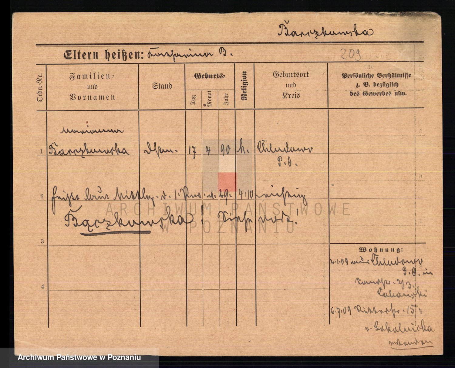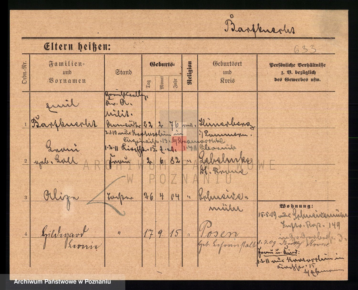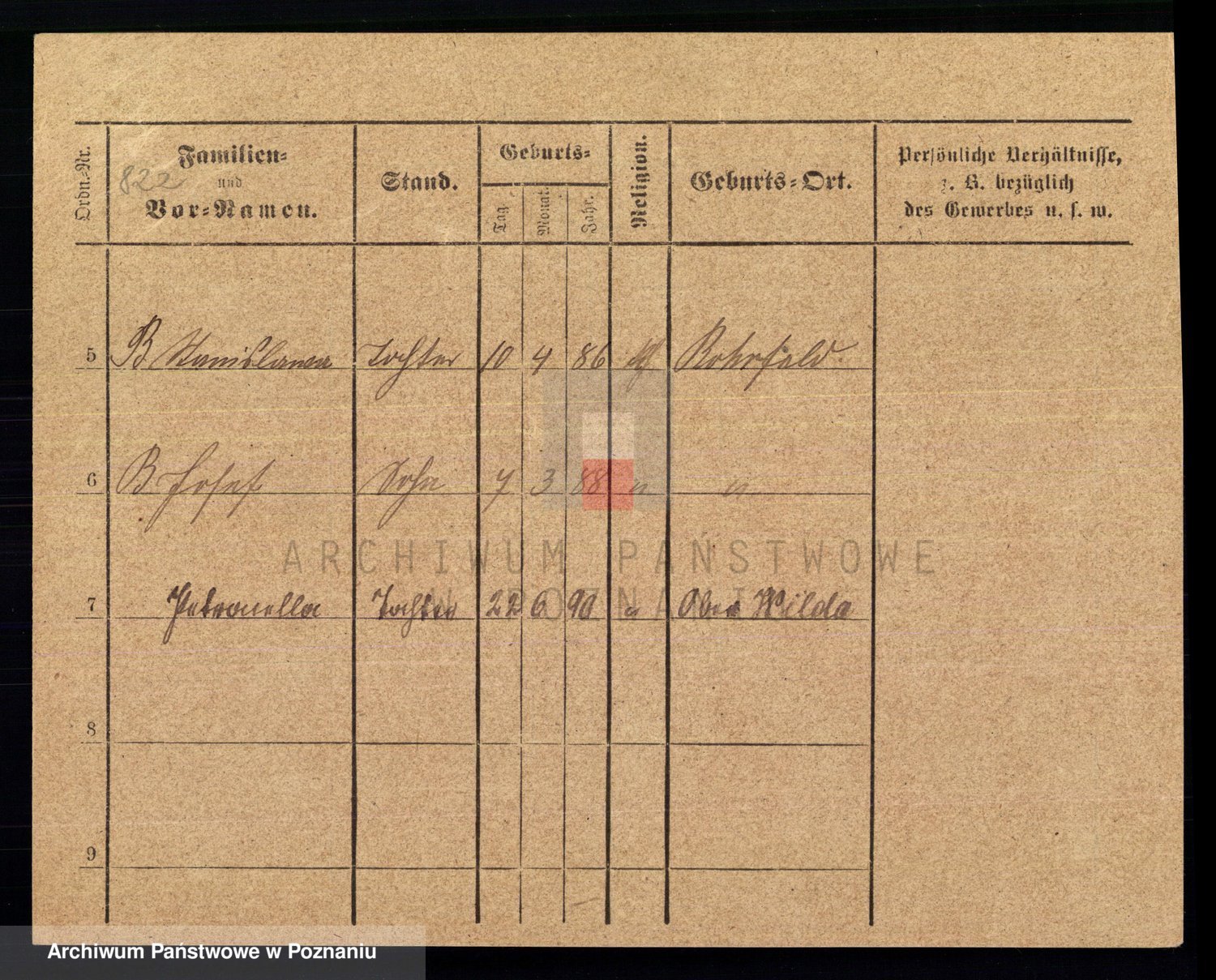 Podgląd karty osobowej dostępny jest po kliknięciu na nazwisko lub ikonkę karty. Można dokonywać powiększenia (ikony na górze) lub przechodzić między kolejnymi skanami (strzałki po bokach).