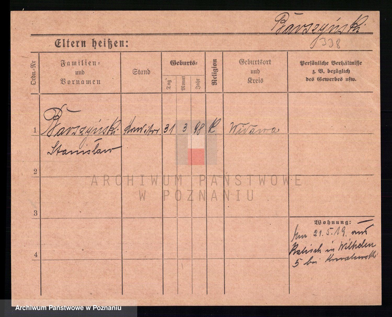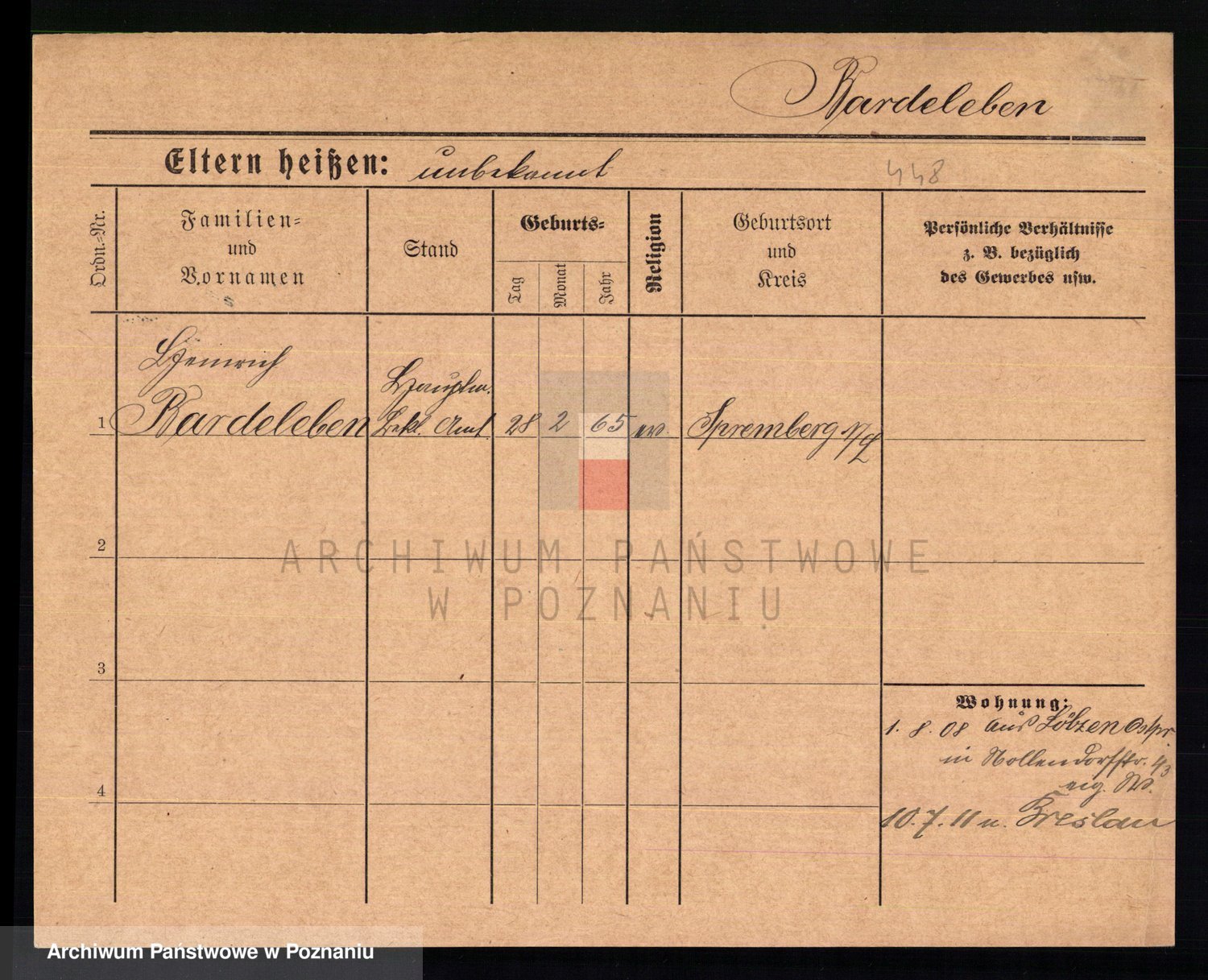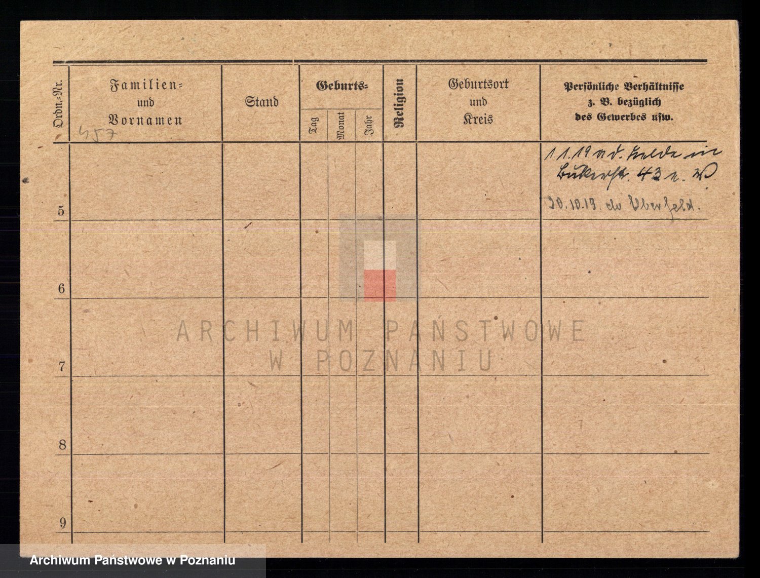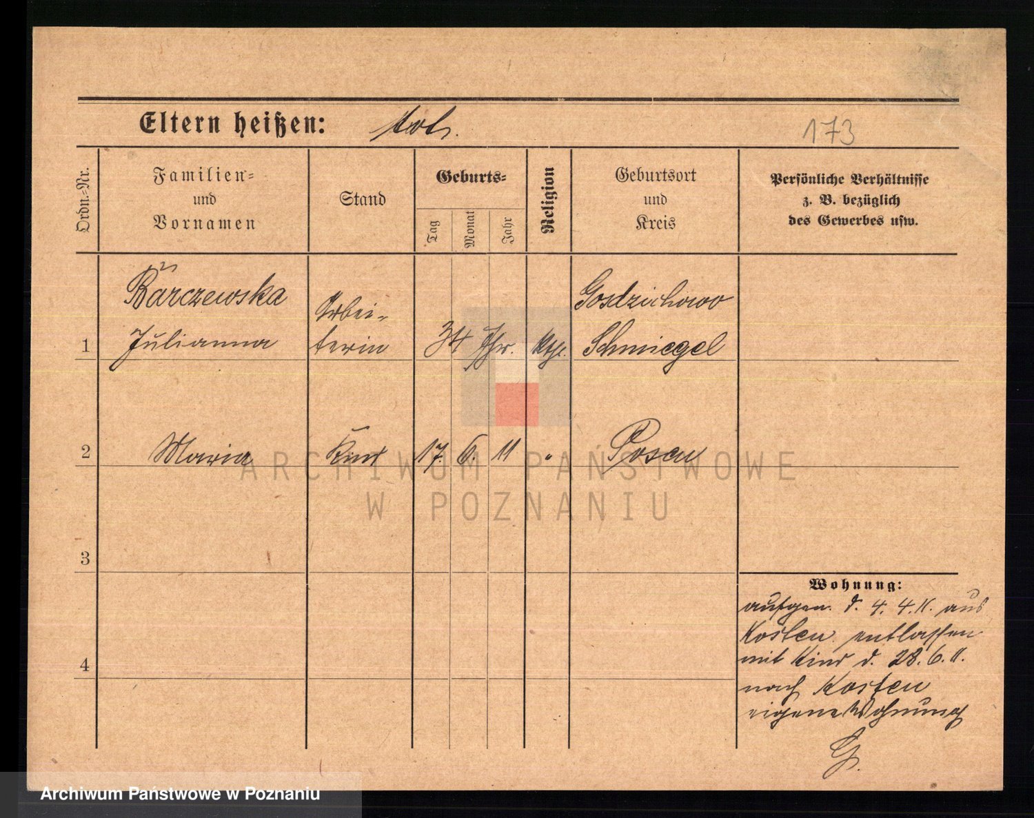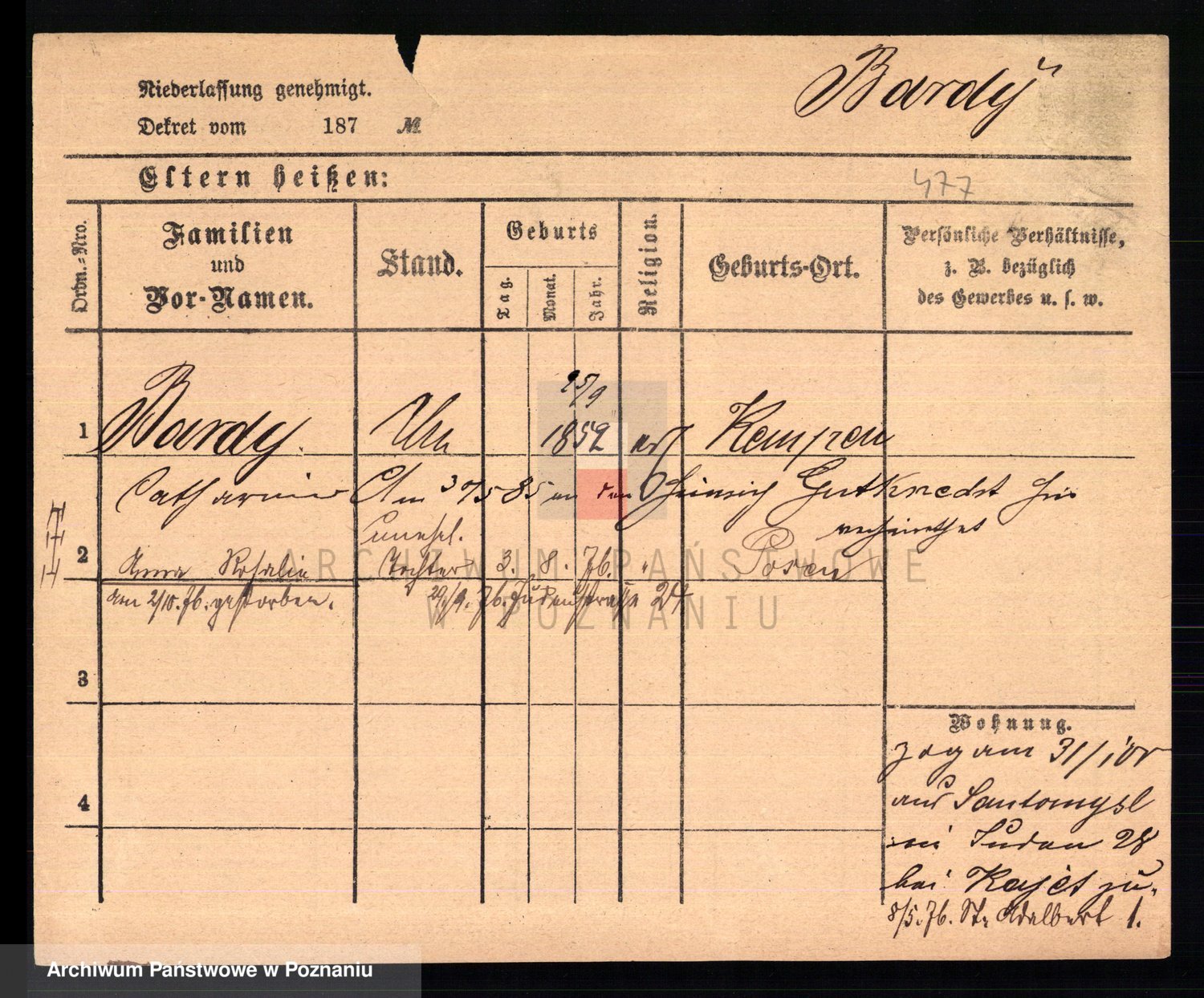 Podgląd karty osobowej dostępny jest po kliknięciu na nazwisko lub ikonkę karty. Można dokonywać powiększenia (ikony na górze) lub przechodzić między kolejnymi skanami (strzałki po bokach).