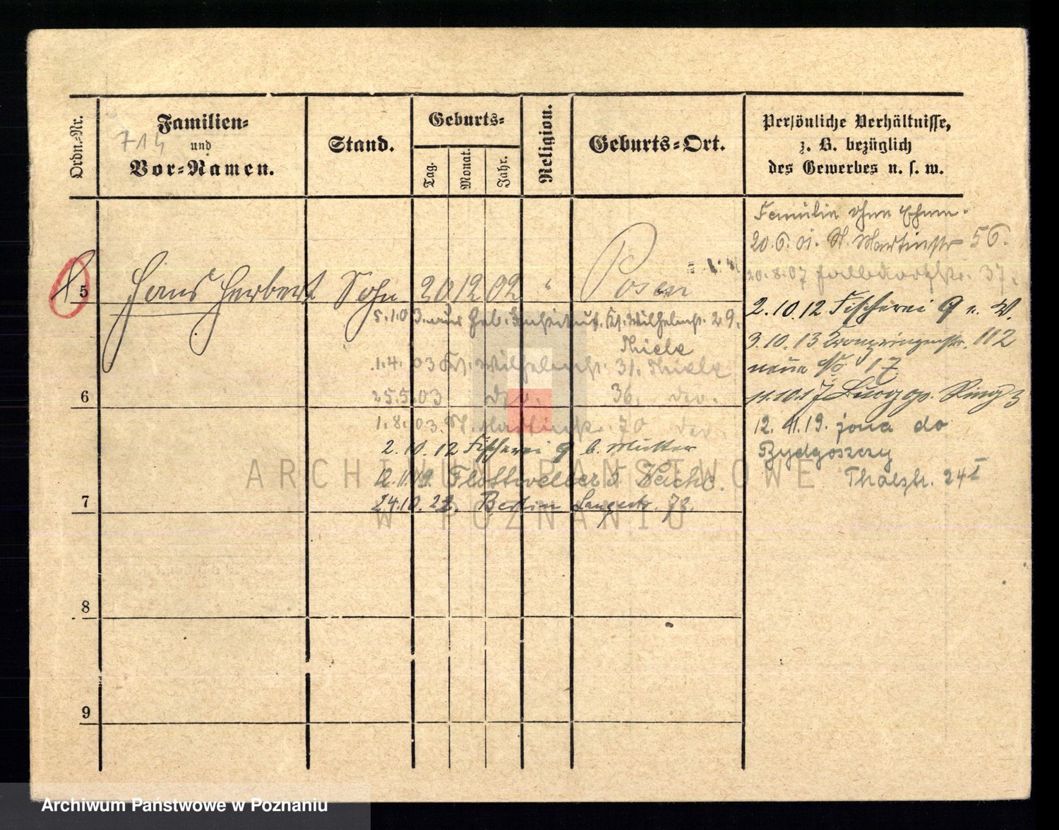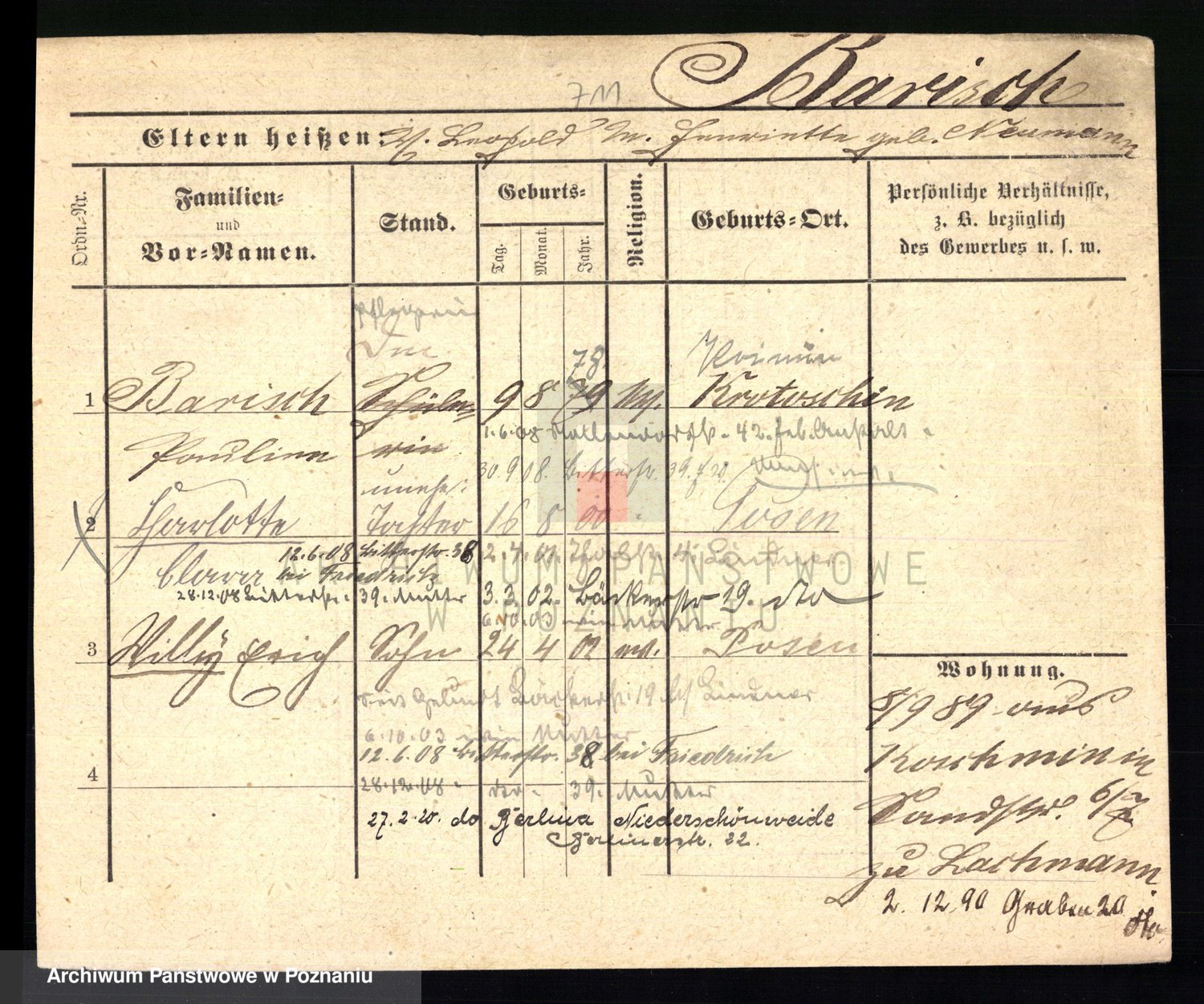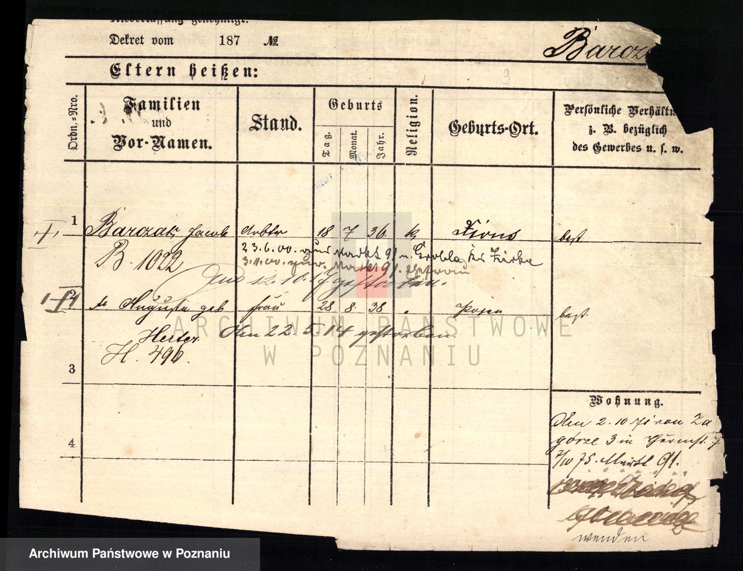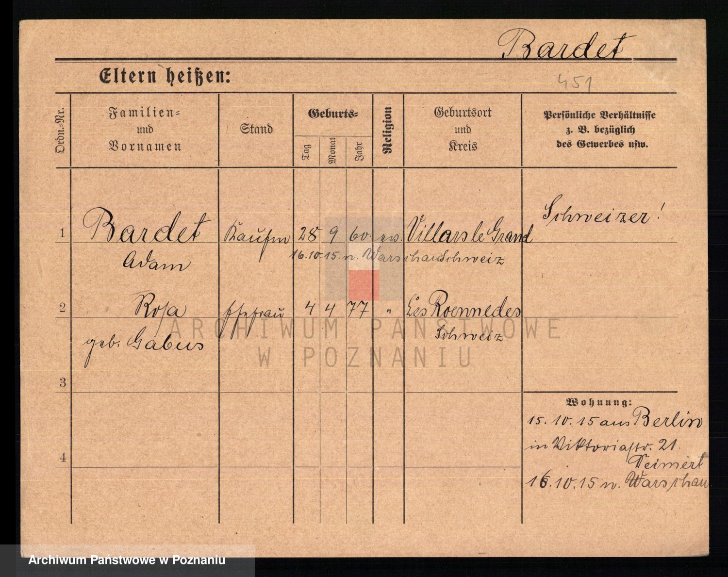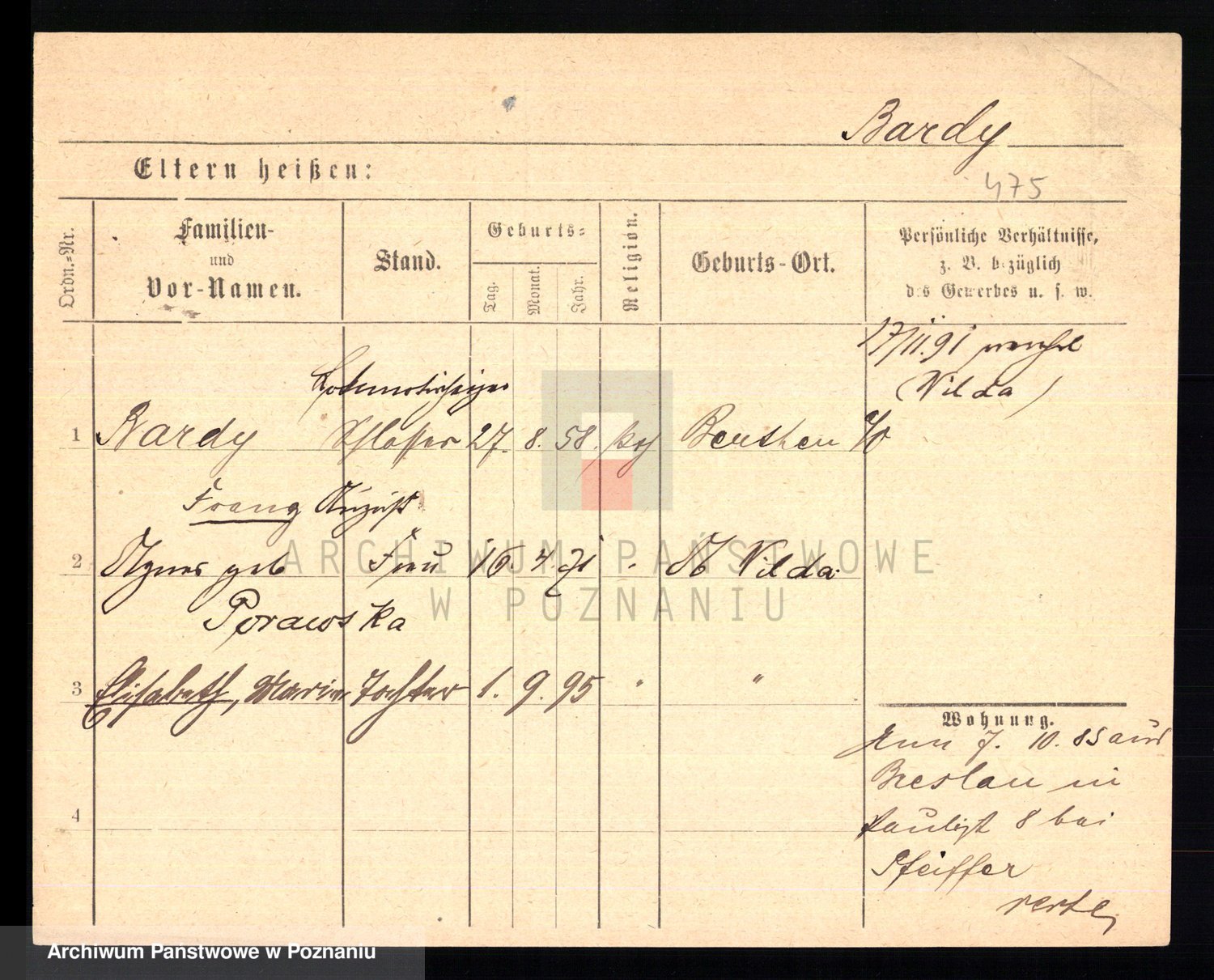 Podgląd karty osobowej dostępny jest po kliknięciu na nazwisko lub ikonkę karty. Można dokonywać powiększenia (ikony na górze) lub przechodzić między kolejnymi skanami (strzałki po bokach).
