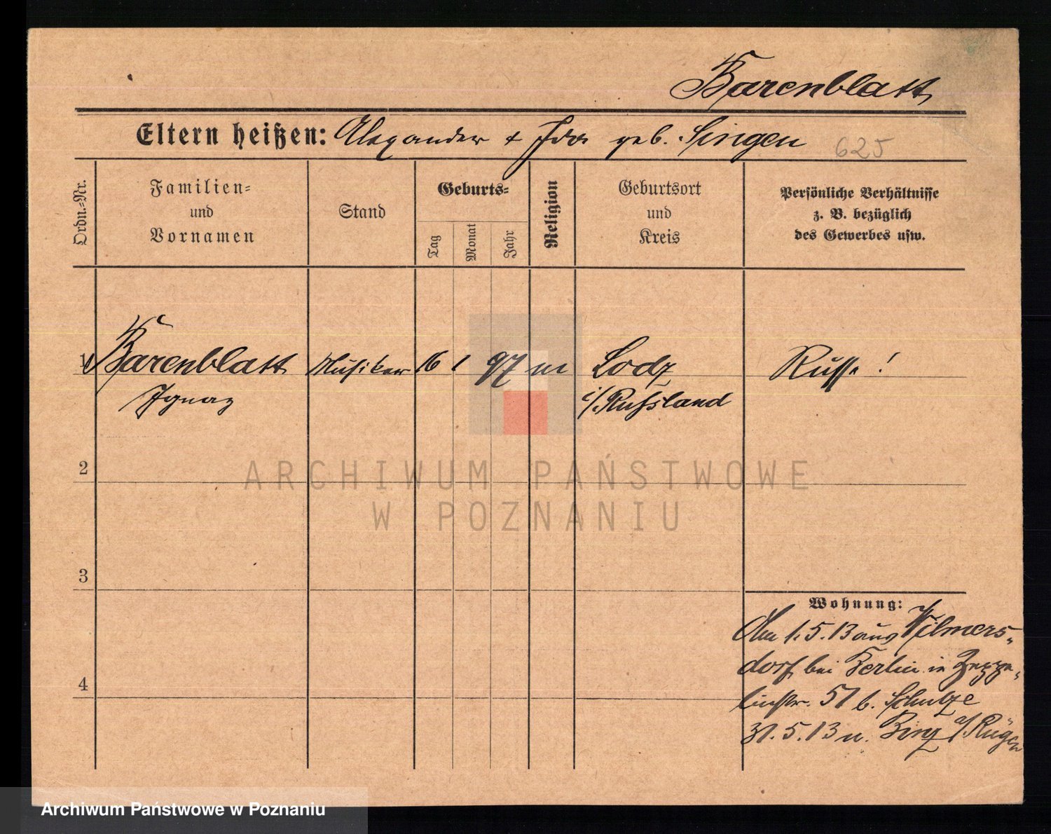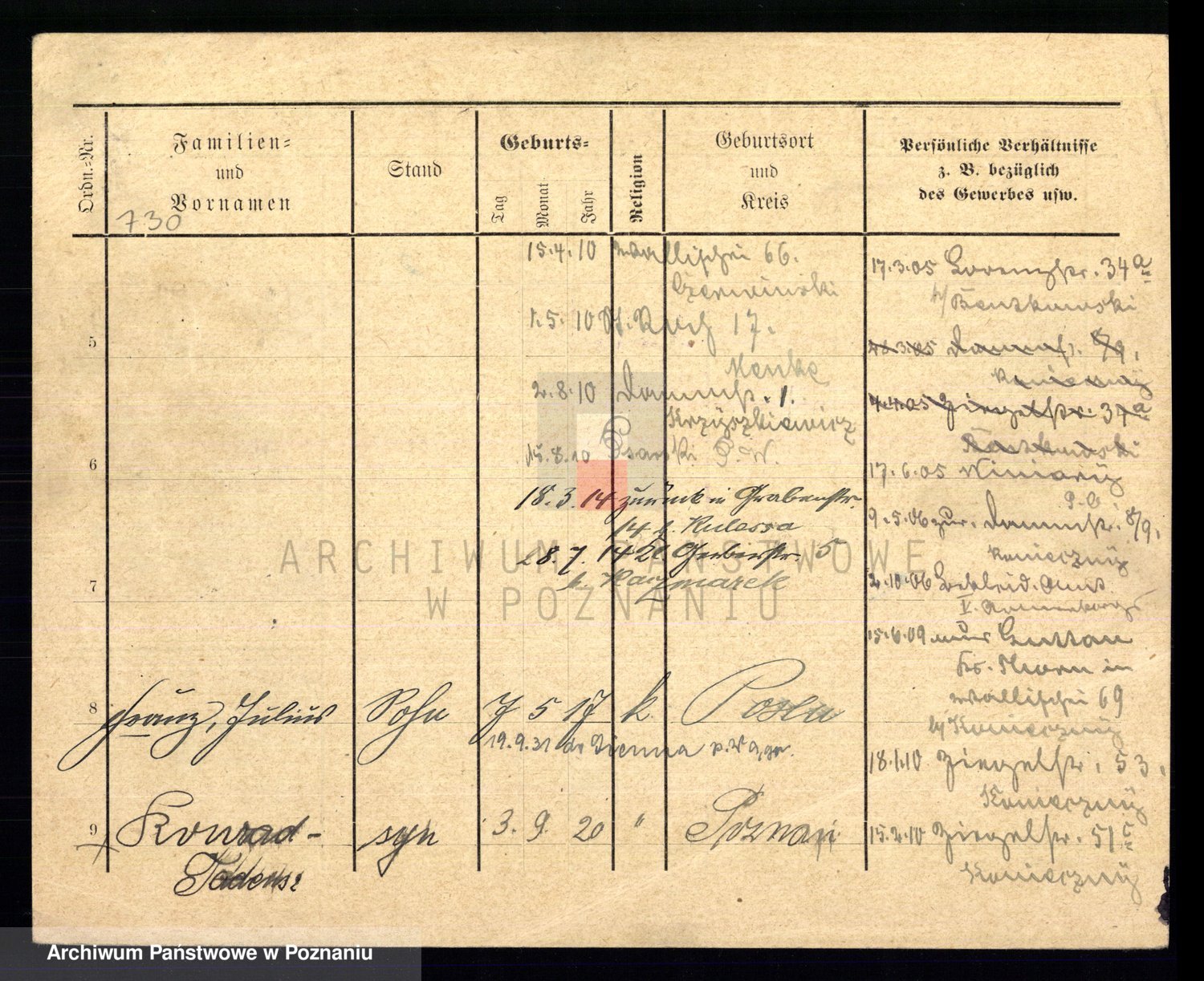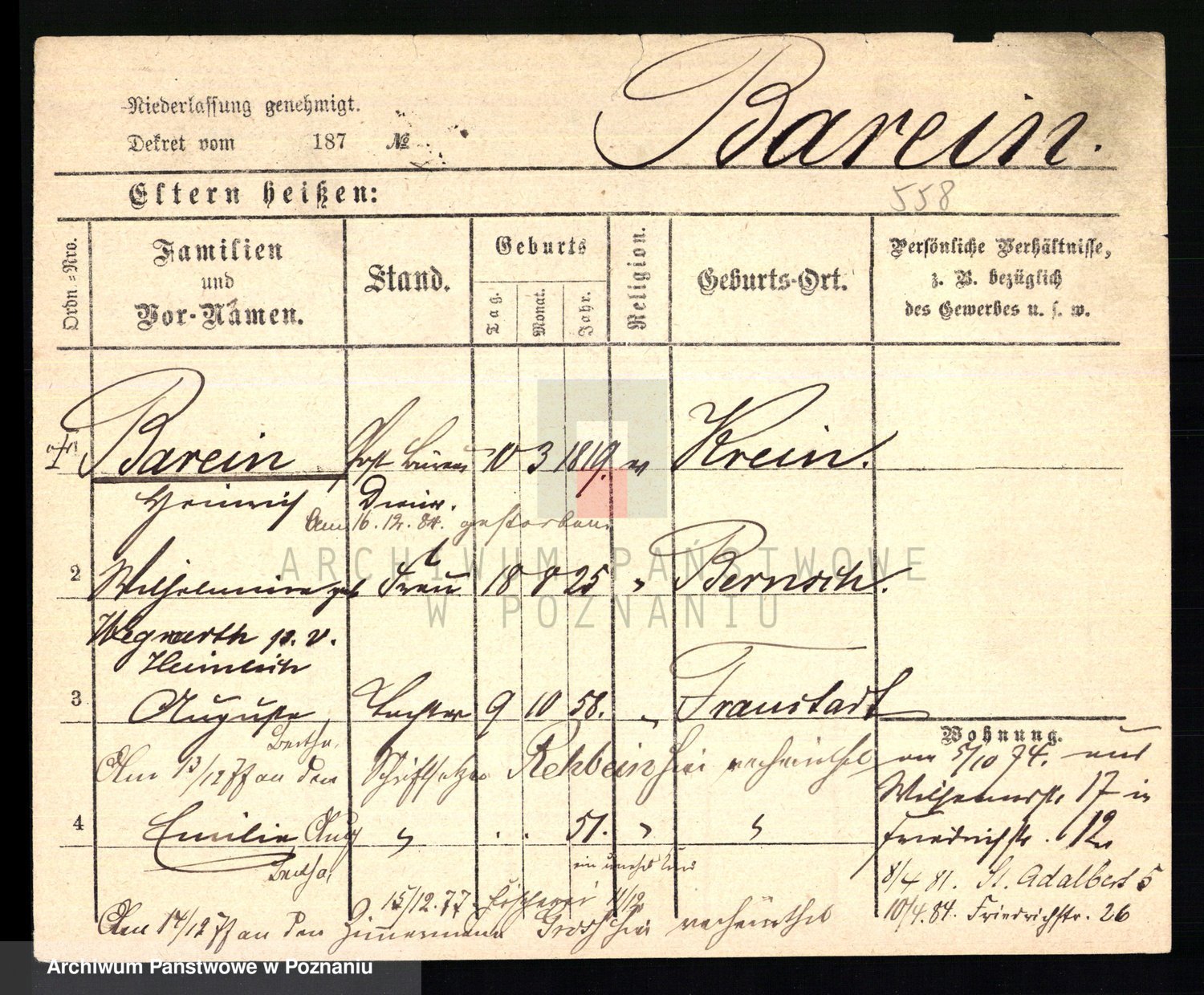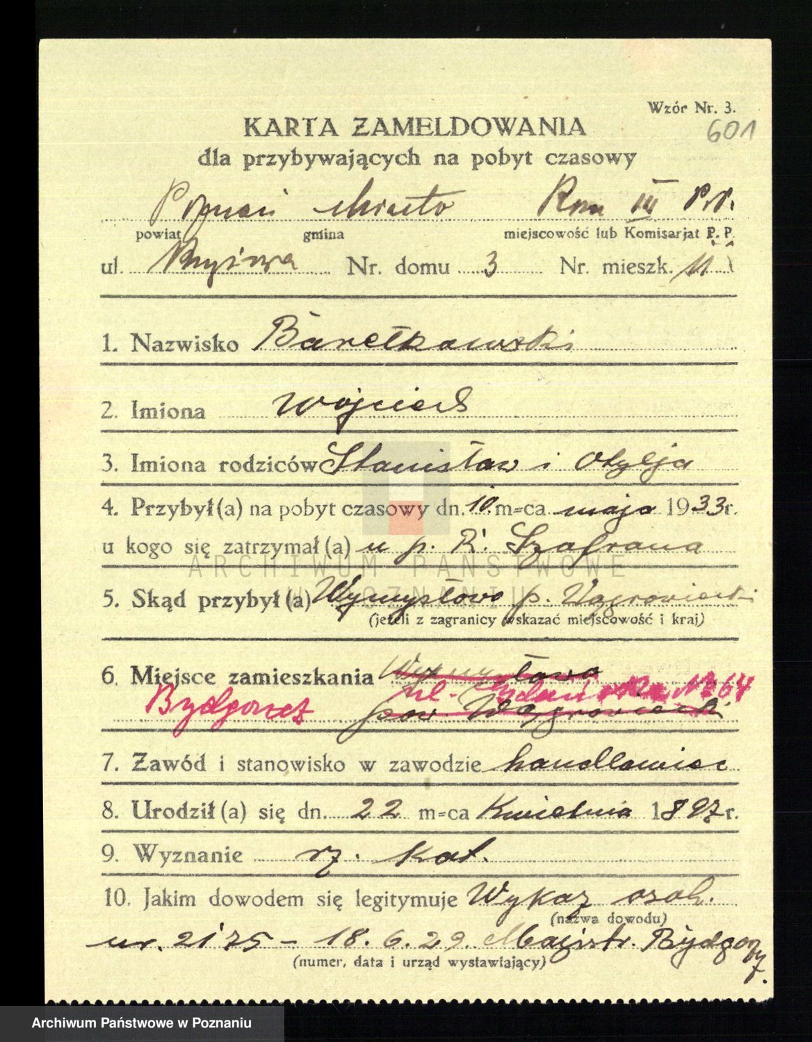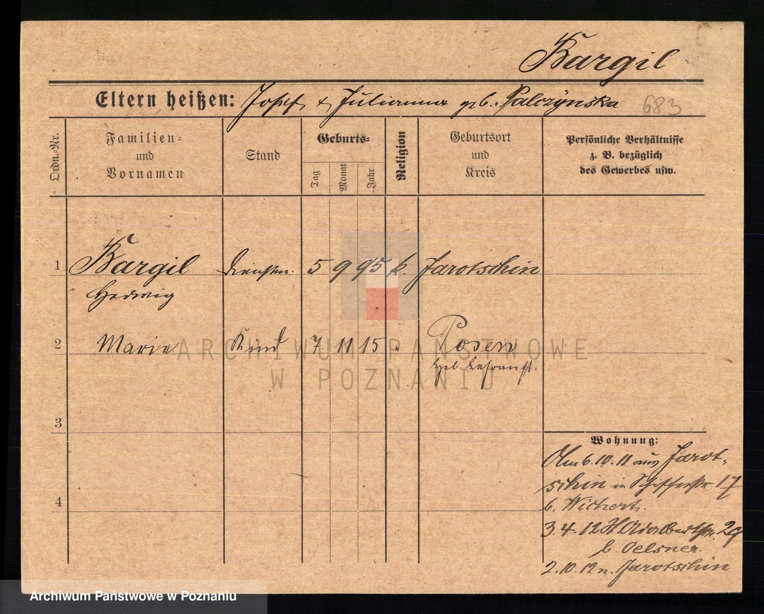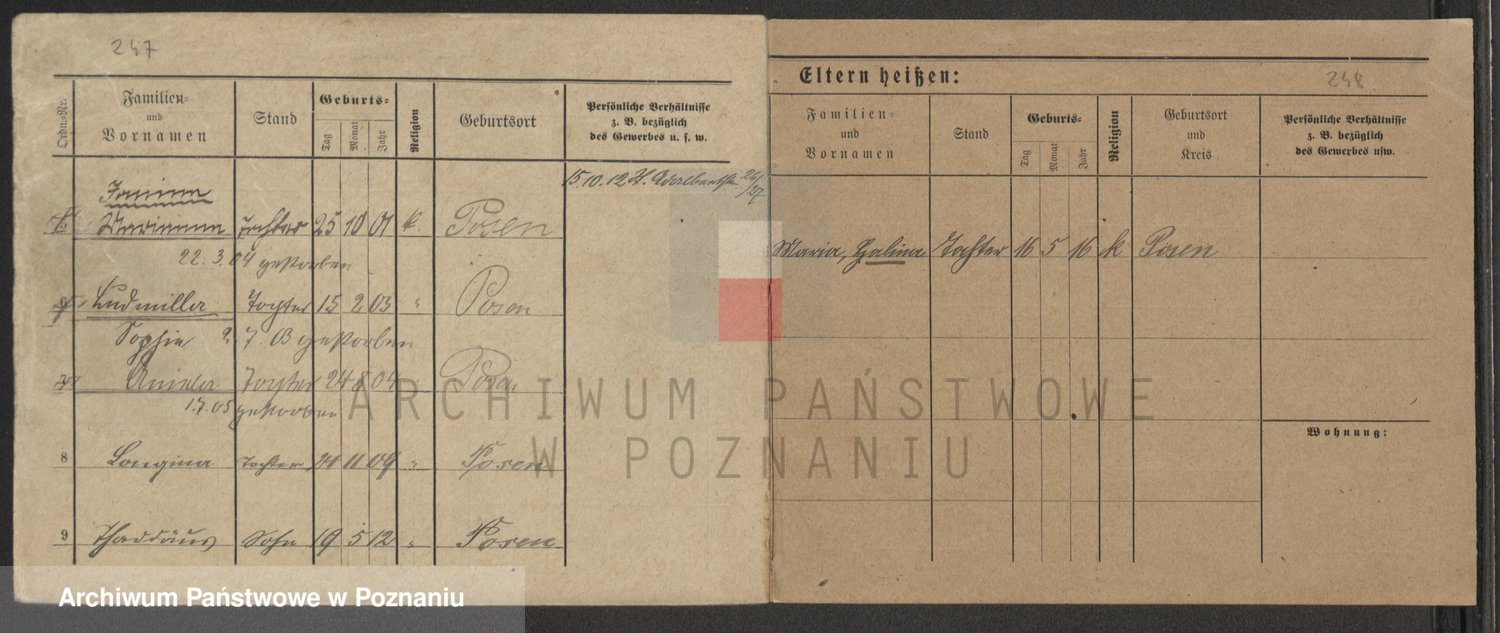 Podgląd karty osobowej dostępny jest po kliknięciu na nazwisko lub ikonkę karty. Można dokonywać powiększenia (ikony na górze) lub przechodzić między kolejnymi skanami (strzałki po bokach).