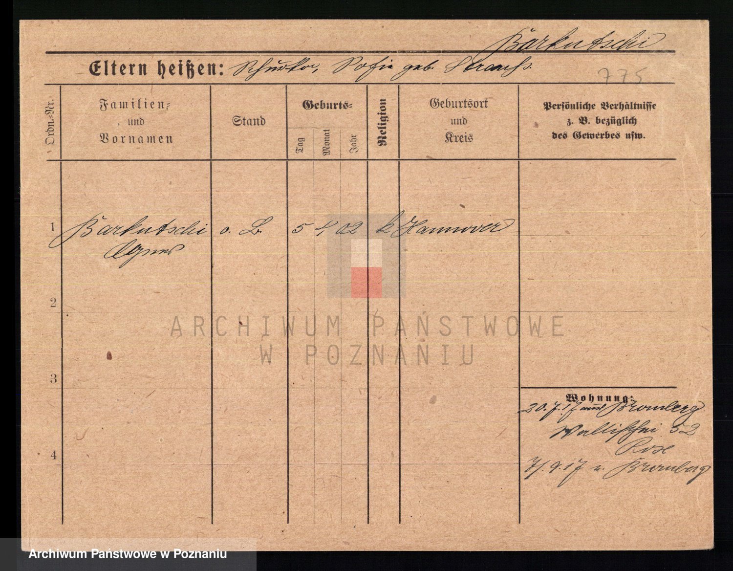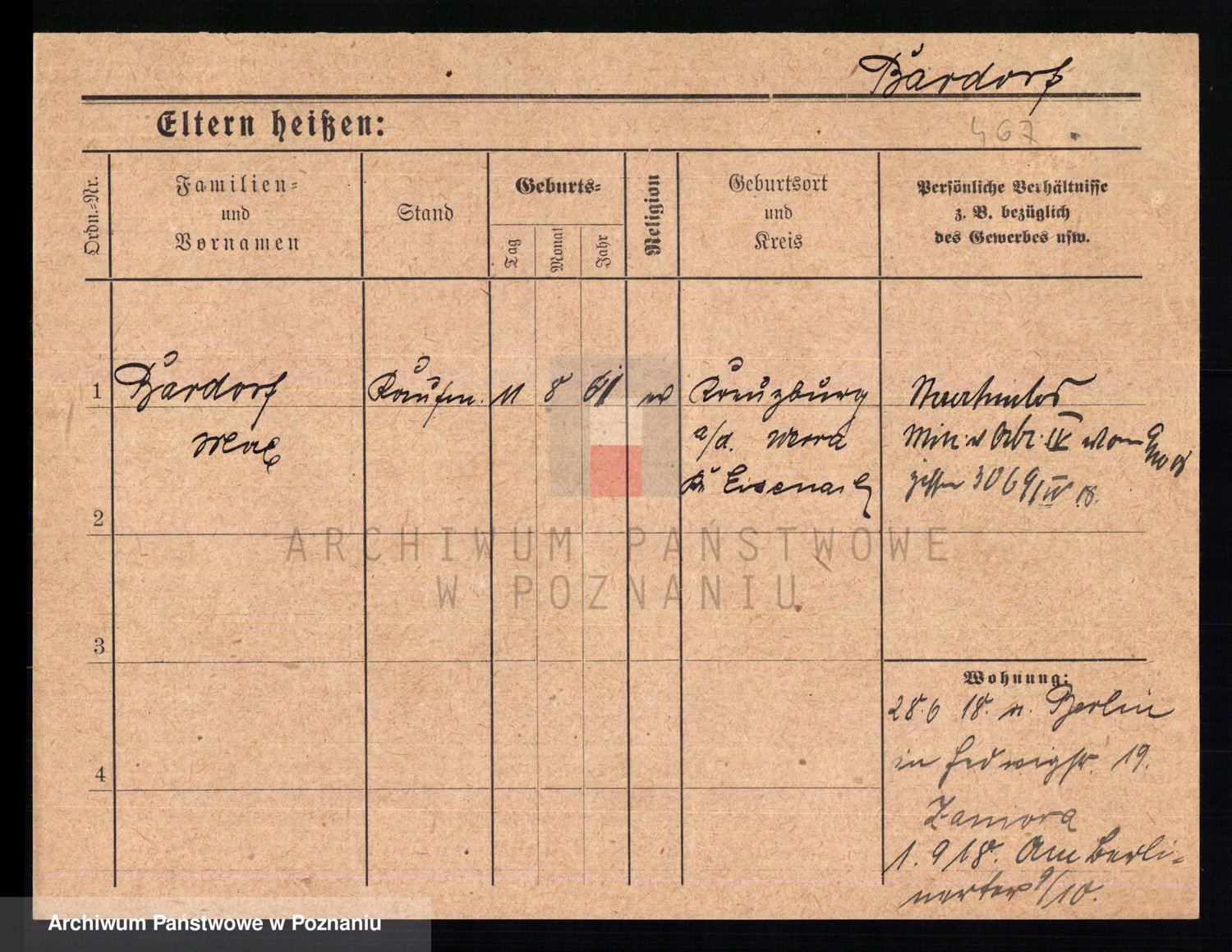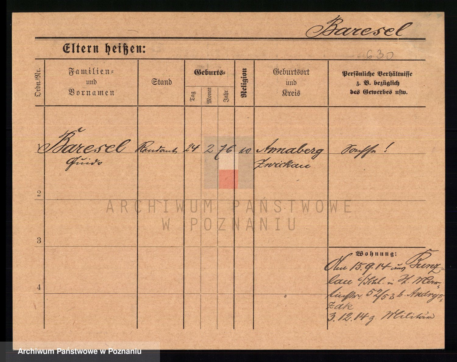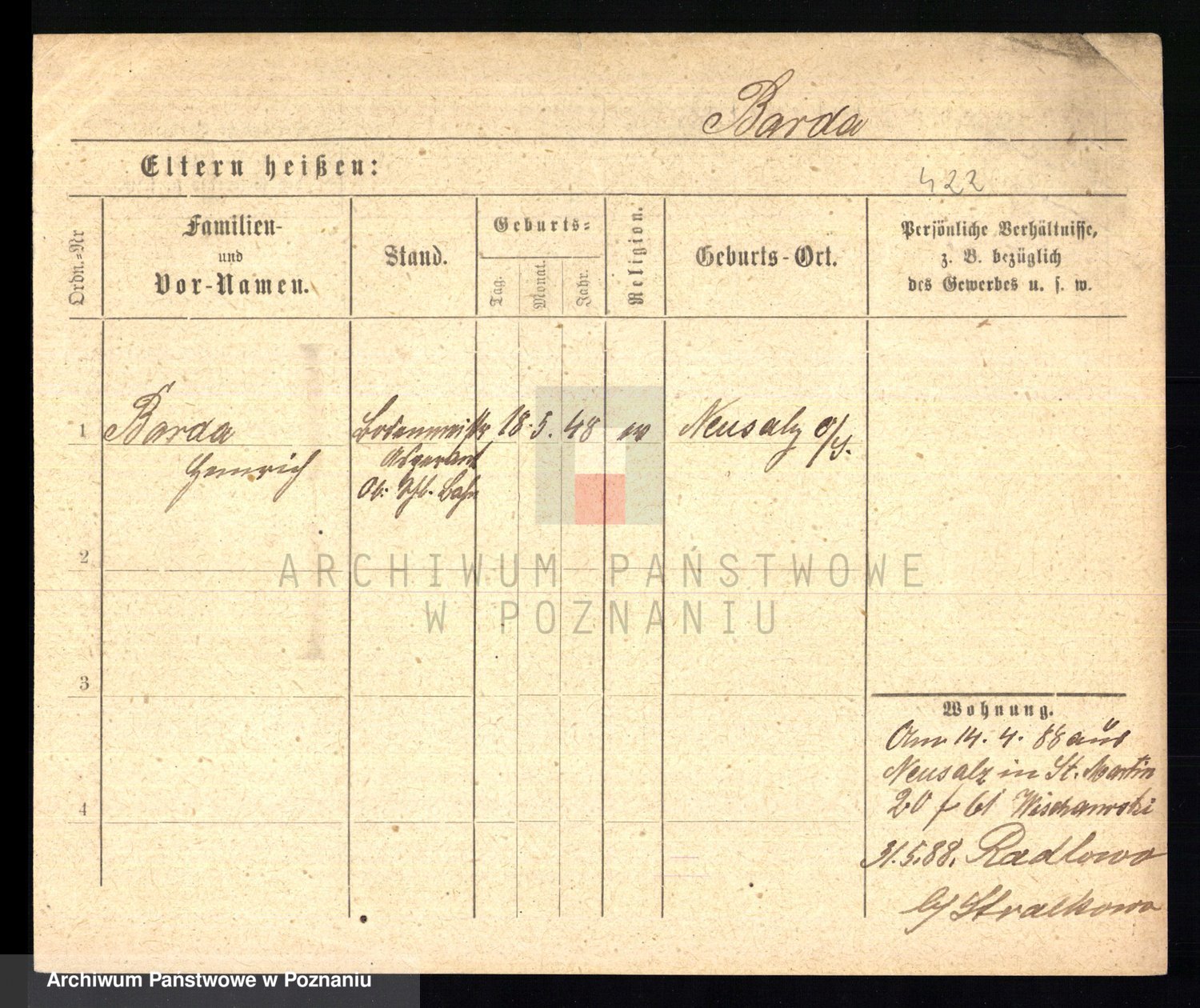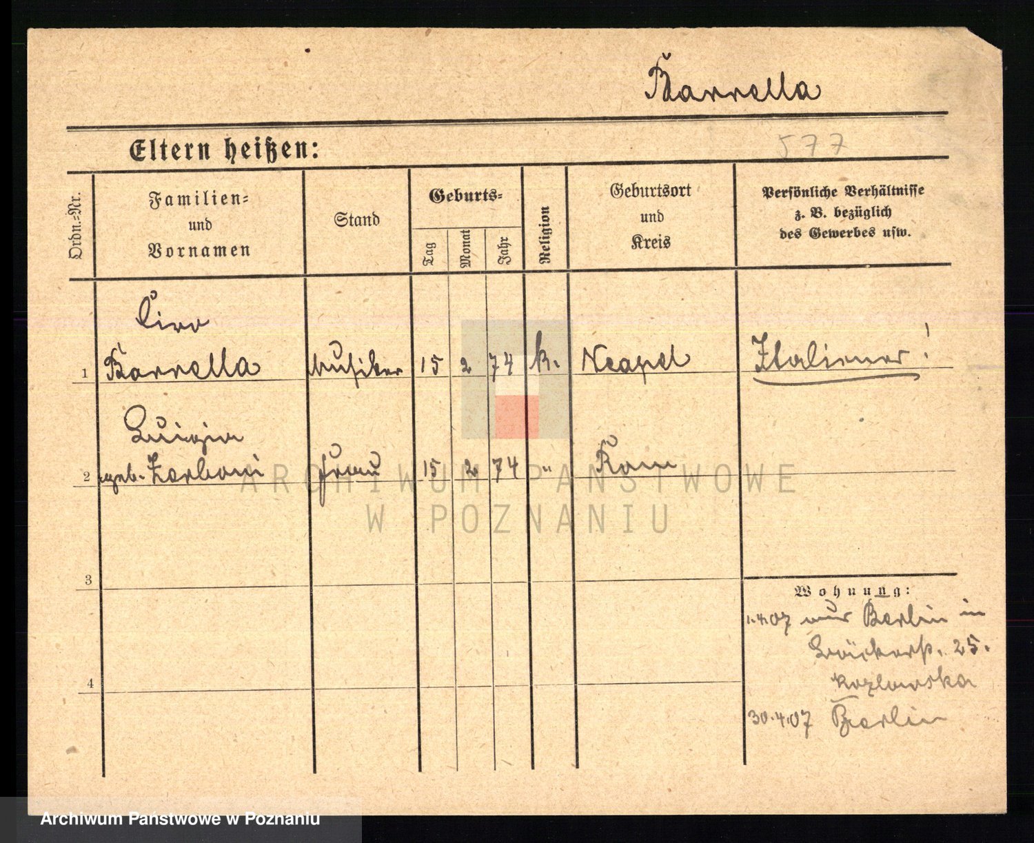 Podgląd karty osobowej dostępny jest po kliknięciu na nazwisko lub ikonkę karty. Można dokonywać powiększenia (ikony na górze) lub przechodzić między kolejnymi skanami (strzałki po bokach).