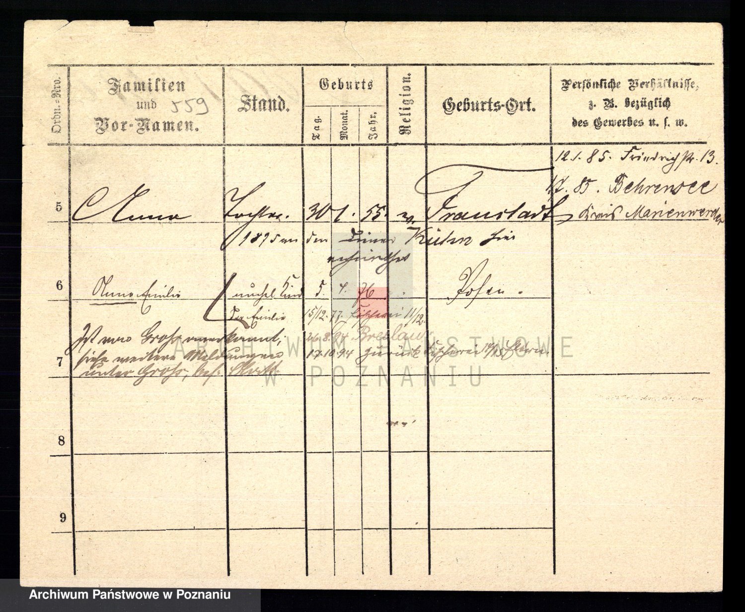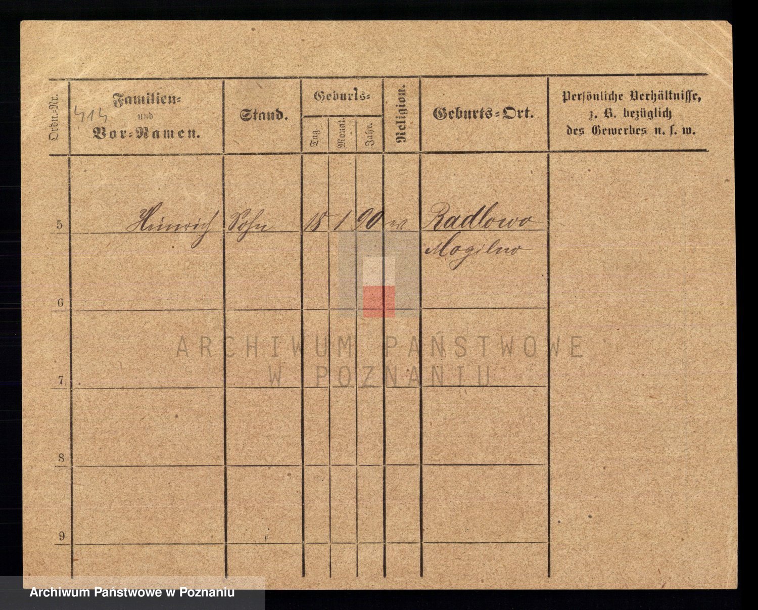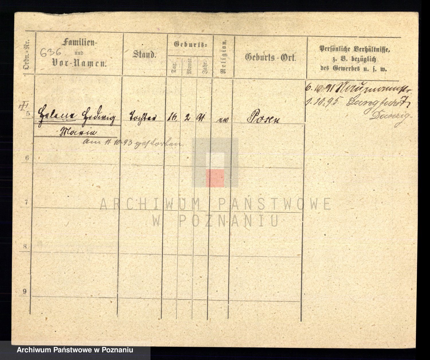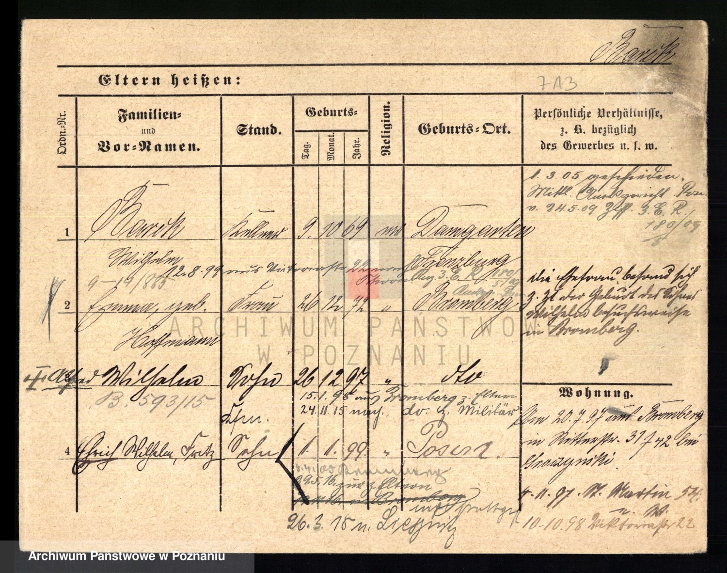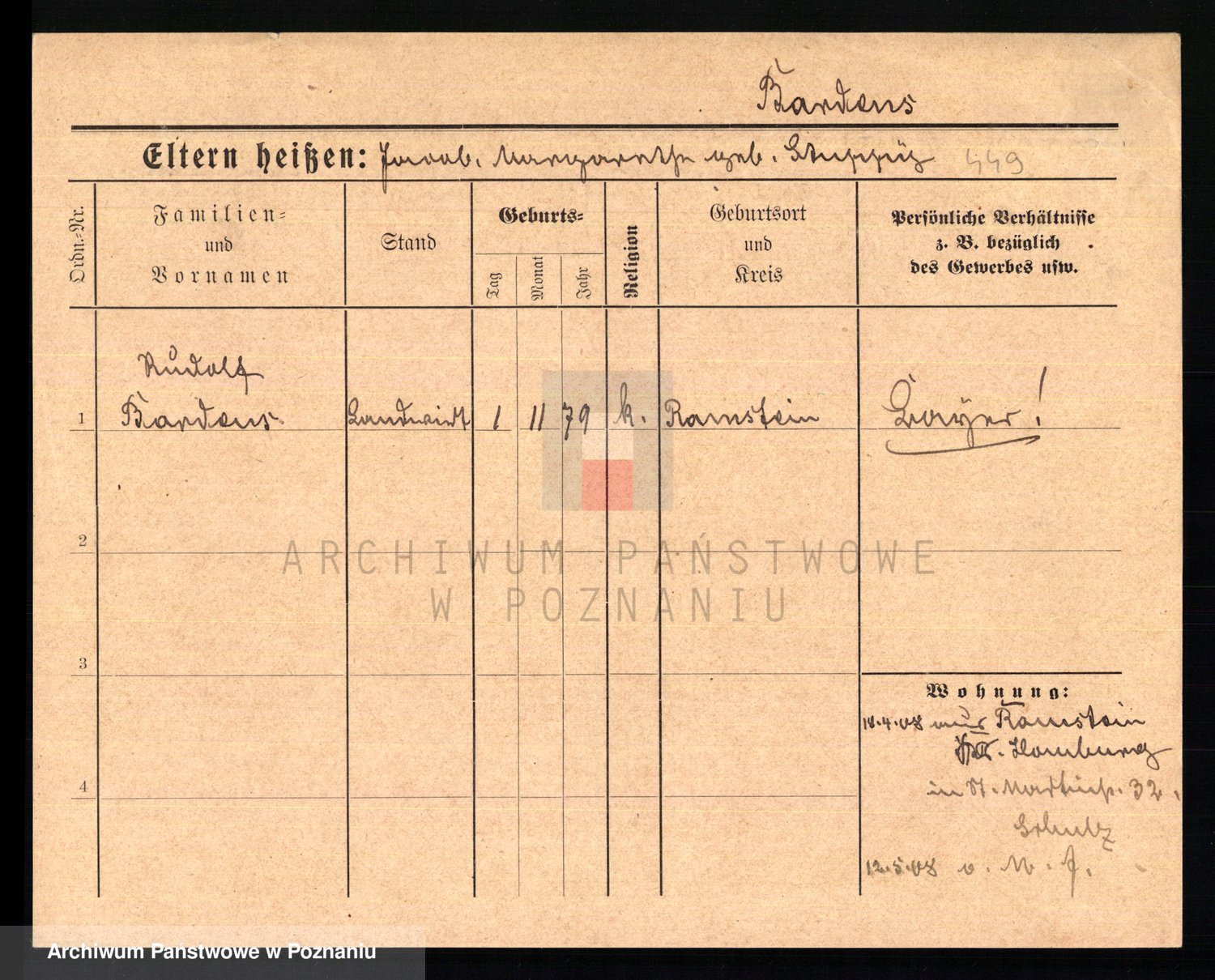 Podgląd karty osobowej dostępny jest po kliknięciu na nazwisko lub ikonkę karty. Można dokonywać powiększenia (ikony na górze) lub przechodzić między kolejnymi skanami (strzałki po bokach).