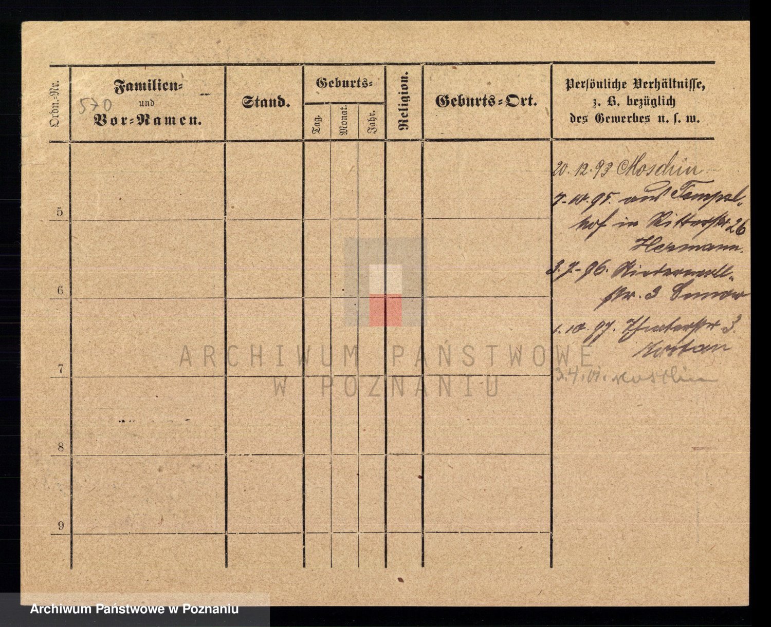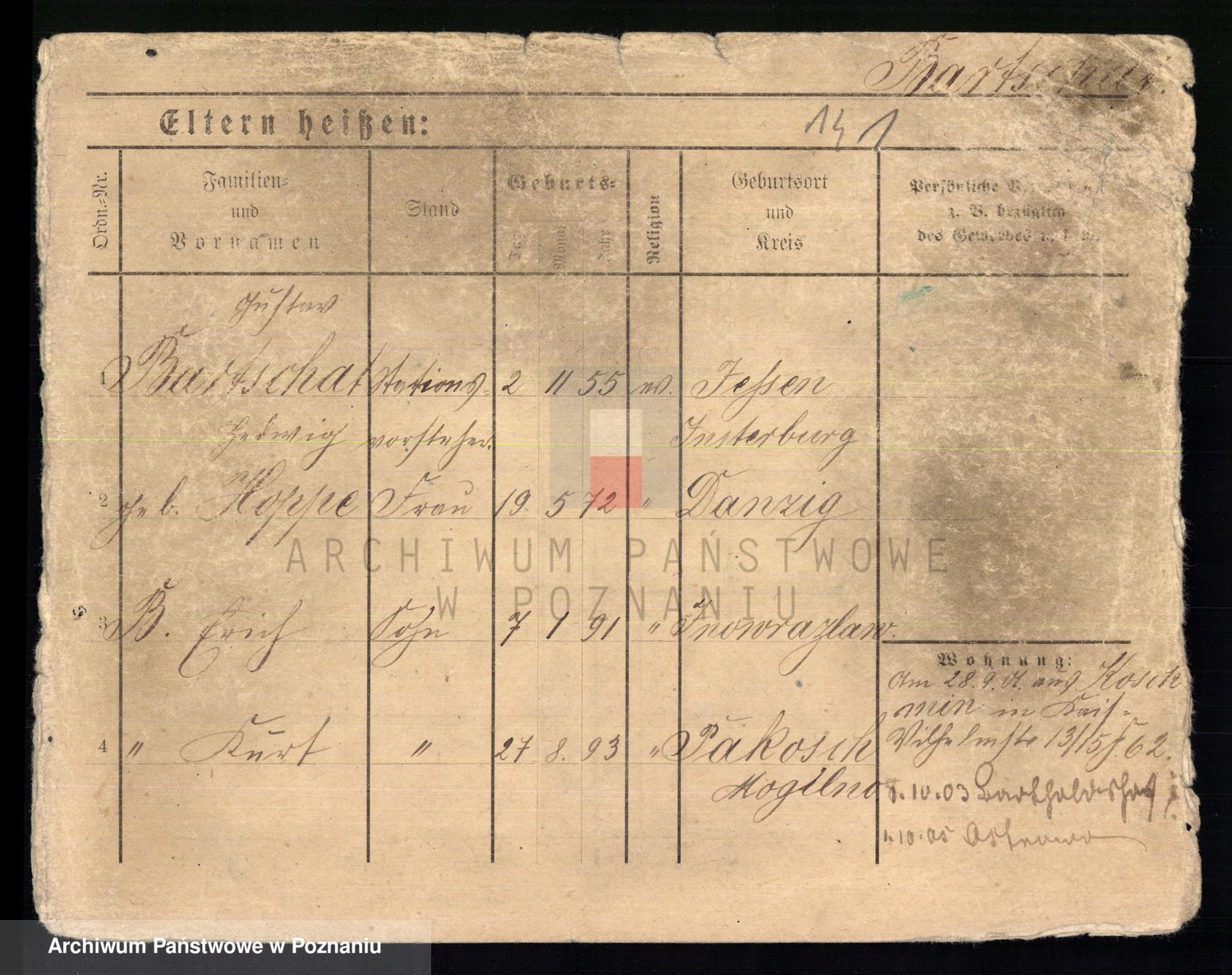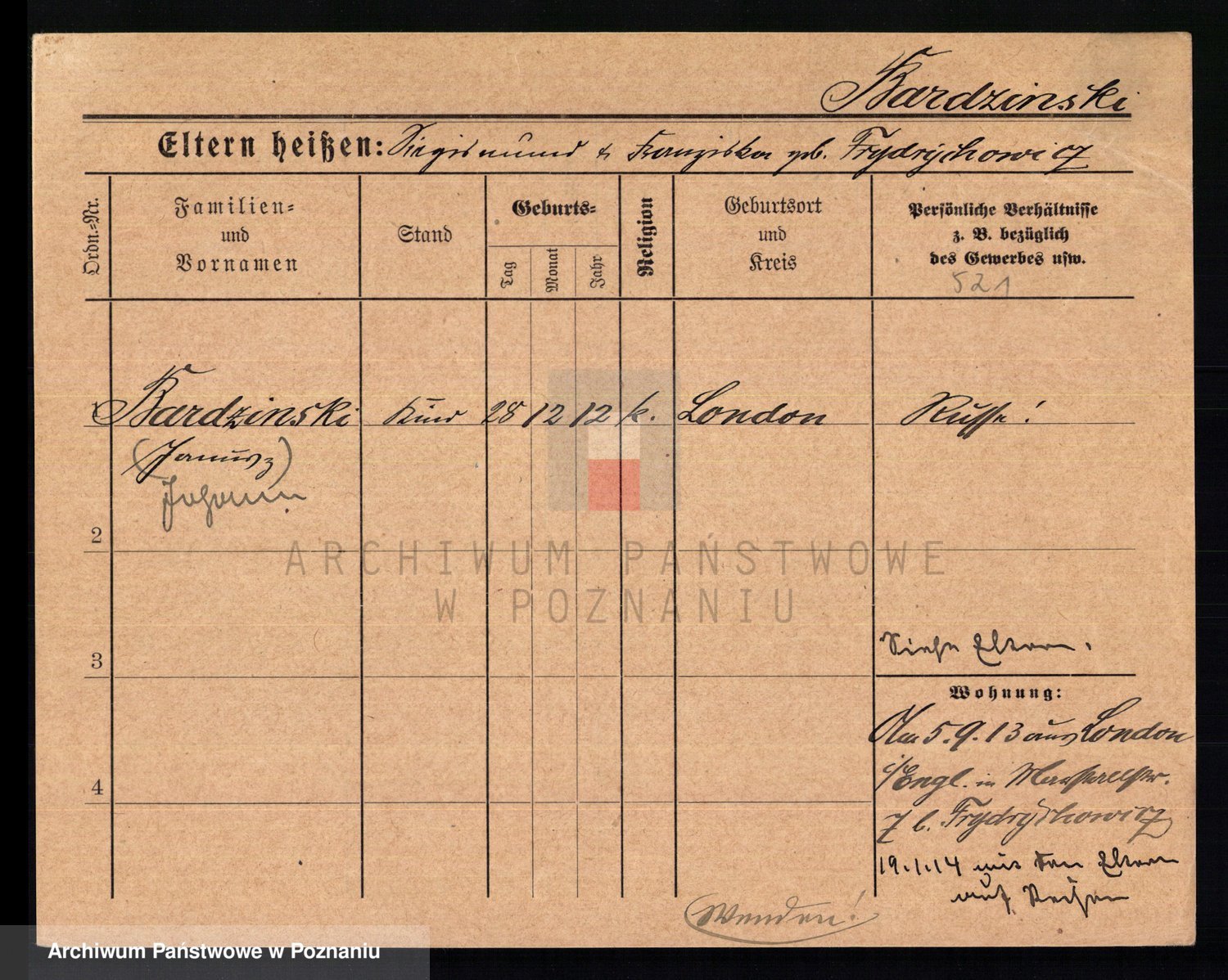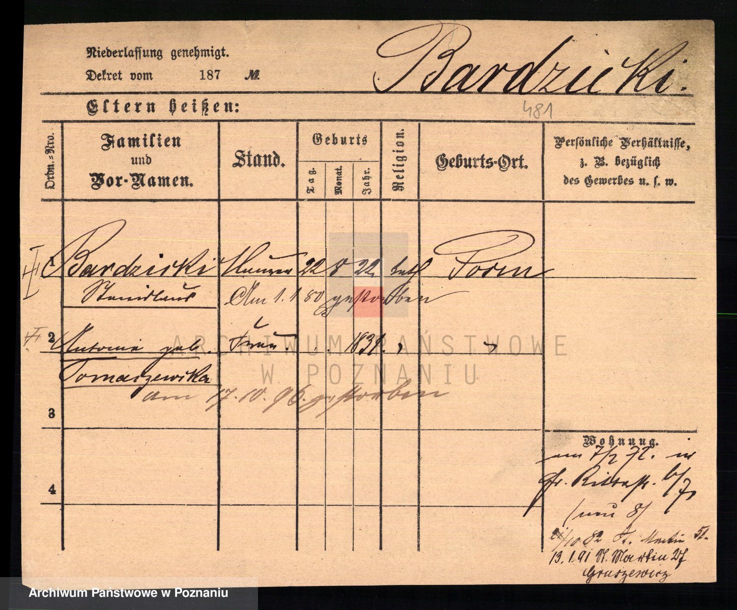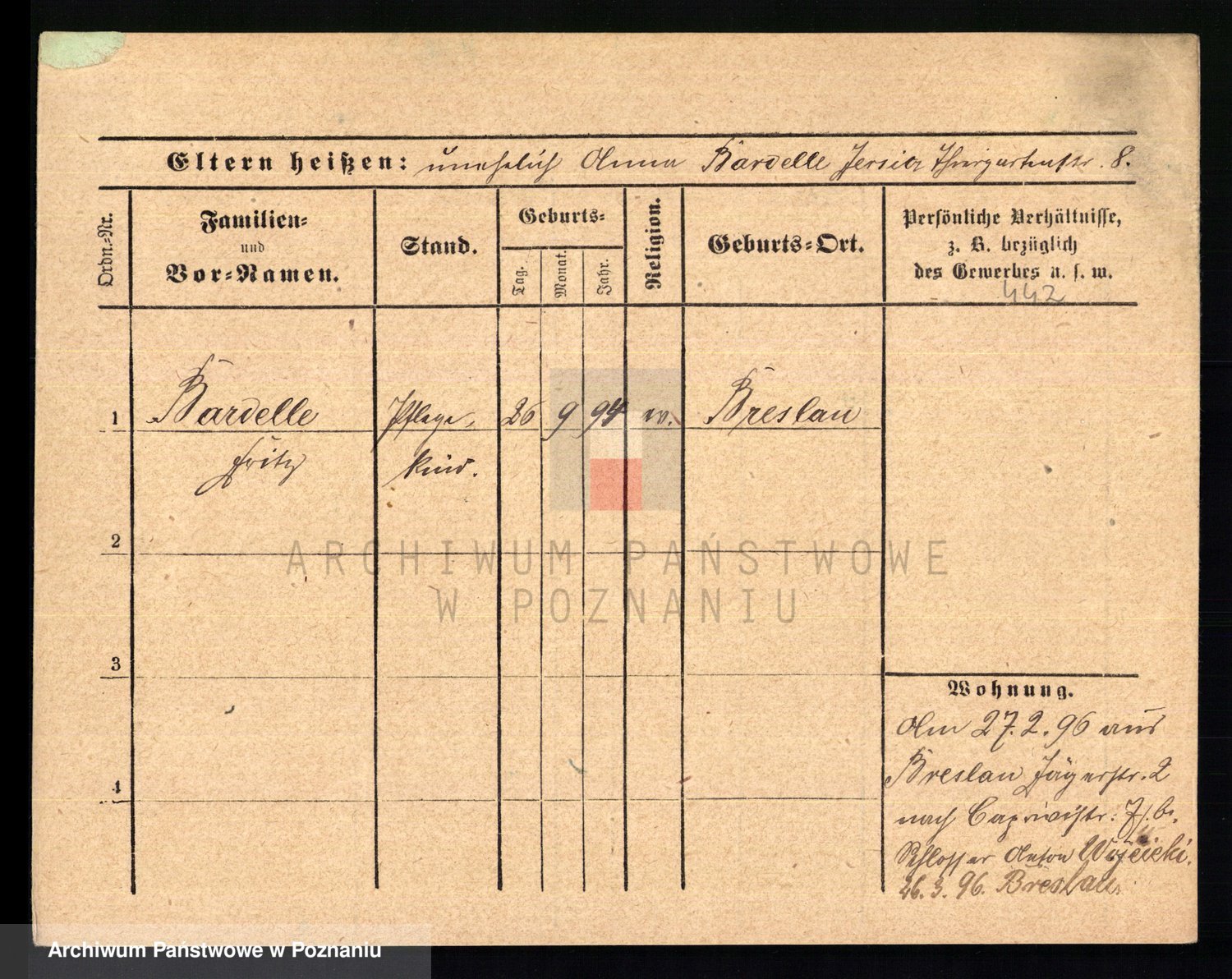Podgląd karty osobowej dostępny jest po kliknięciu na nazwisko lub ikonkę karty. Można dokonywać powiększenia (ikony na górze) lub przechodzić między kolejnymi skanami (strzałki po bokach).