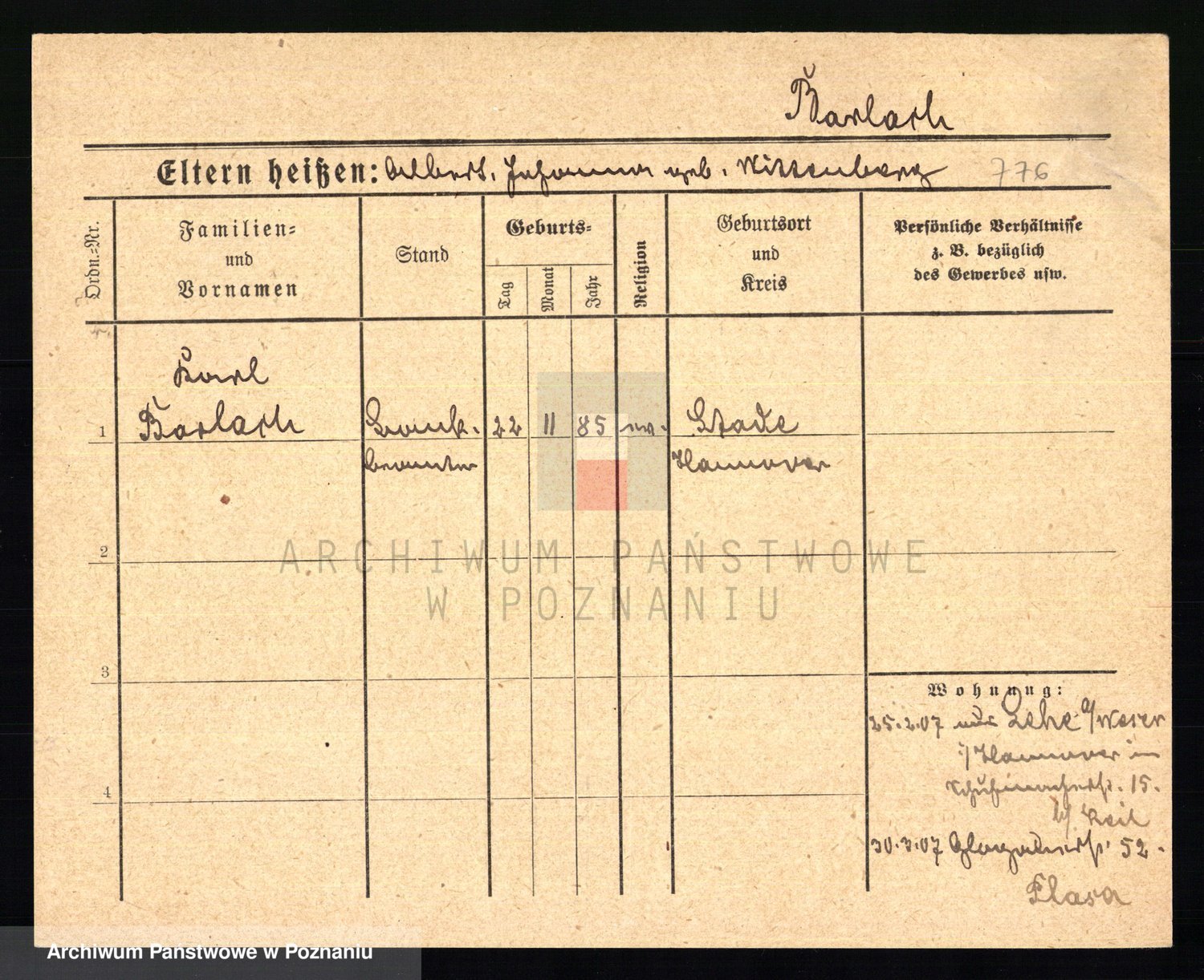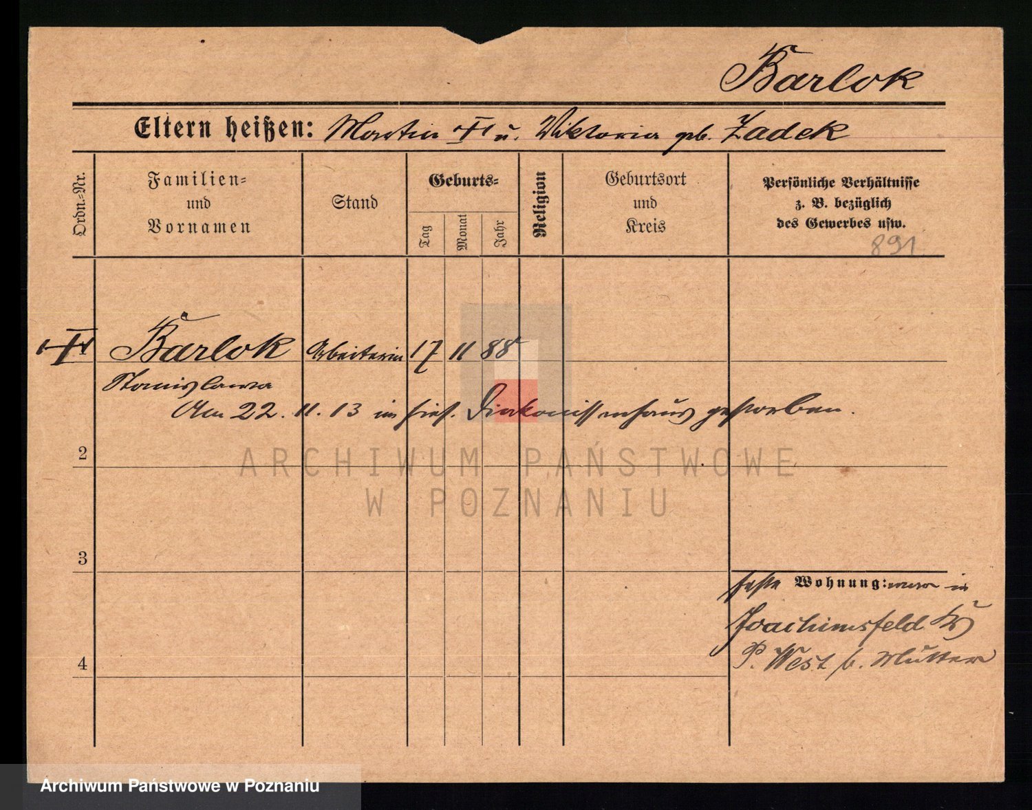 Barlog z.d. Tielke, Karolina