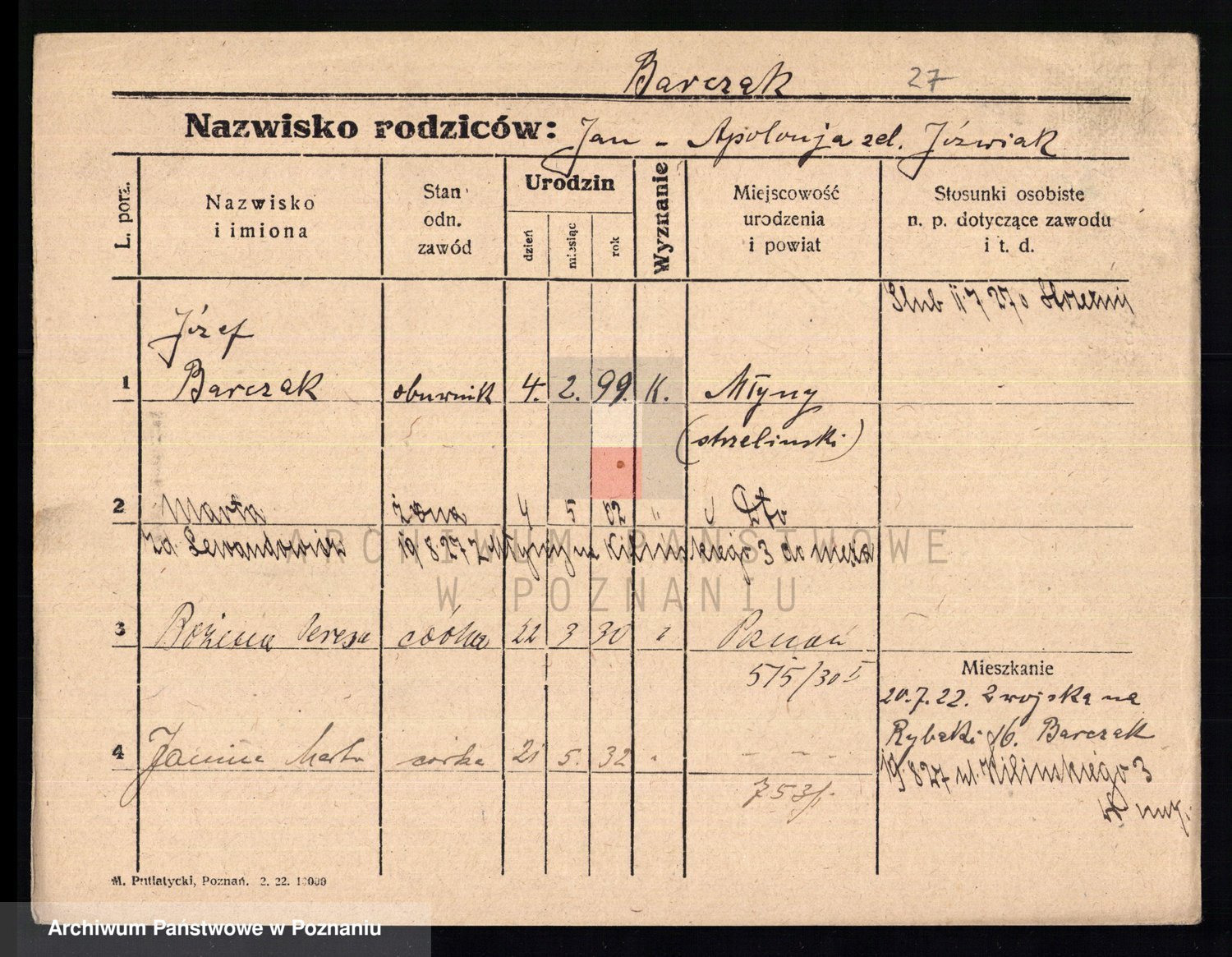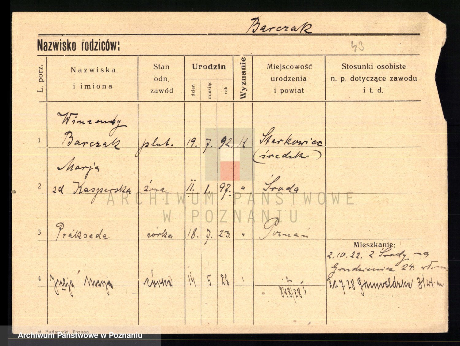 Barczak z.d. Grześkowiak, Józefa