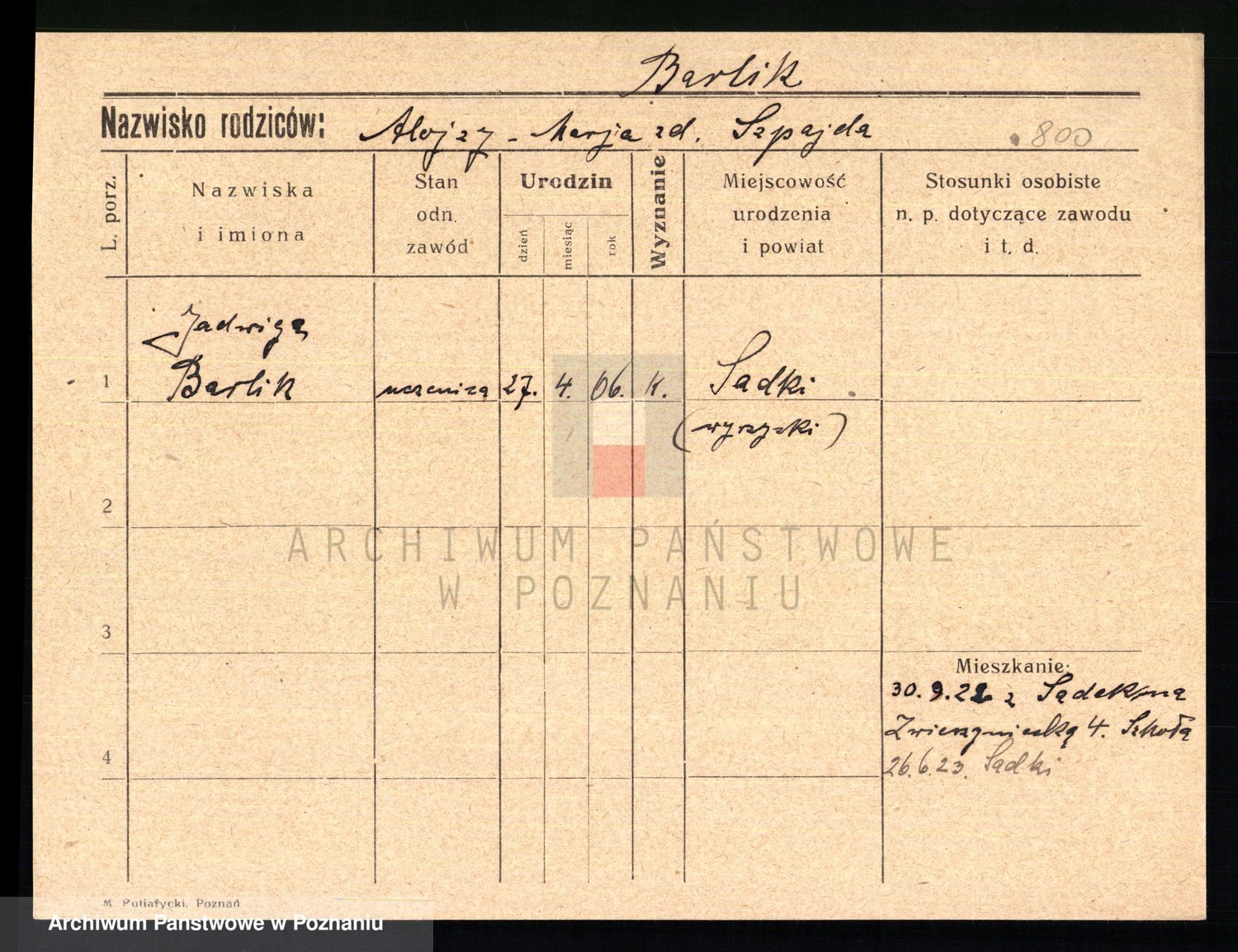 Barczak z.d.Sadek, Zofja
