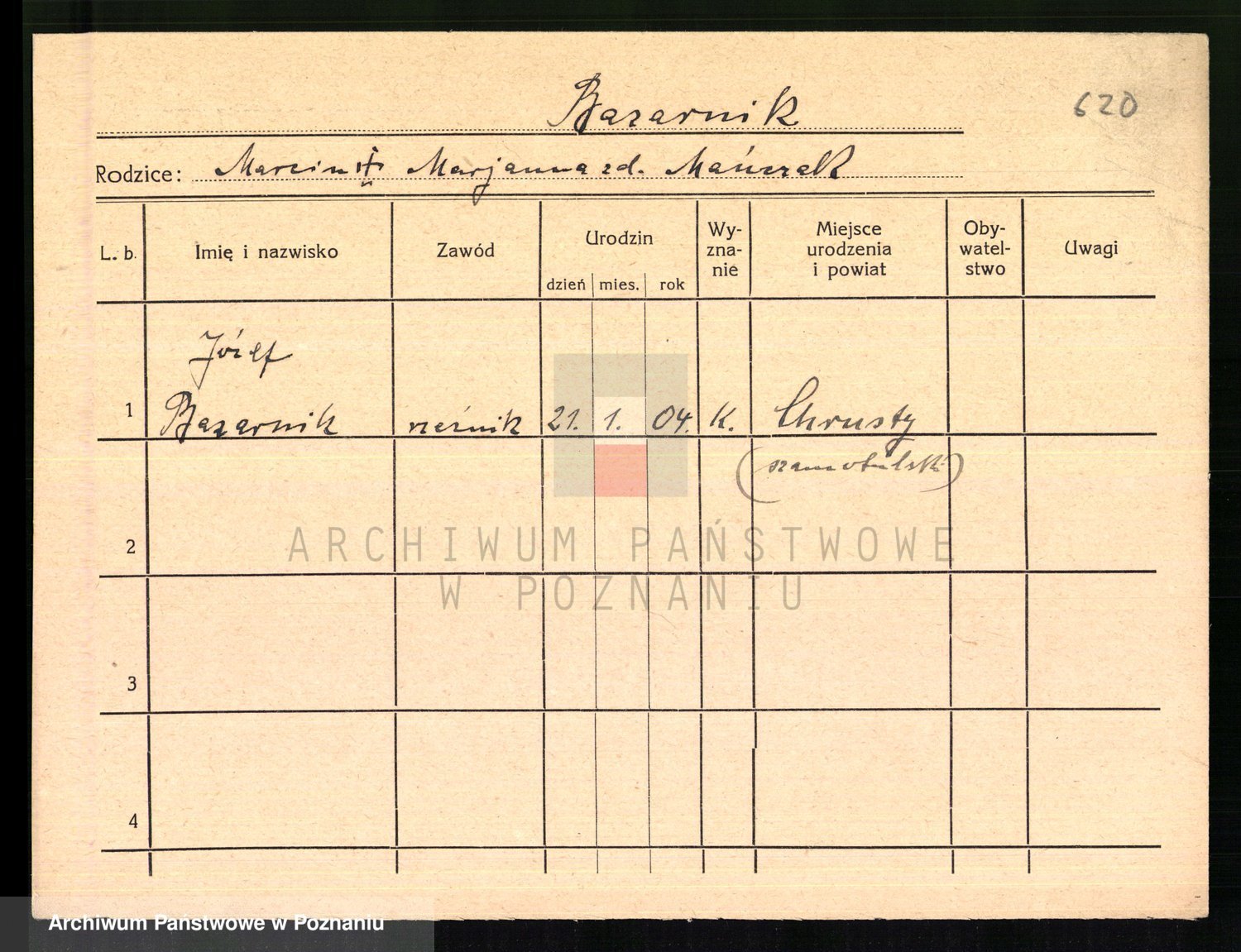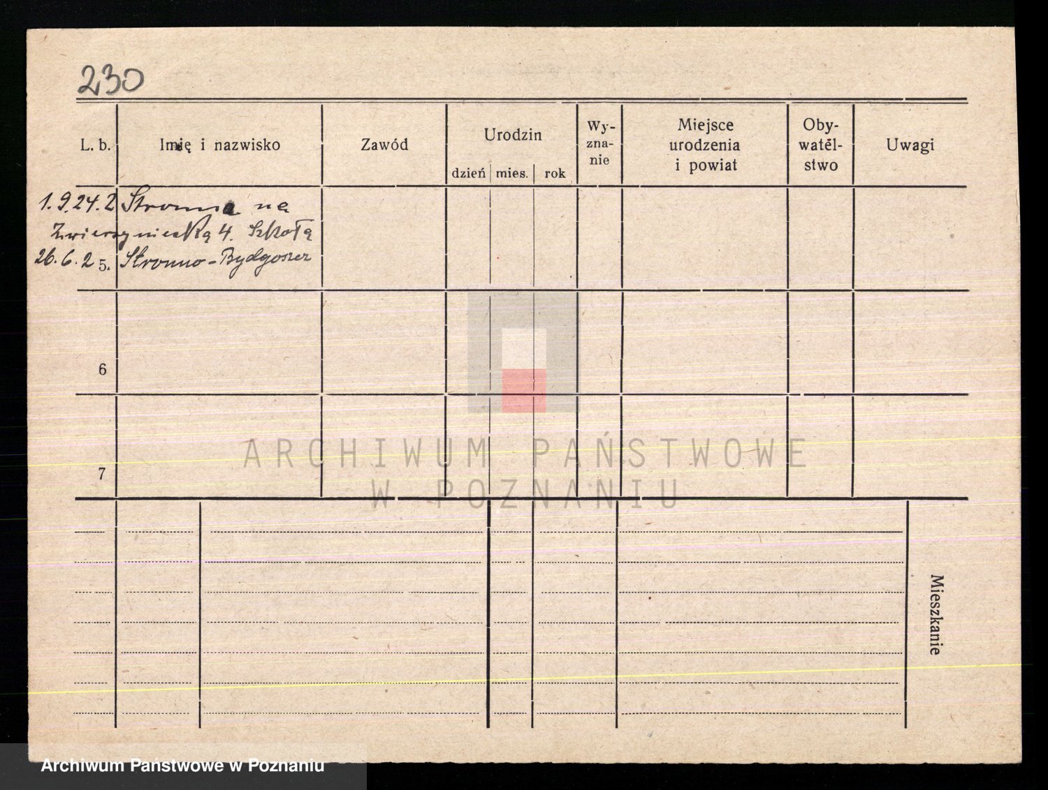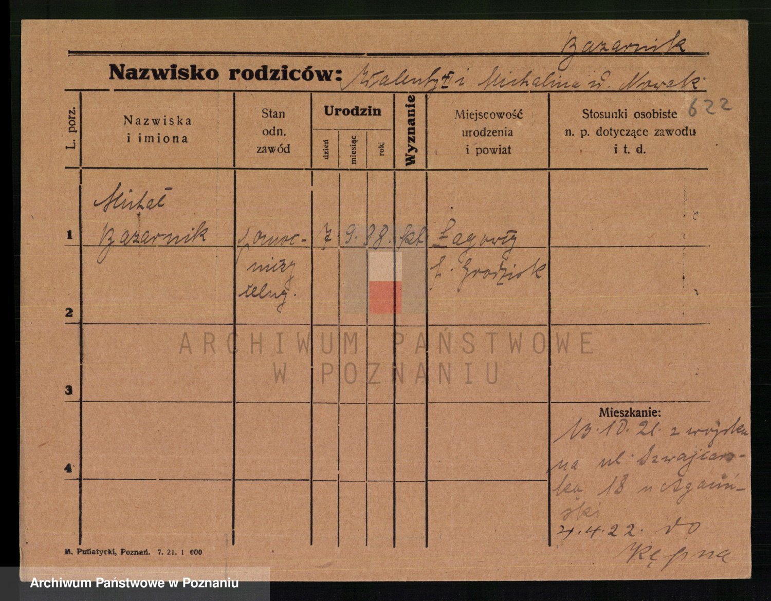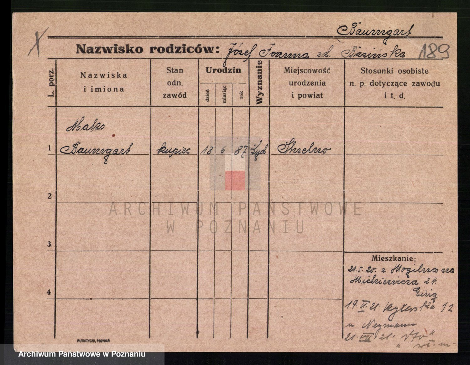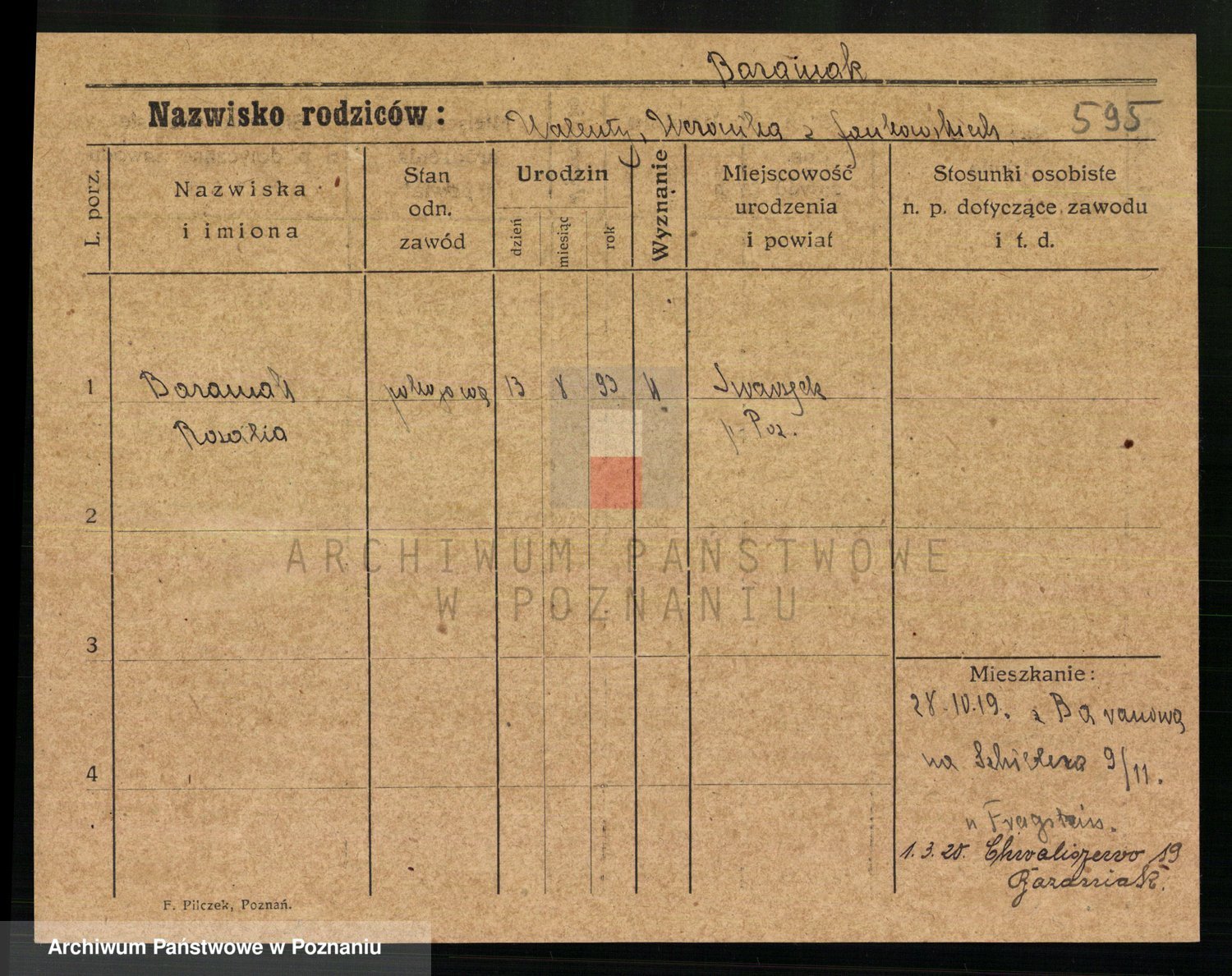 Podgląd karty osobowej dostępny jest po kliknięciu na nazwisko lub ikonkę karty. Można dokonywać powiększenia (ikony na górze) lub przechodzić między kolejnymi skanami (strzałki po bokach).