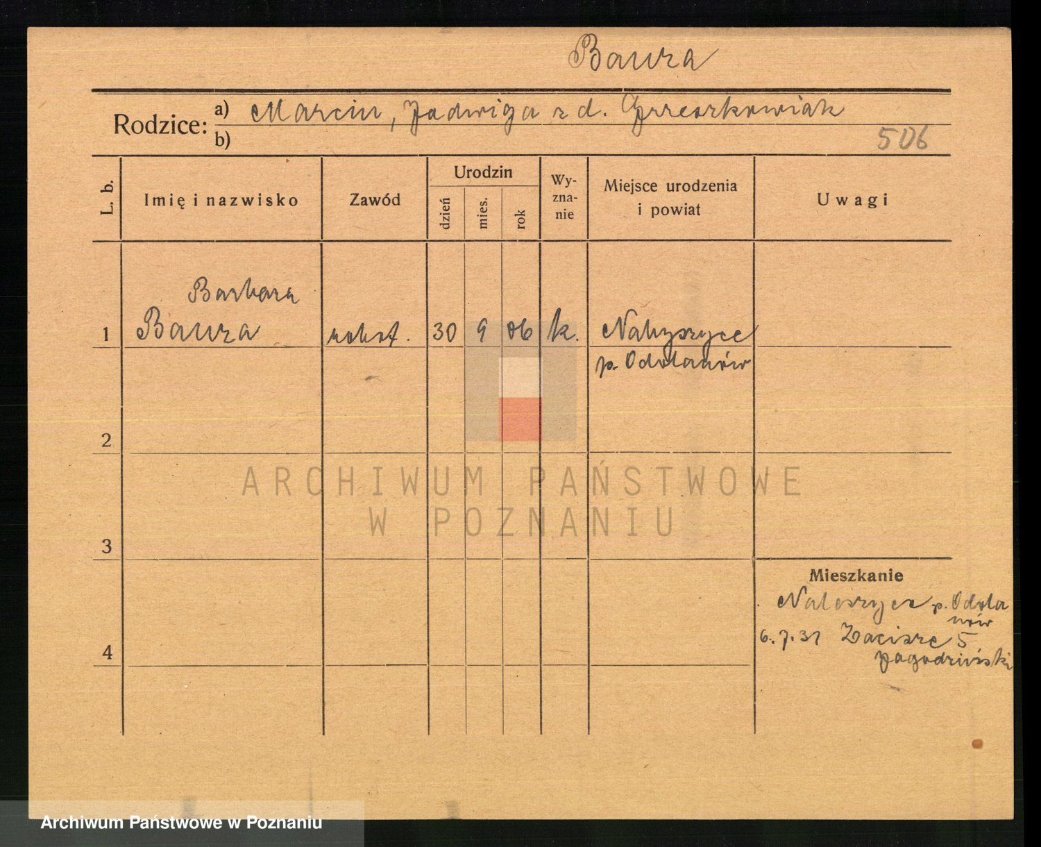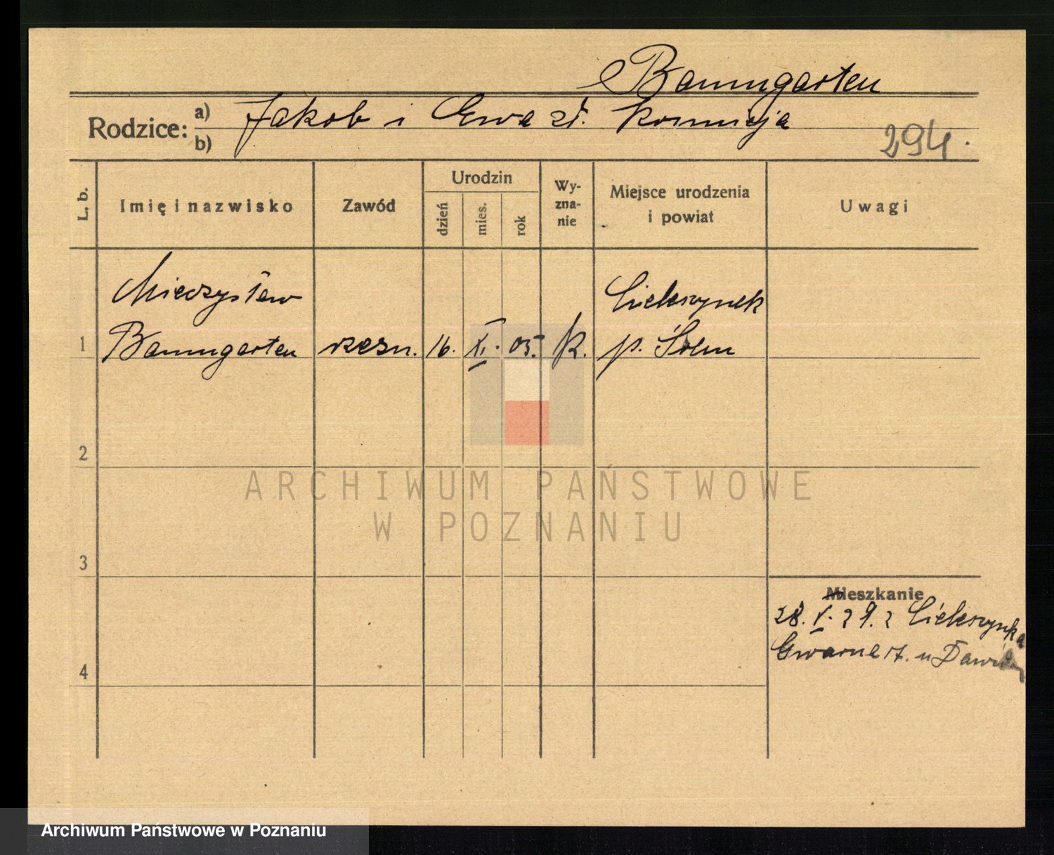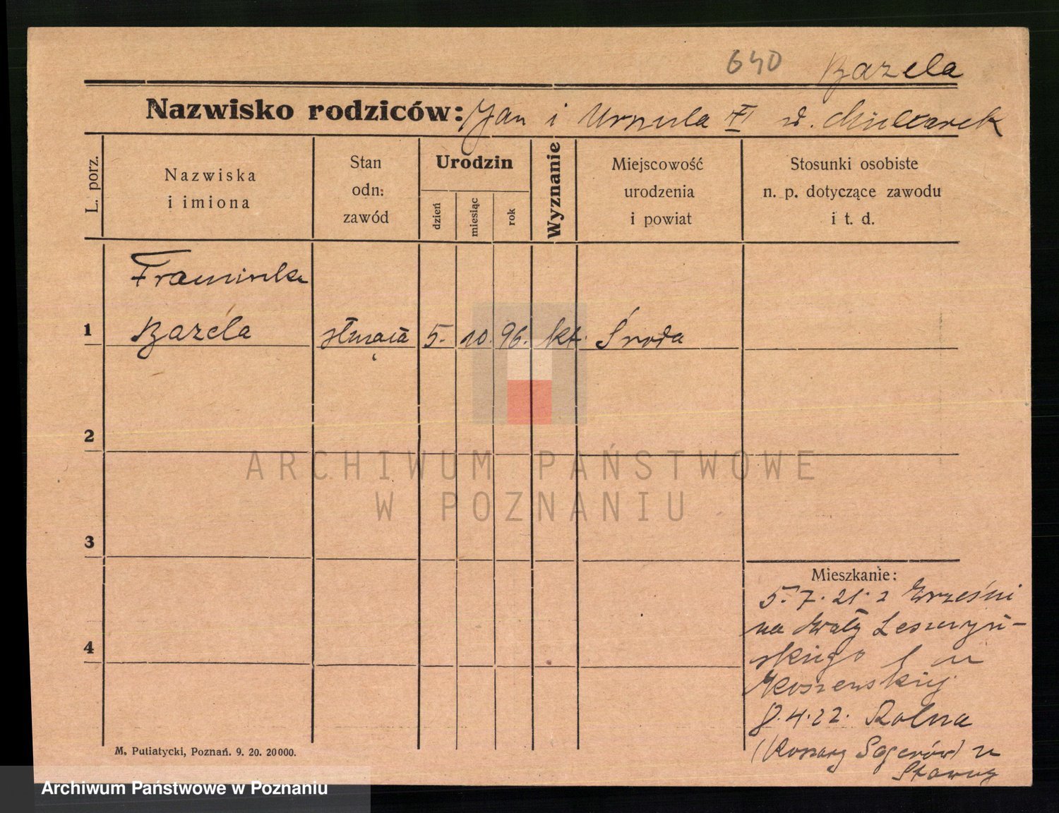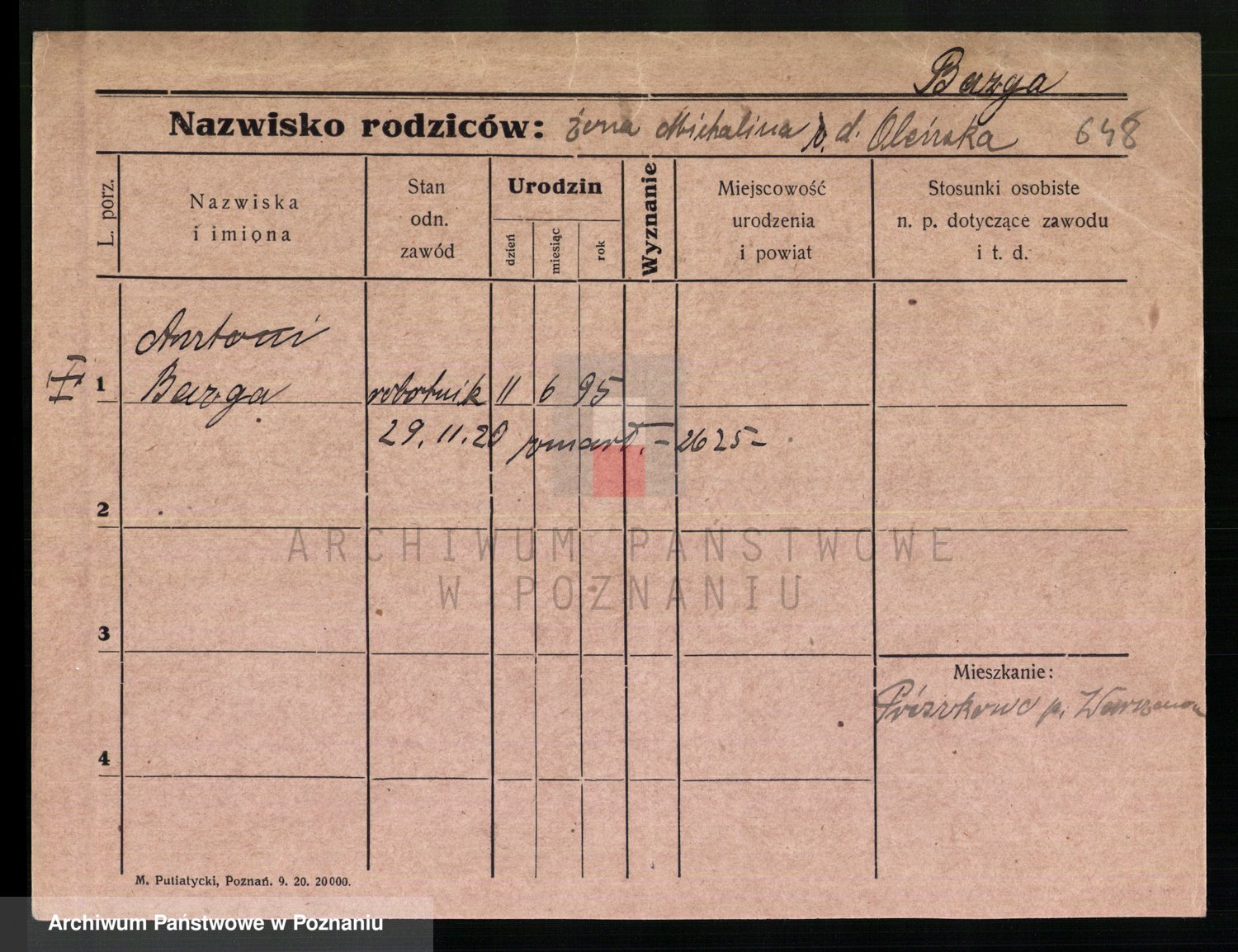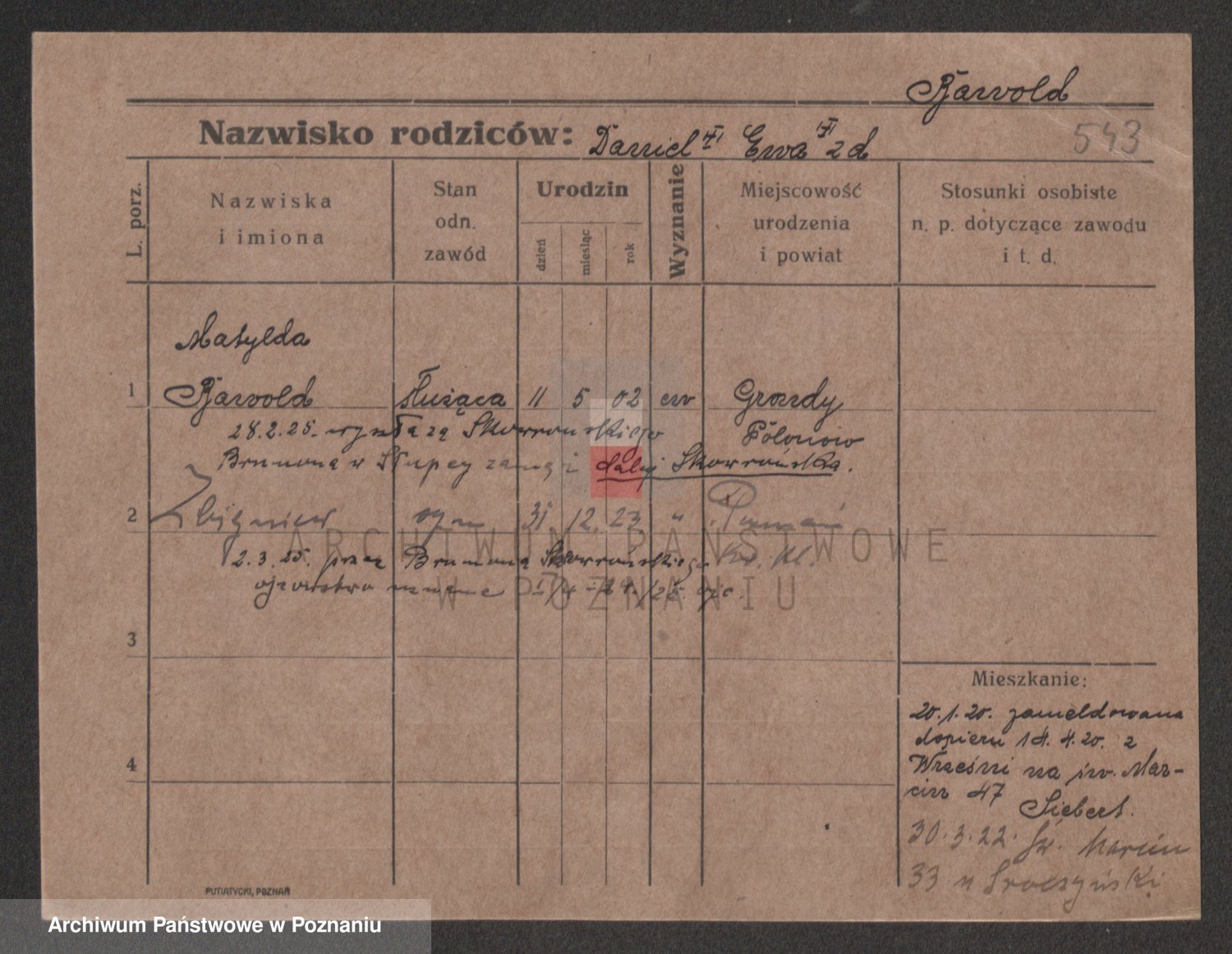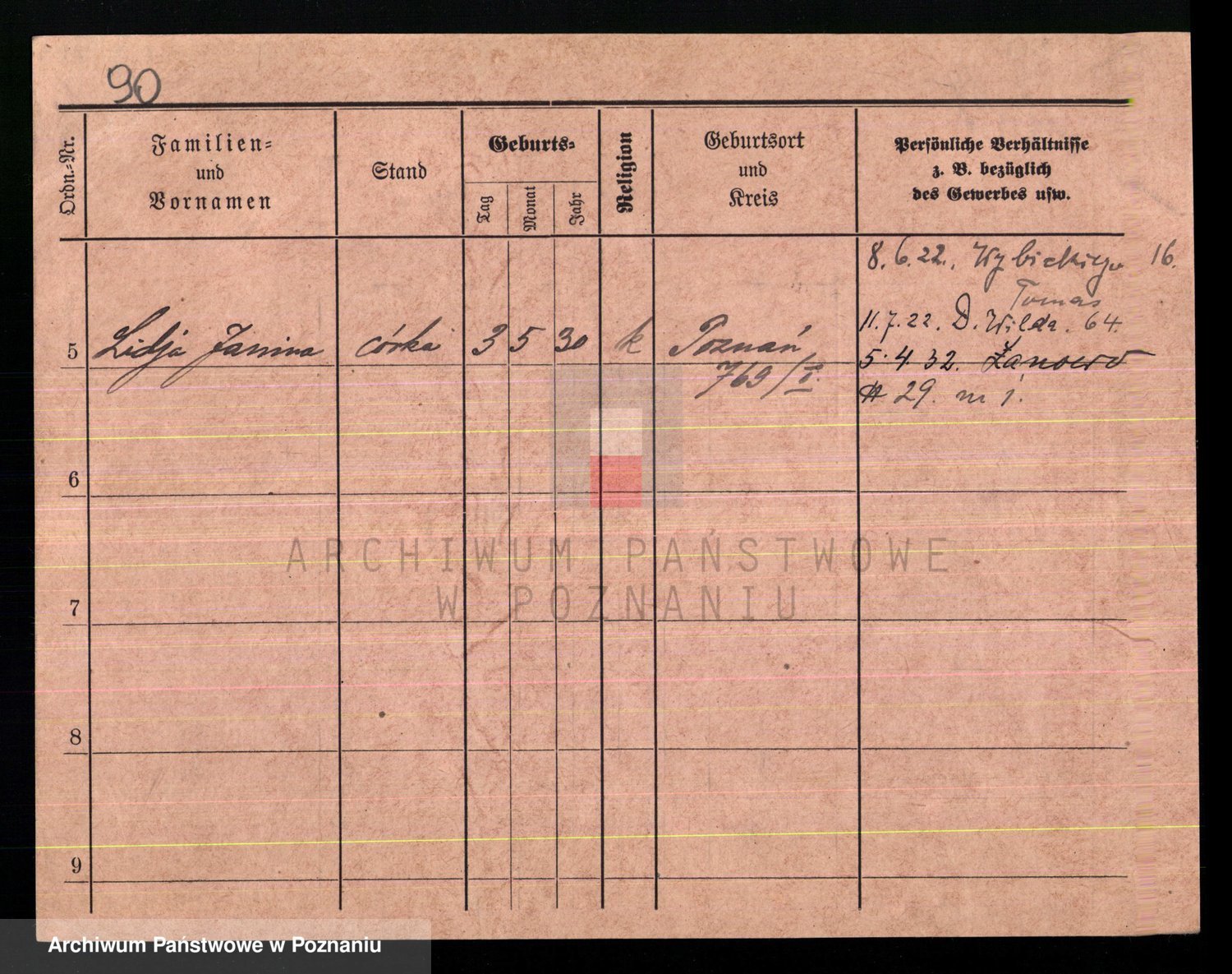 Podgląd karty osobowej dostępny jest po kliknięciu na nazwisko lub ikonkę karty. Można dokonywać powiększenia (ikony na górze) lub przechodzić między kolejnymi skanami (strzałki po bokach).