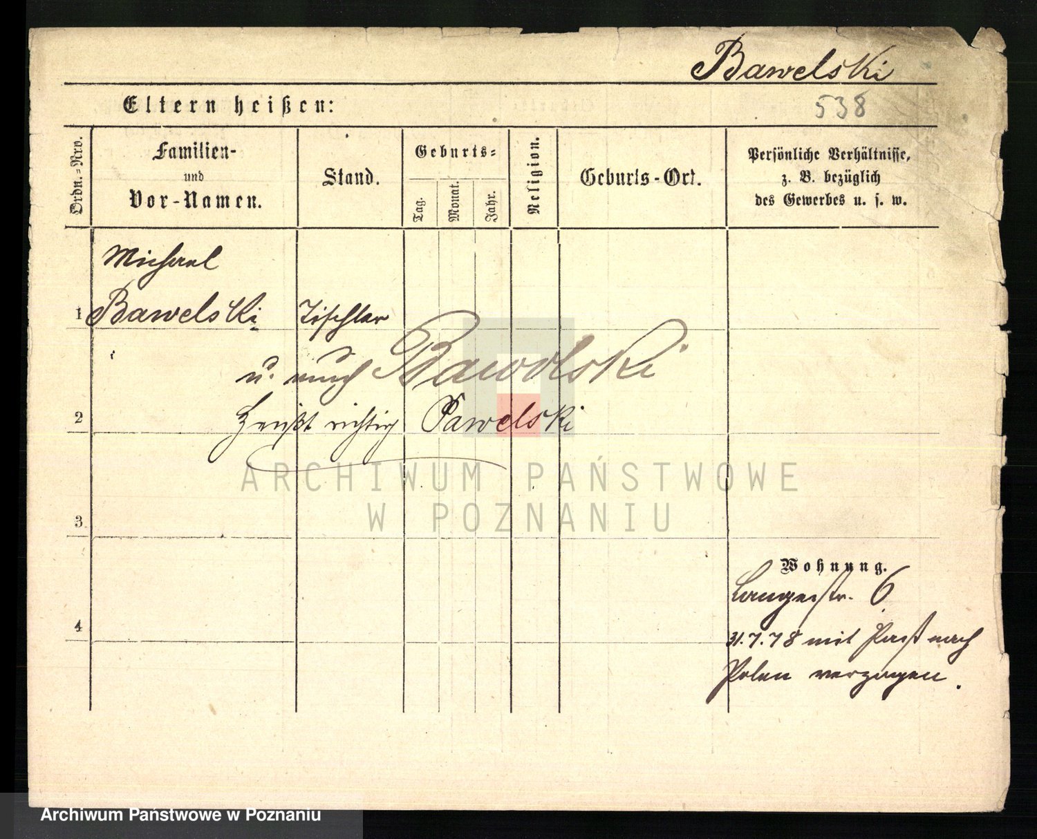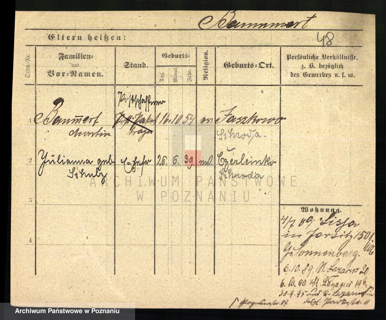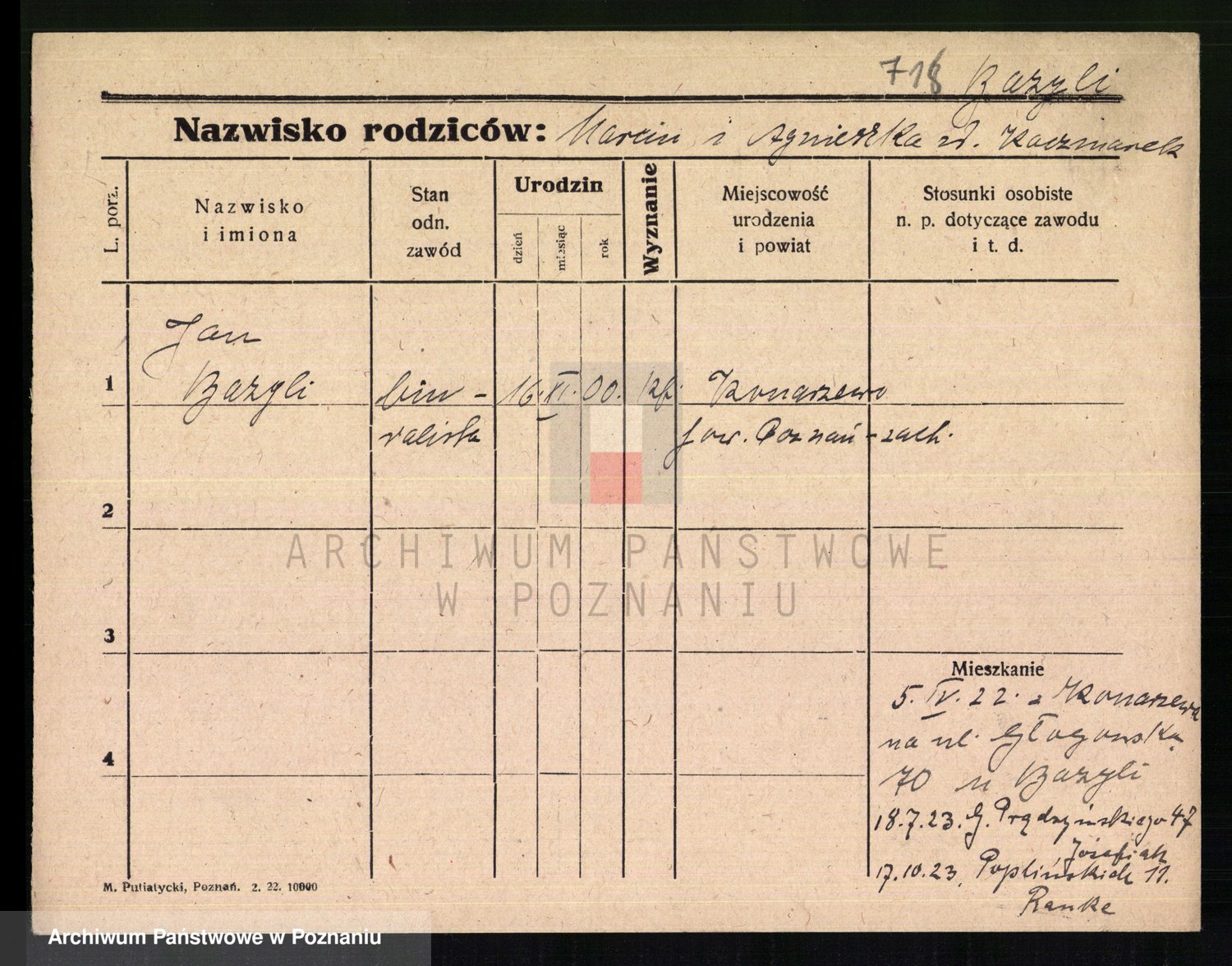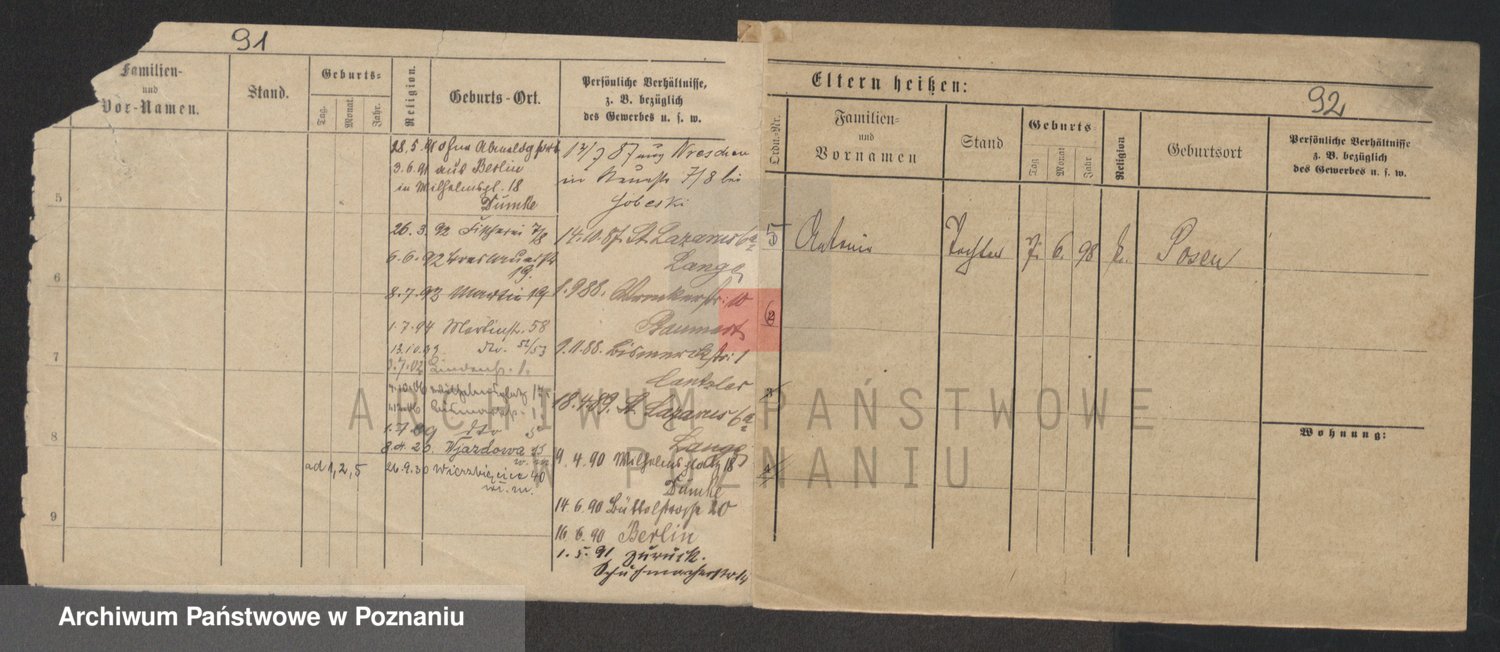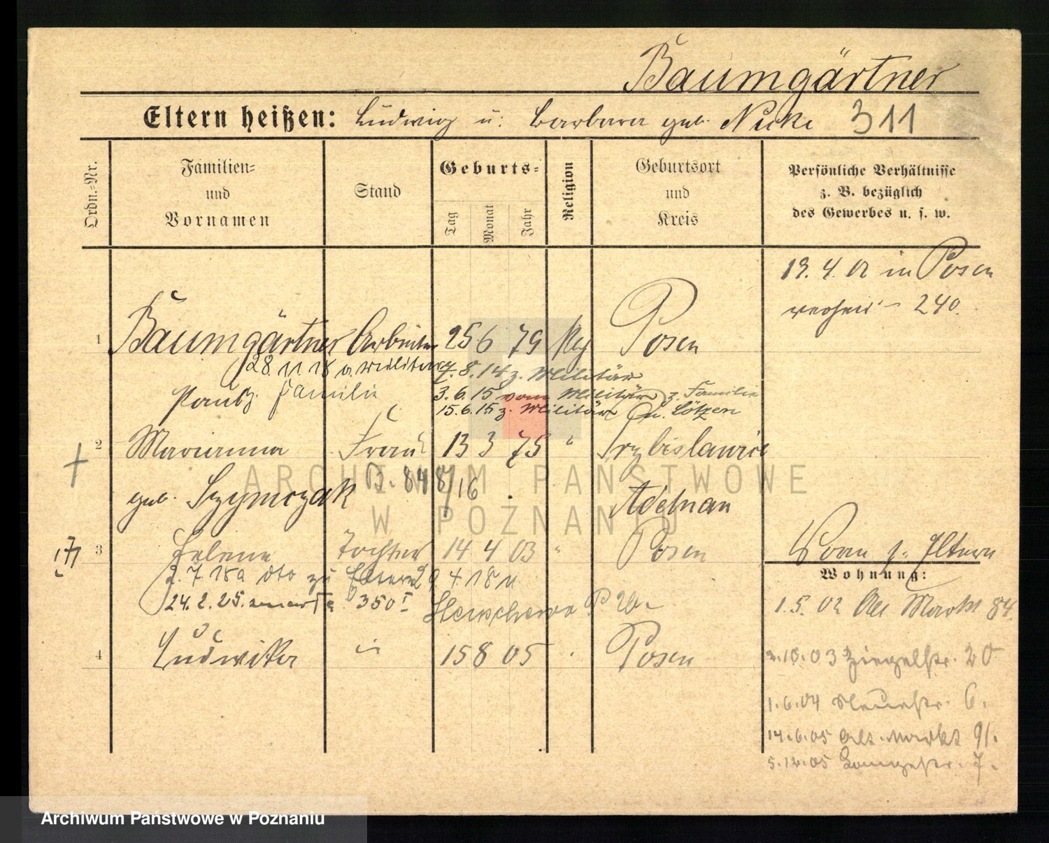 Podgląd karty osobowej dostępny jest po kliknięciu na nazwisko lub ikonkę karty. Można dokonywać powiększenia (ikony na górze) lub przechodzić między kolejnymi skanami (strzałki po bokach).