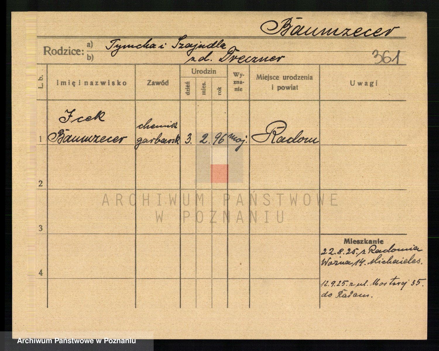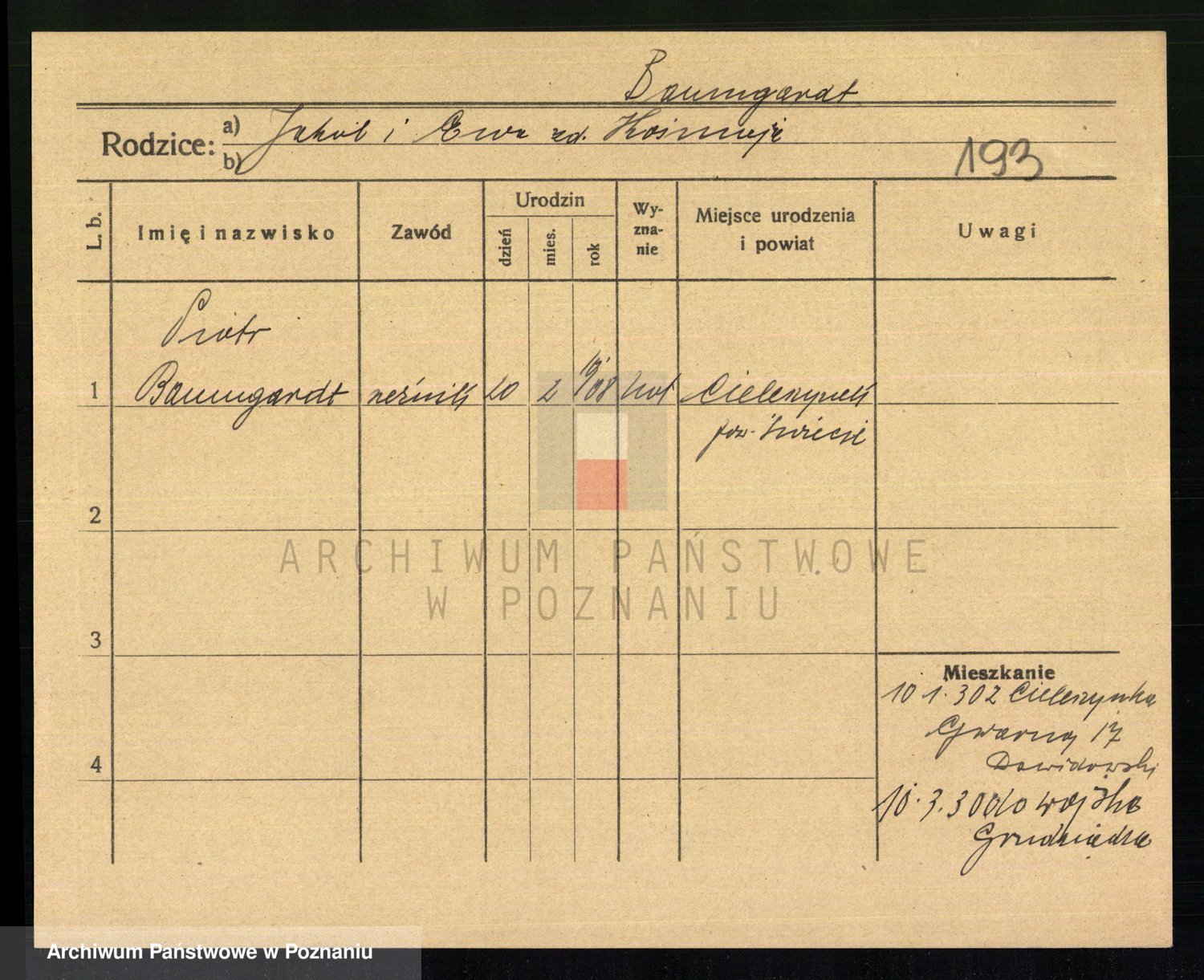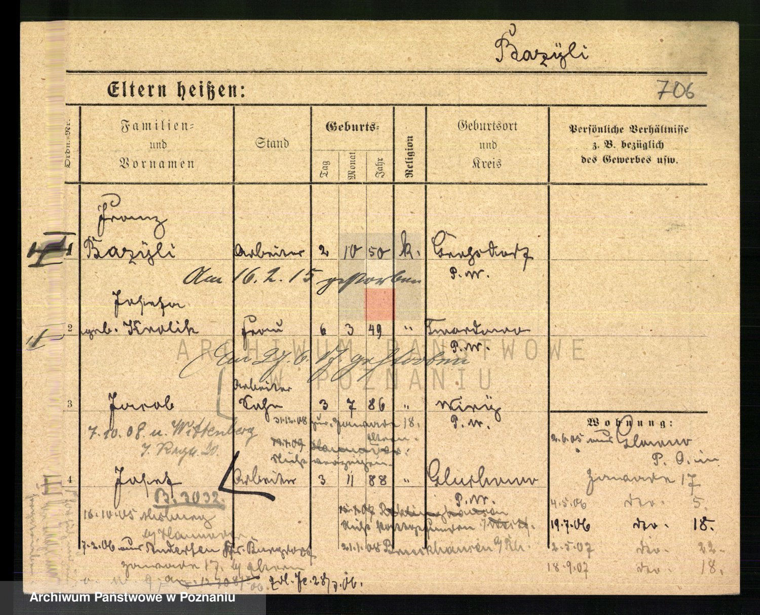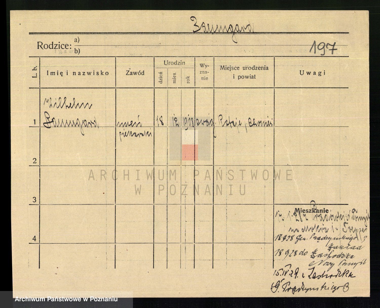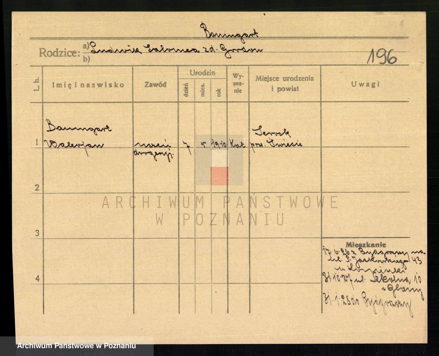 Podgląd karty osobowej dostępny jest po kliknięciu na nazwisko lub ikonkę karty. Można dokonywać powiększenia (ikony na górze) lub przechodzić między kolejnymi skanami (strzałki po bokach).