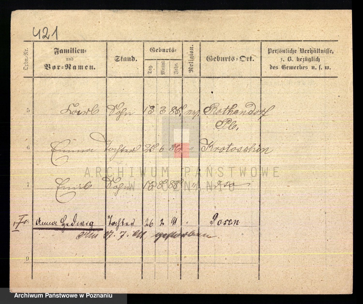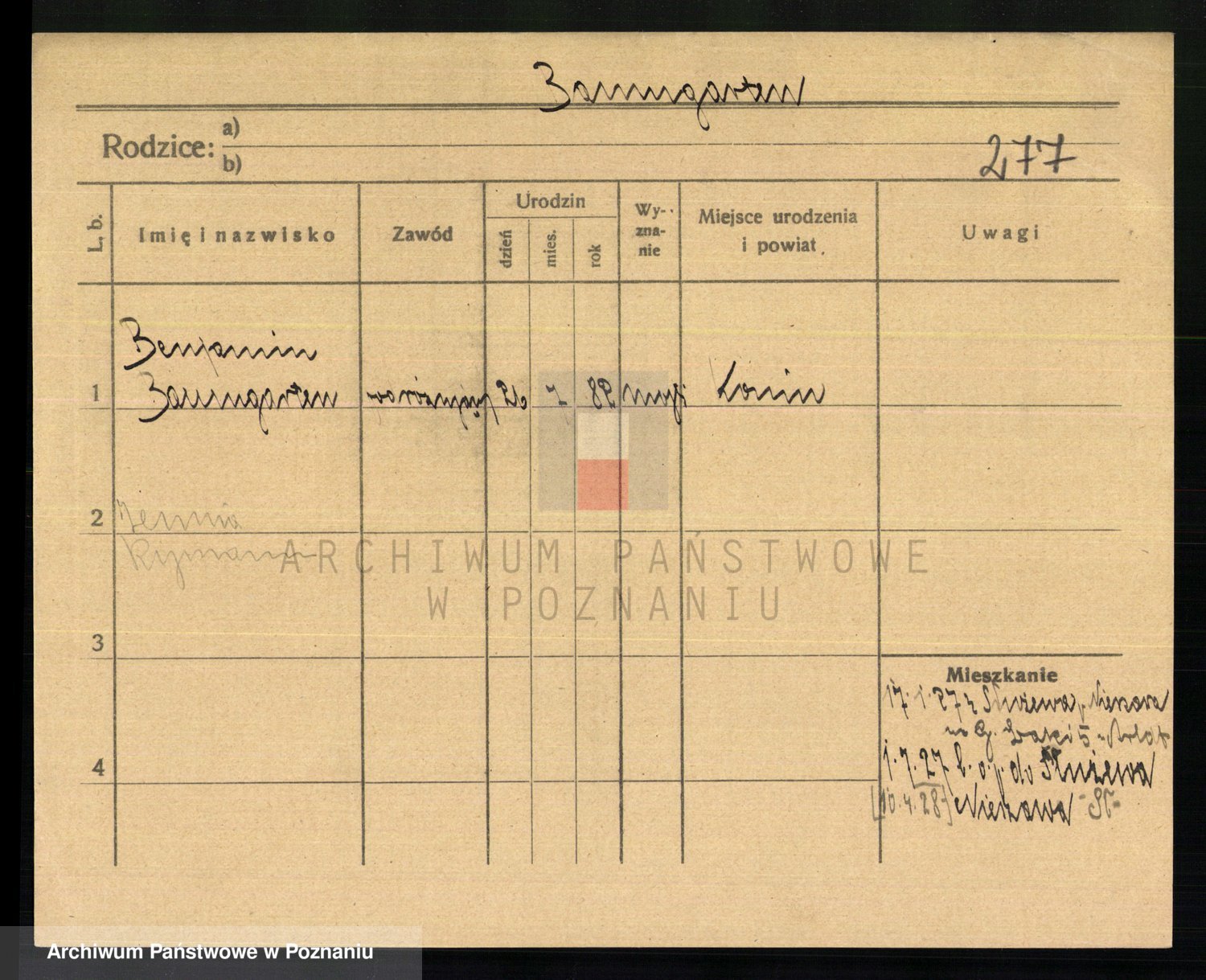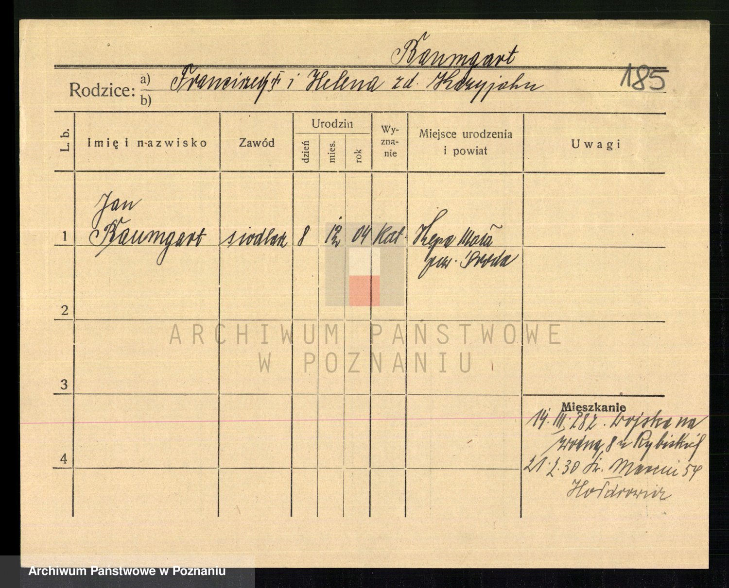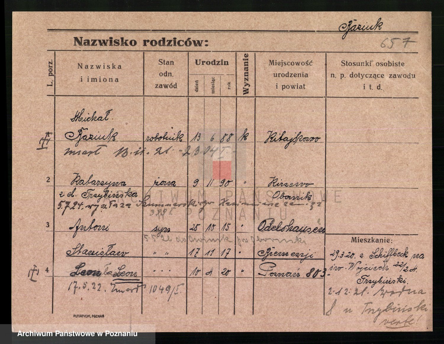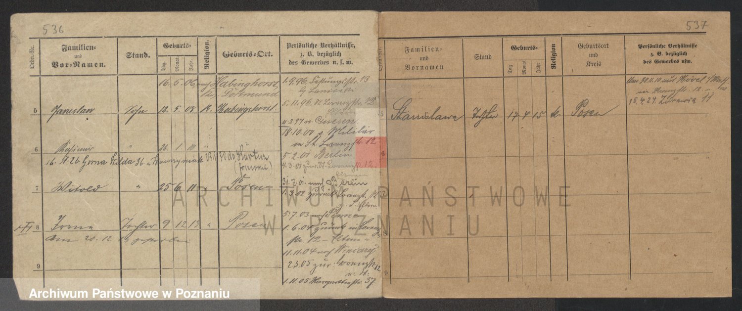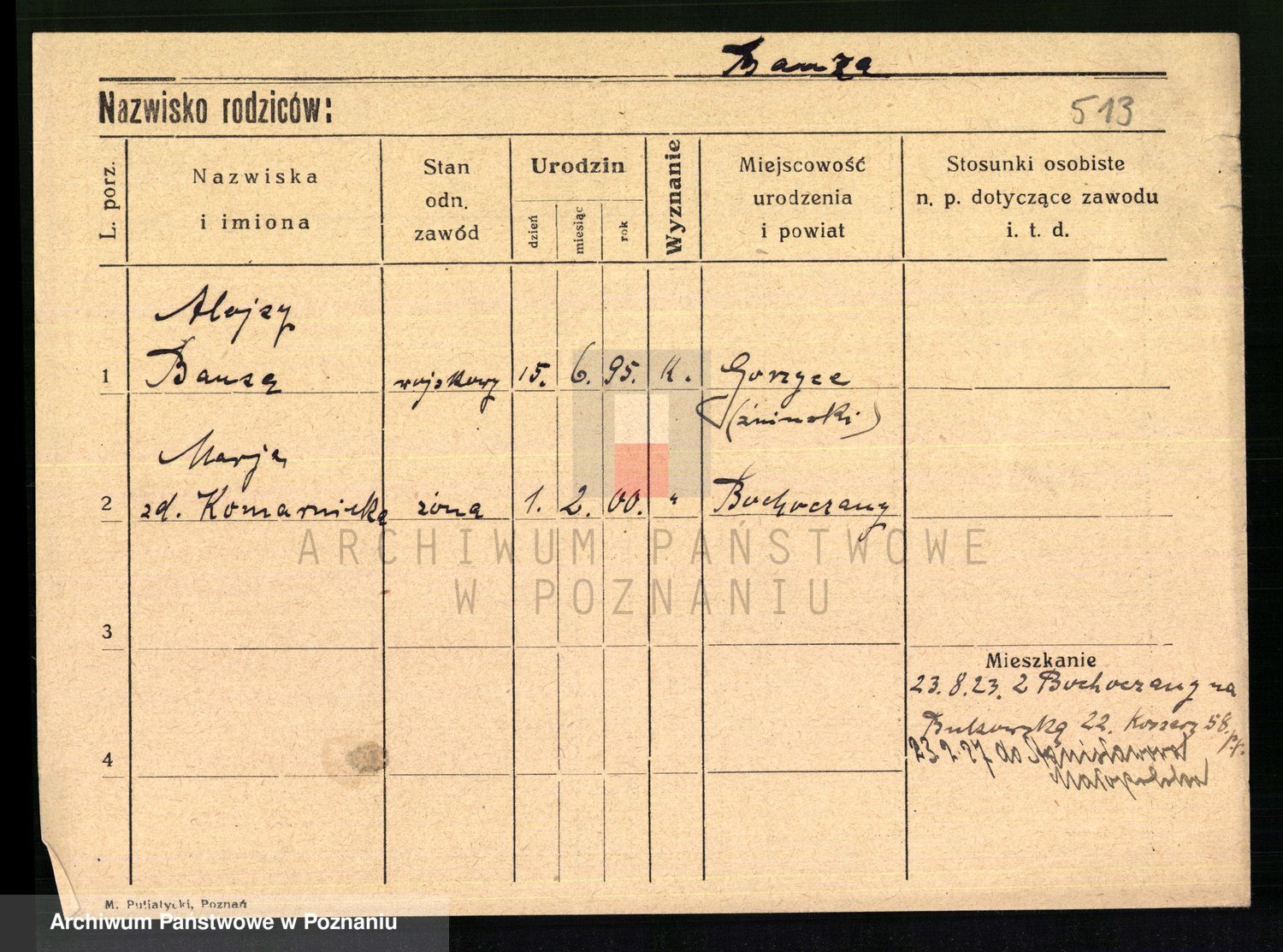 Podgląd karty osobowej dostępny jest po kliknięciu na nazwisko lub ikonkę karty. Można dokonywać powiększenia (ikony na górze) lub przechodzić między kolejnymi skanami (strzałki po bokach).