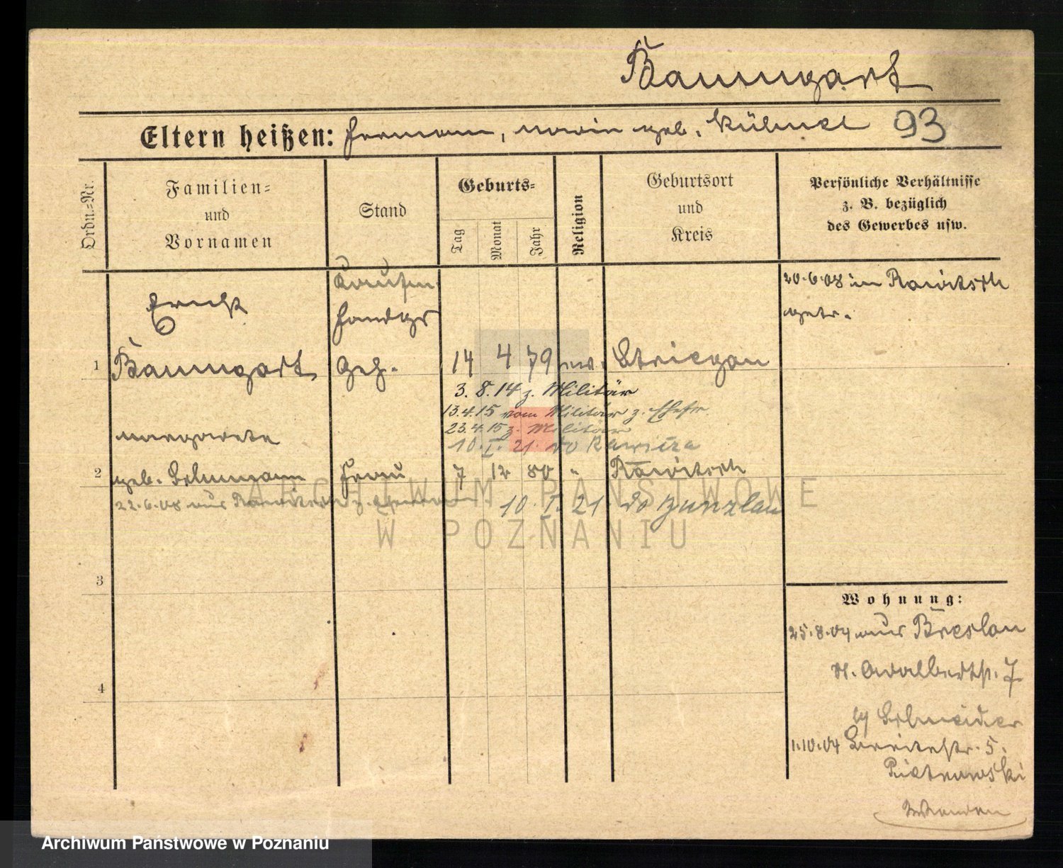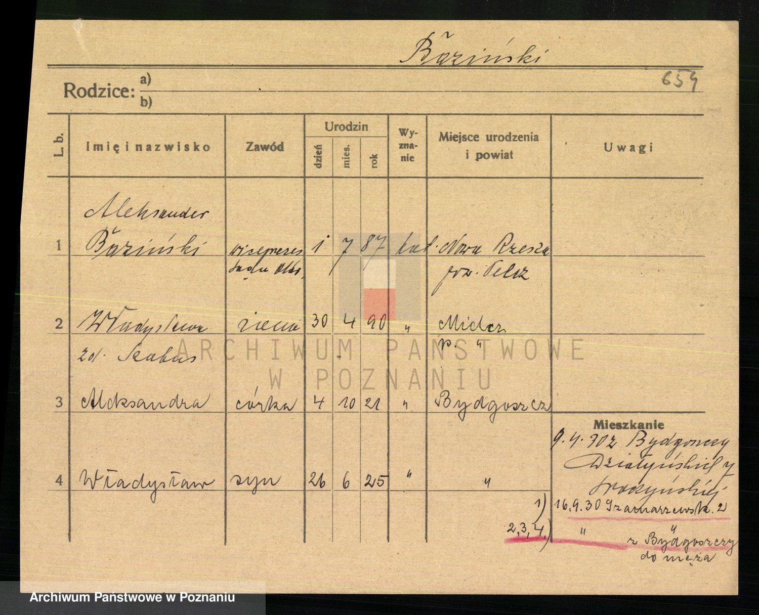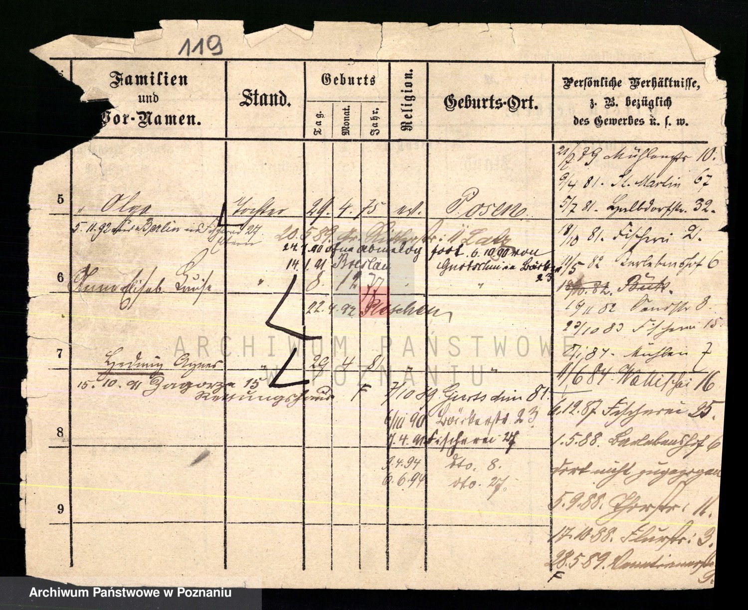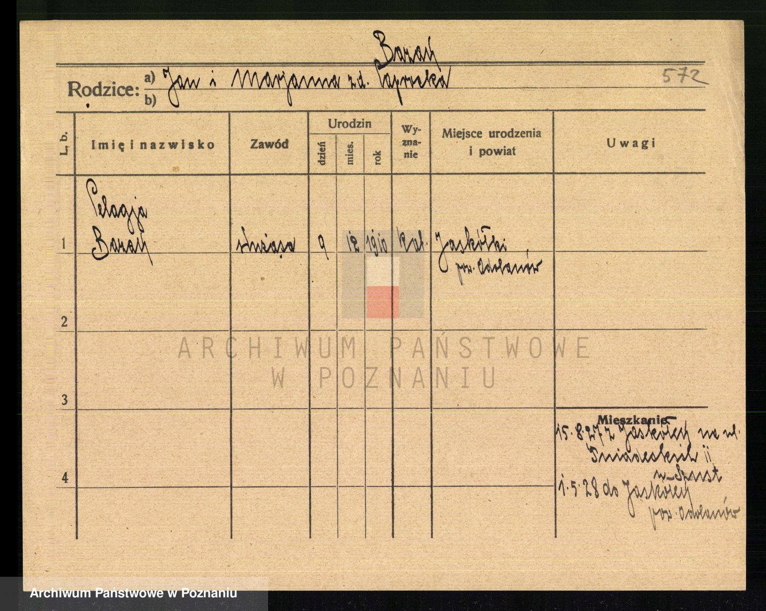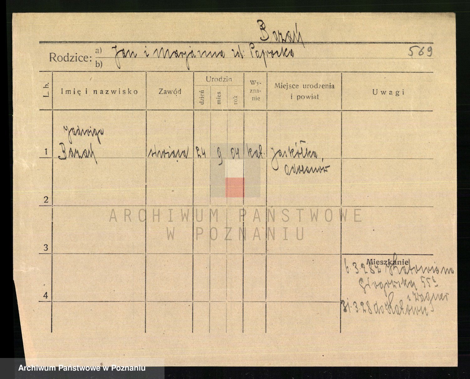 Podgląd karty osobowej dostępny jest po kliknięciu na nazwisko lub ikonkę karty. Można dokonywać powiększenia (ikony na górze) lub przechodzić między kolejnymi skanami (strzałki po bokach).