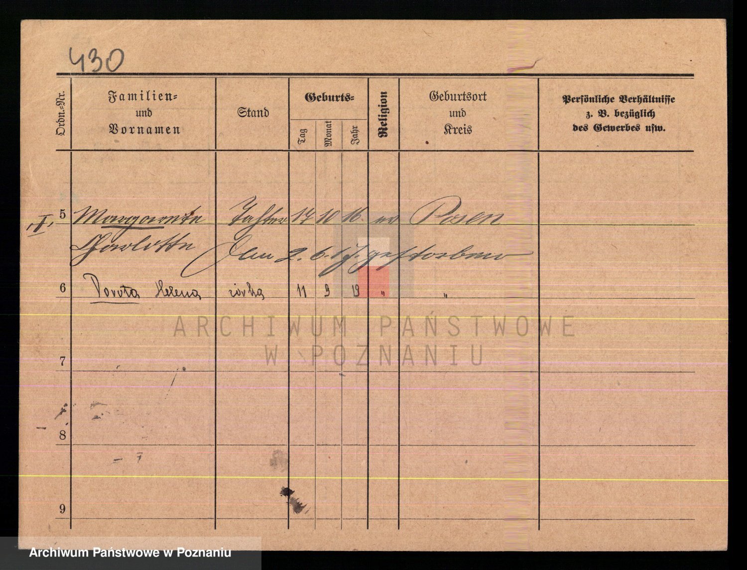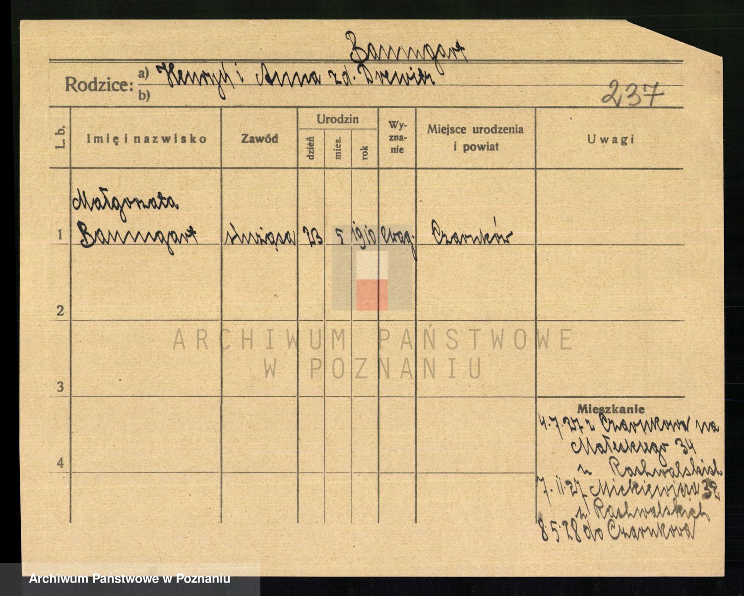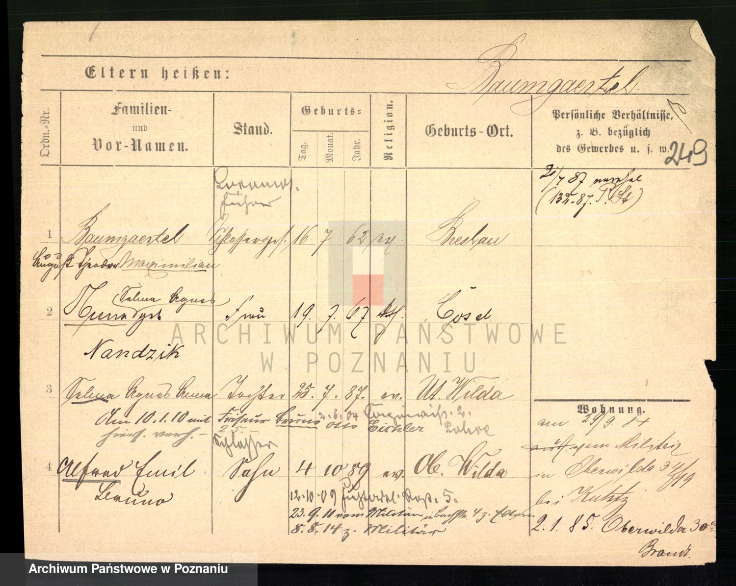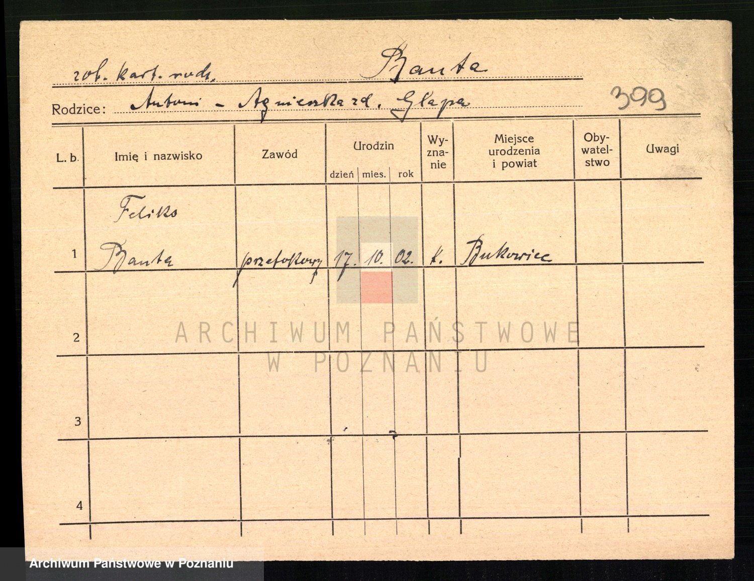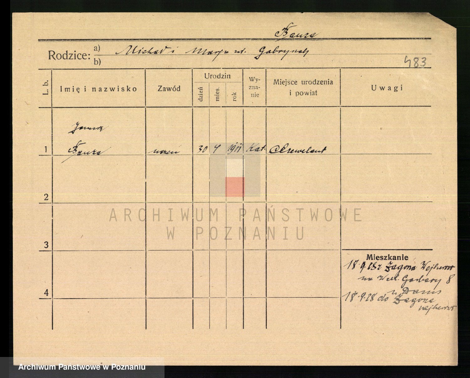 Podgląd karty osobowej dostępny jest po kliknięciu na nazwisko lub ikonkę karty. Można dokonywać powiększenia (ikony na górze) lub przechodzić między kolejnymi skanami (strzałki po bokach).