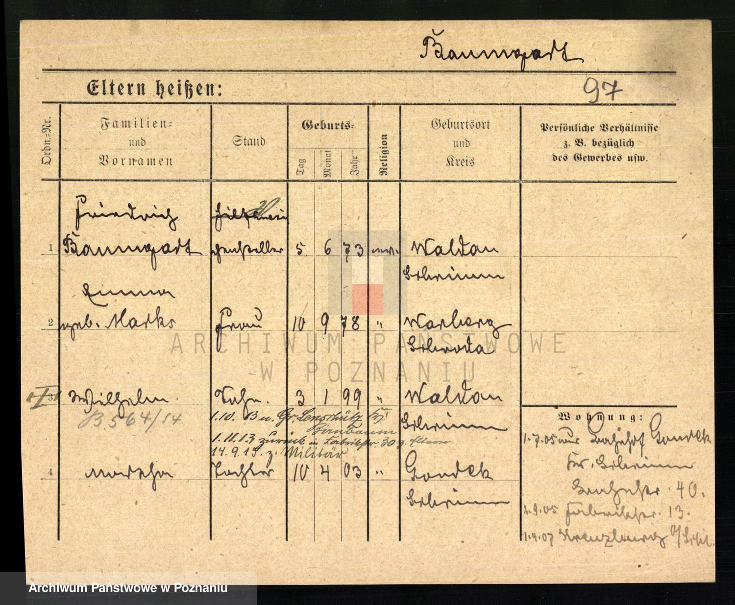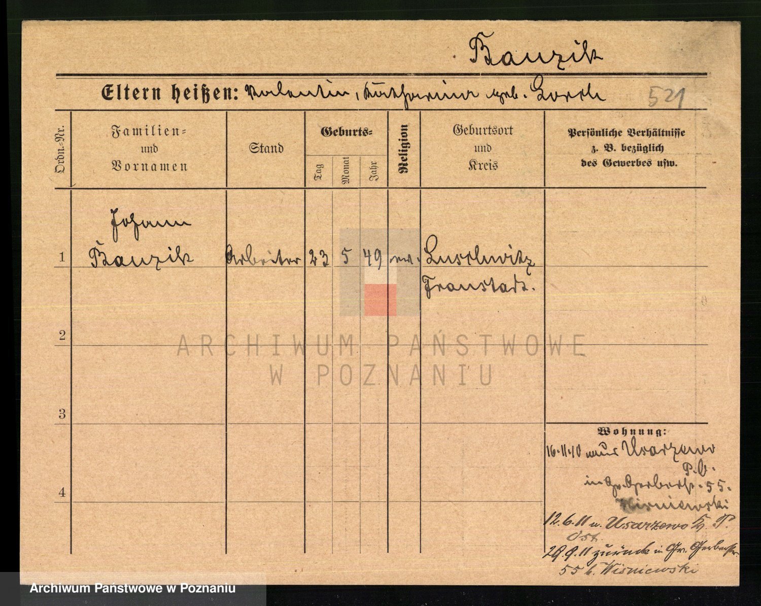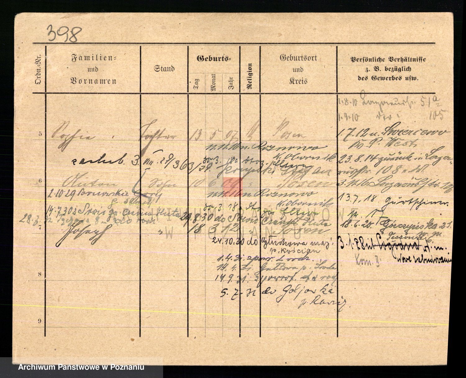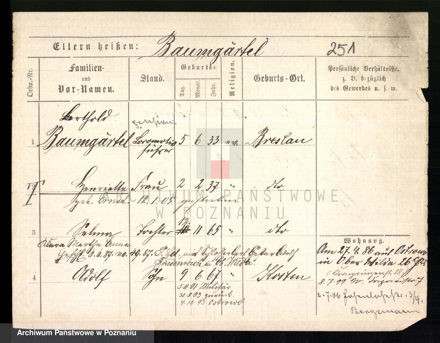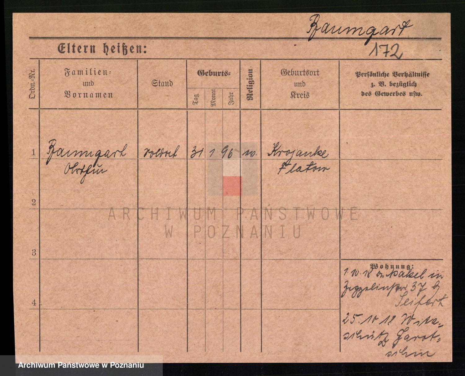 Podgląd karty osobowej dostępny jest po kliknięciu na nazwisko lub ikonkę karty. Można dokonywać powiększenia (ikony na górze) lub przechodzić między kolejnymi skanami (strzałki po bokach).