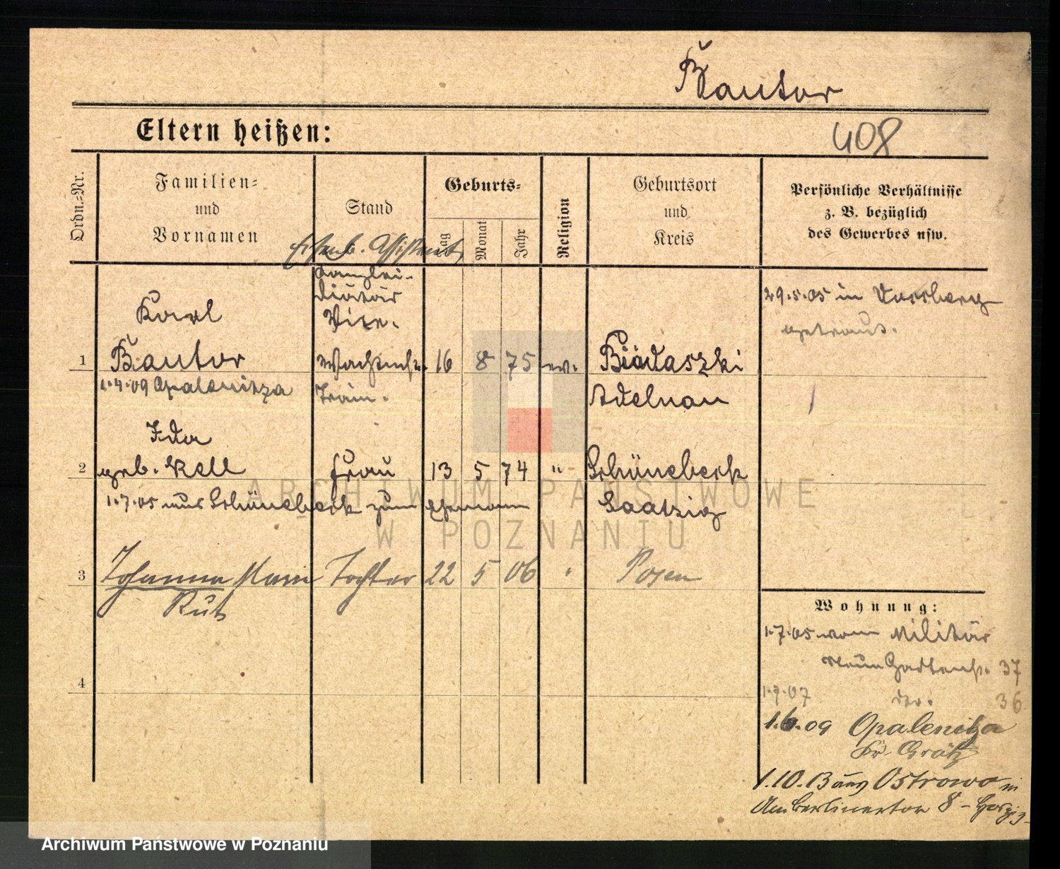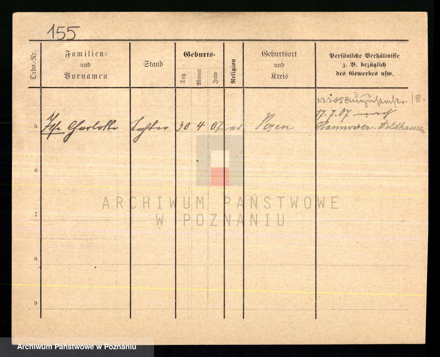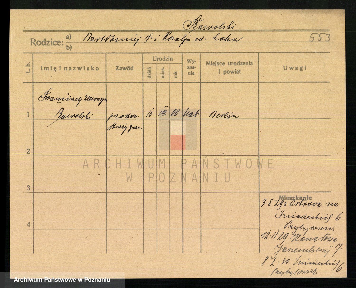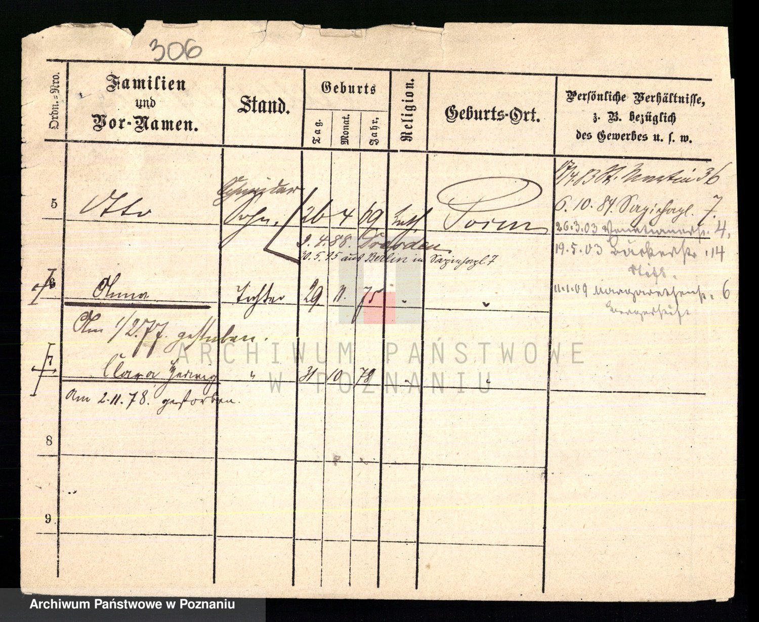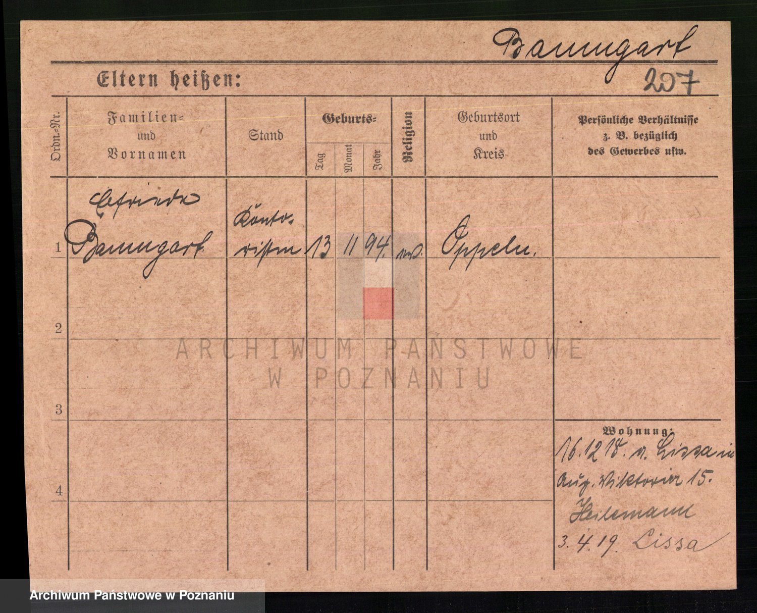 Podgląd karty osobowej dostępny jest po kliknięciu na nazwisko lub ikonkę karty. Można dokonywać powiększenia (ikony na górze) lub przechodzić między kolejnymi skanami (strzałki po bokach).