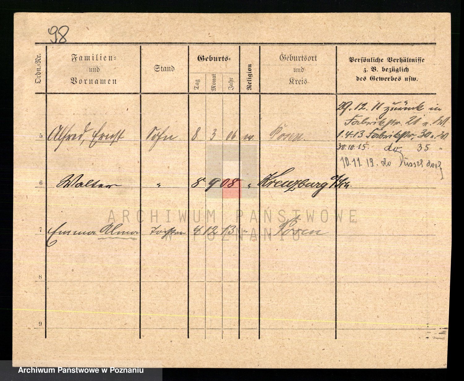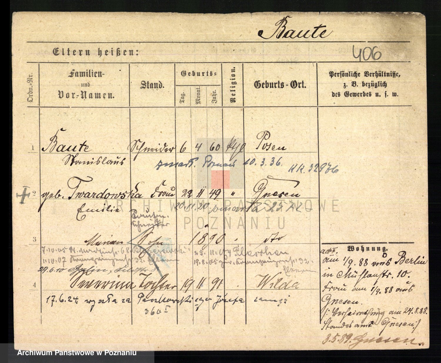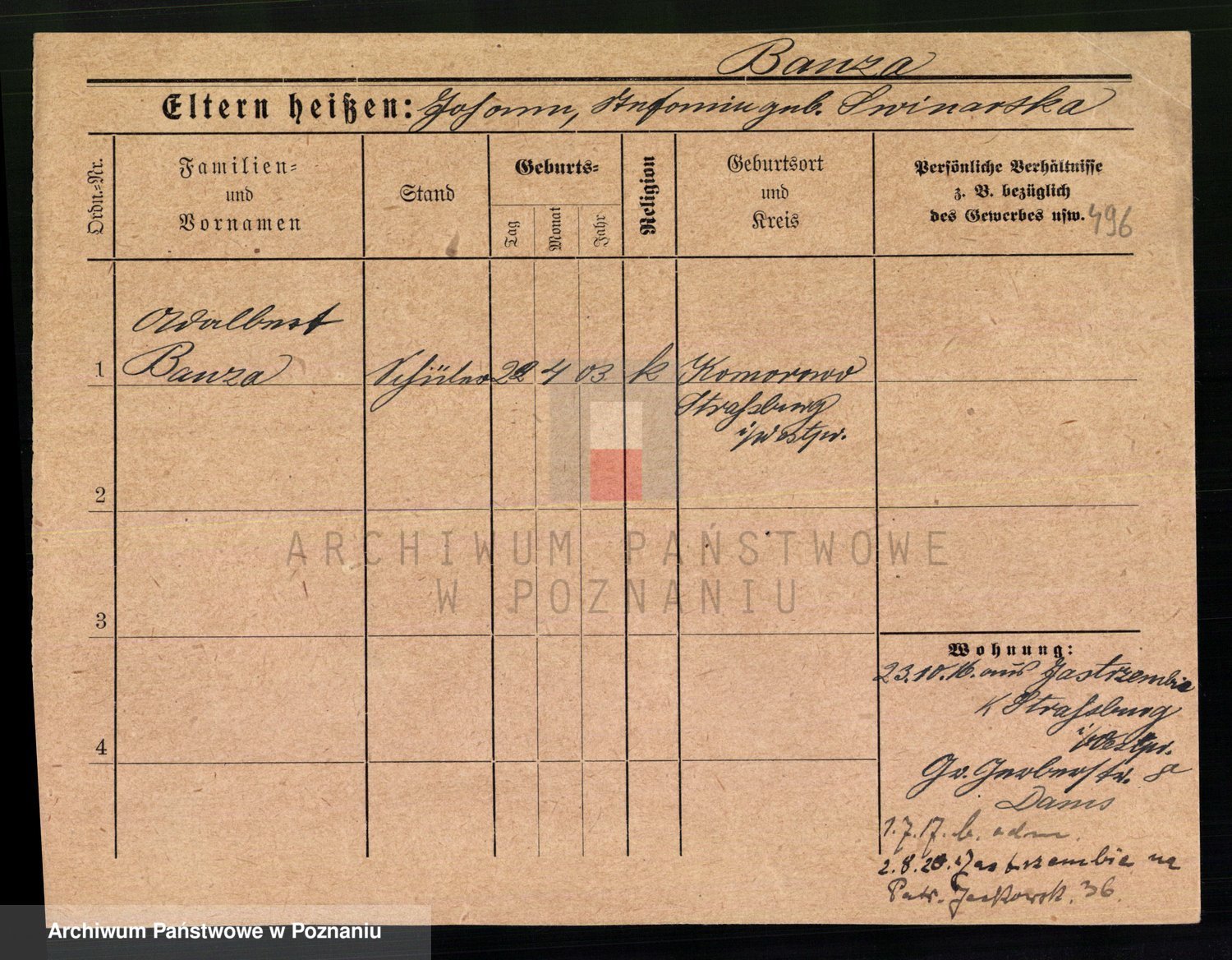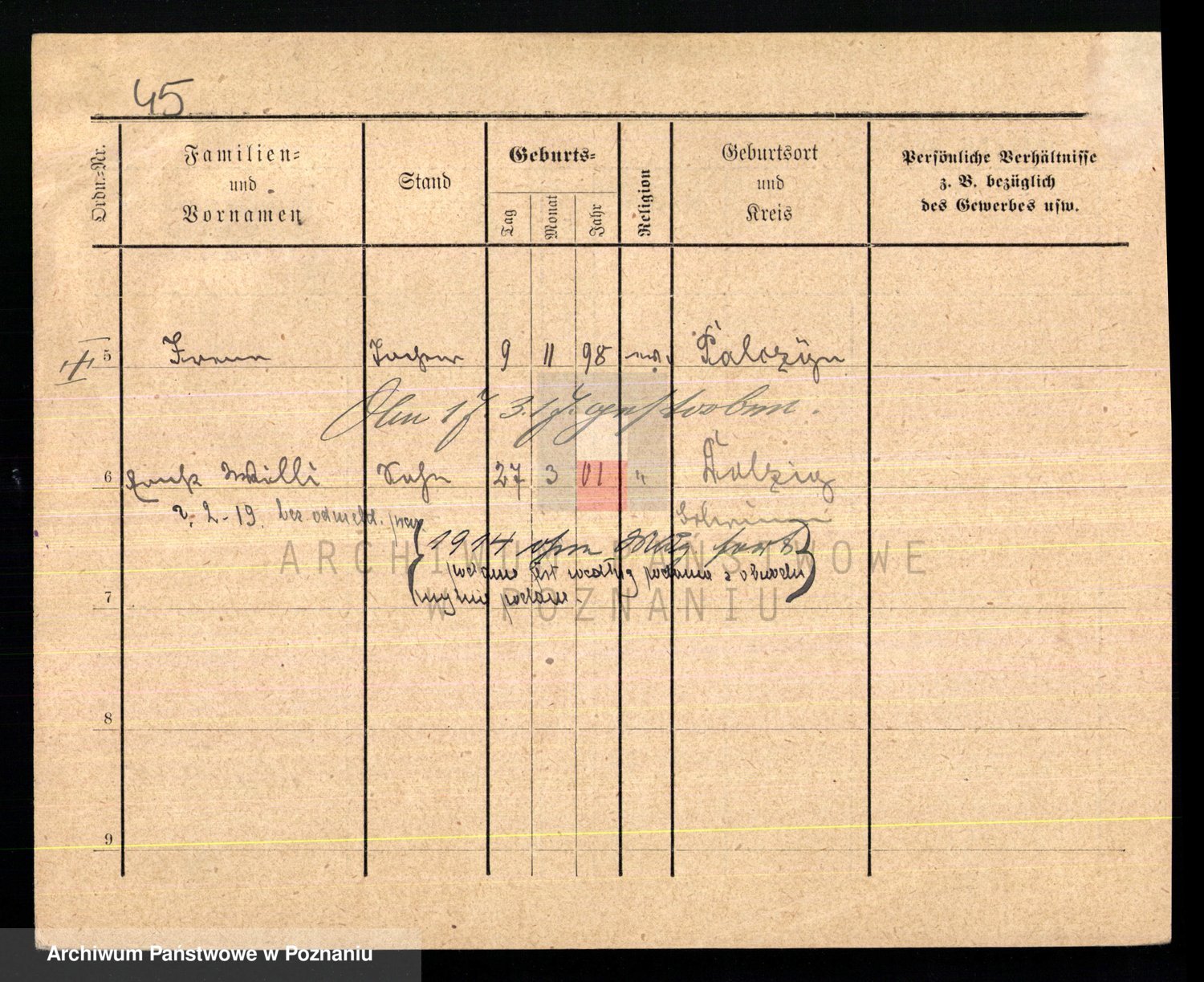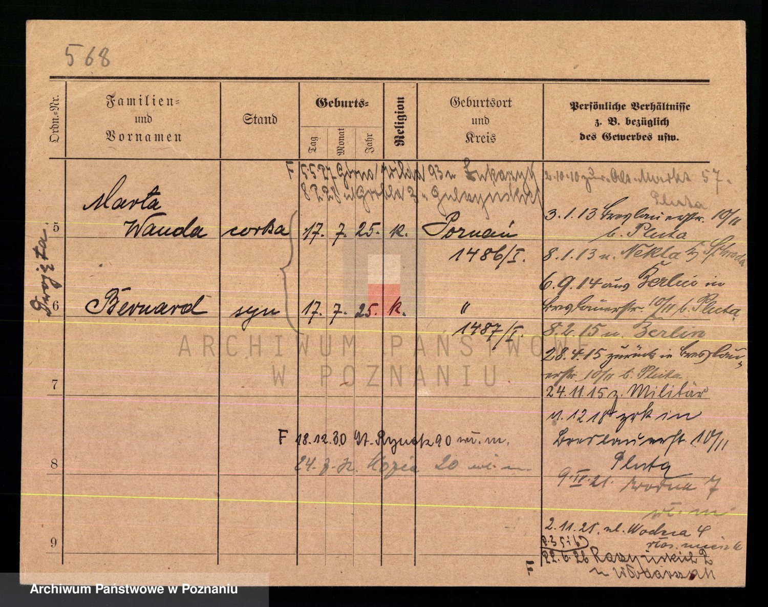 Podgląd karty osobowej dostępny jest po kliknięciu na nazwisko lub ikonkę karty. Można dokonywać powiększenia (ikony na górze) lub przechodzić między kolejnymi skanami (strzałki po bokach).