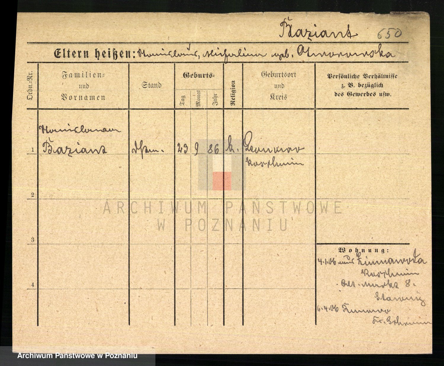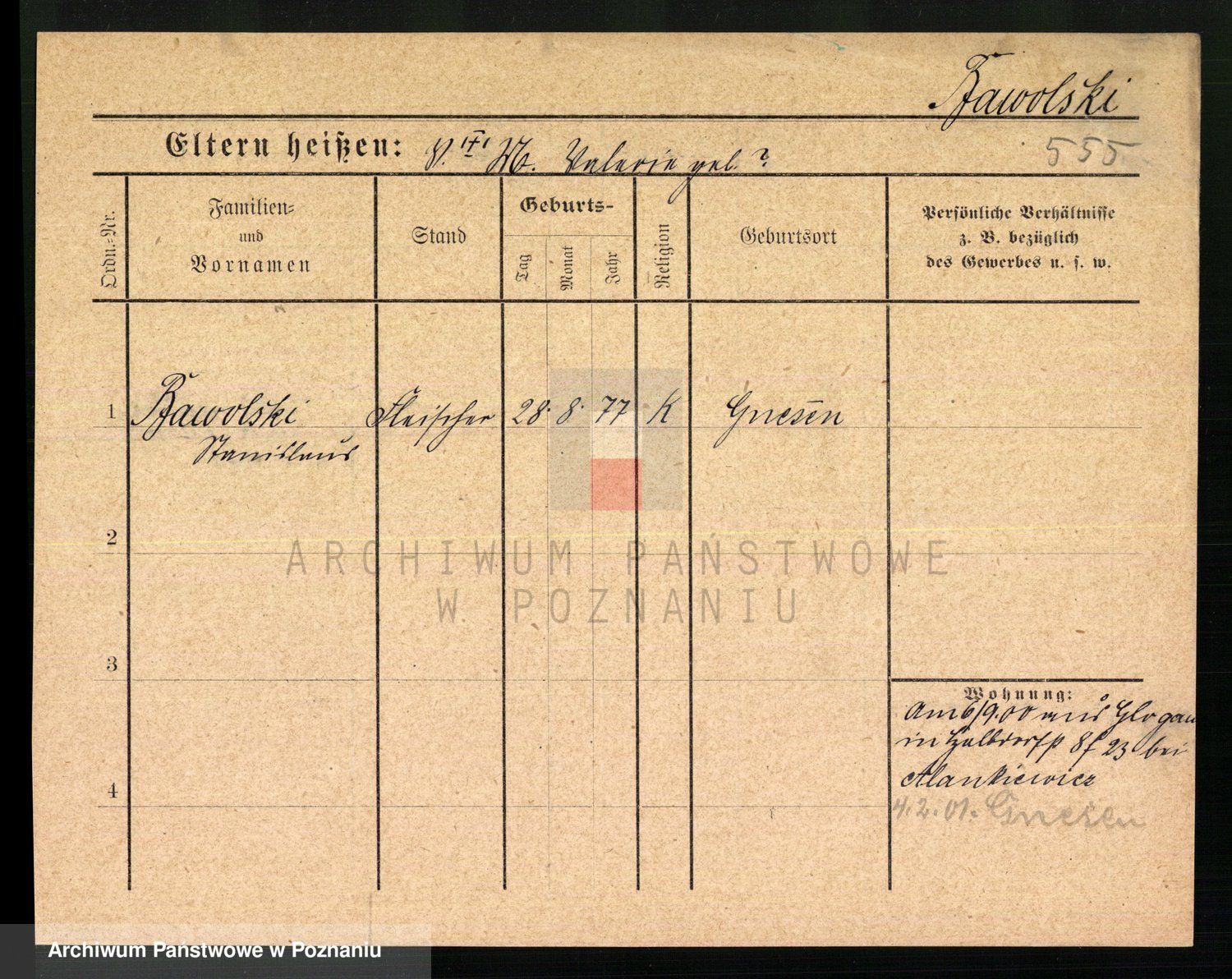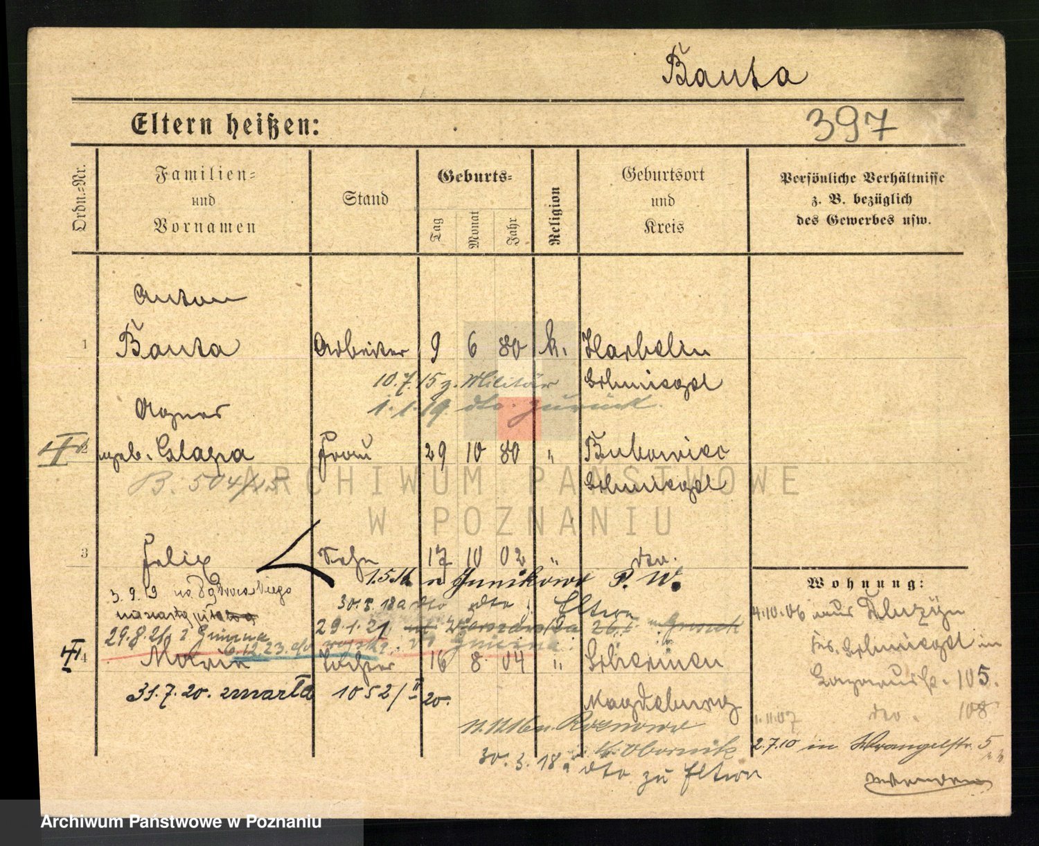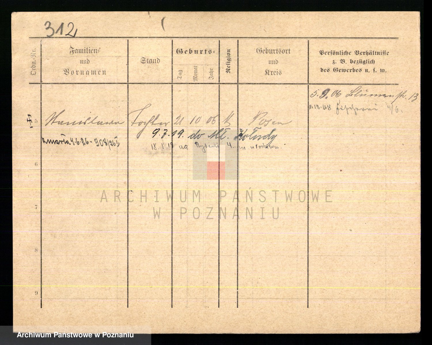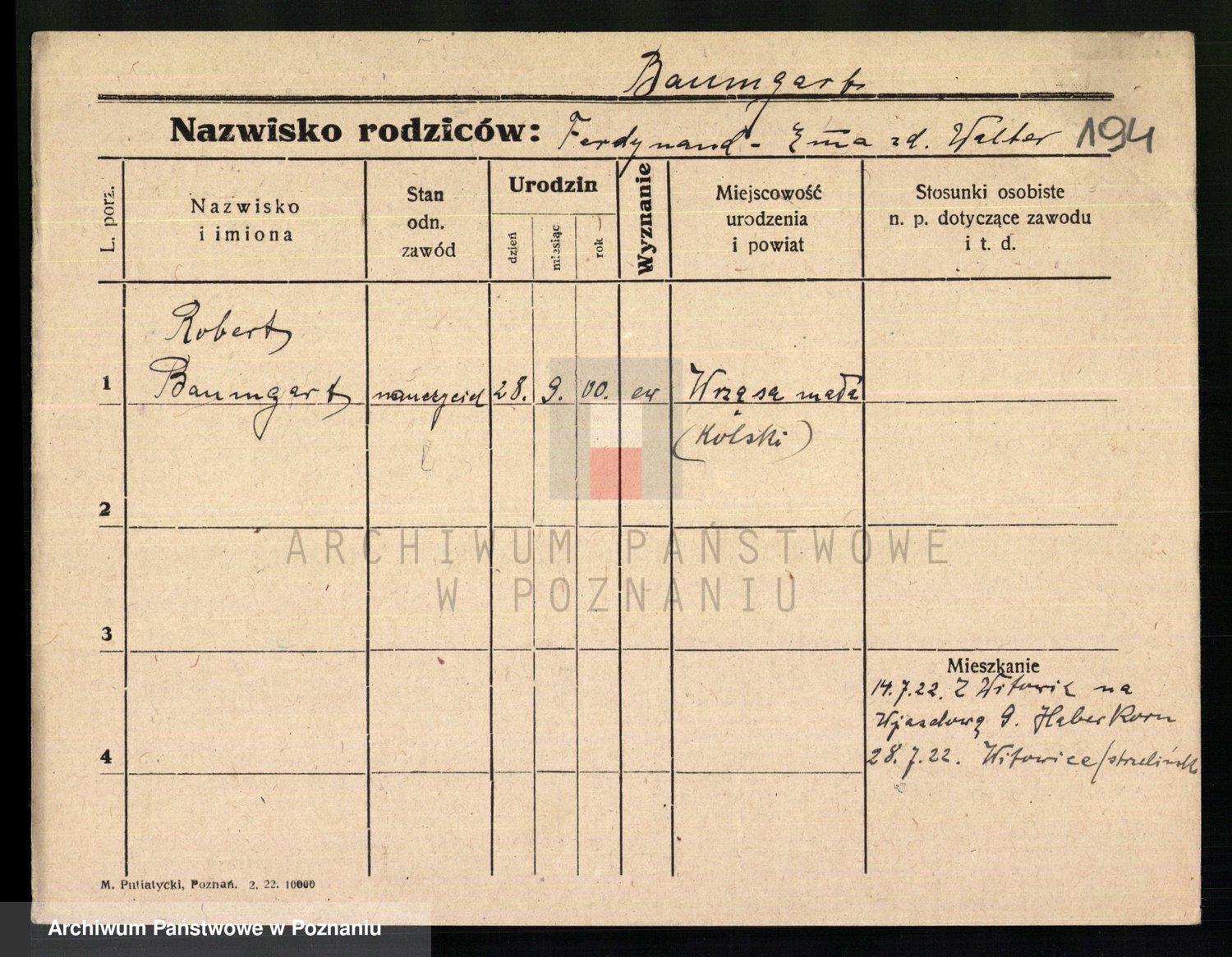 Podgląd karty osobowej dostępny jest po kliknięciu na nazwisko lub ikonkę karty. Można dokonywać powiększenia (ikony na górze) lub przechodzić między kolejnymi skanami (strzałki po bokach).