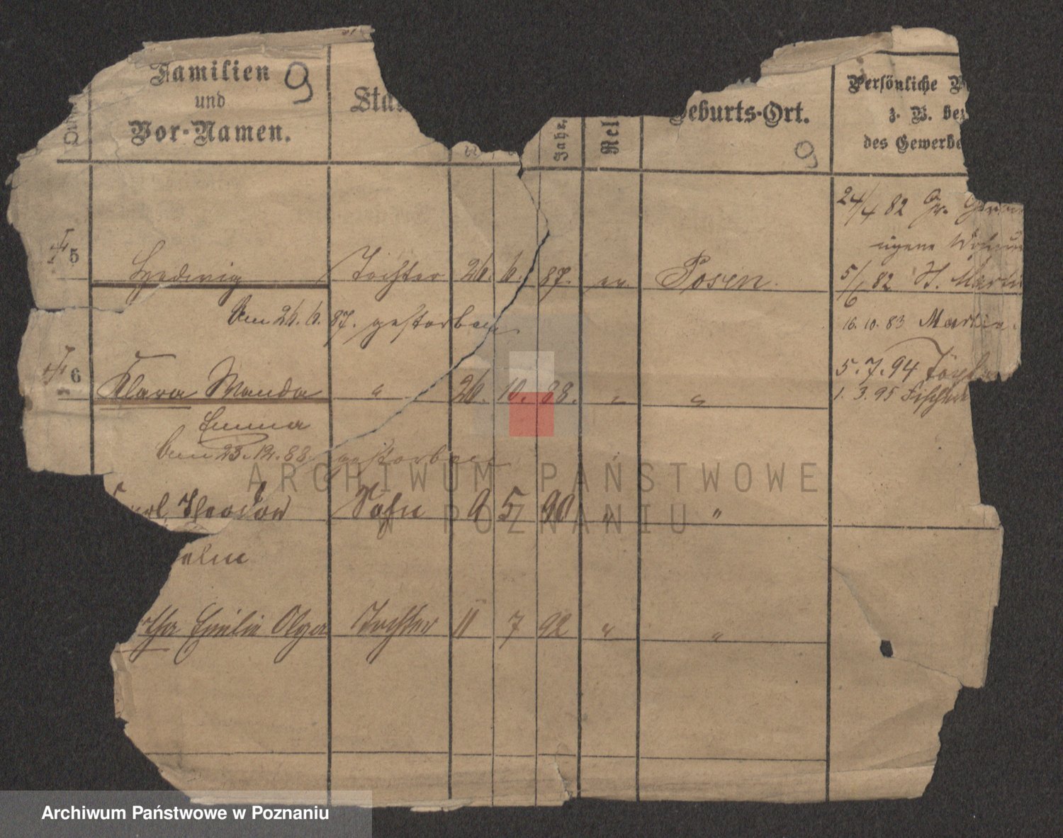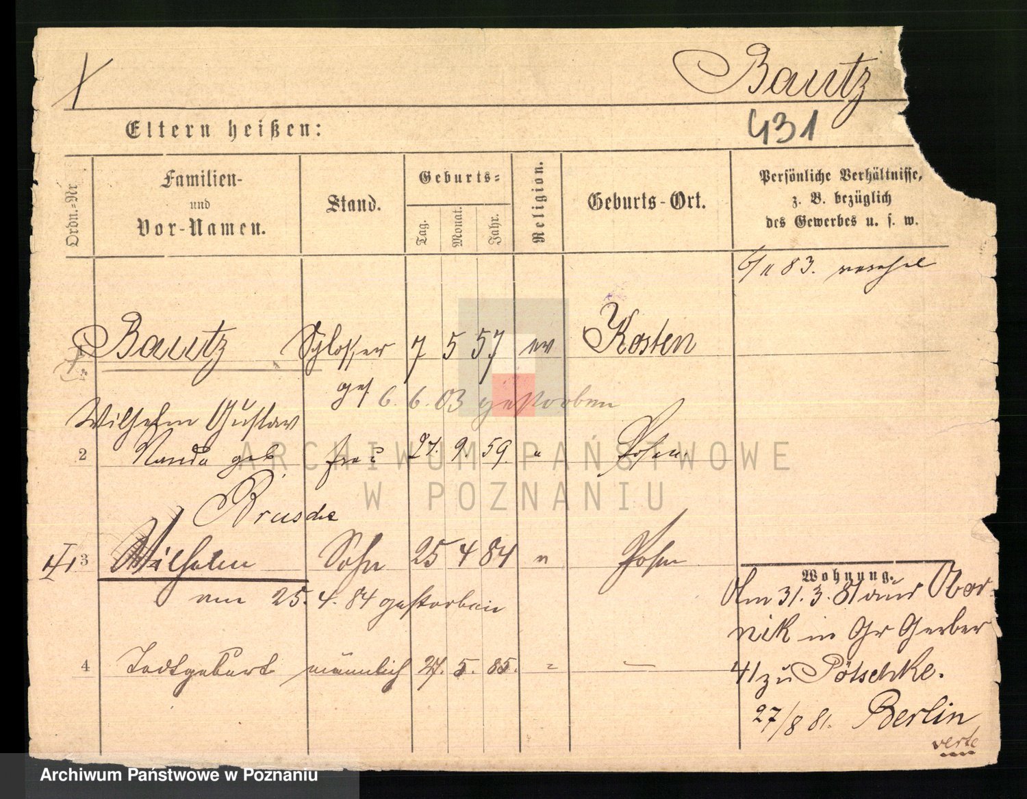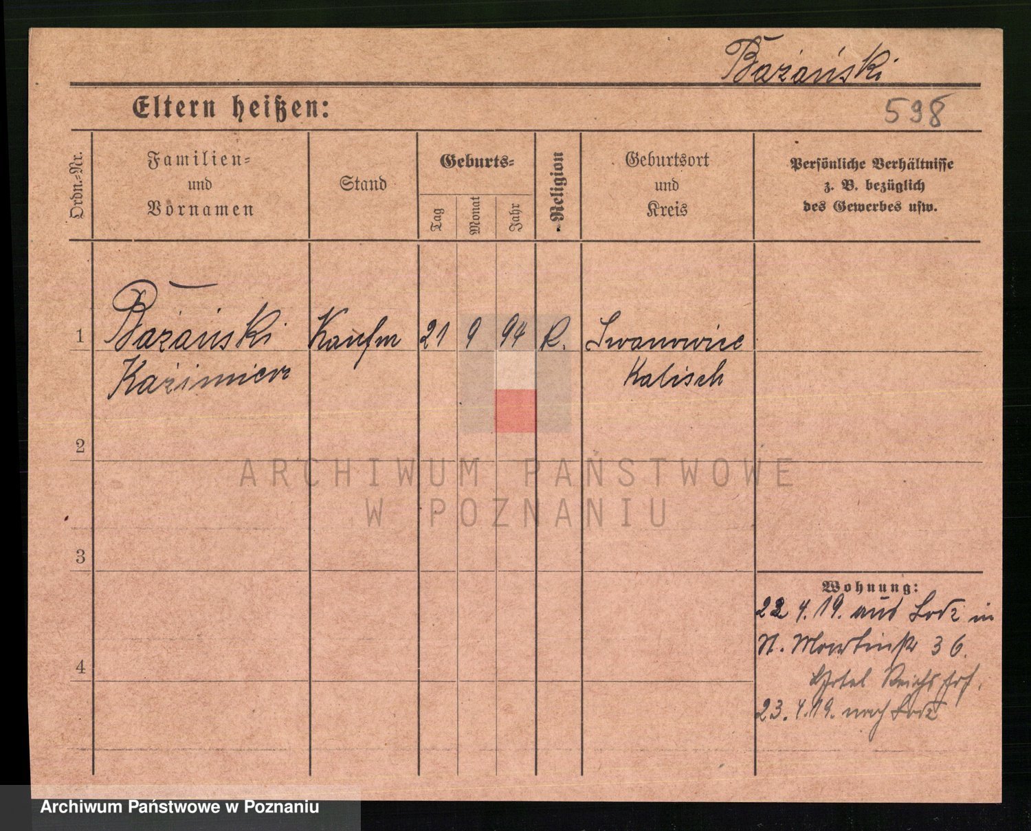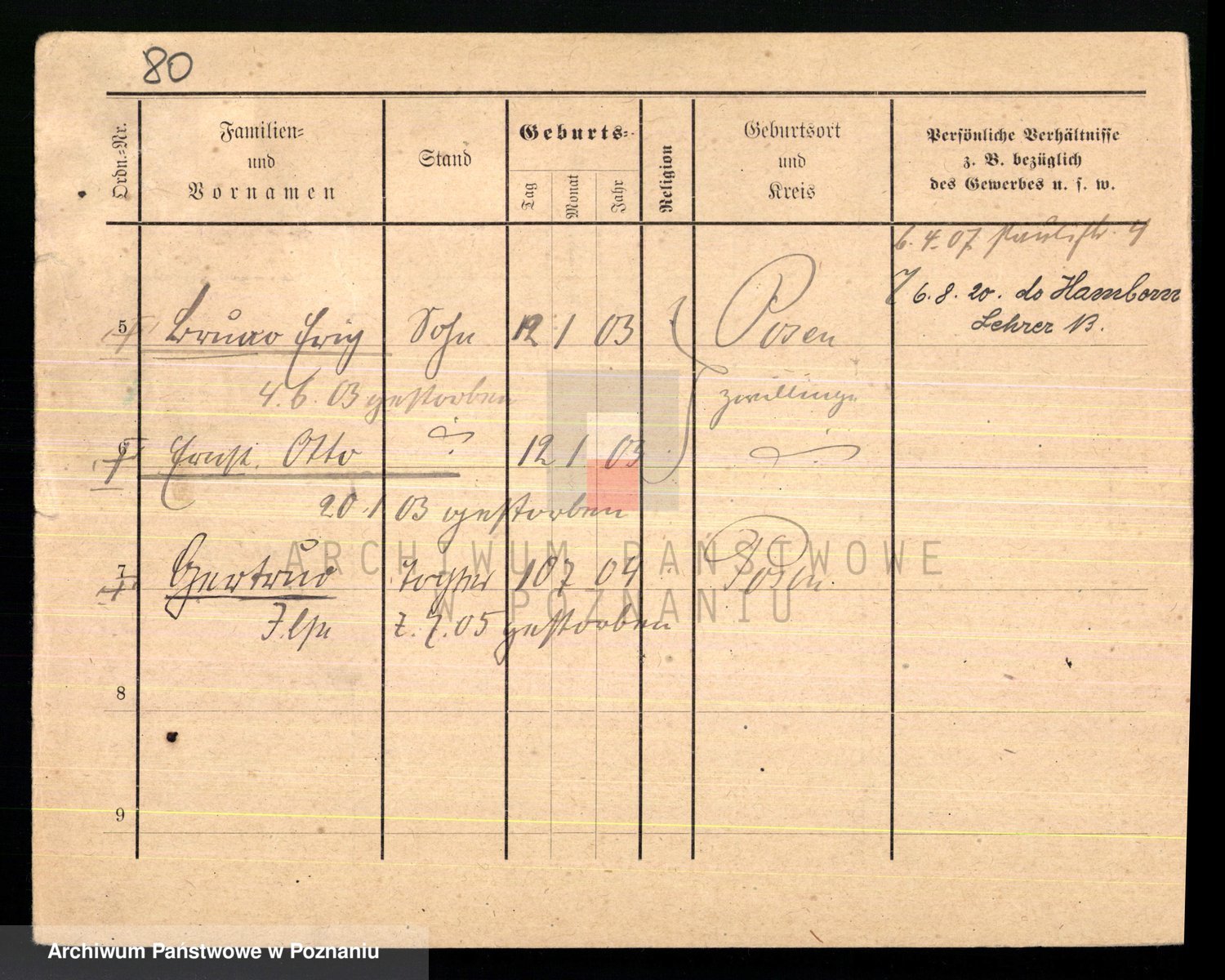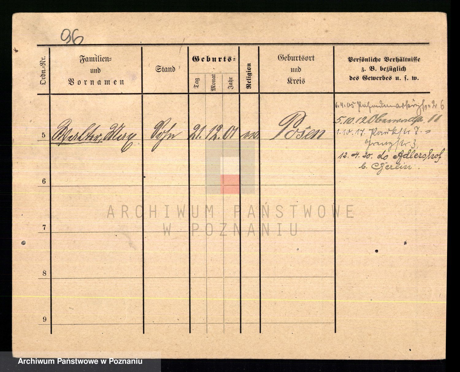 Podgląd karty osobowej dostępny jest po kliknięciu na nazwisko lub ikonkę karty. Można dokonywać powiększenia (ikony na górze) lub przechodzić między kolejnymi skanami (strzałki po bokach).