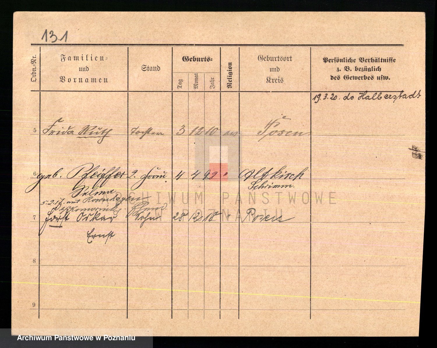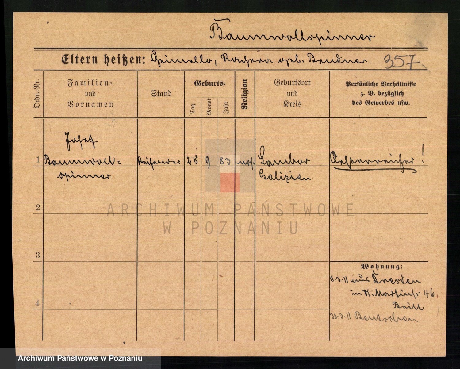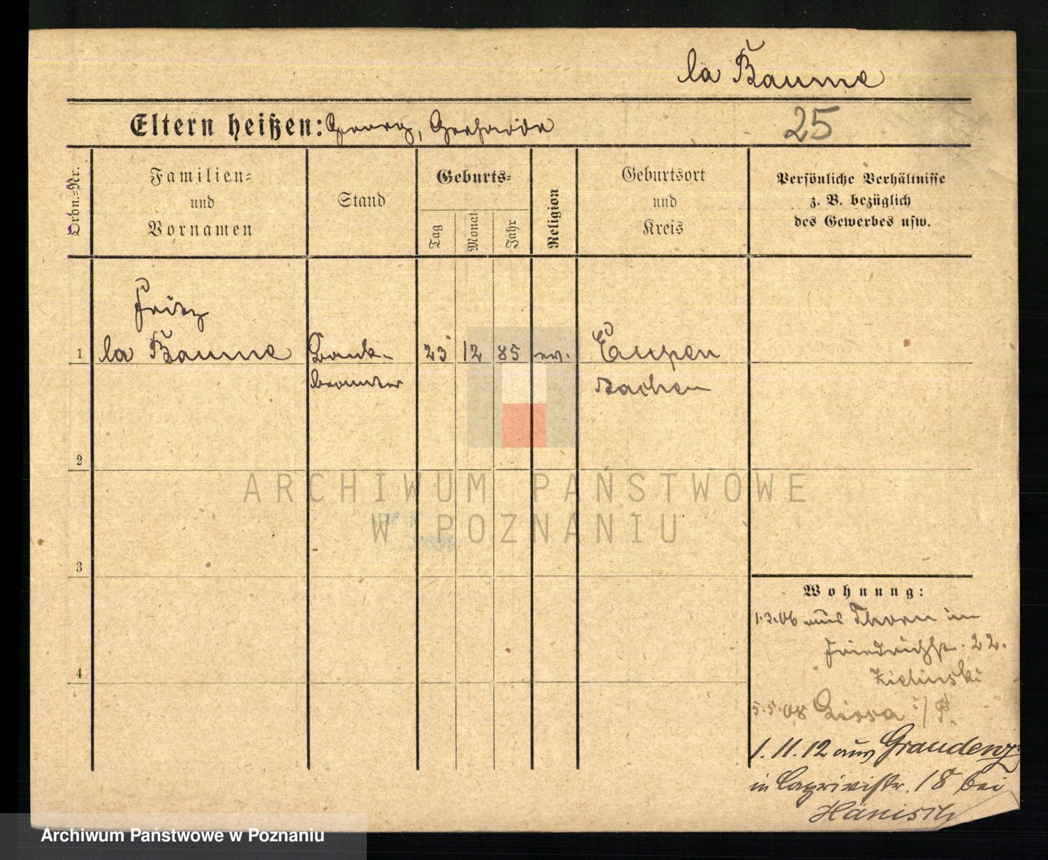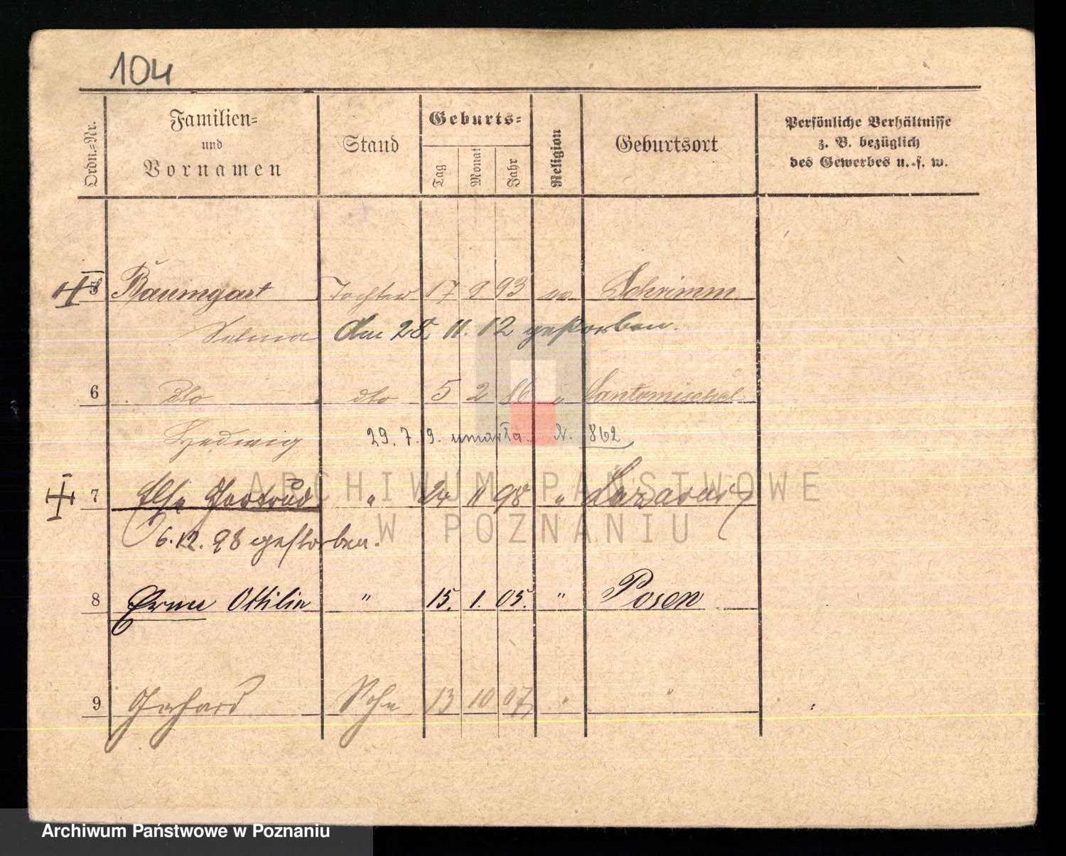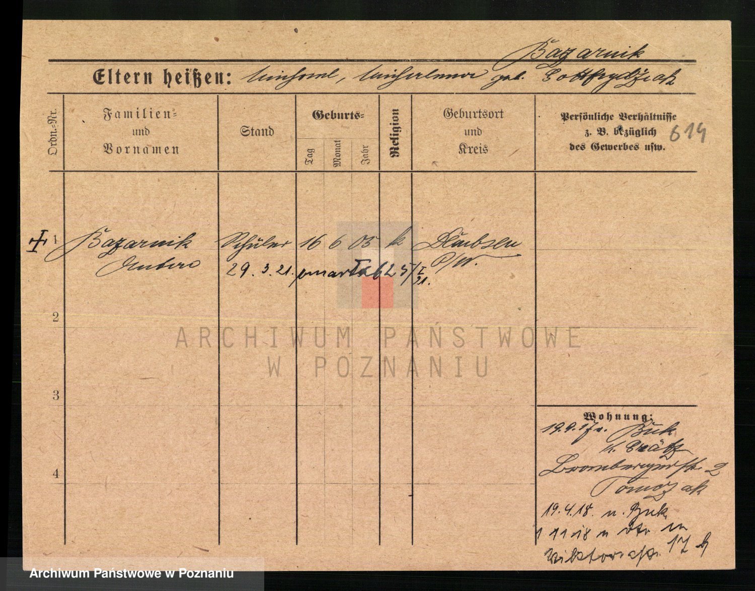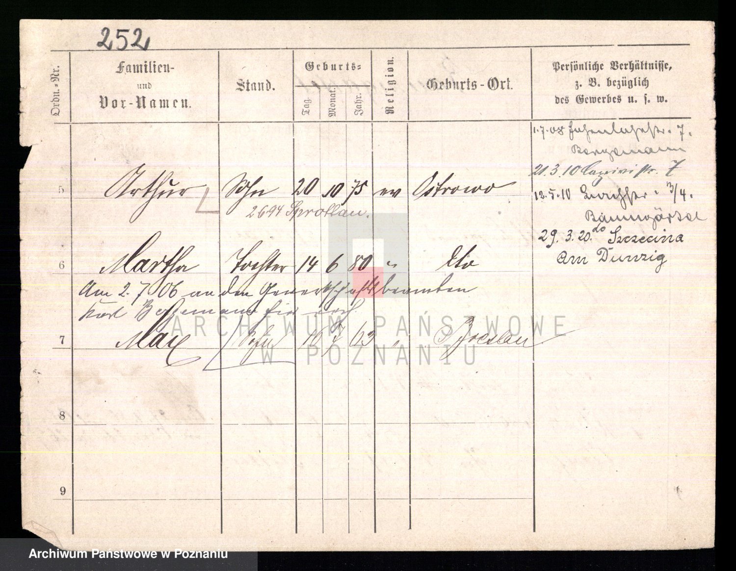 Podgląd karty osobowej dostępny jest po kliknięciu na nazwisko lub ikonkę karty. Można dokonywać powiększenia (ikony na górze) lub przechodzić między kolejnymi skanami (strzałki po bokach).