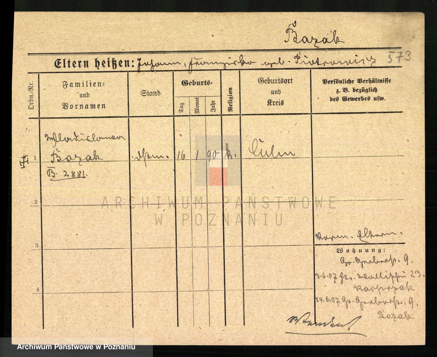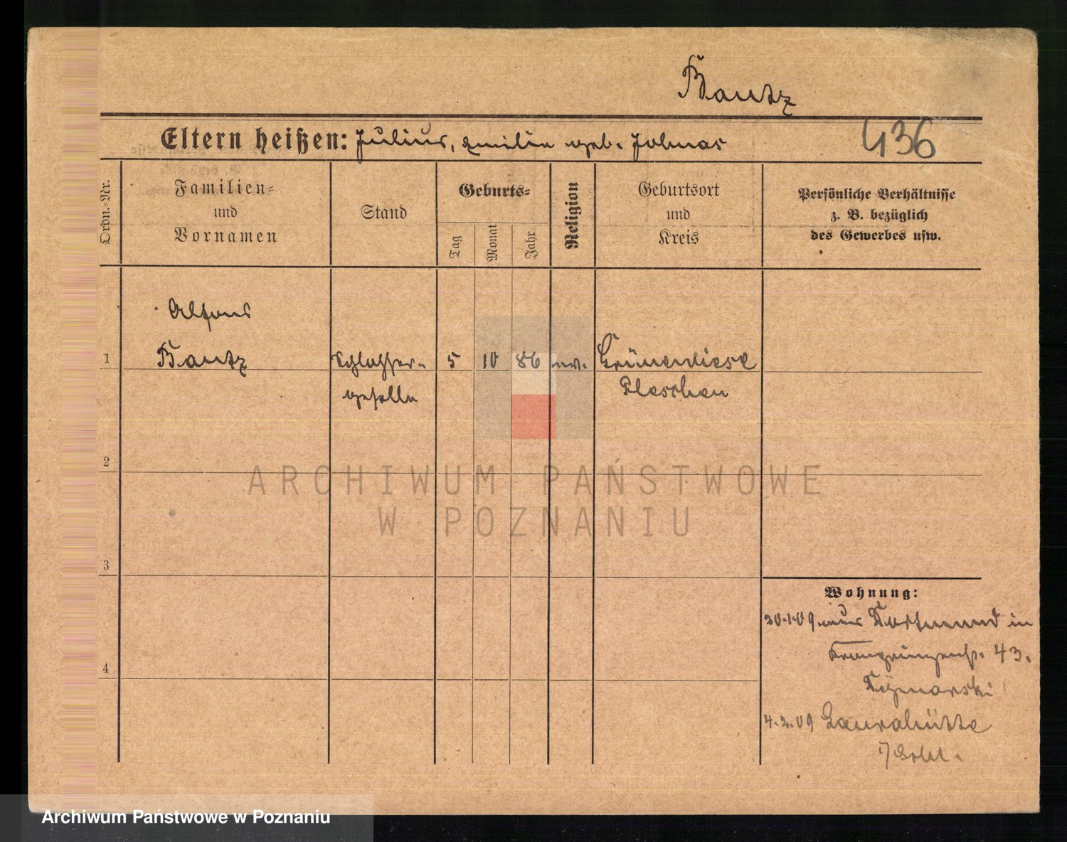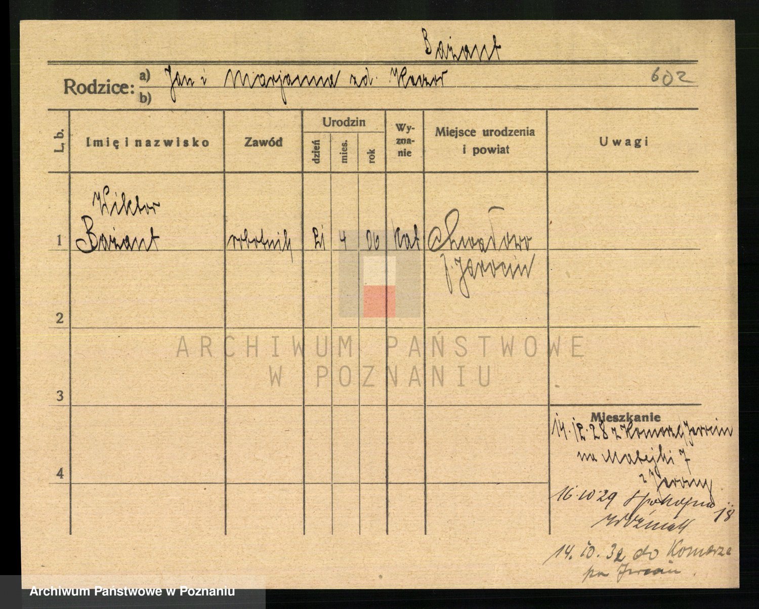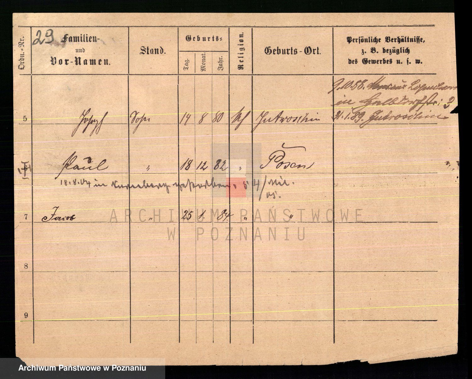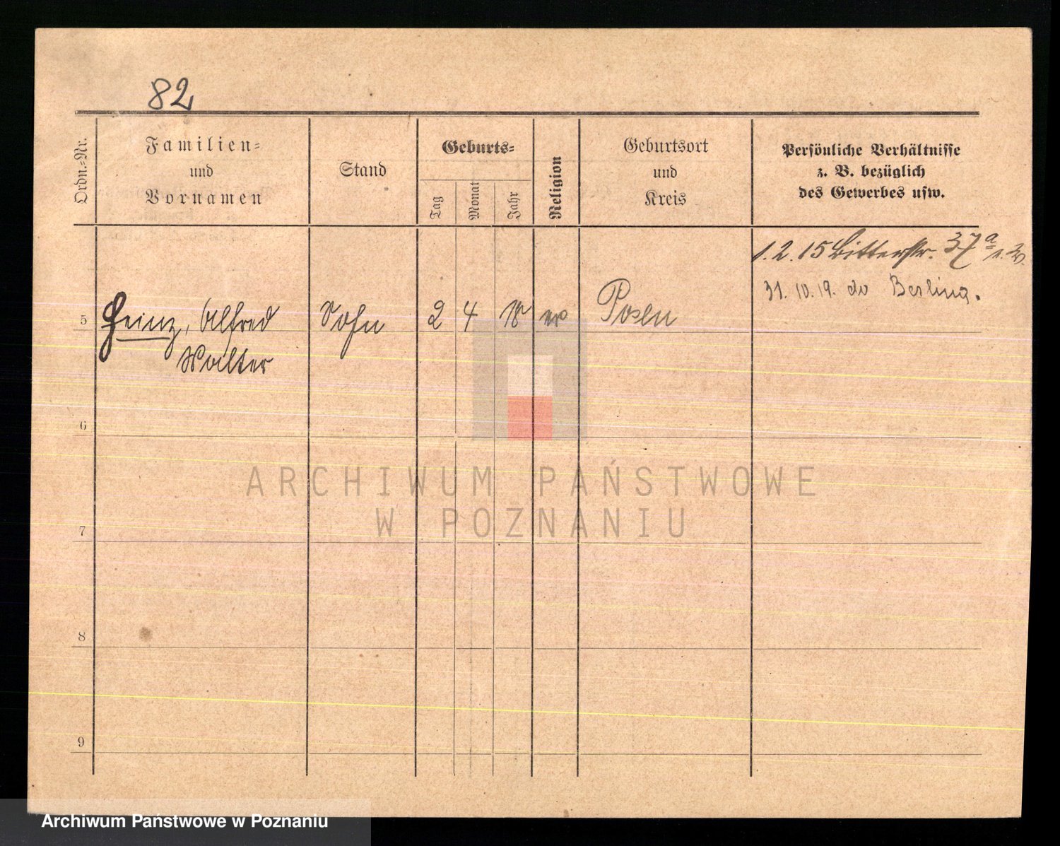 Podgląd karty osobowej dostępny jest po kliknięciu na nazwisko lub ikonkę karty. Można dokonywać powiększenia (ikony na górze) lub przechodzić między kolejnymi skanami (strzałki po bokach).