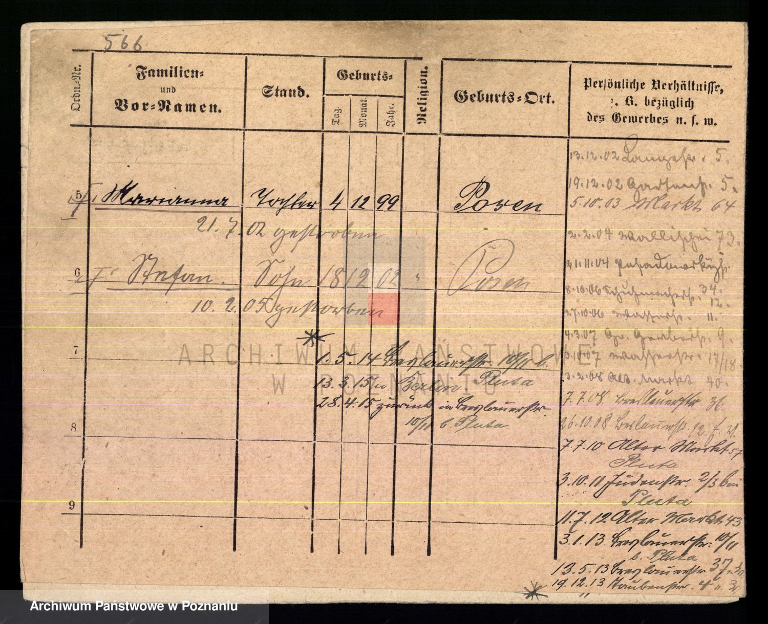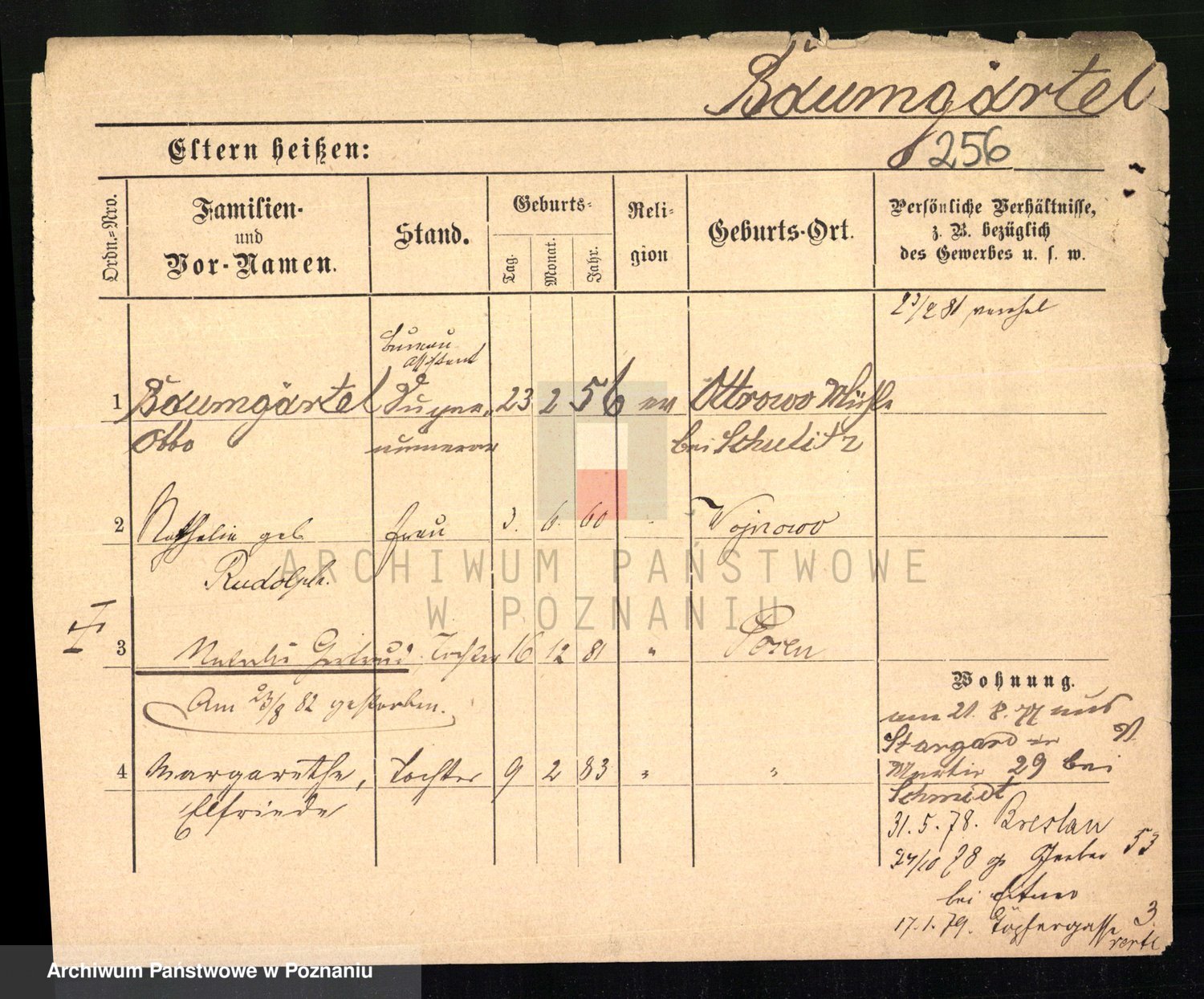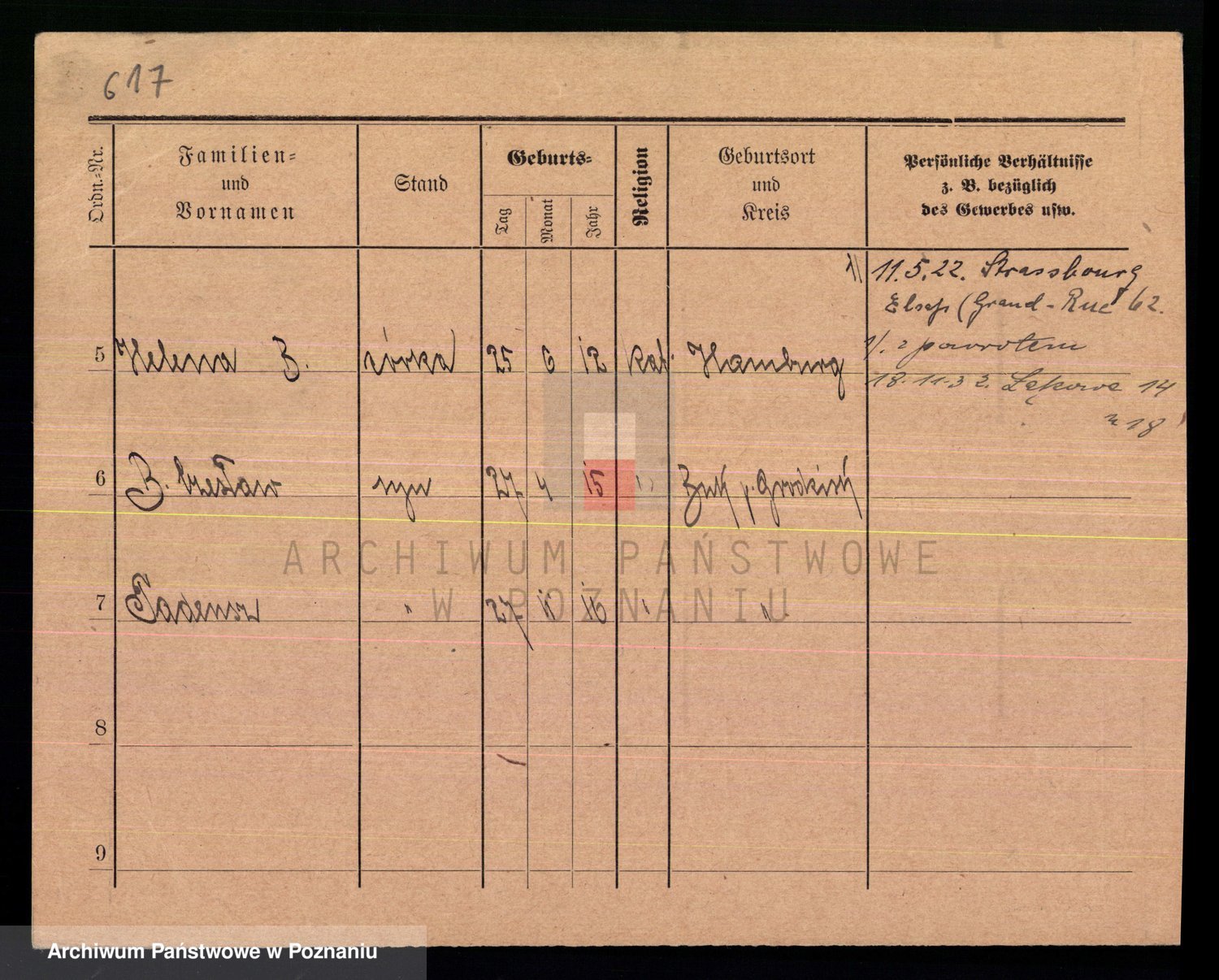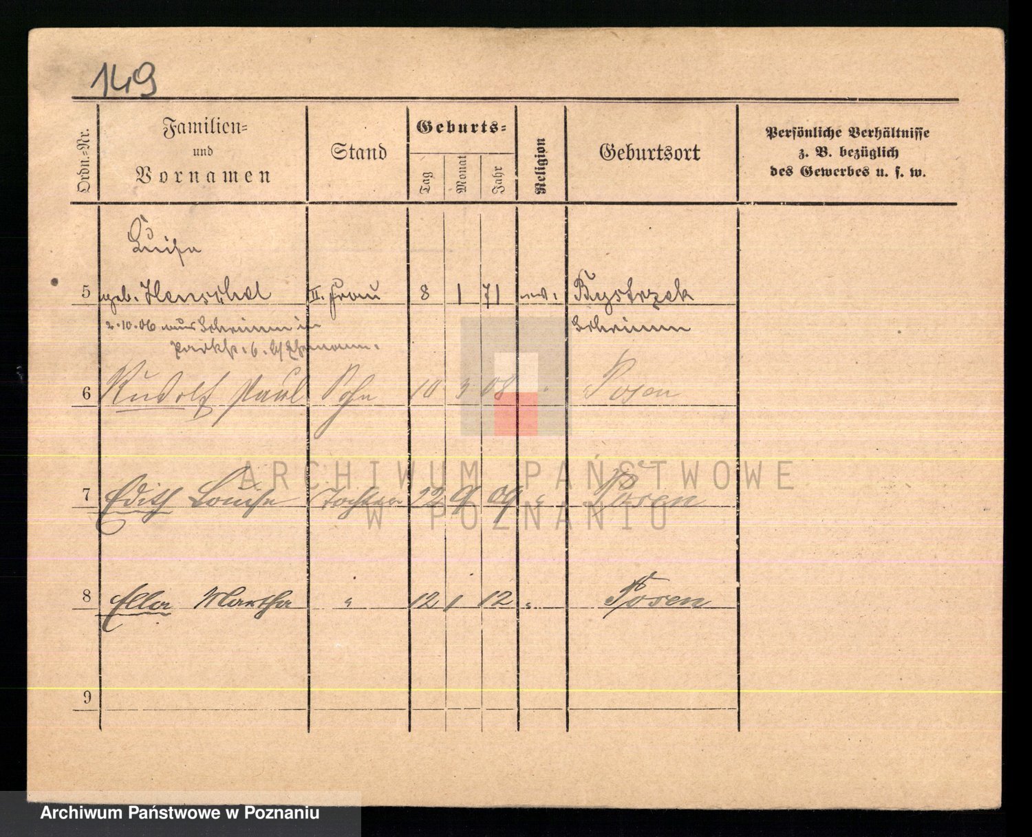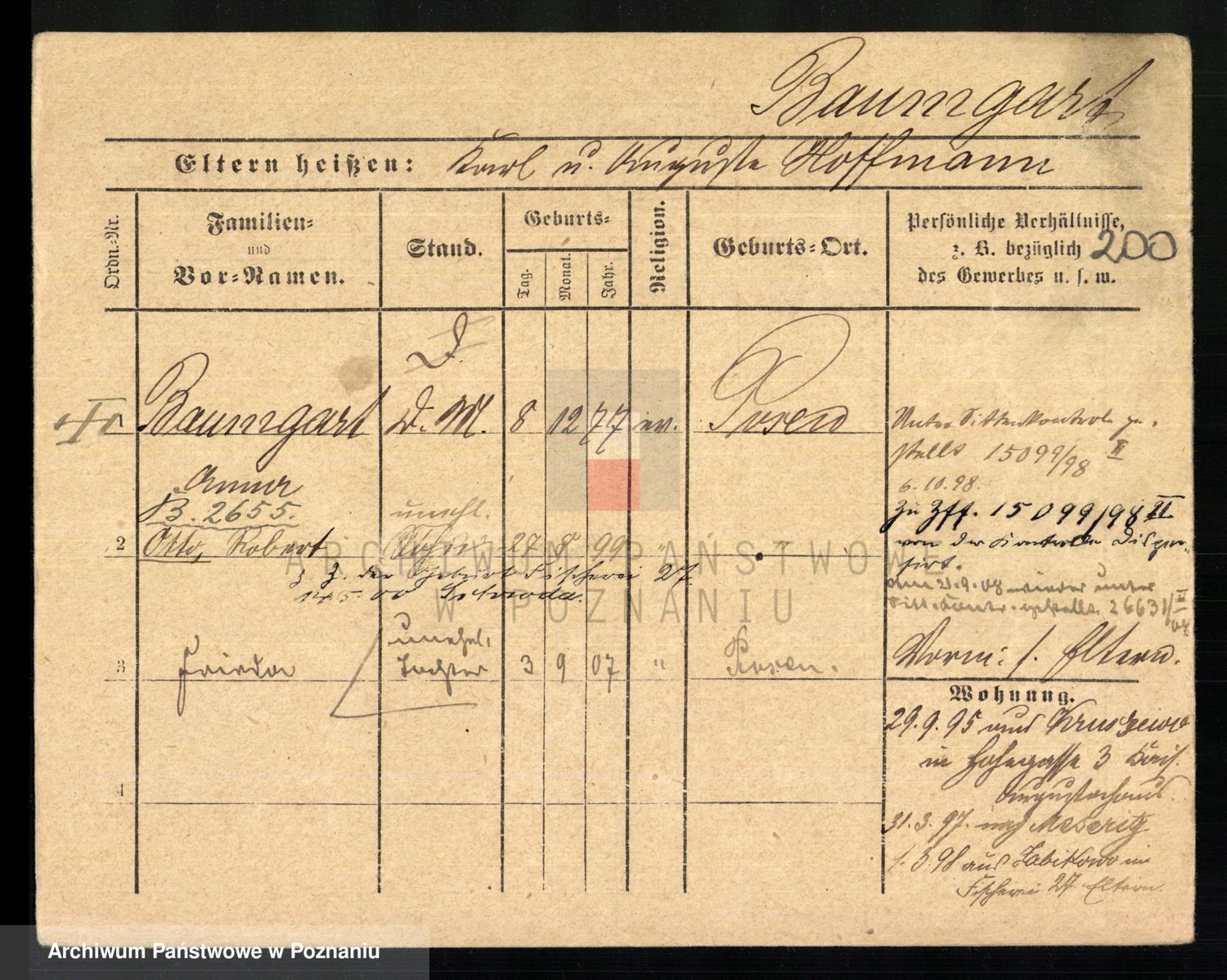 Podgląd karty osobowej dostępny jest po kliknięciu na nazwisko lub ikonkę karty. Można dokonywać powiększenia (ikony na górze) lub przechodzić między kolejnymi skanami (strzałki po bokach).