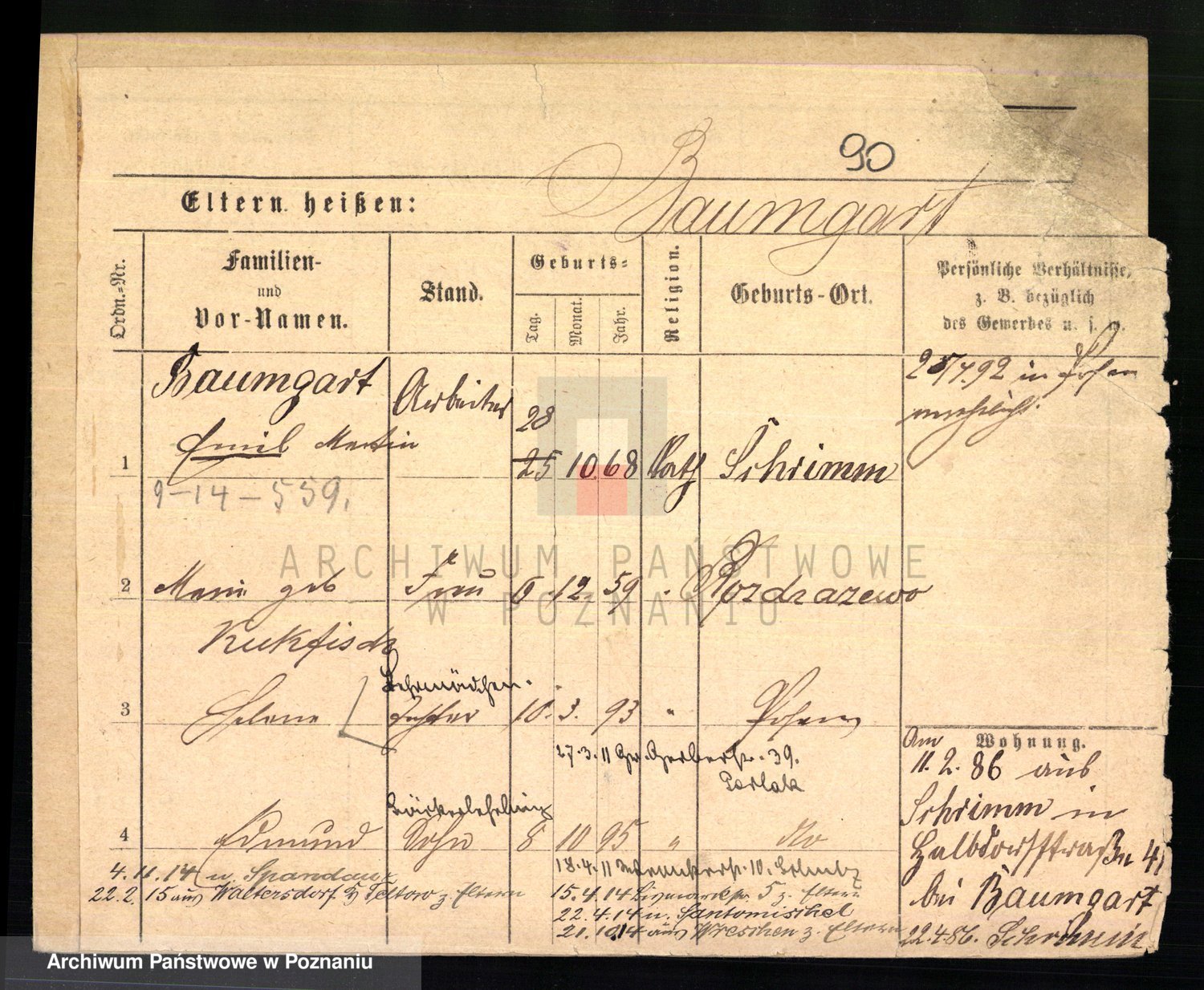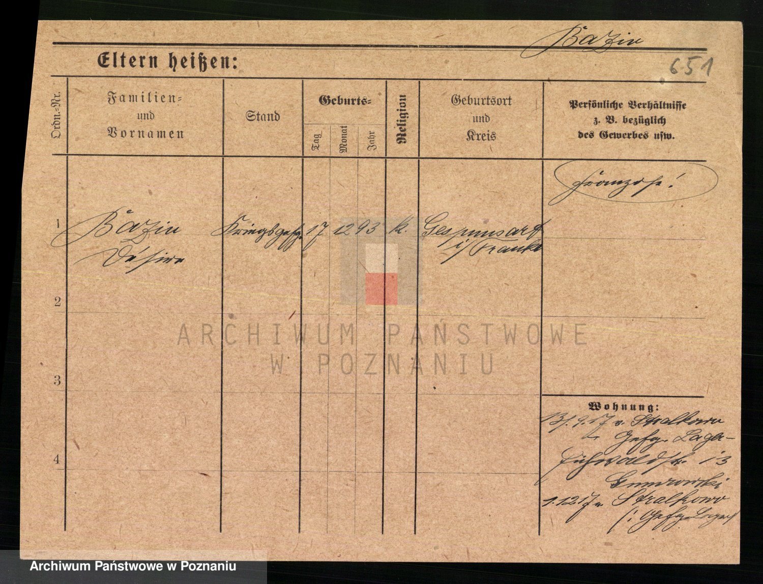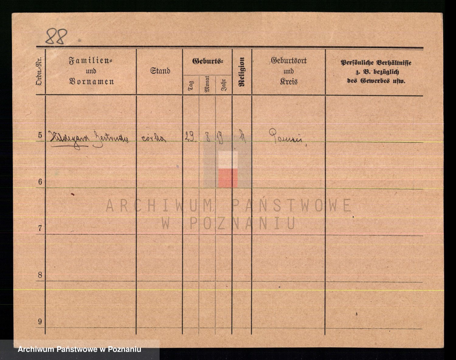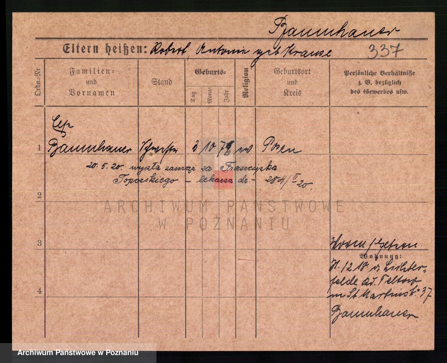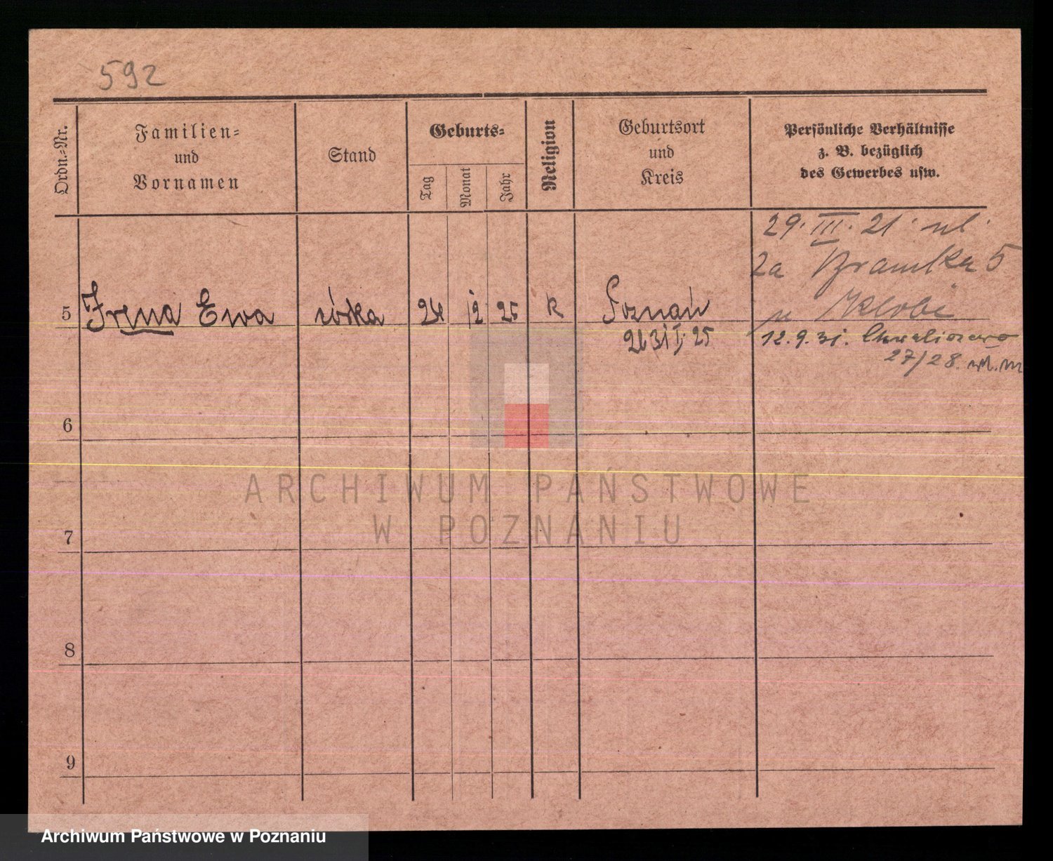Podgląd karty osobowej dostępny jest po kliknięciu na nazwisko lub ikonkę karty. Można dokonywać powiększenia (ikony na górze) lub przechodzić między kolejnymi skanami (strzałki po bokach).