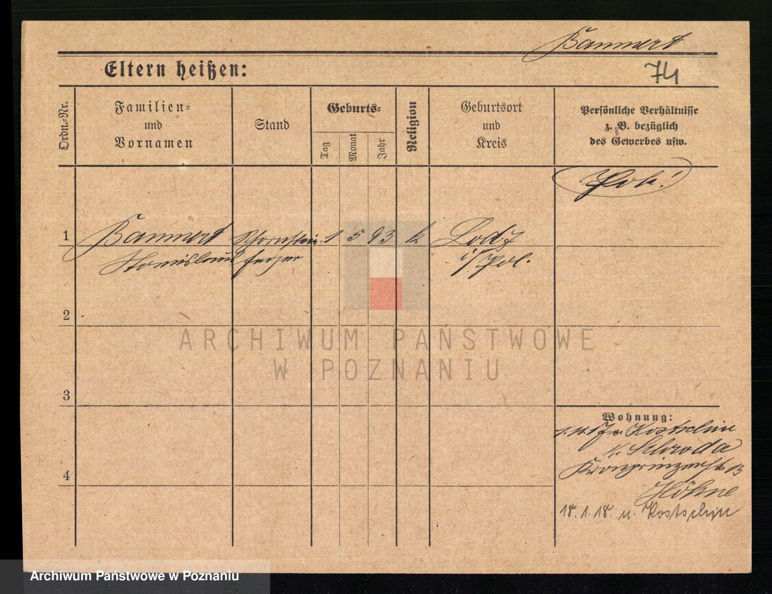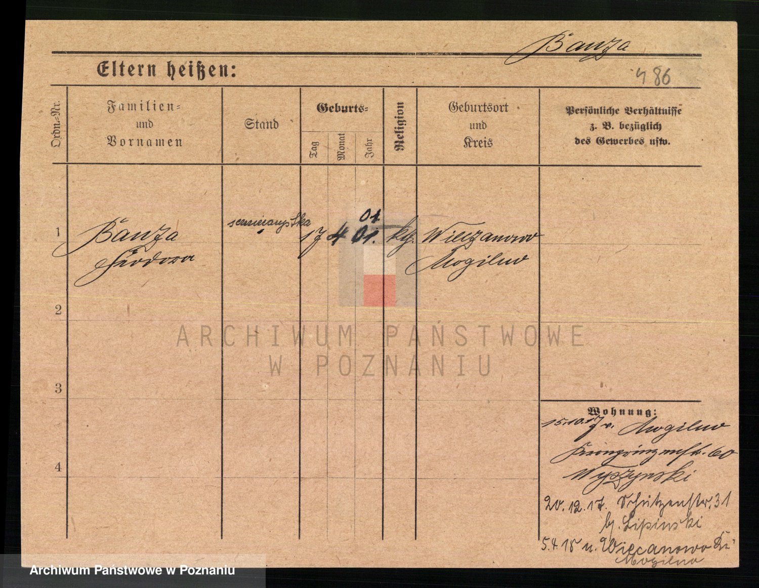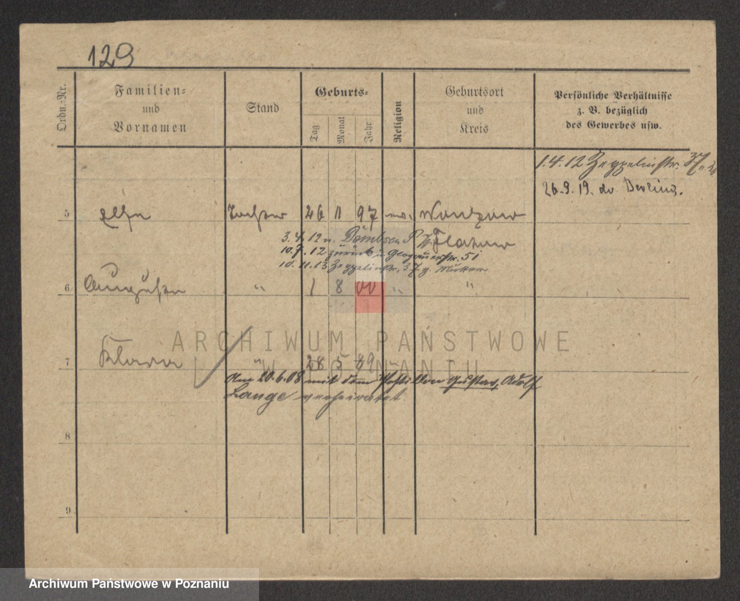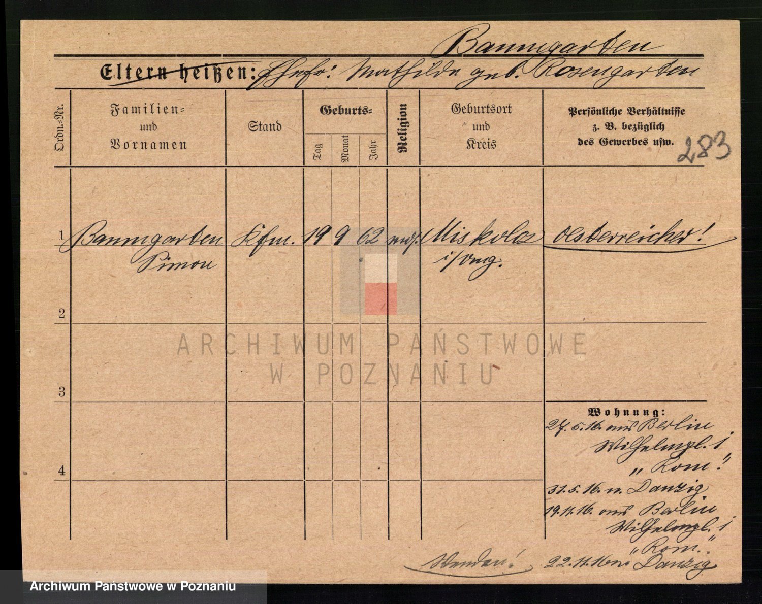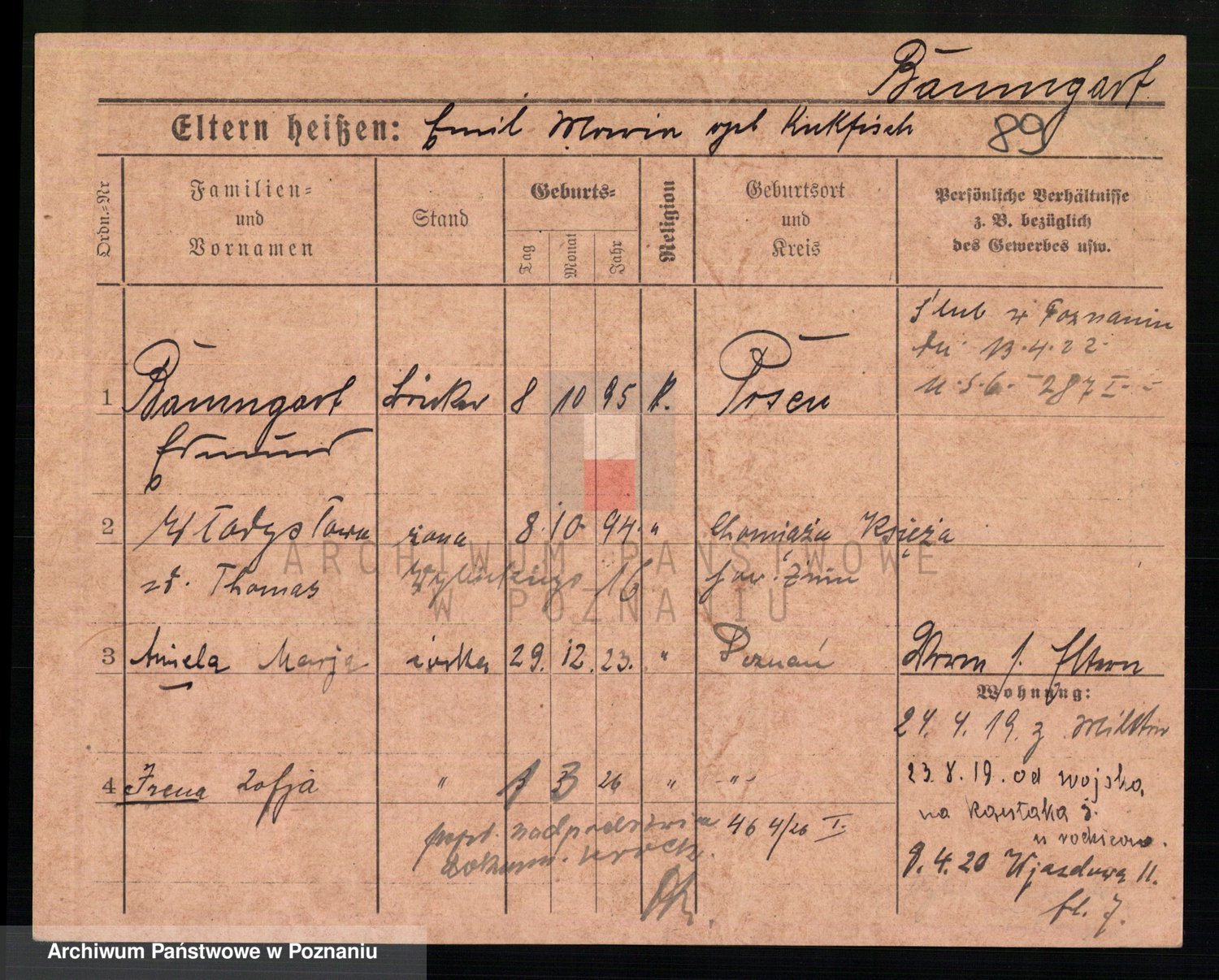 Podgląd karty osobowej dostępny jest po kliknięciu na nazwisko lub ikonkę karty. Można dokonywać powiększenia (ikony na górze) lub przechodzić między kolejnymi skanami (strzałki po bokach).