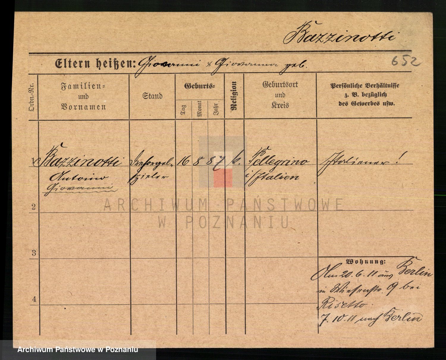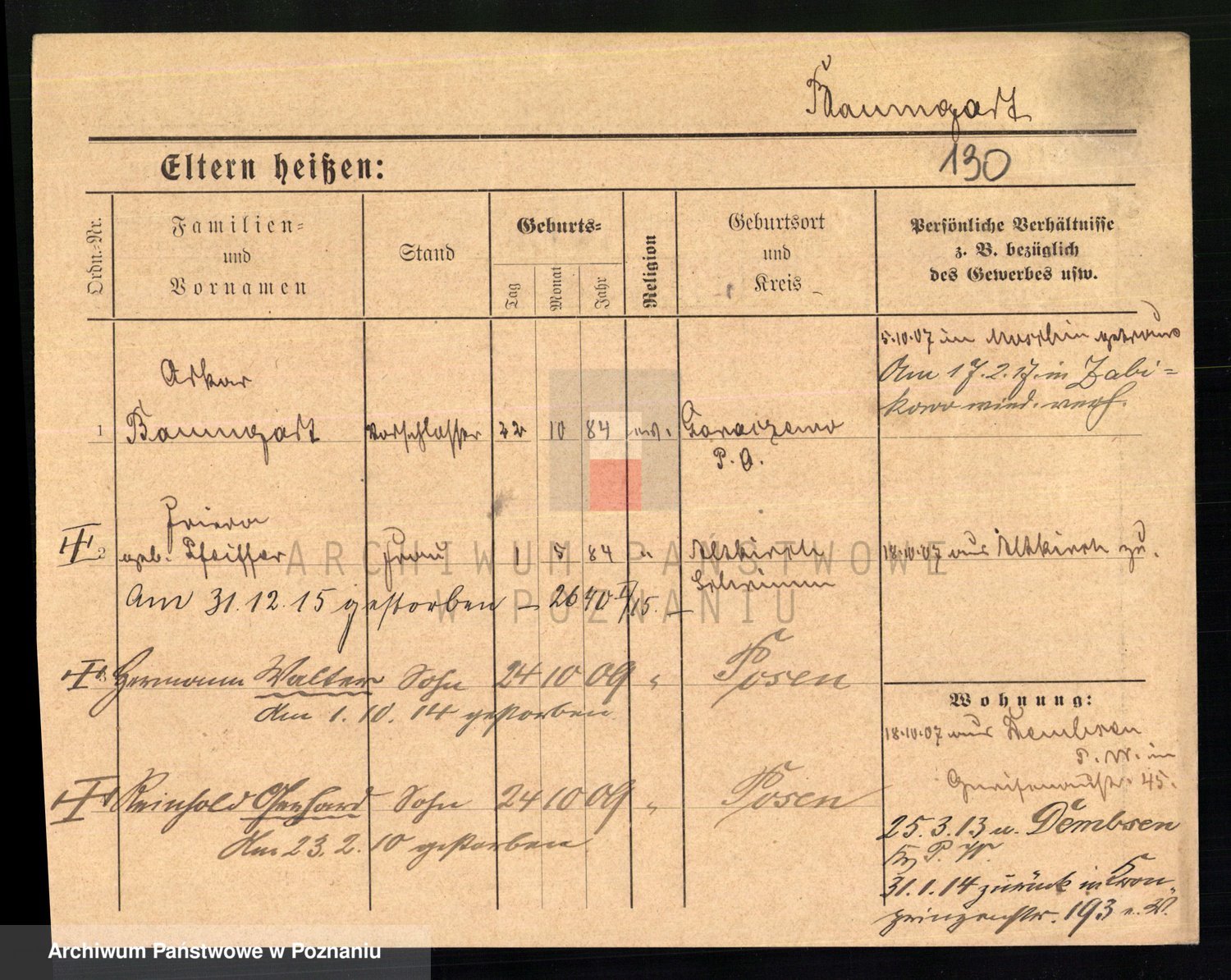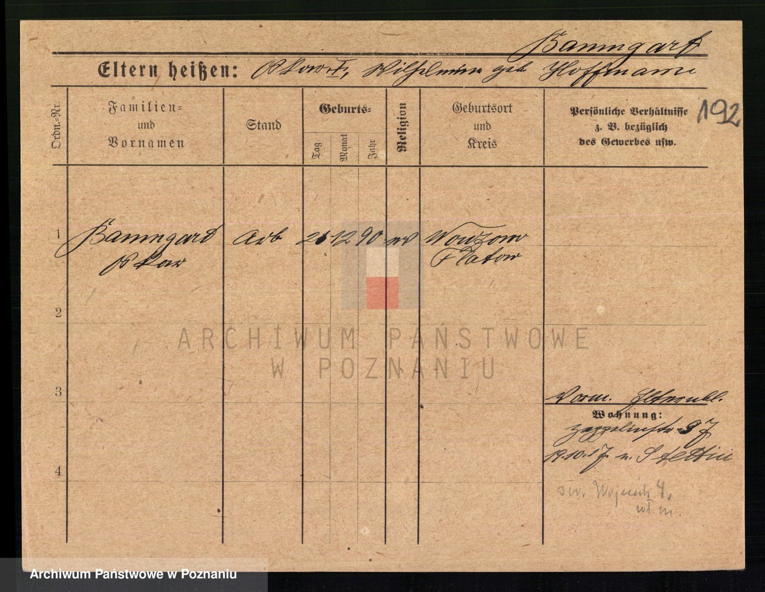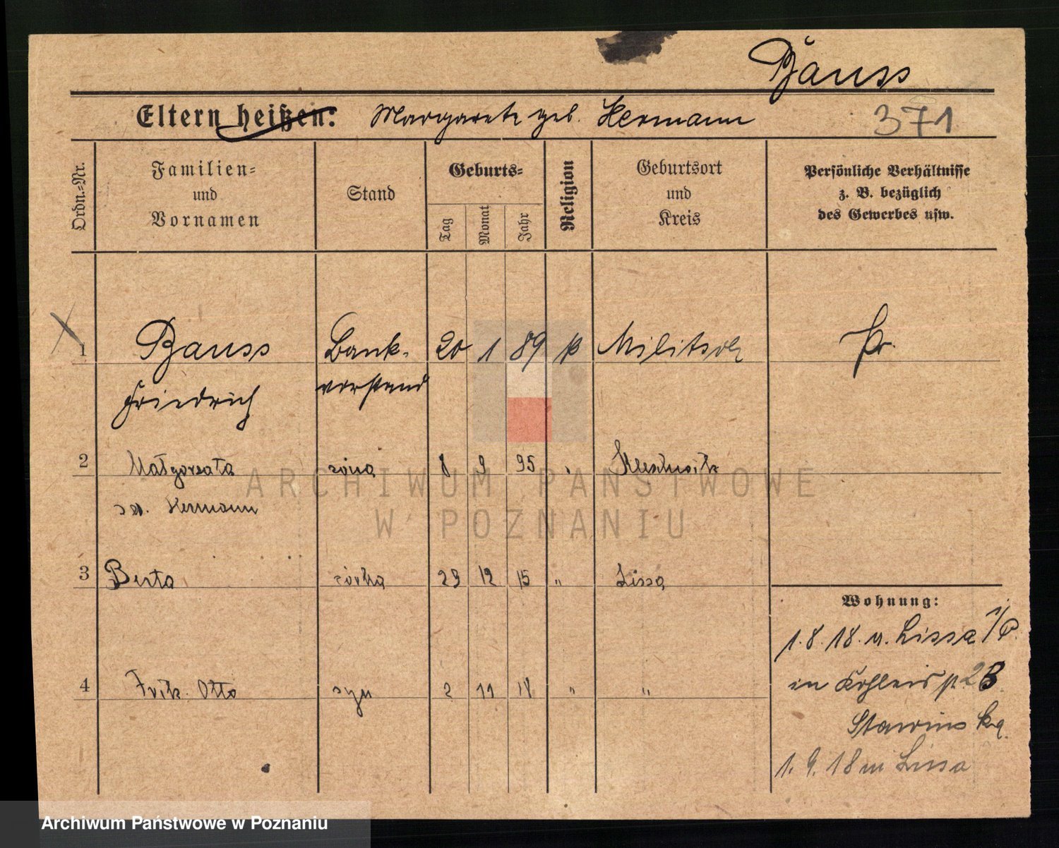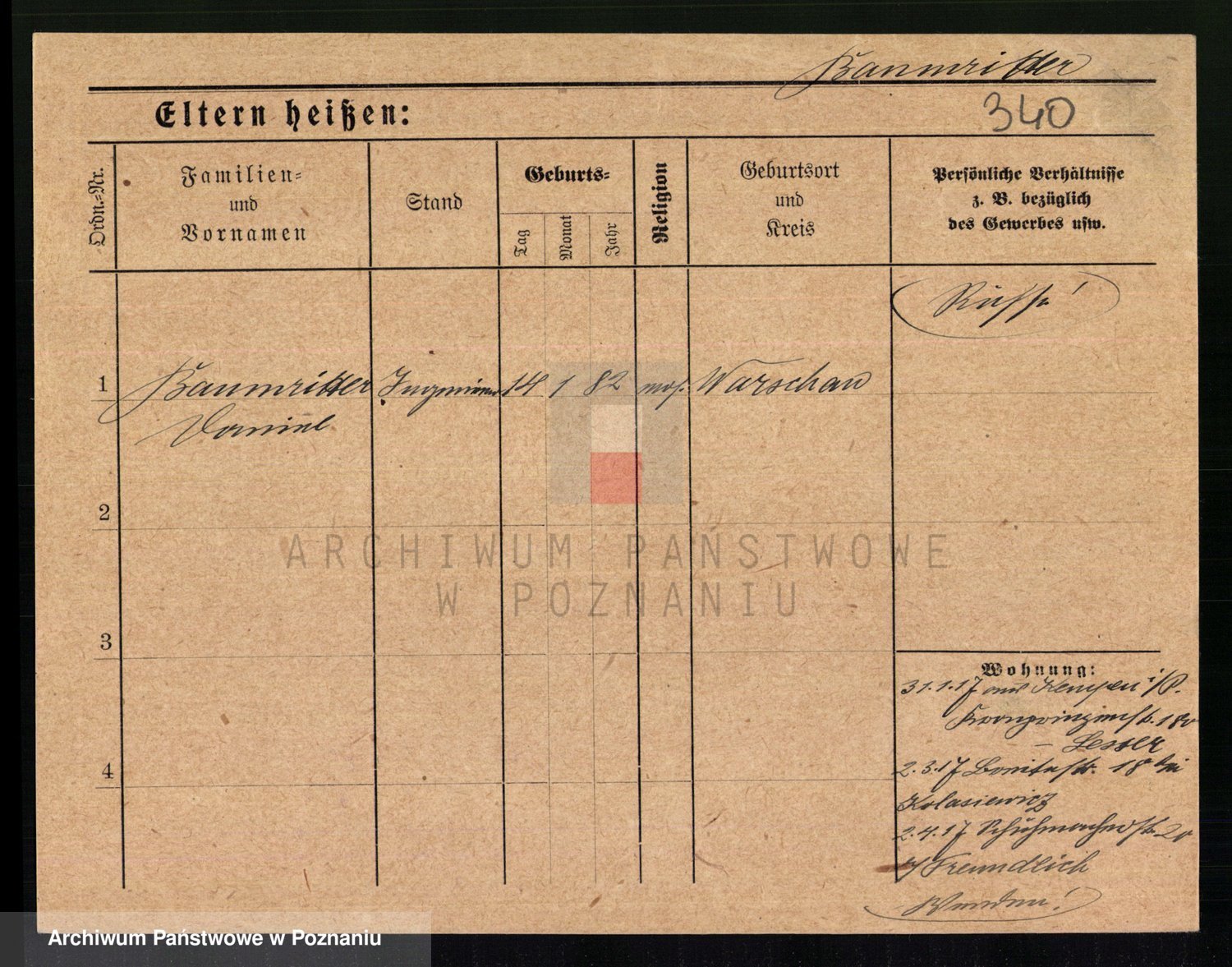 Podgląd karty osobowej dostępny jest po kliknięciu na nazwisko lub ikonkę karty. Można dokonywać powiększenia (ikony na górze) lub przechodzić między kolejnymi skanami (strzałki po bokach).