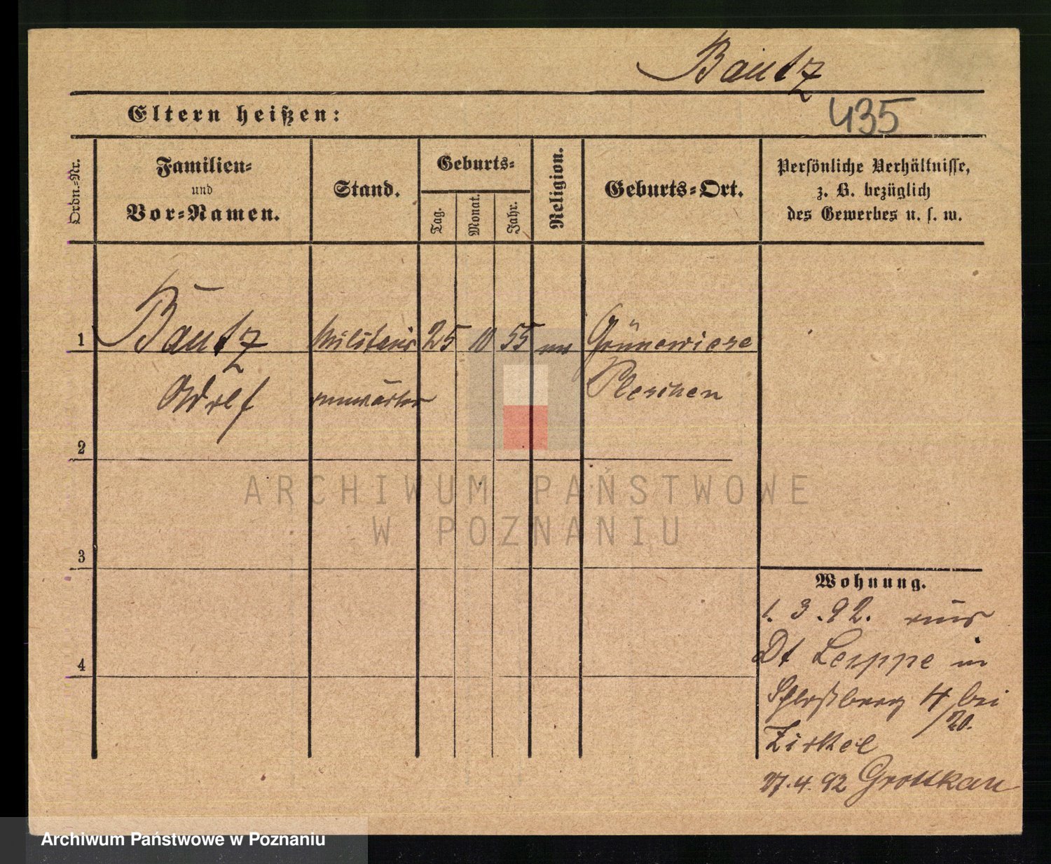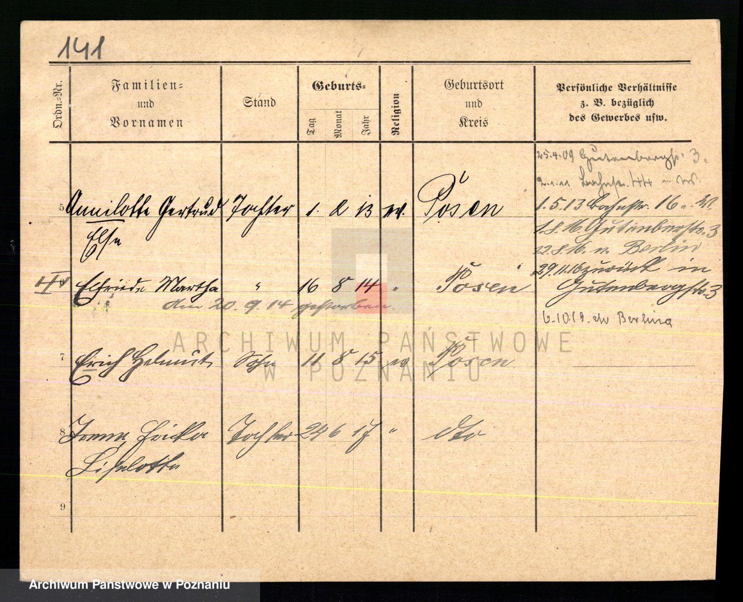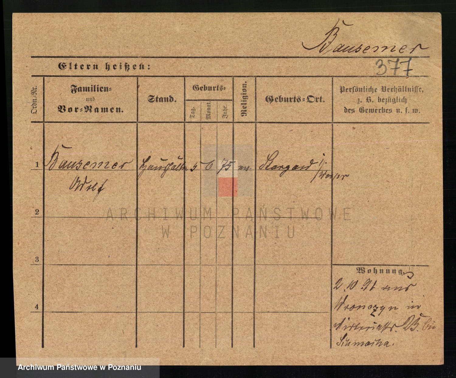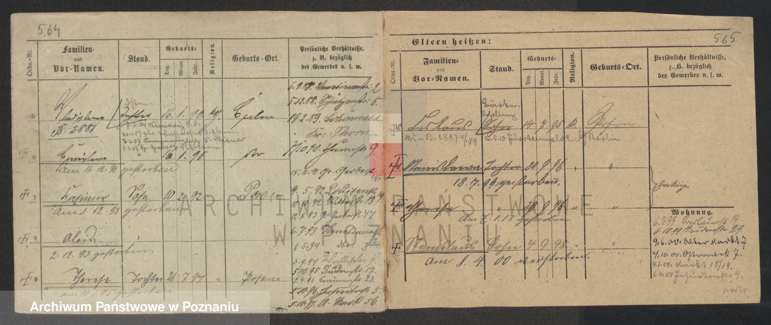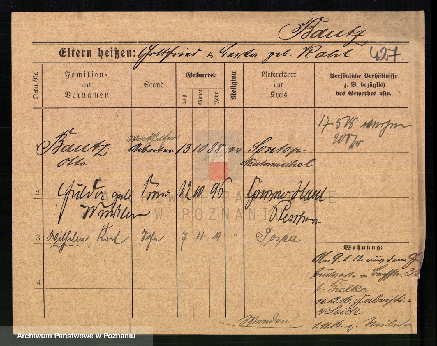 Podgląd karty osobowej dostępny jest po kliknięciu na nazwisko lub ikonkę karty. Można dokonywać powiększenia (ikony na górze) lub przechodzić między kolejnymi skanami (strzałki po bokach).