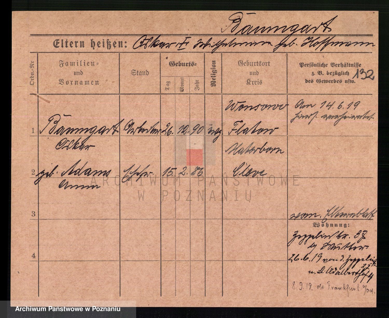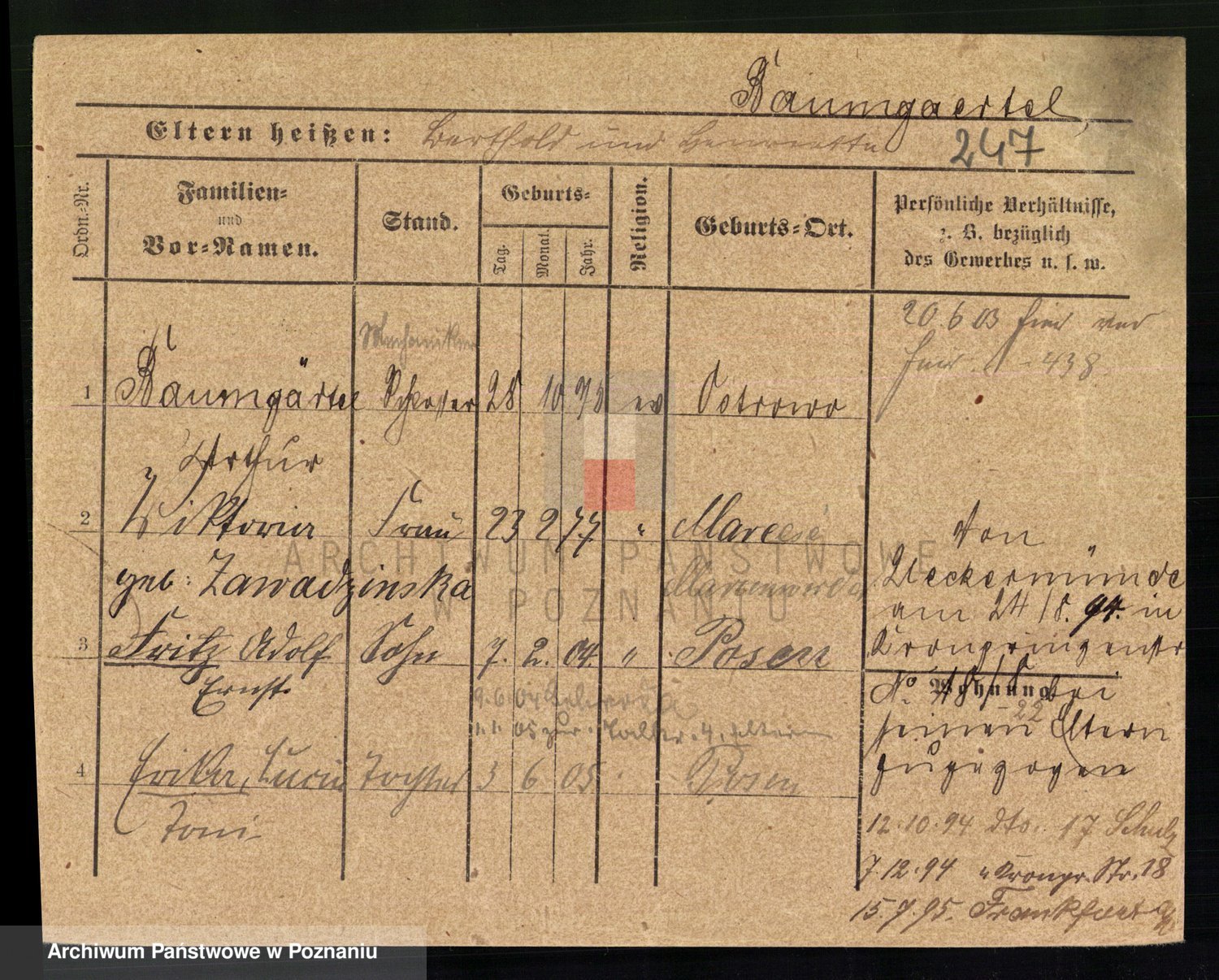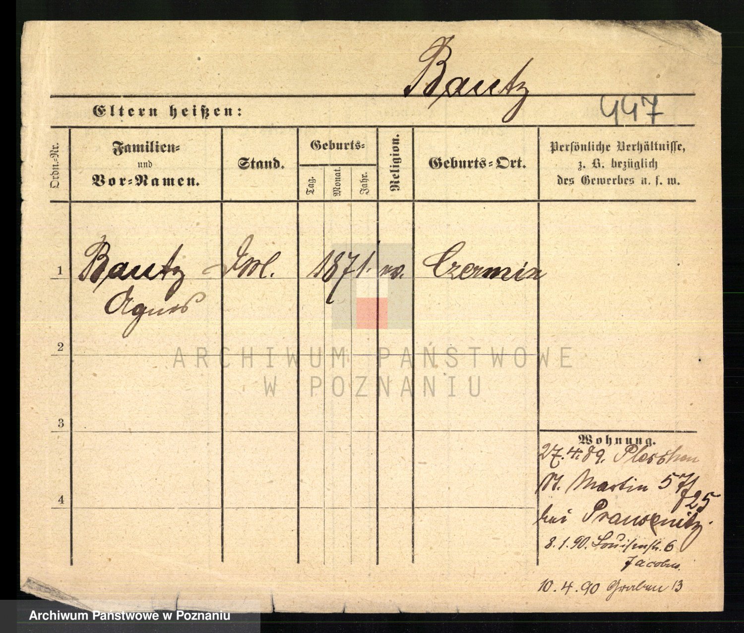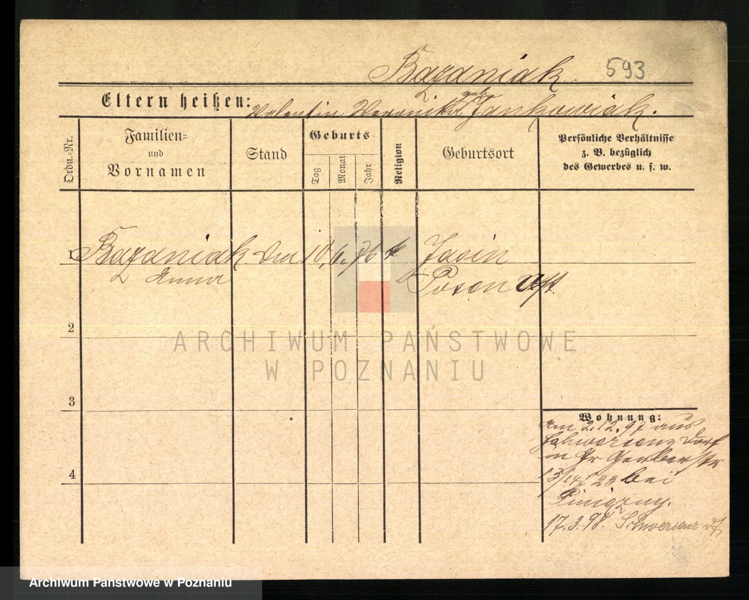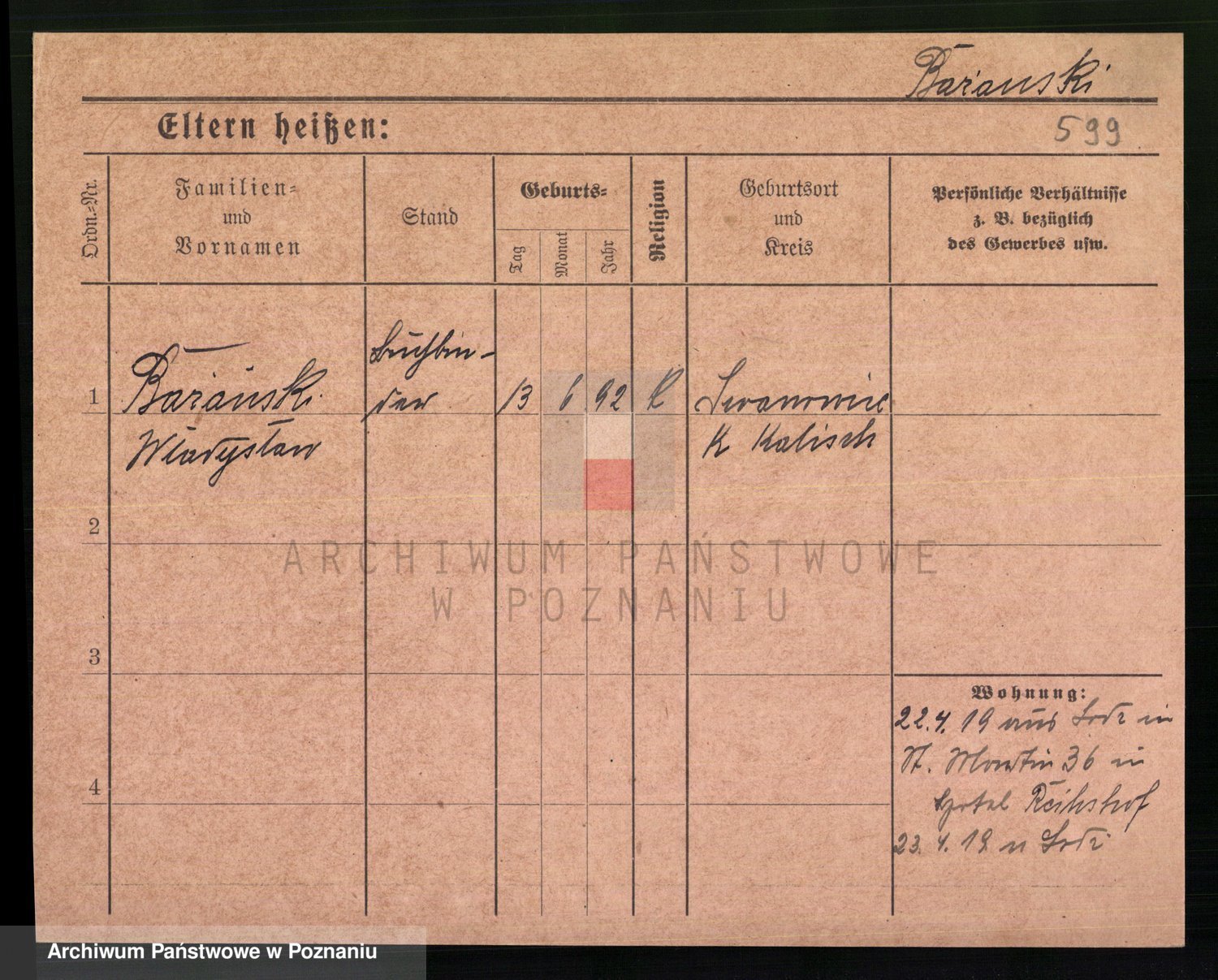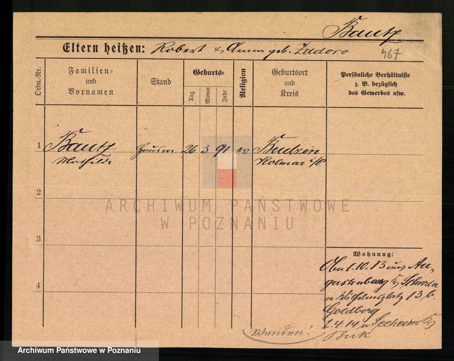 Podgląd karty osobowej dostępny jest po kliknięciu na nazwisko lub ikonkę karty. Można dokonywać powiększenia (ikony na górze) lub przechodzić między kolejnymi skanami (strzałki po bokach).