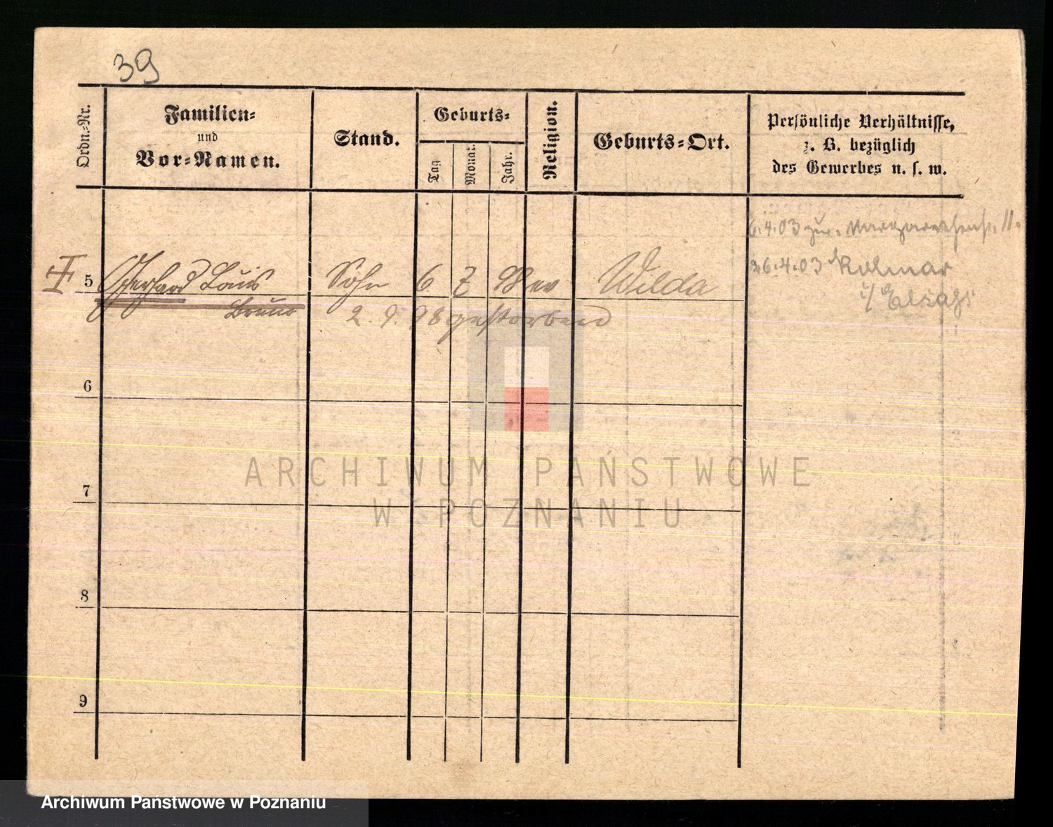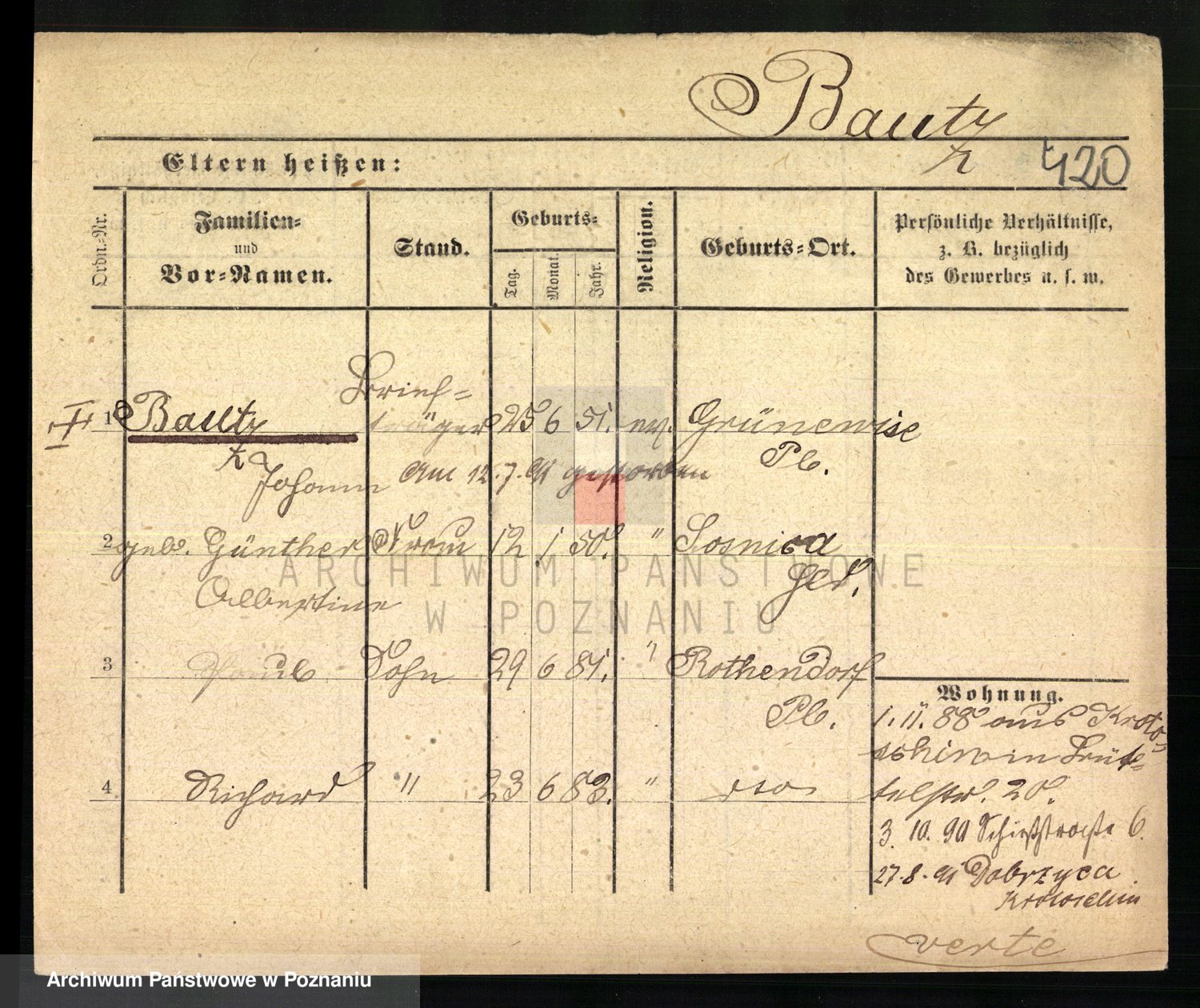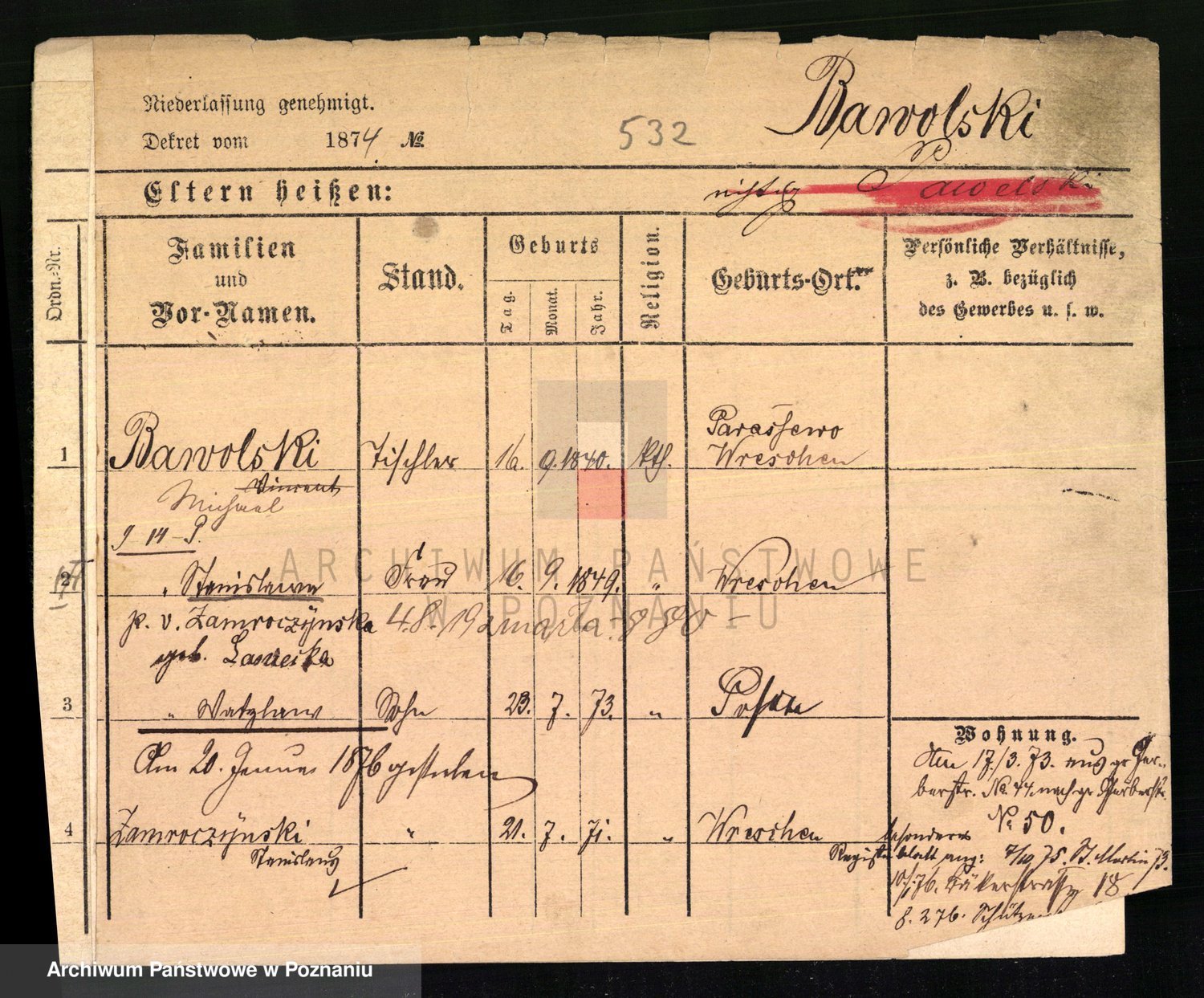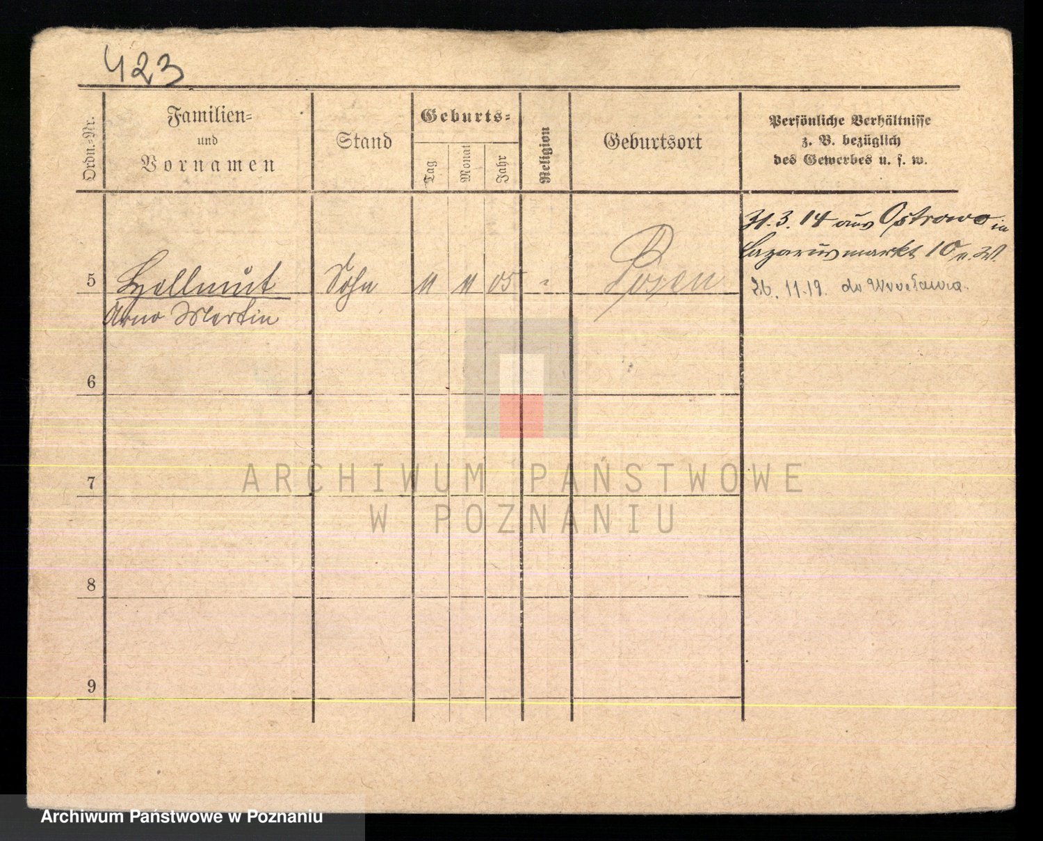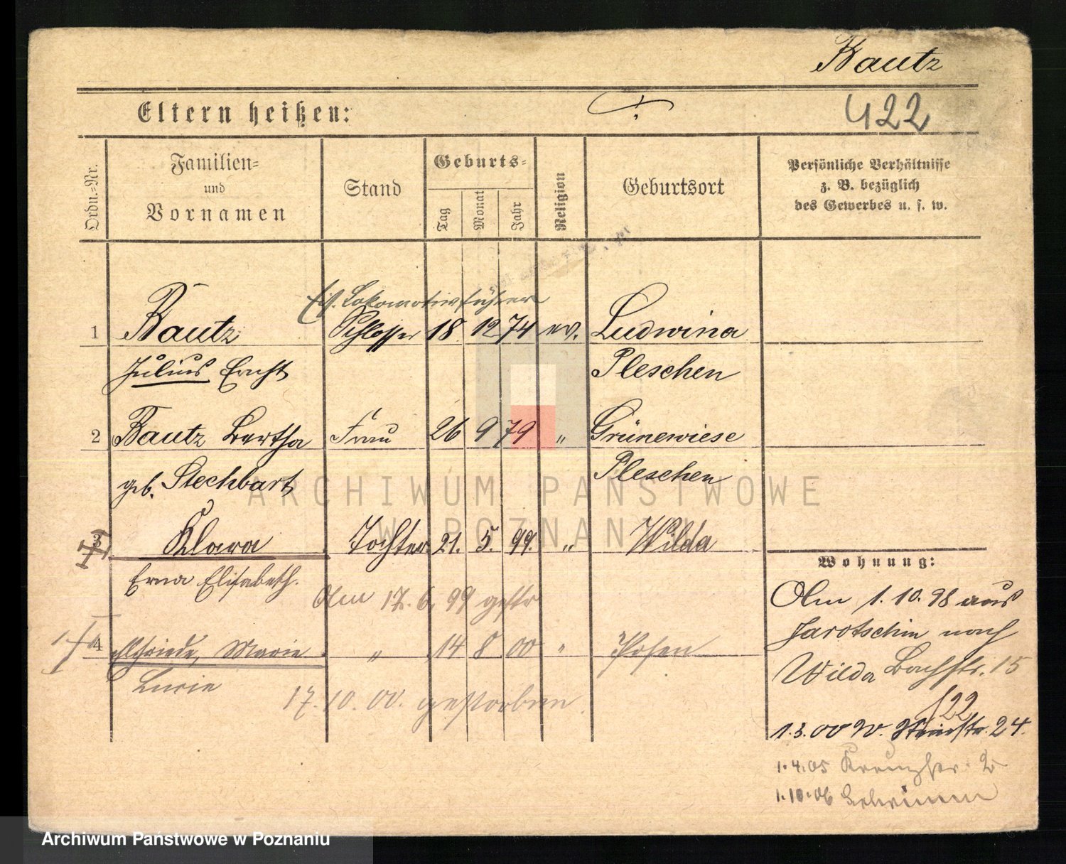 Podgląd karty osobowej dostępny jest po kliknięciu na nazwisko lub ikonkę karty. Można dokonywać powiększenia (ikony na górze) lub przechodzić między kolejnymi skanami (strzałki po bokach).