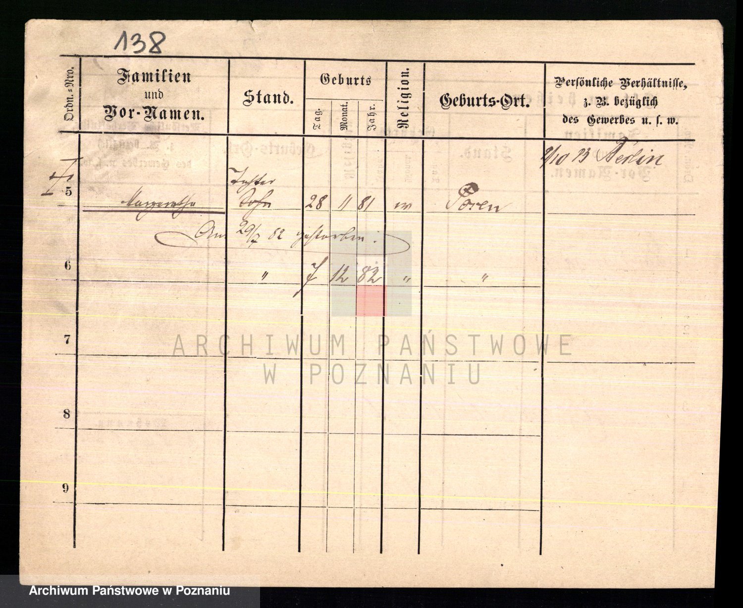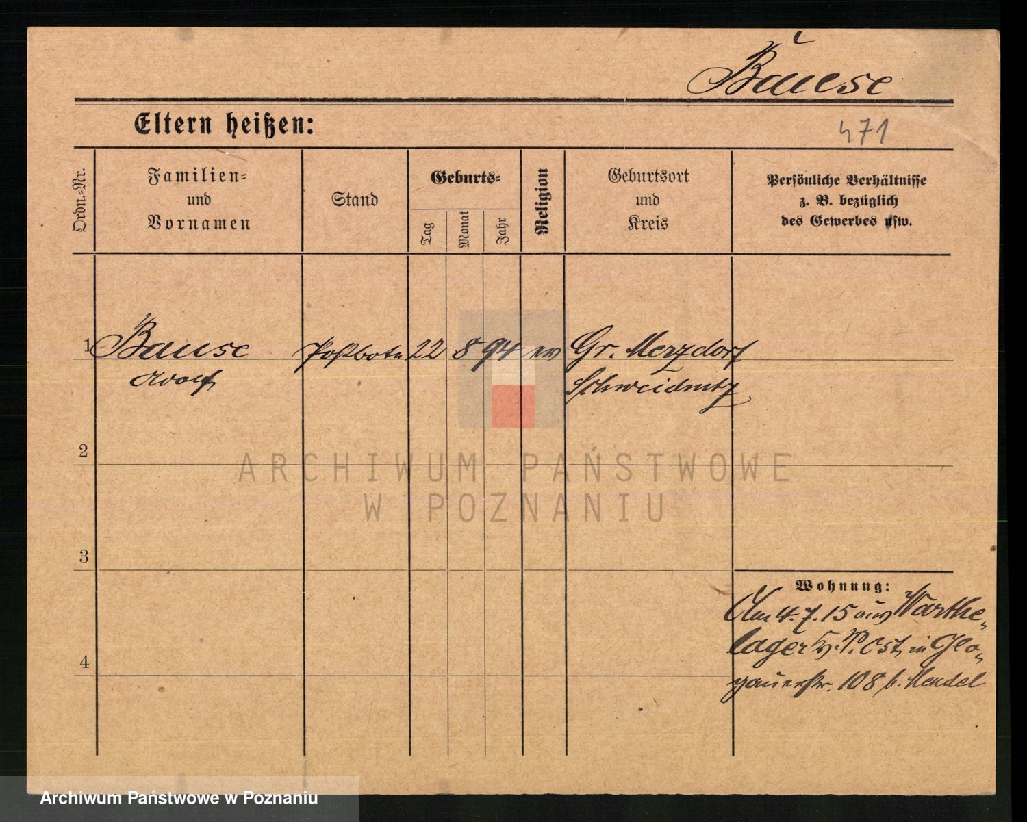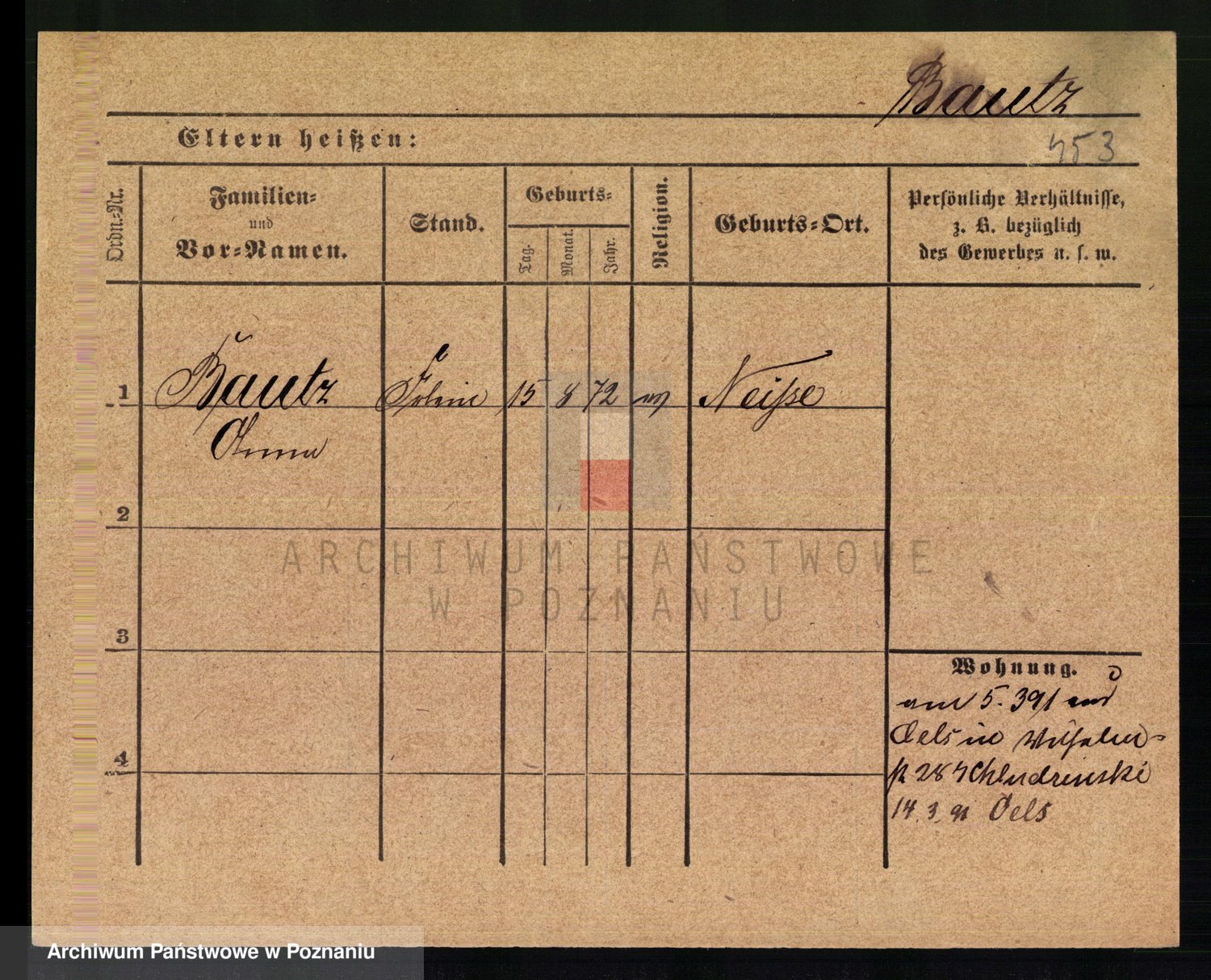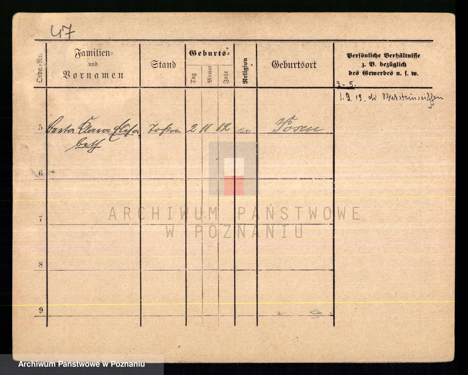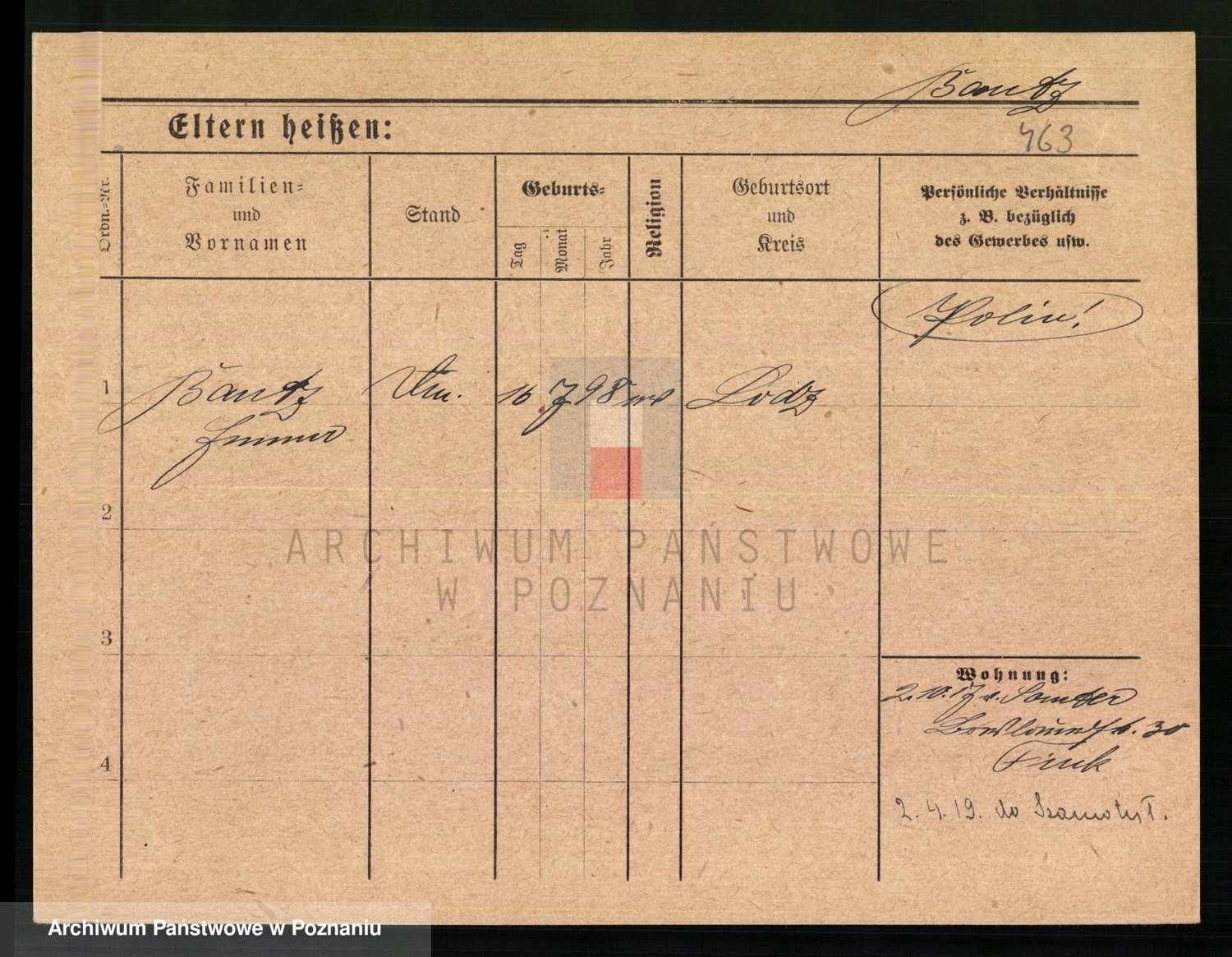 Podgląd karty osobowej dostępny jest po kliknięciu na nazwisko lub ikonkę karty. Można dokonywać powiększenia (ikony na górze) lub przechodzić między kolejnymi skanami (strzałki po bokach).