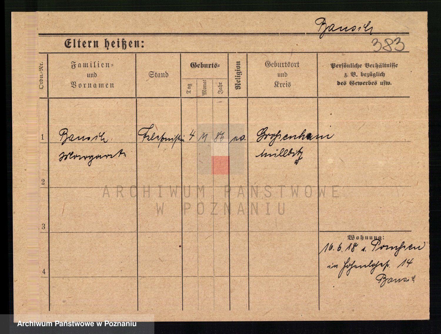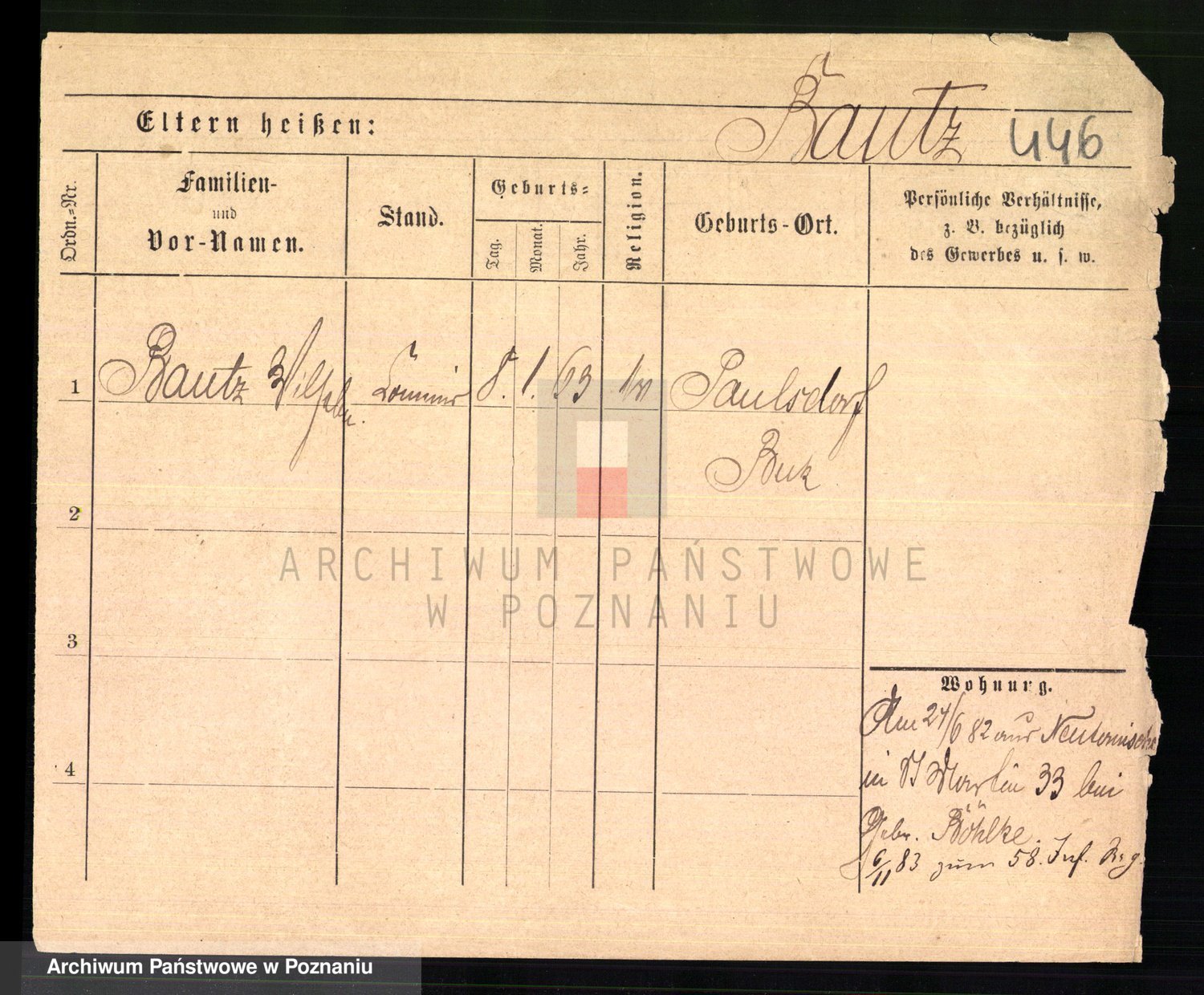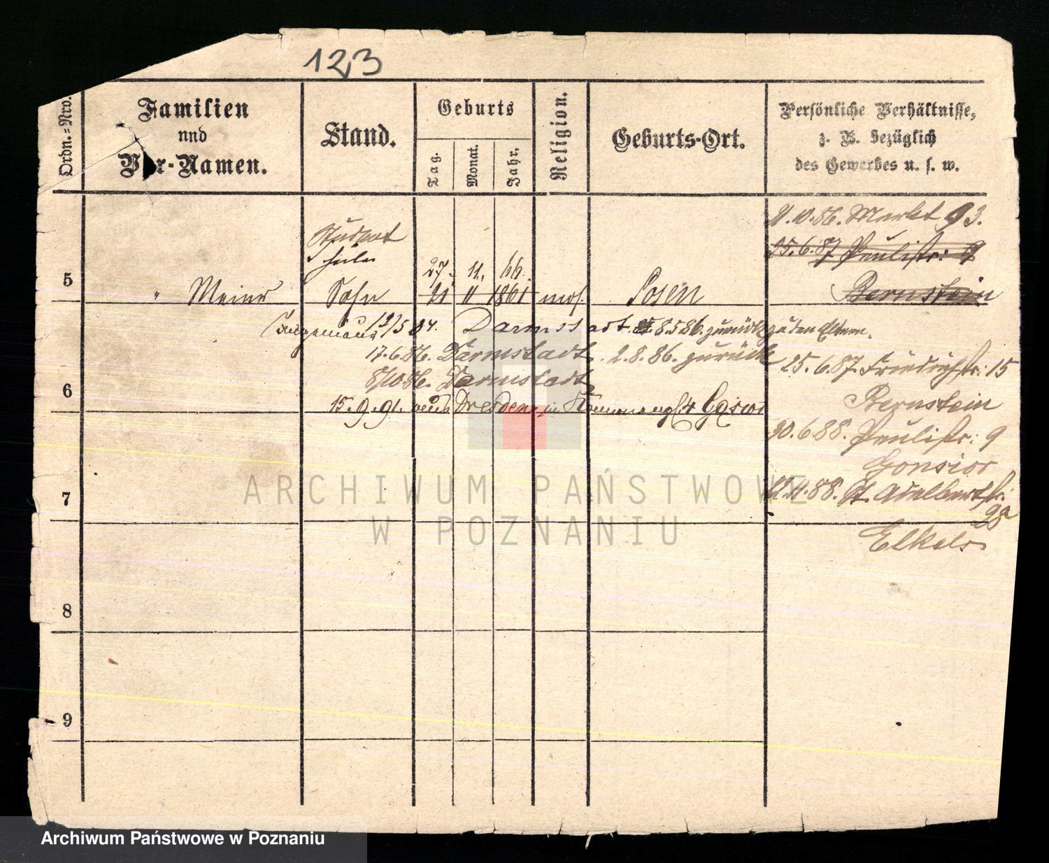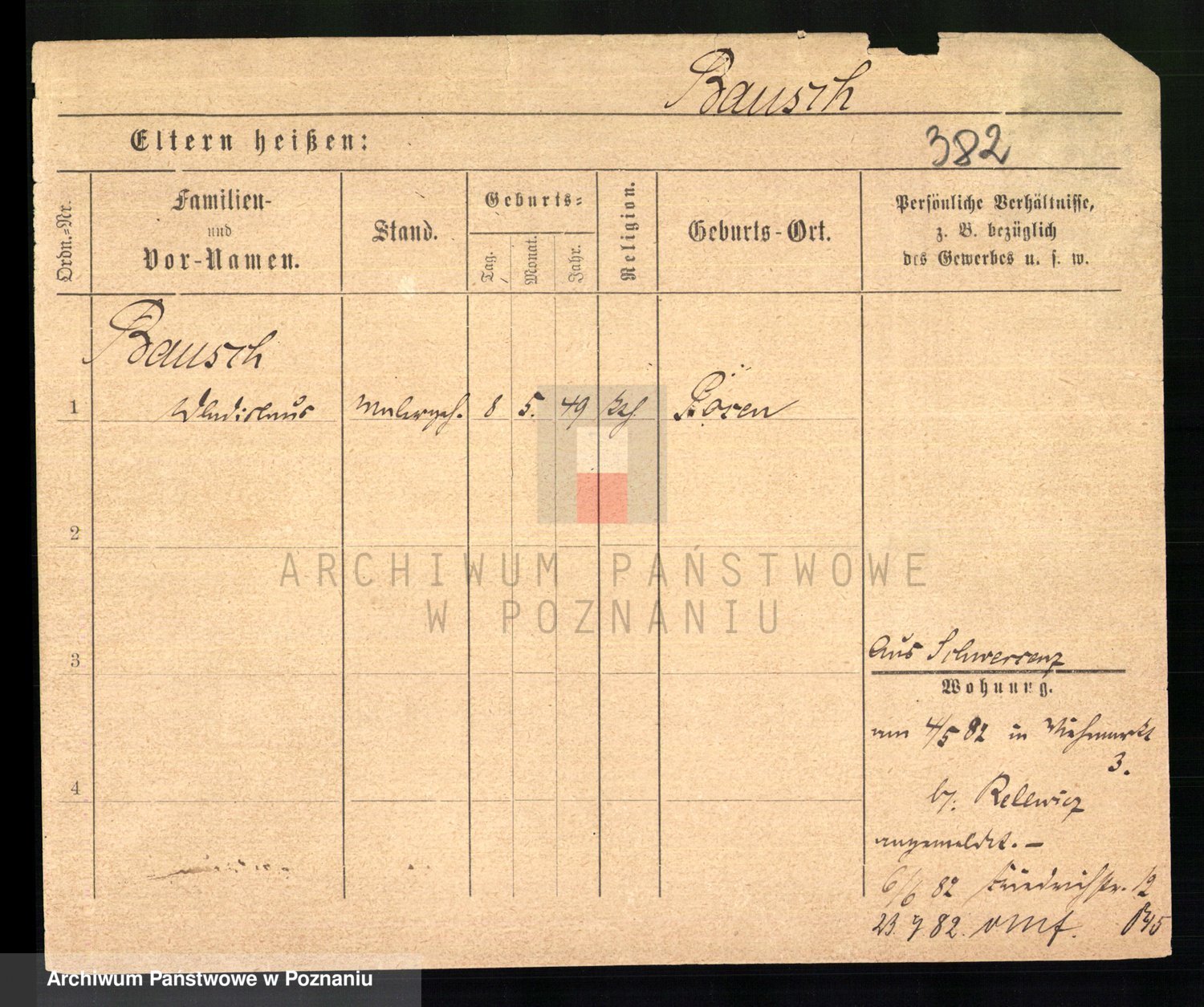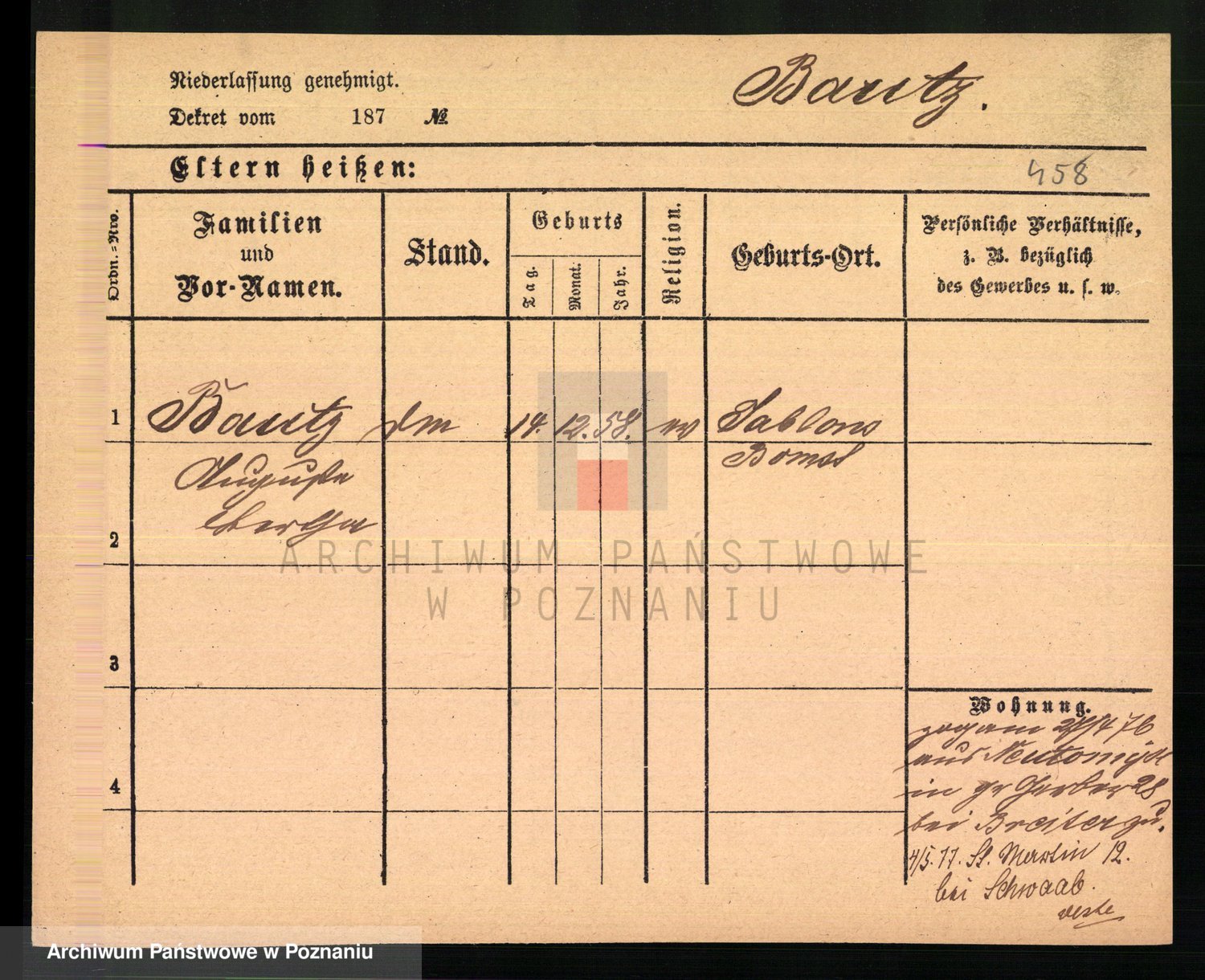 Podgląd karty osobowej dostępny jest po kliknięciu na nazwisko lub ikonkę karty. Można dokonywać powiększenia (ikony na górze) lub przechodzić między kolejnymi skanami (strzałki po bokach).