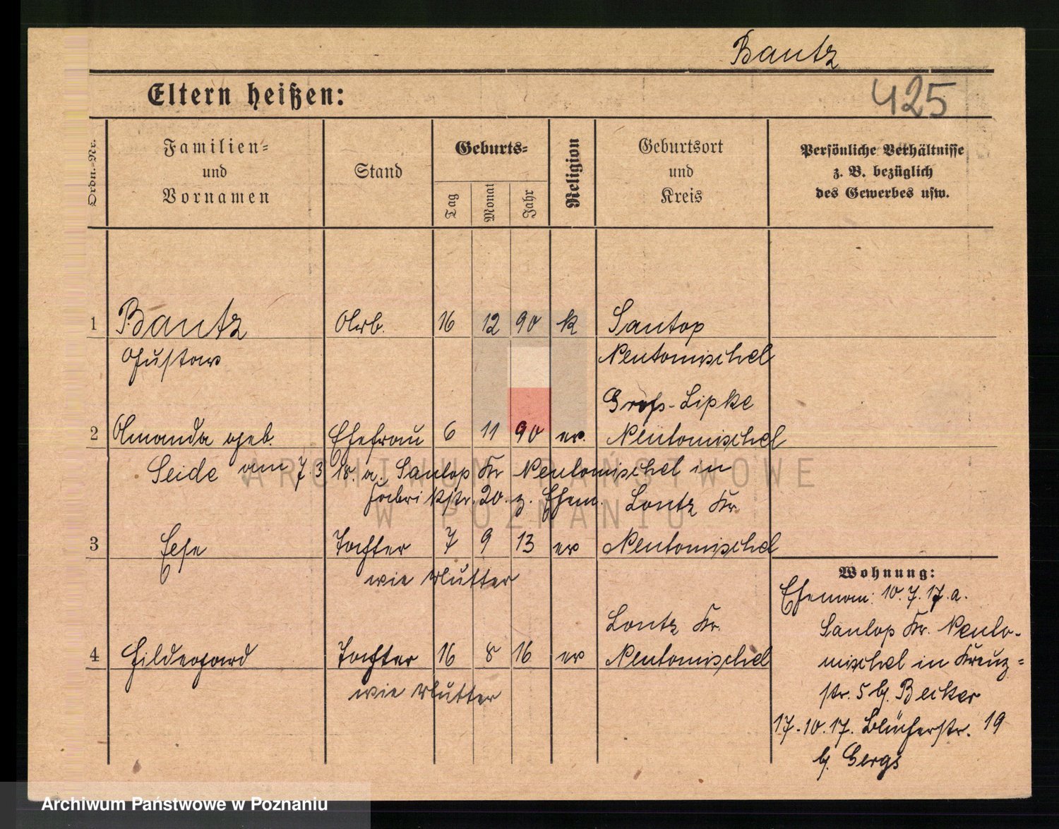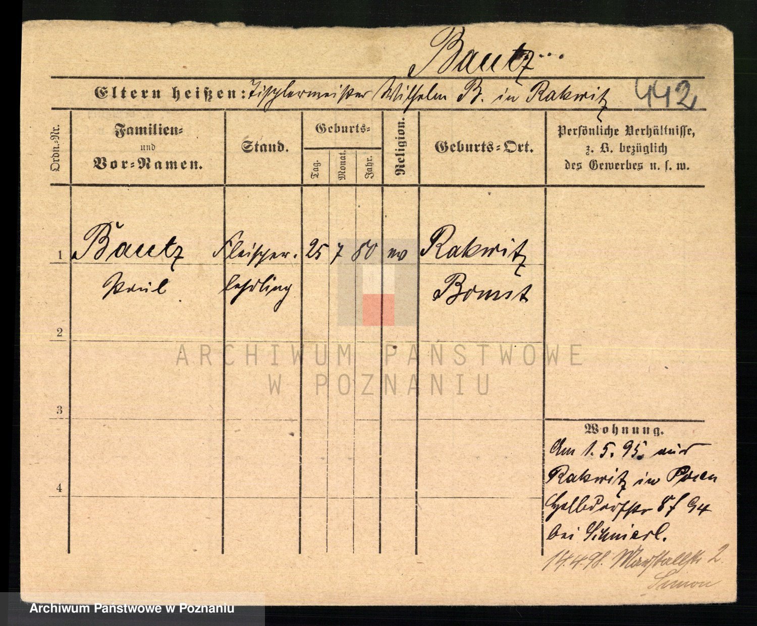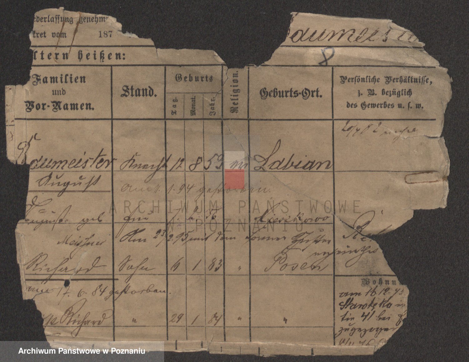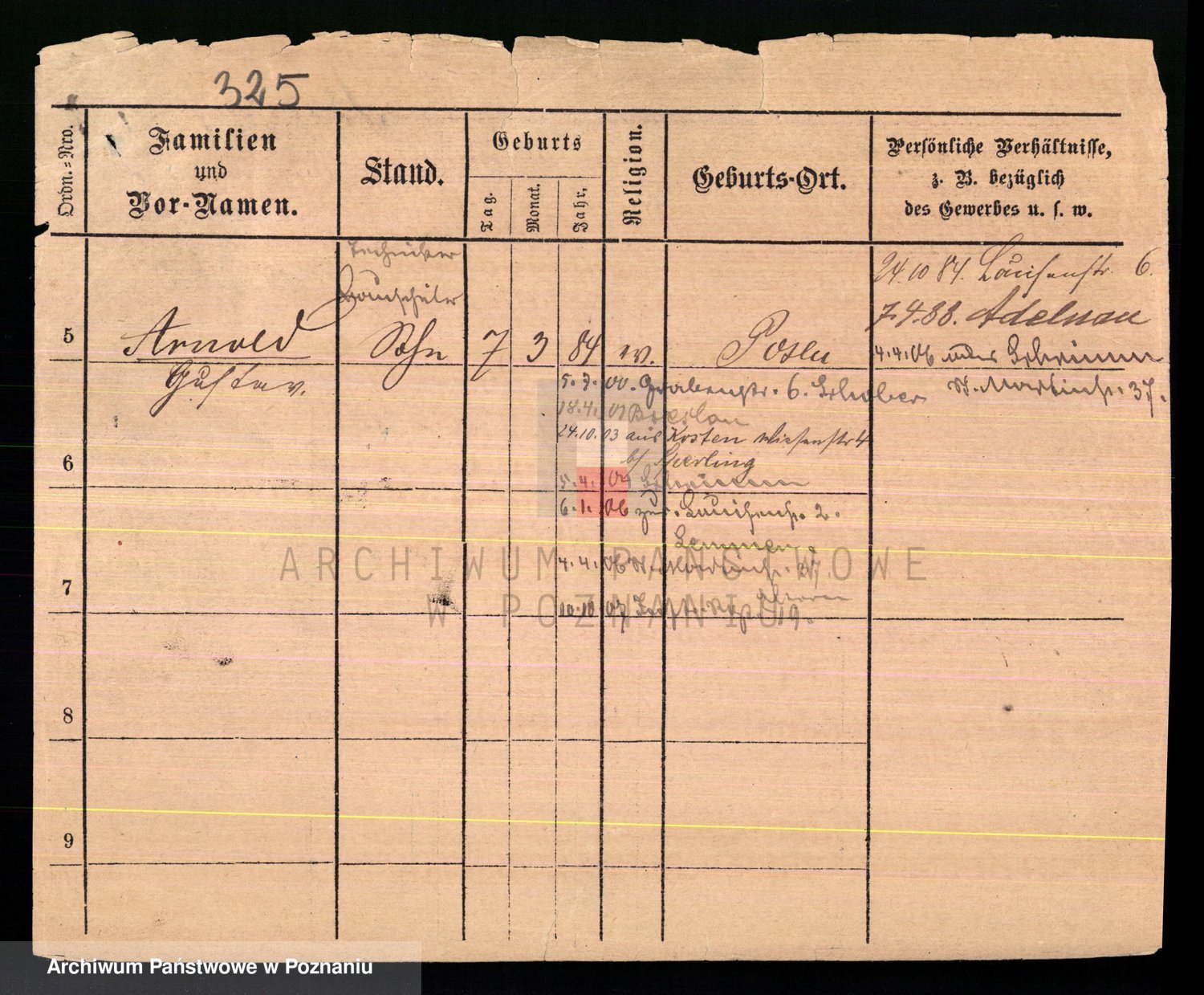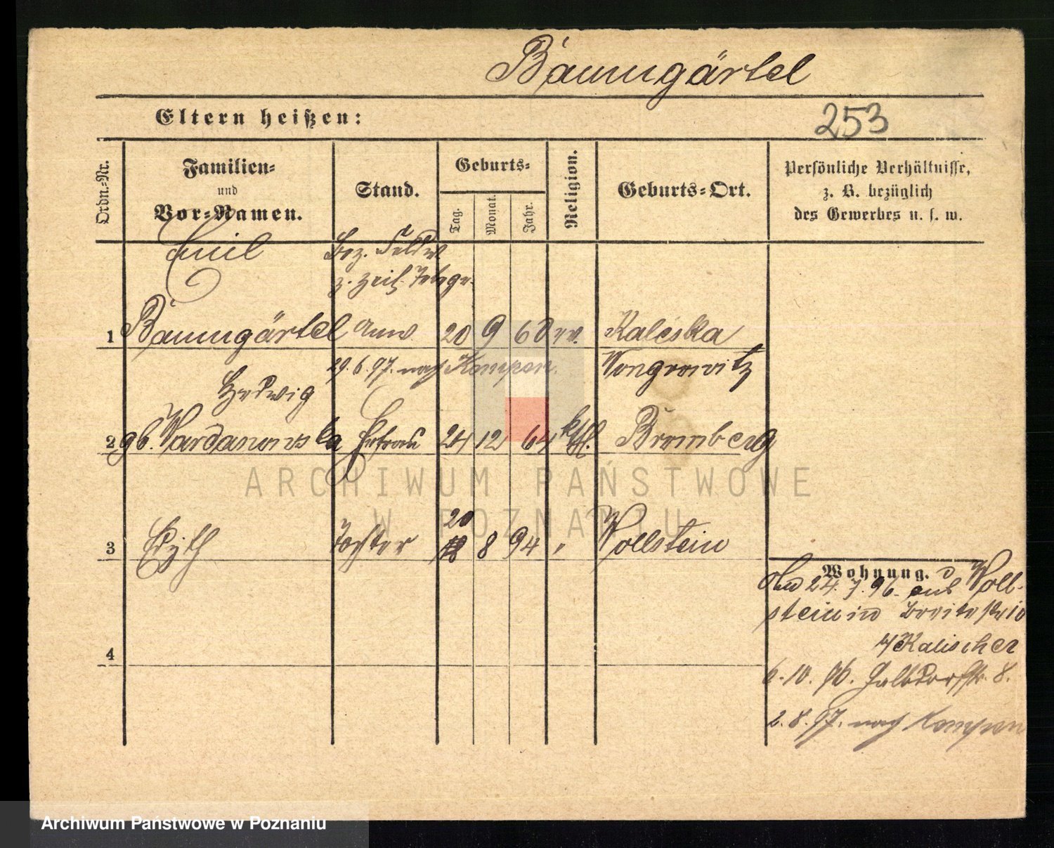 Podgląd karty osobowej dostępny jest po kliknięciu na nazwisko lub ikonkę karty. Można dokonywać powiększenia (ikony na górze) lub przechodzić między kolejnymi skanami (strzałki po bokach).