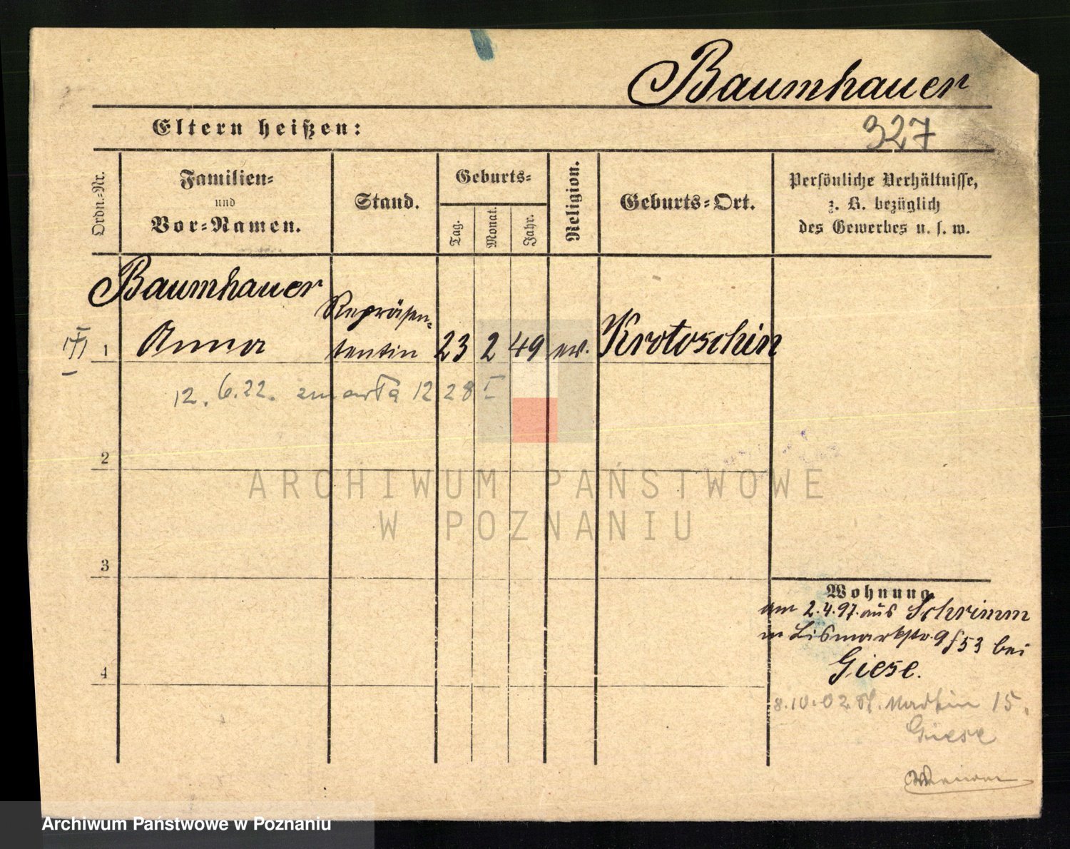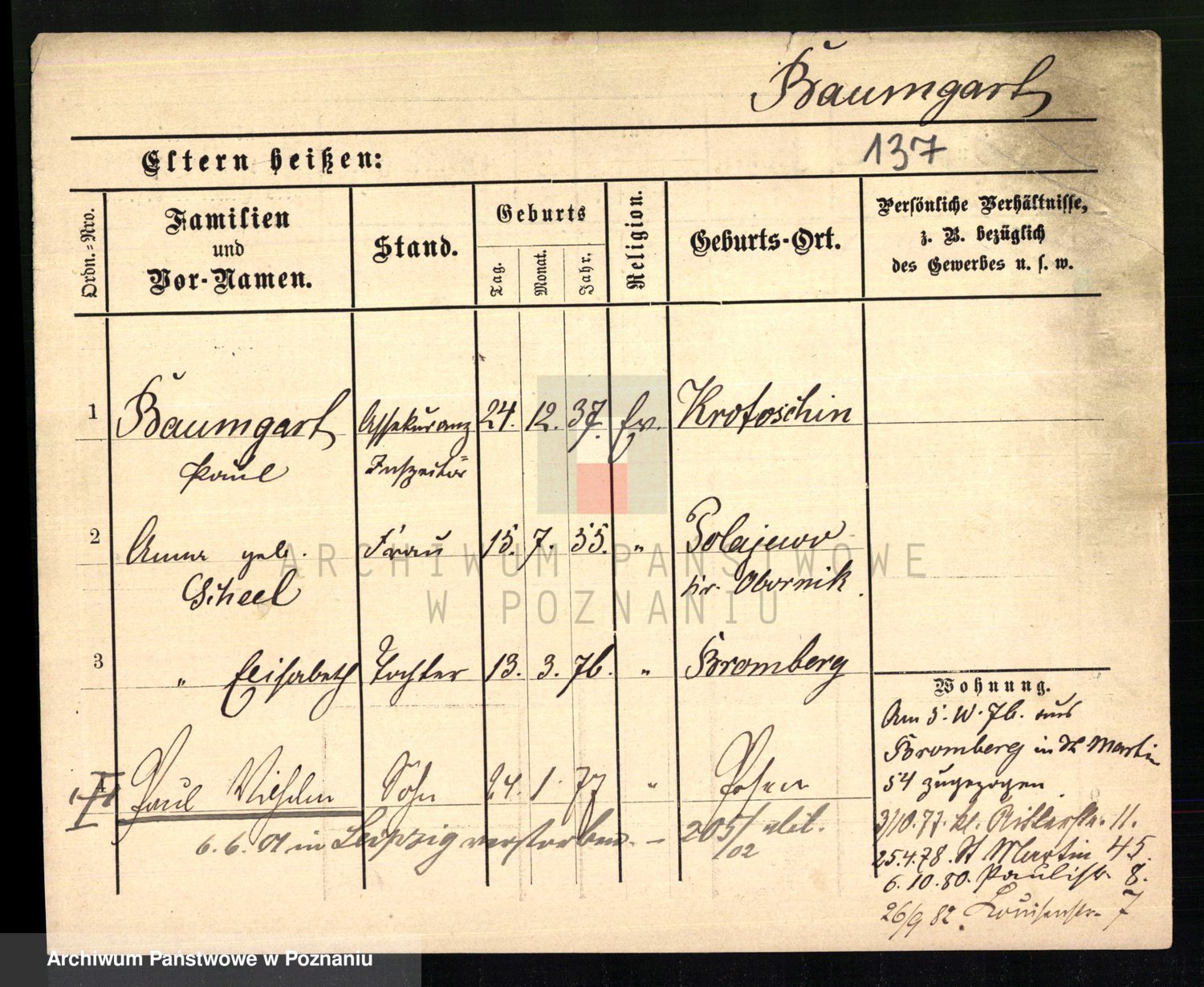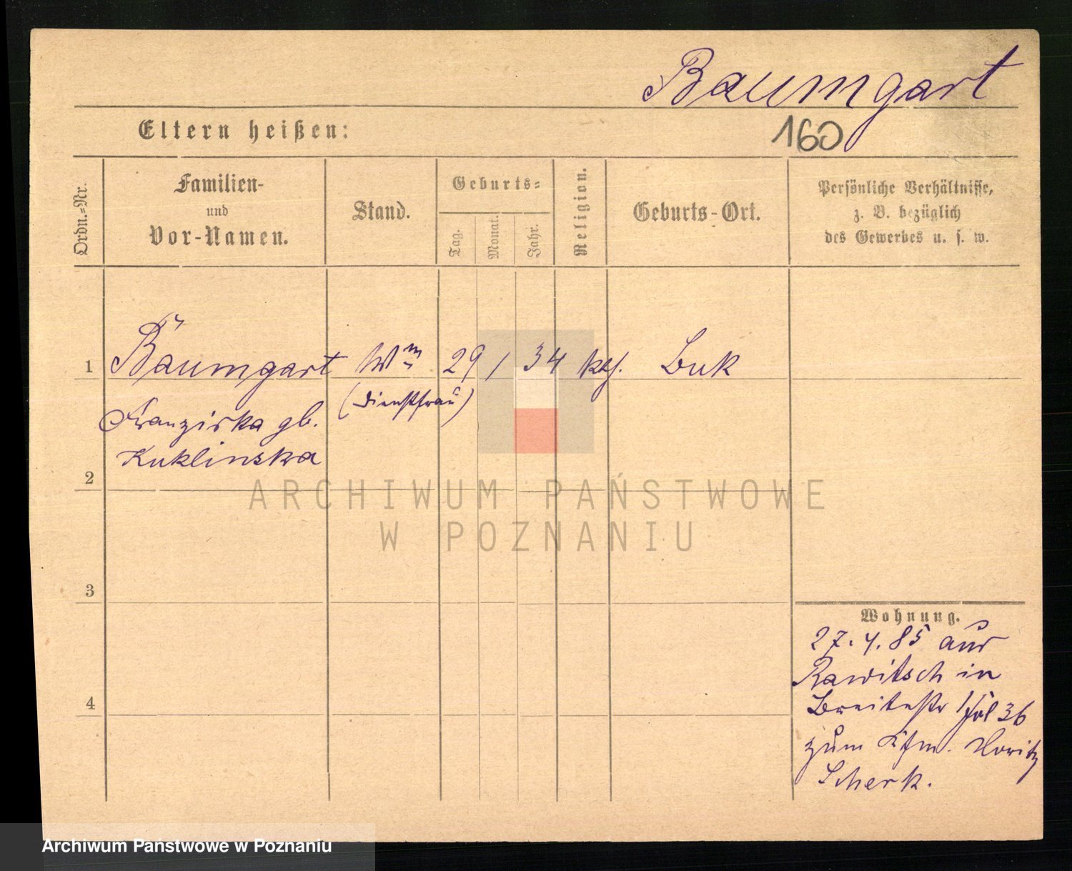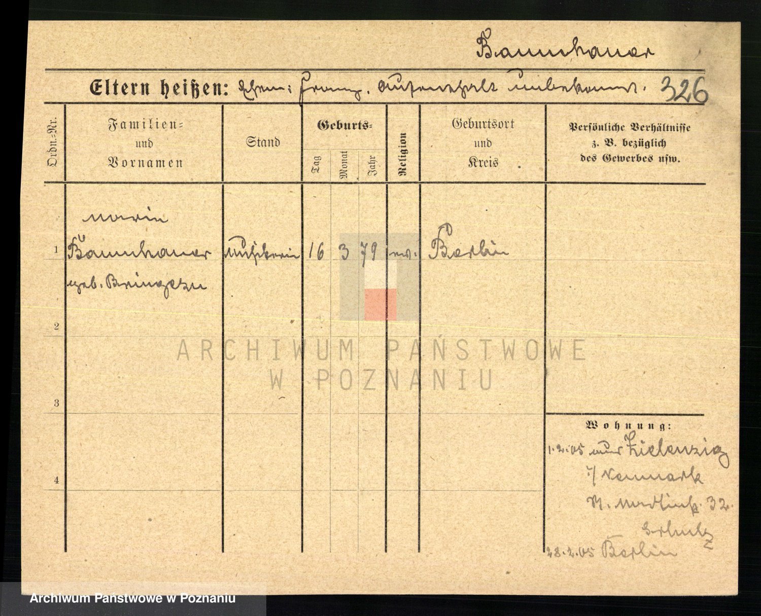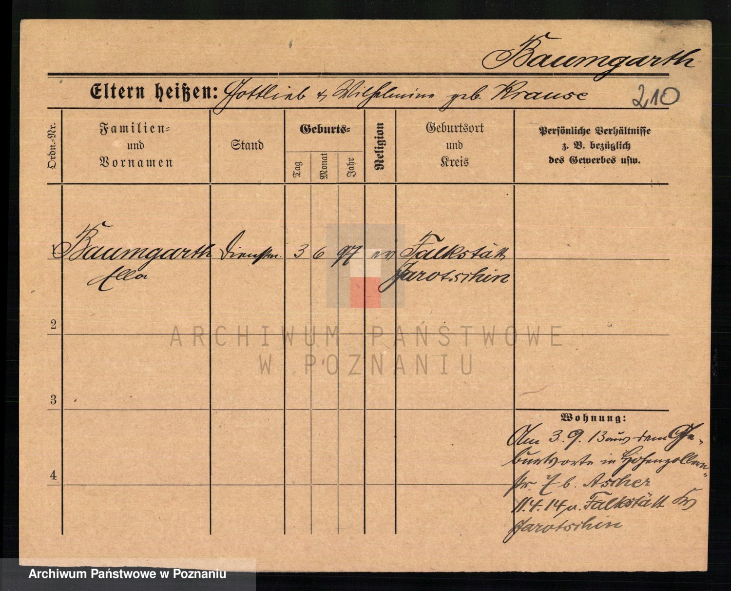 Baumeister zd. Kroll, Johanna Auguste