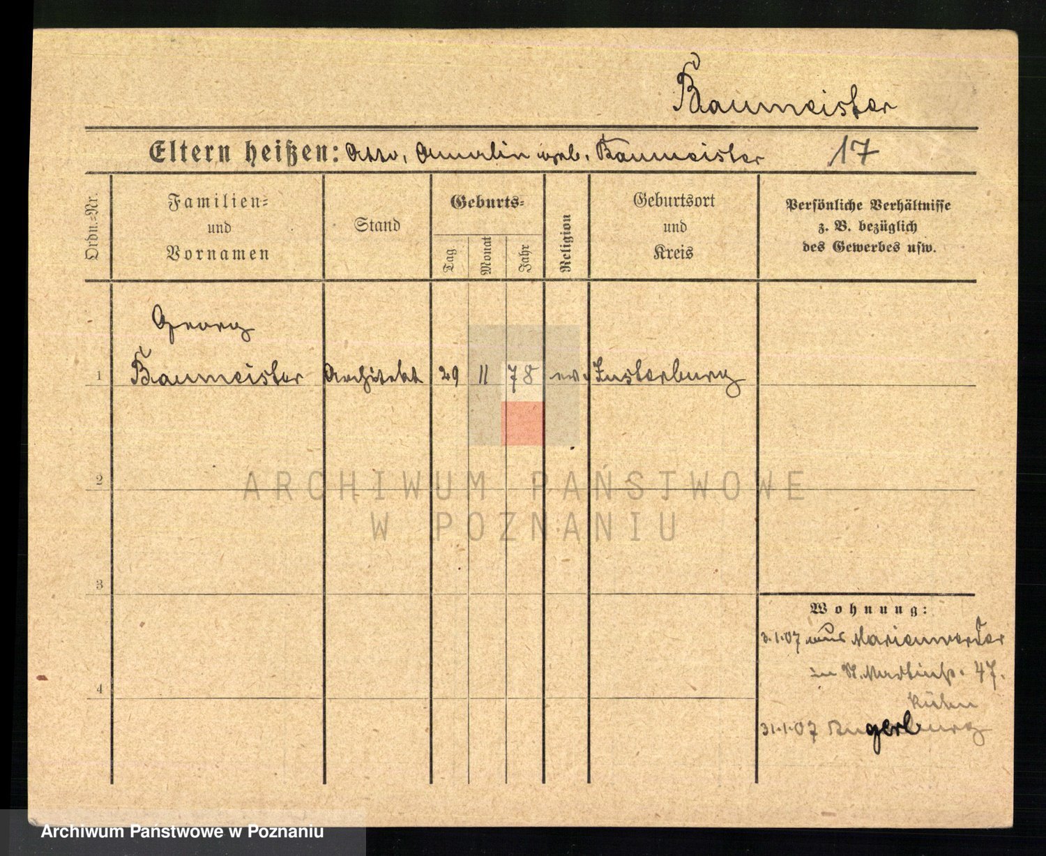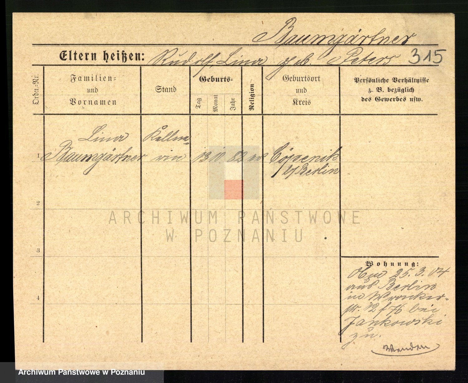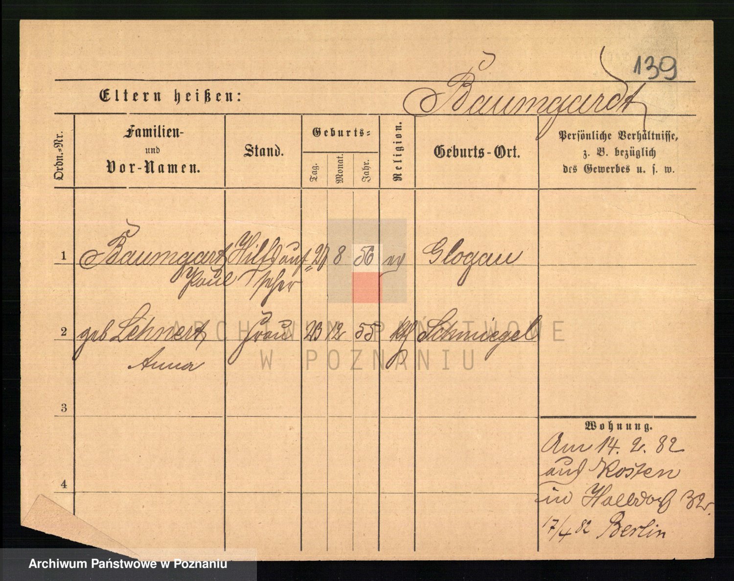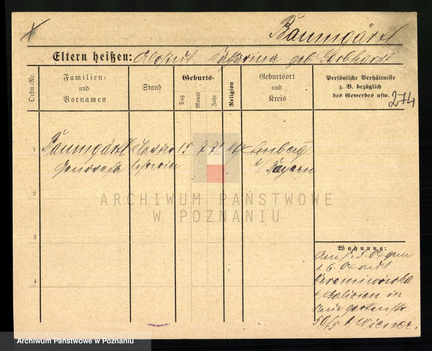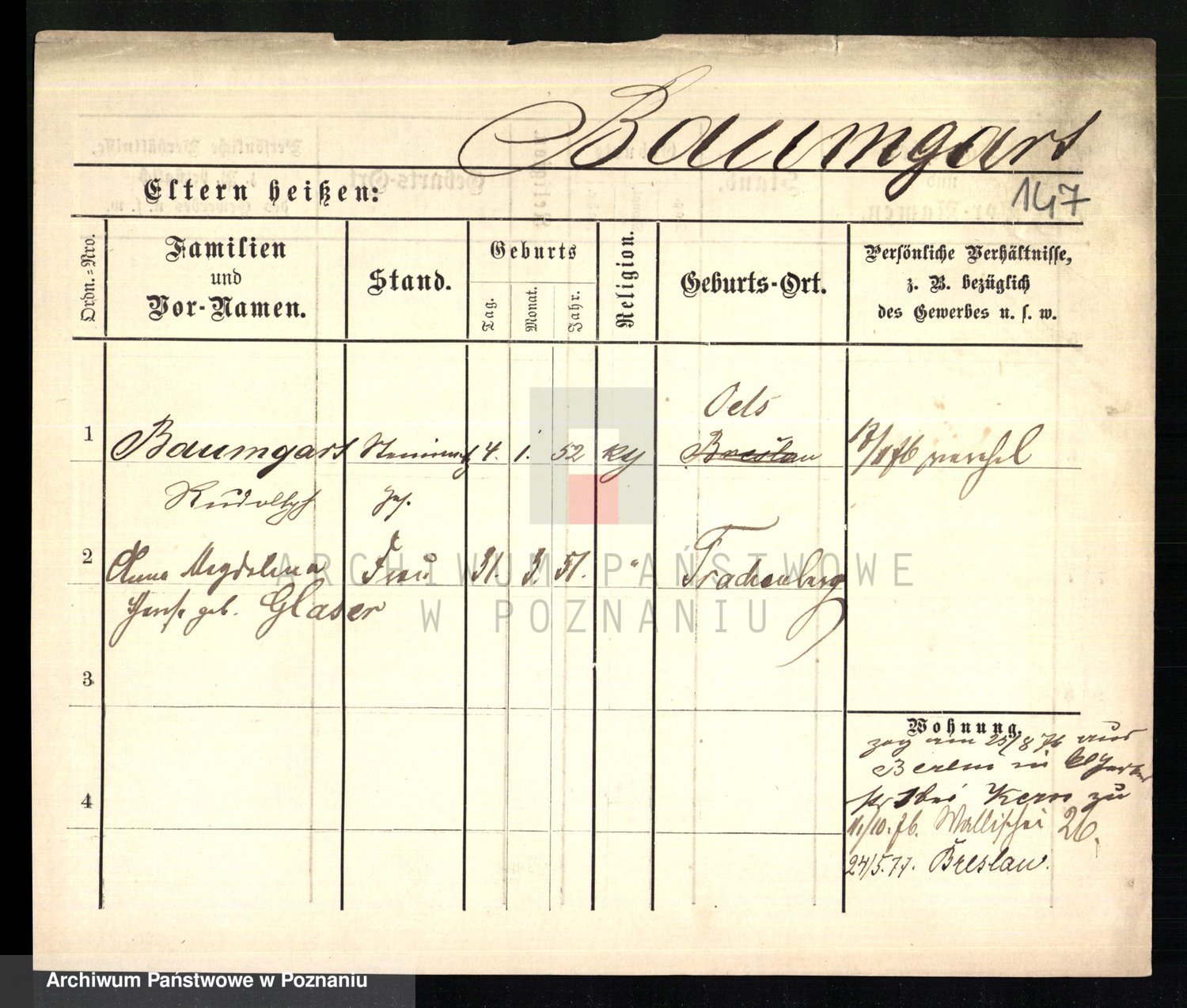 Baumeister zd. Kroll, Johanna Auguste