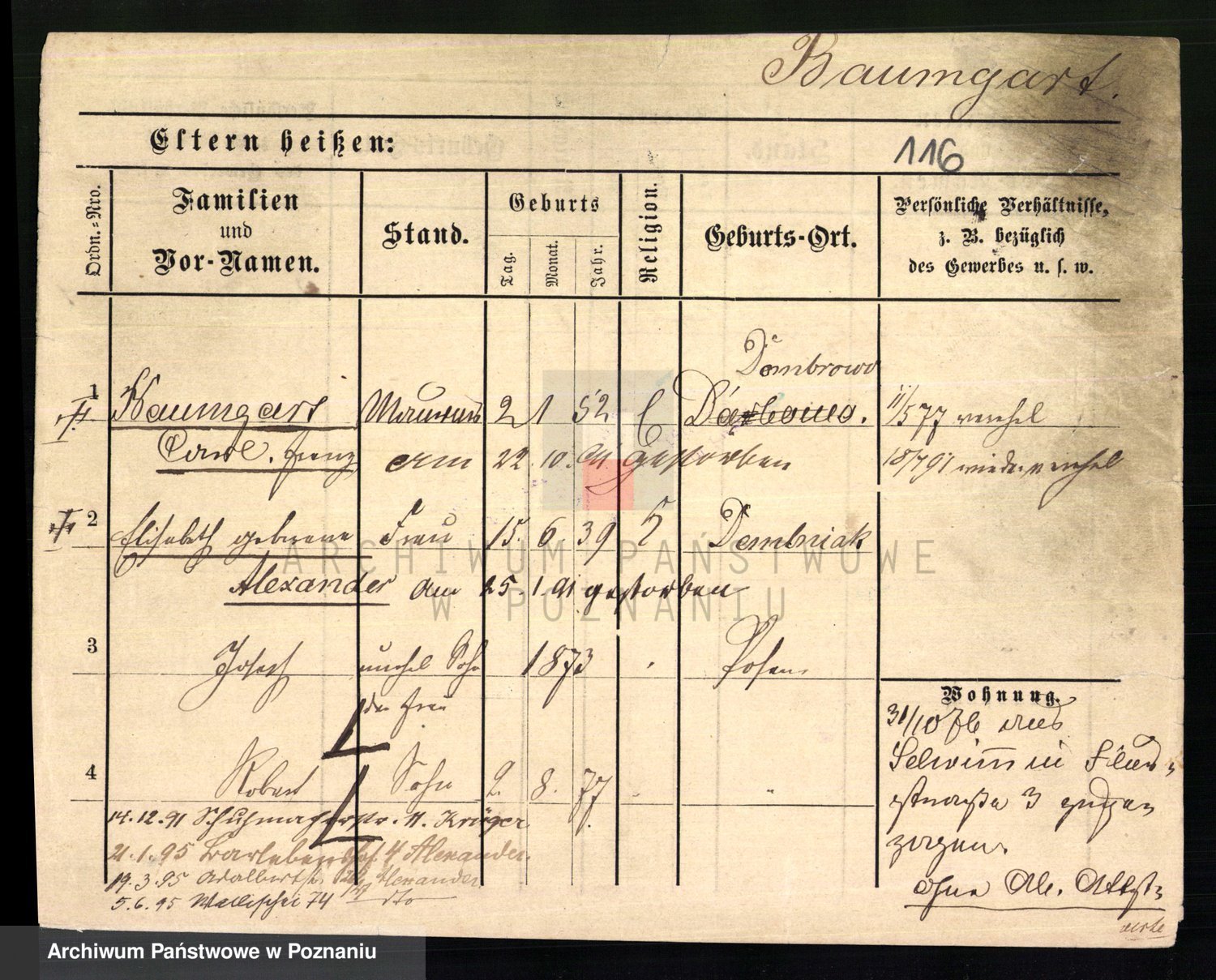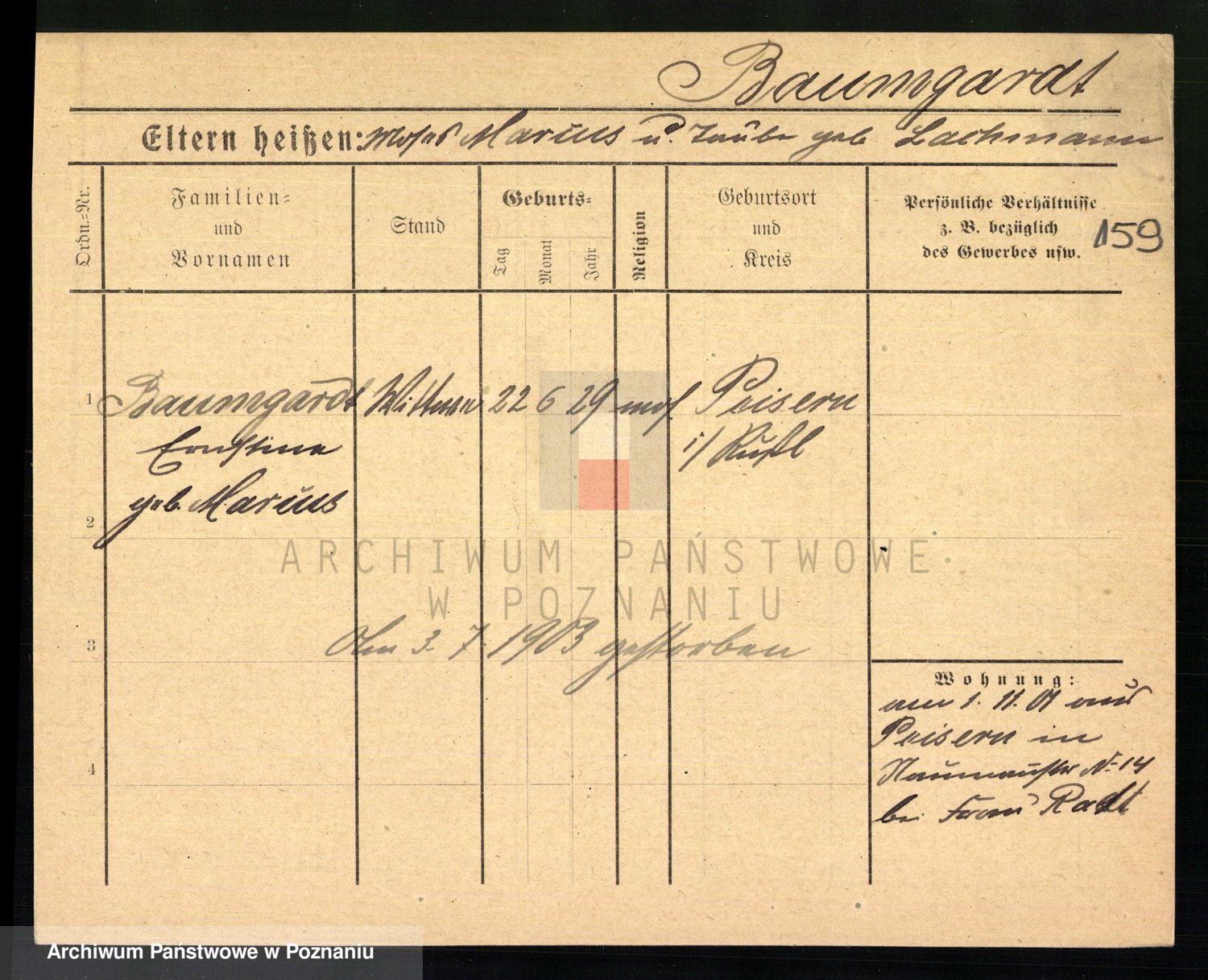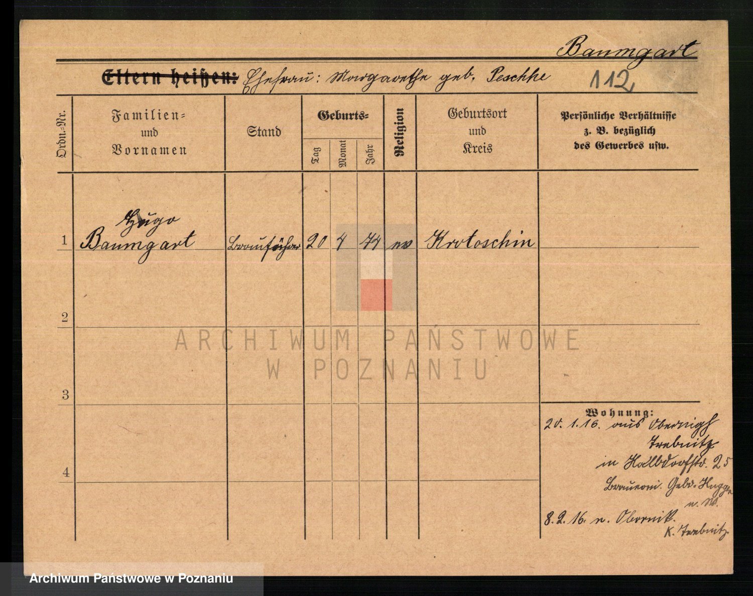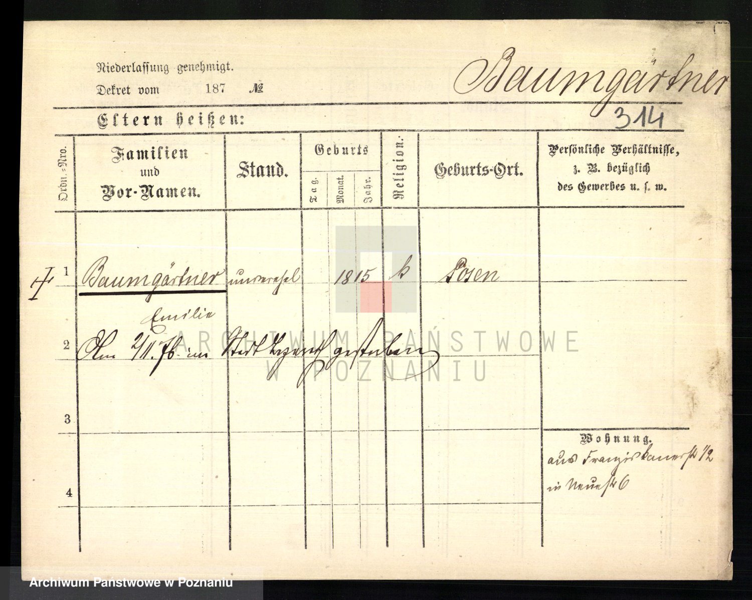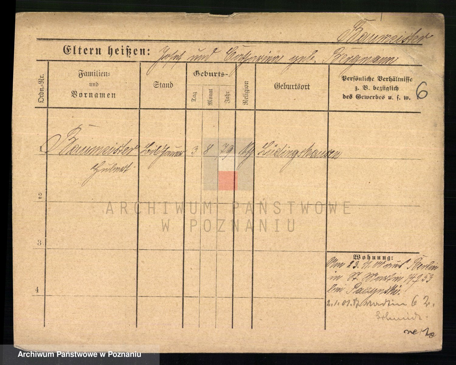 Baumeister zd. Kroll, Johanna Auguste