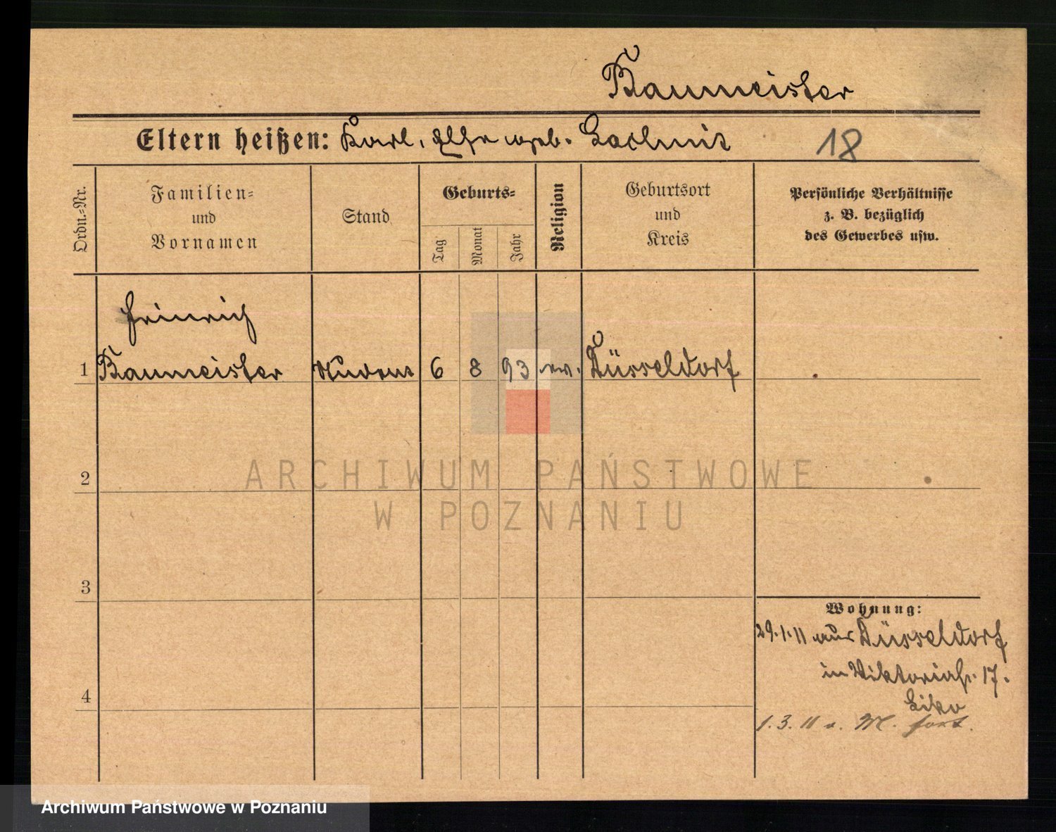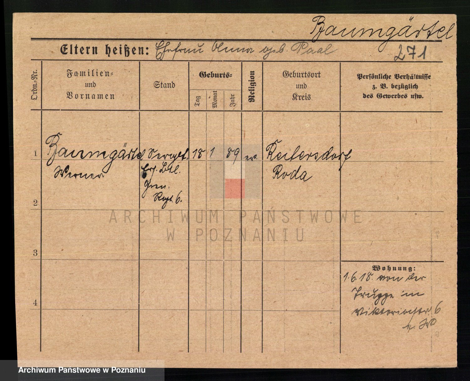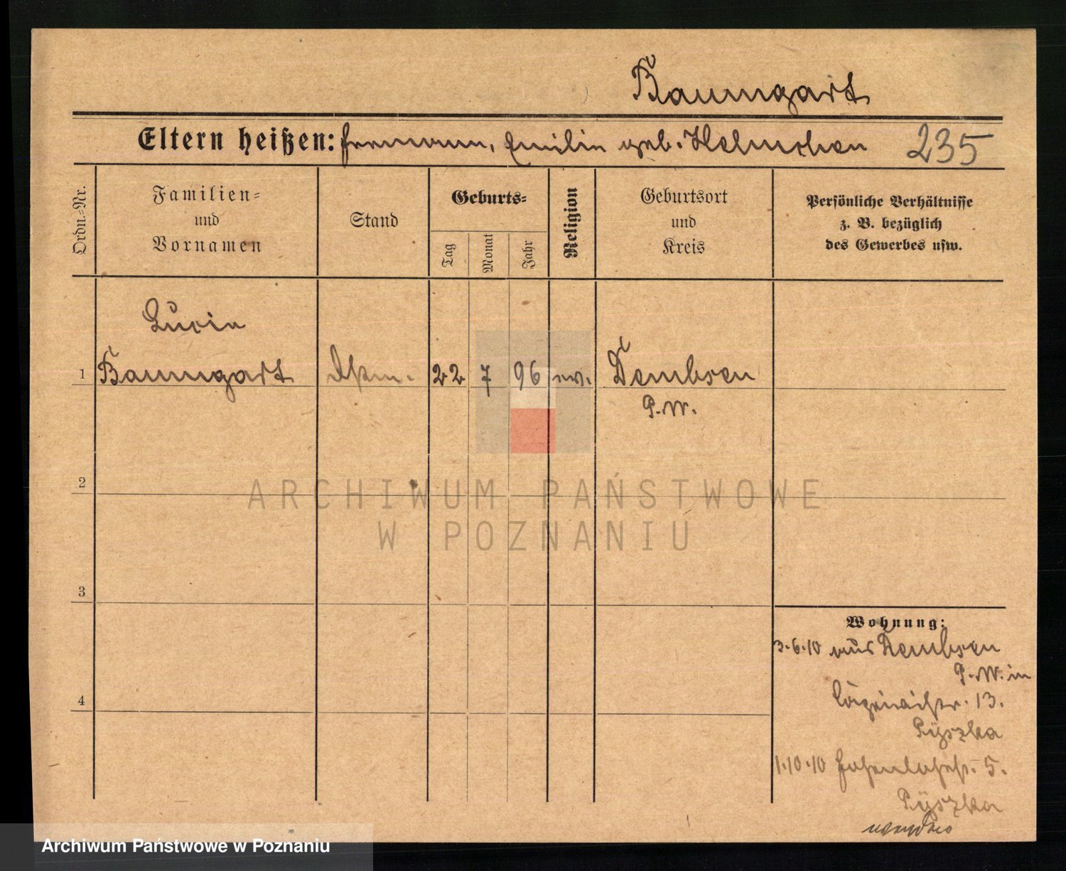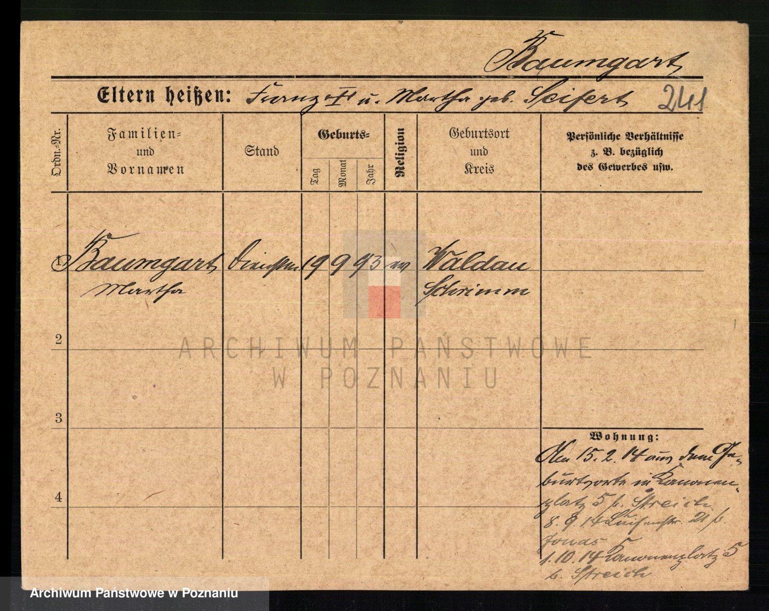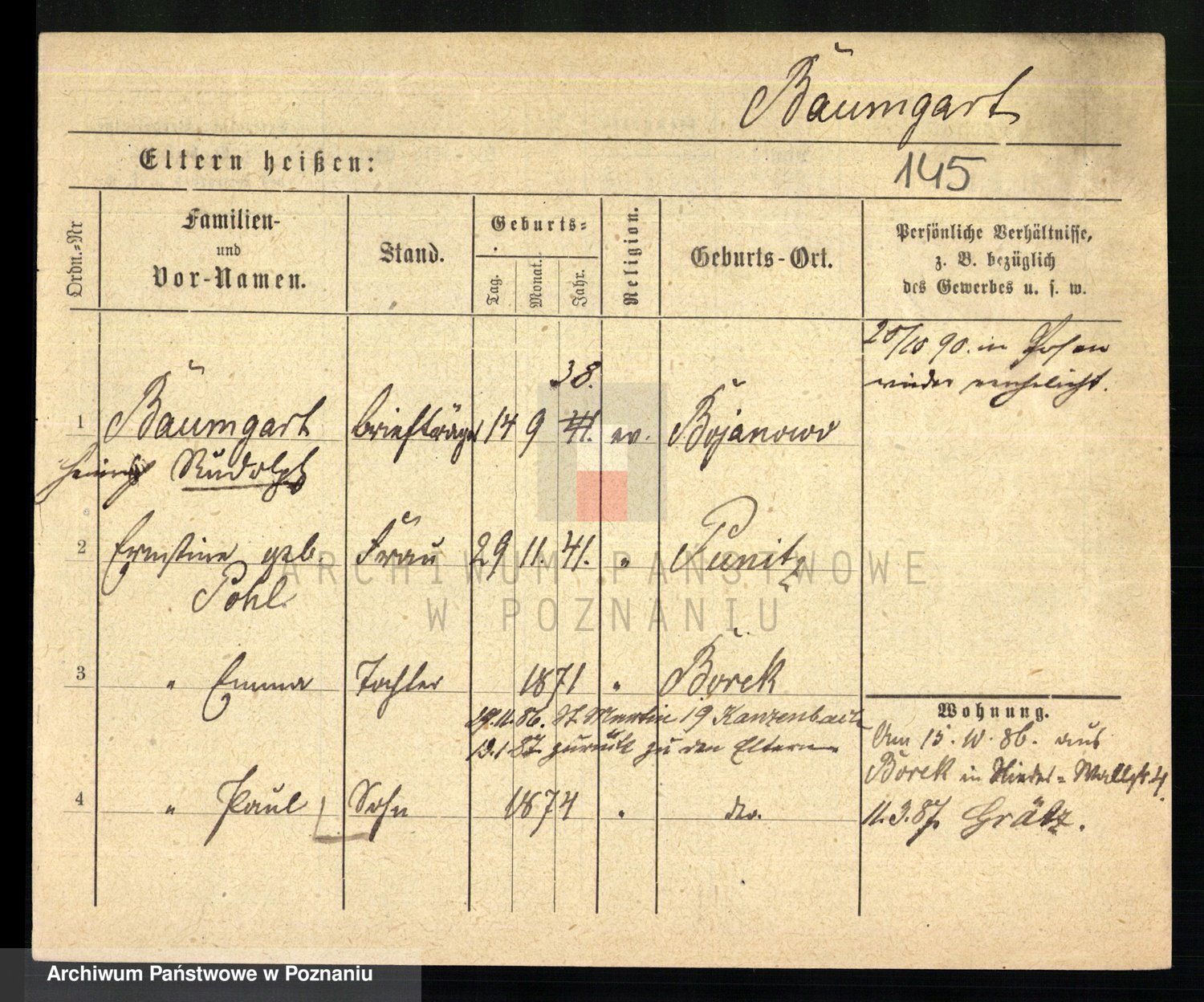 Baumeister zd. Kroll, Johanna Auguste
