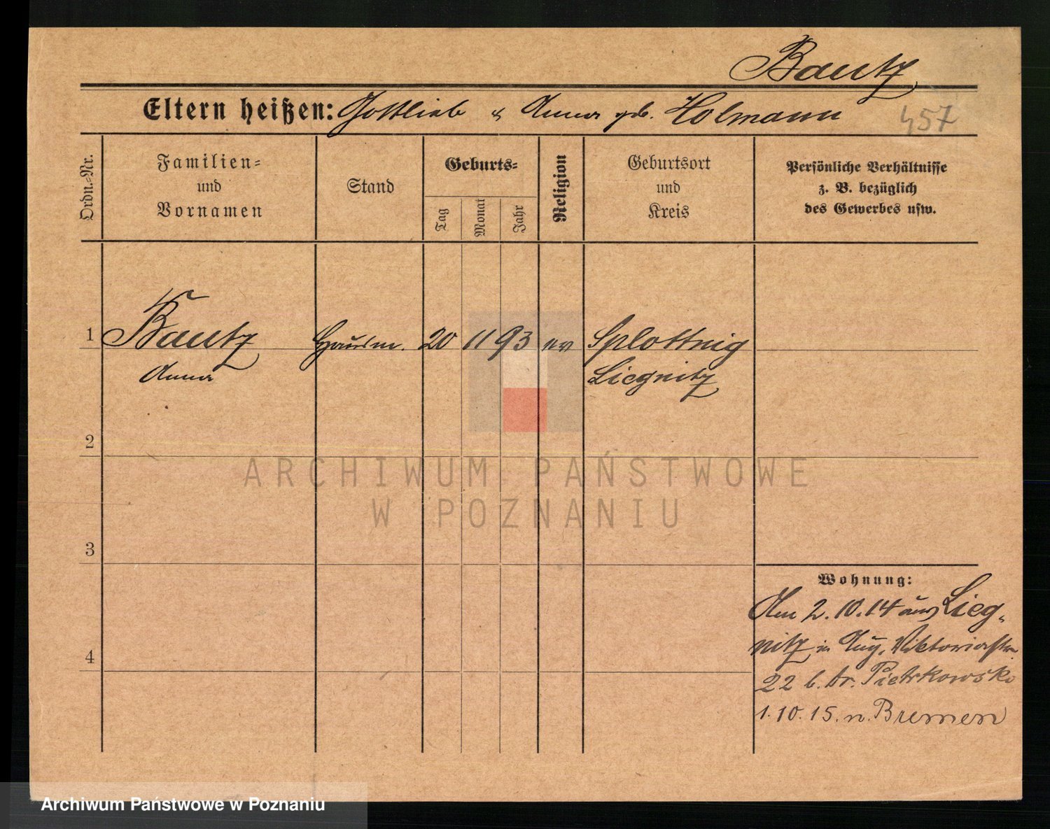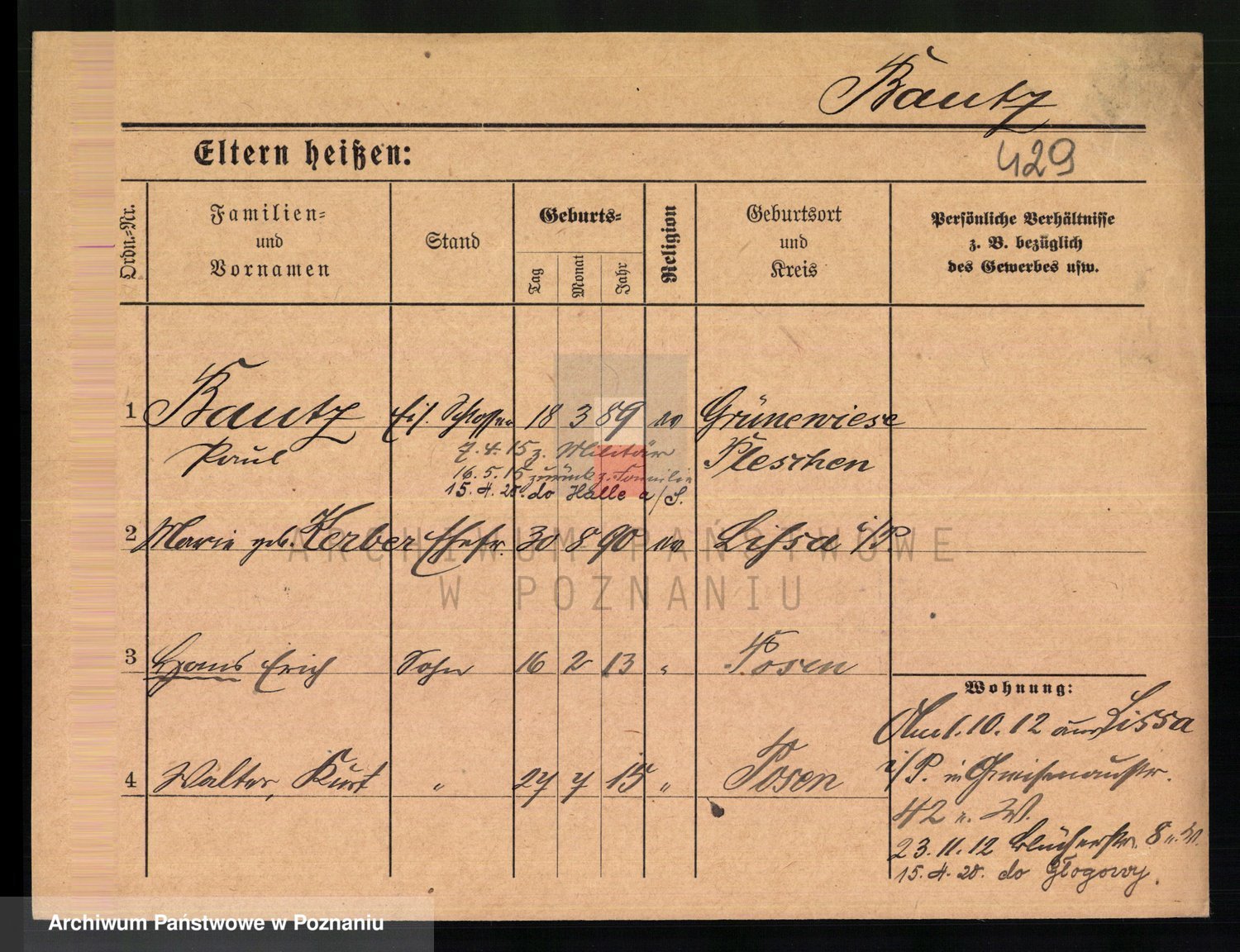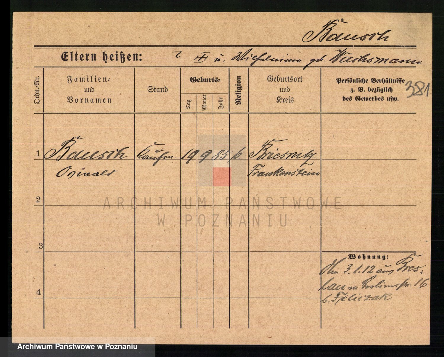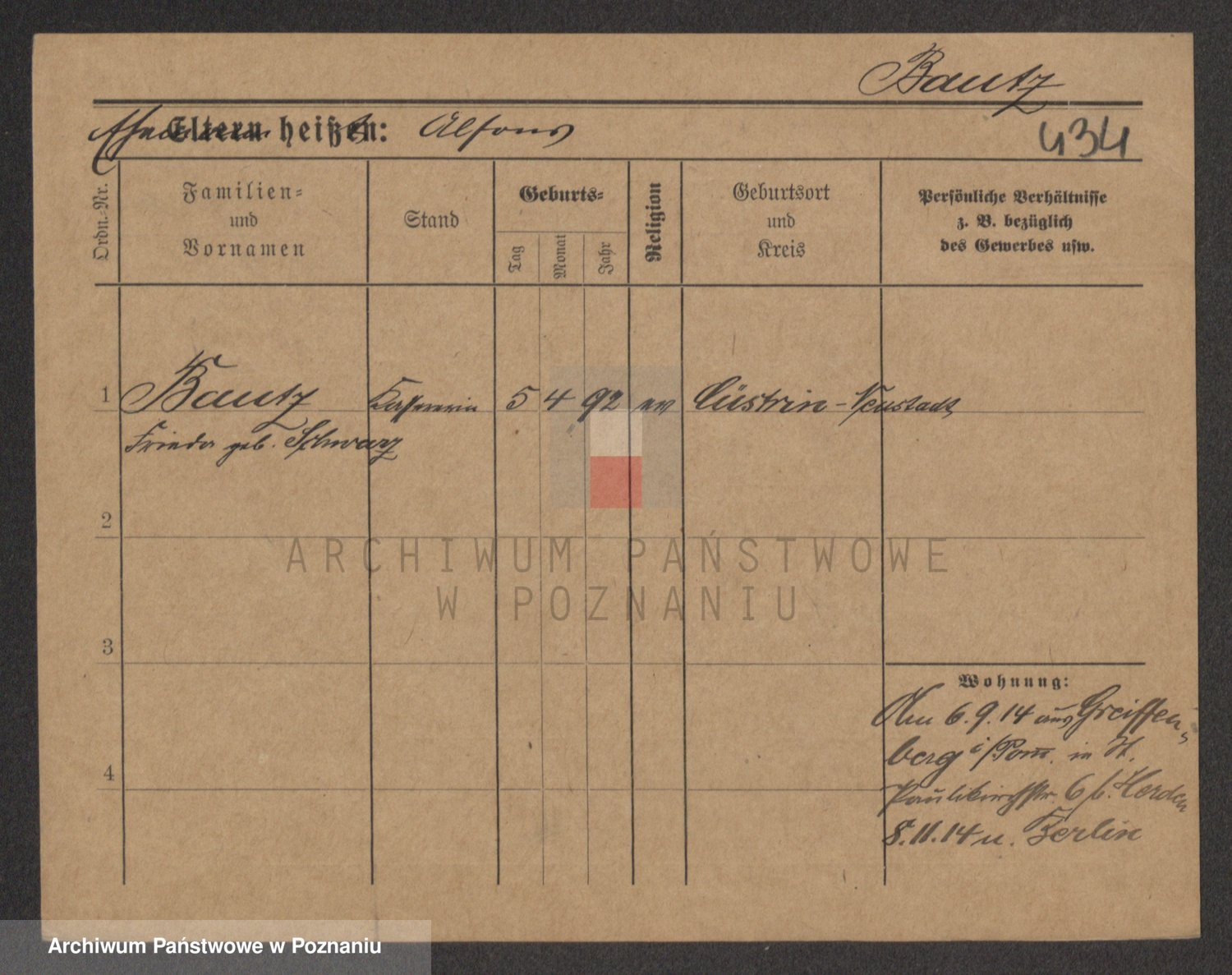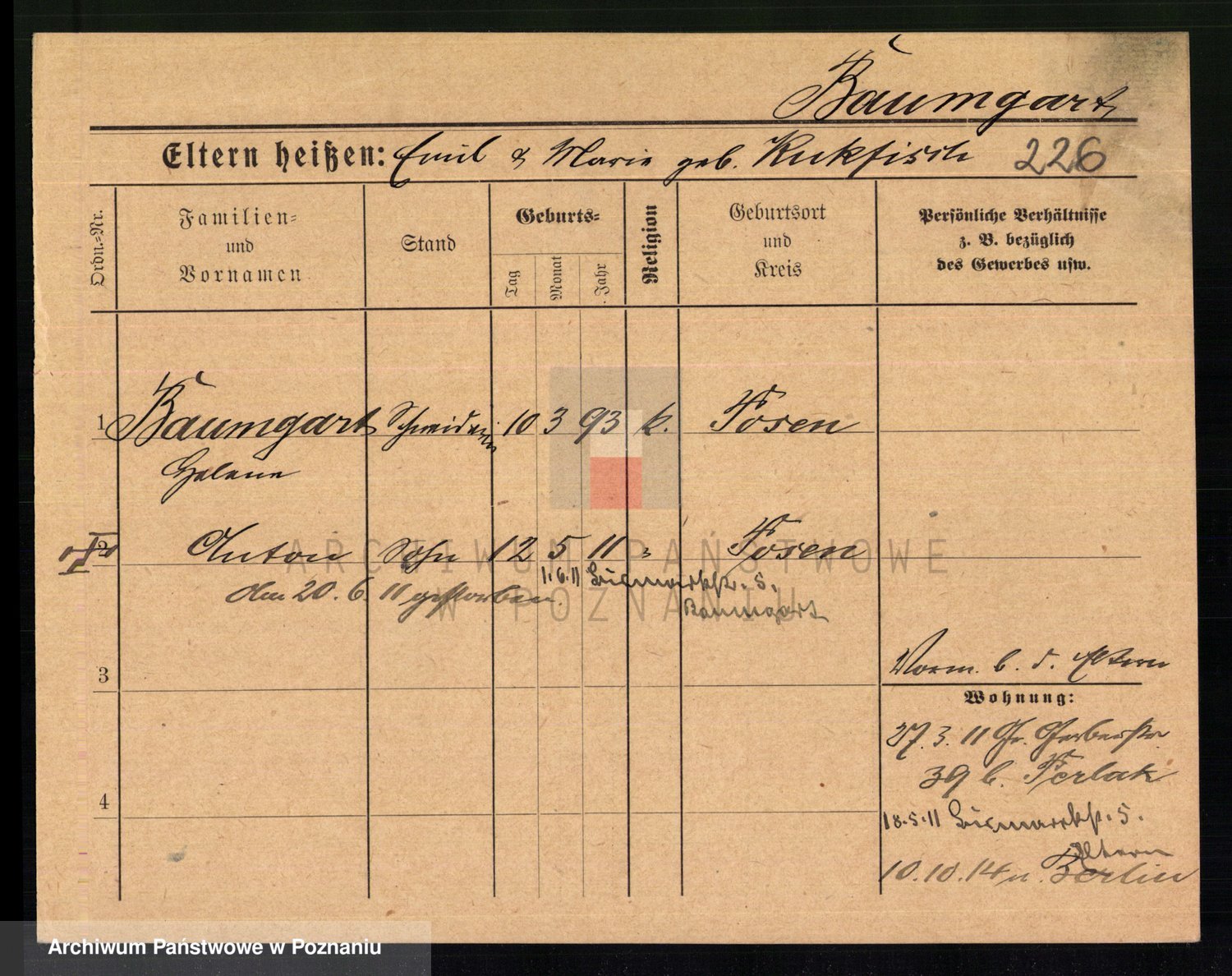 Baumeister zd. Kroll, Johanna Auguste