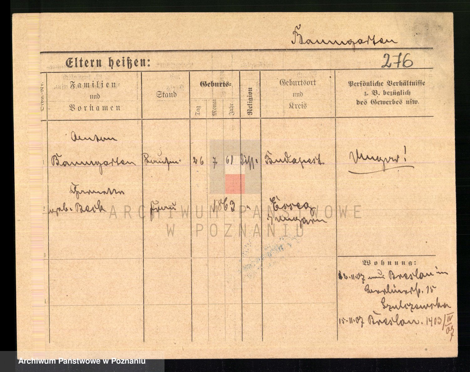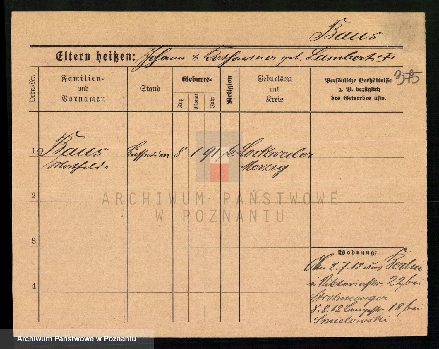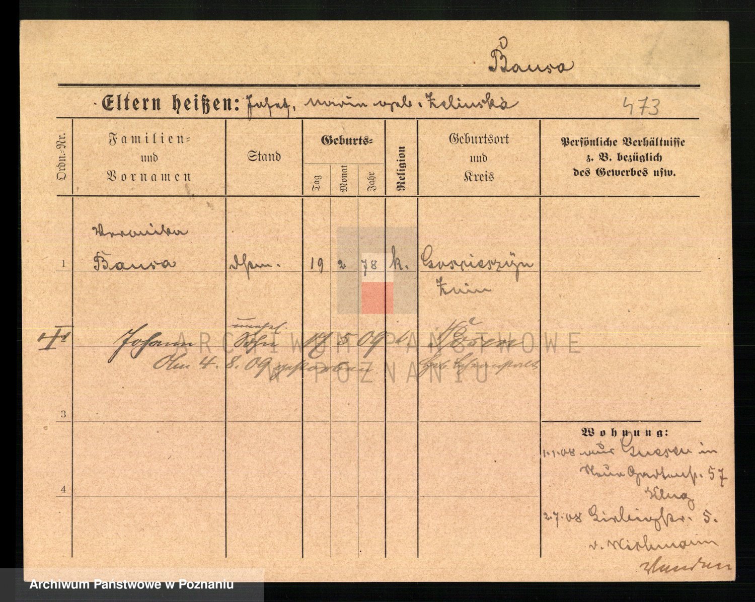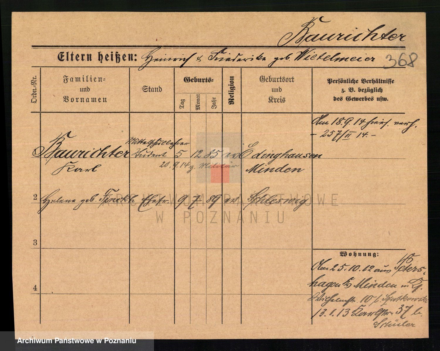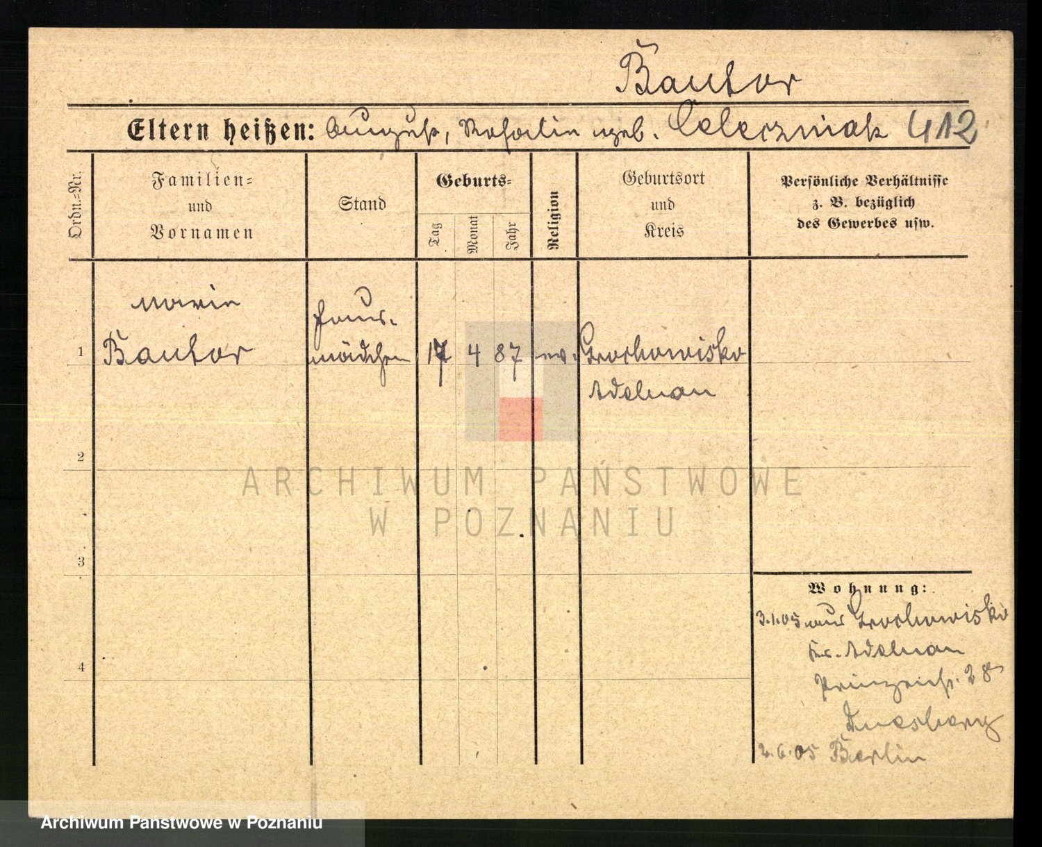 Baumeister zd. Kroll, Johanna Auguste