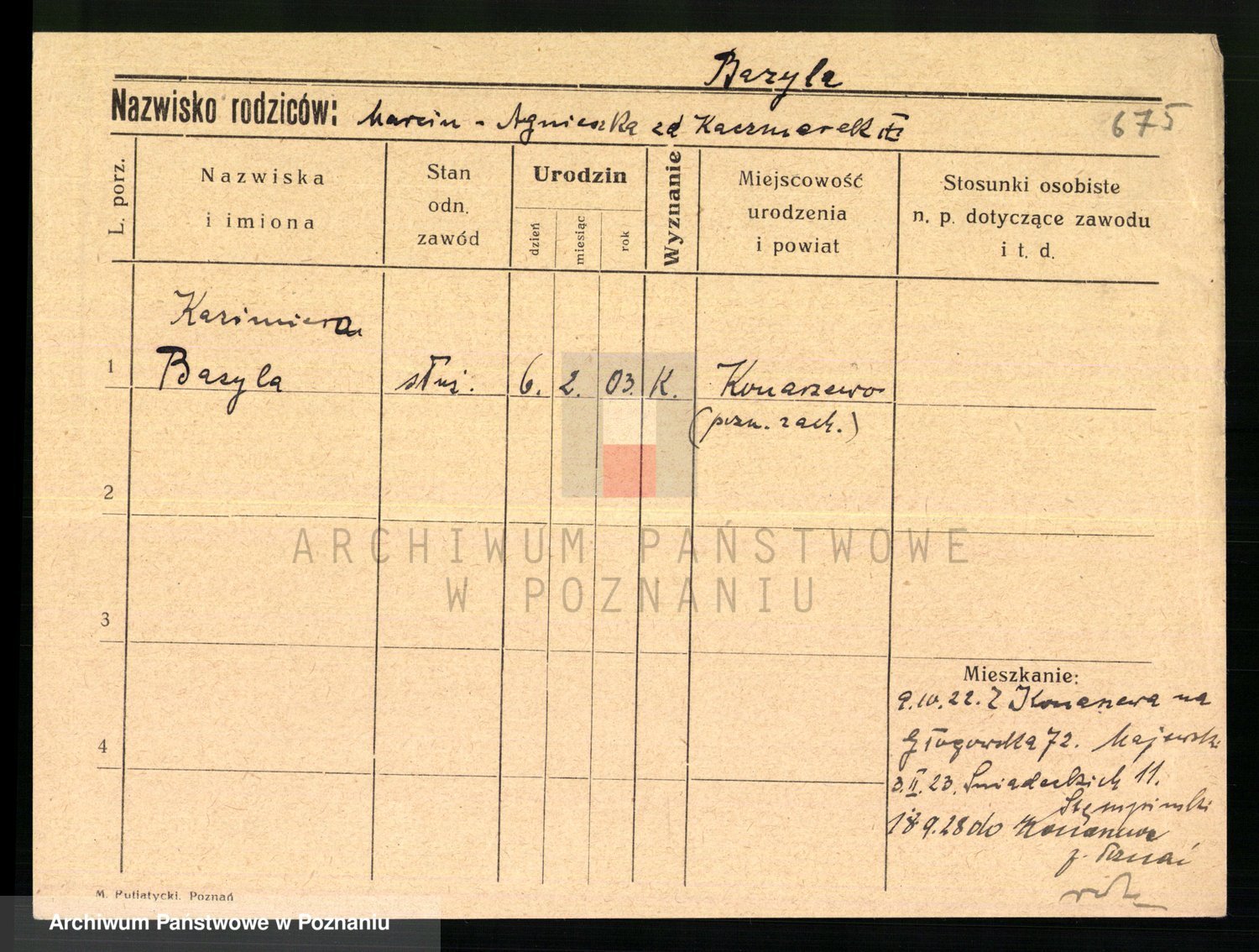 Bazyli zd. Kaczorek, Marie